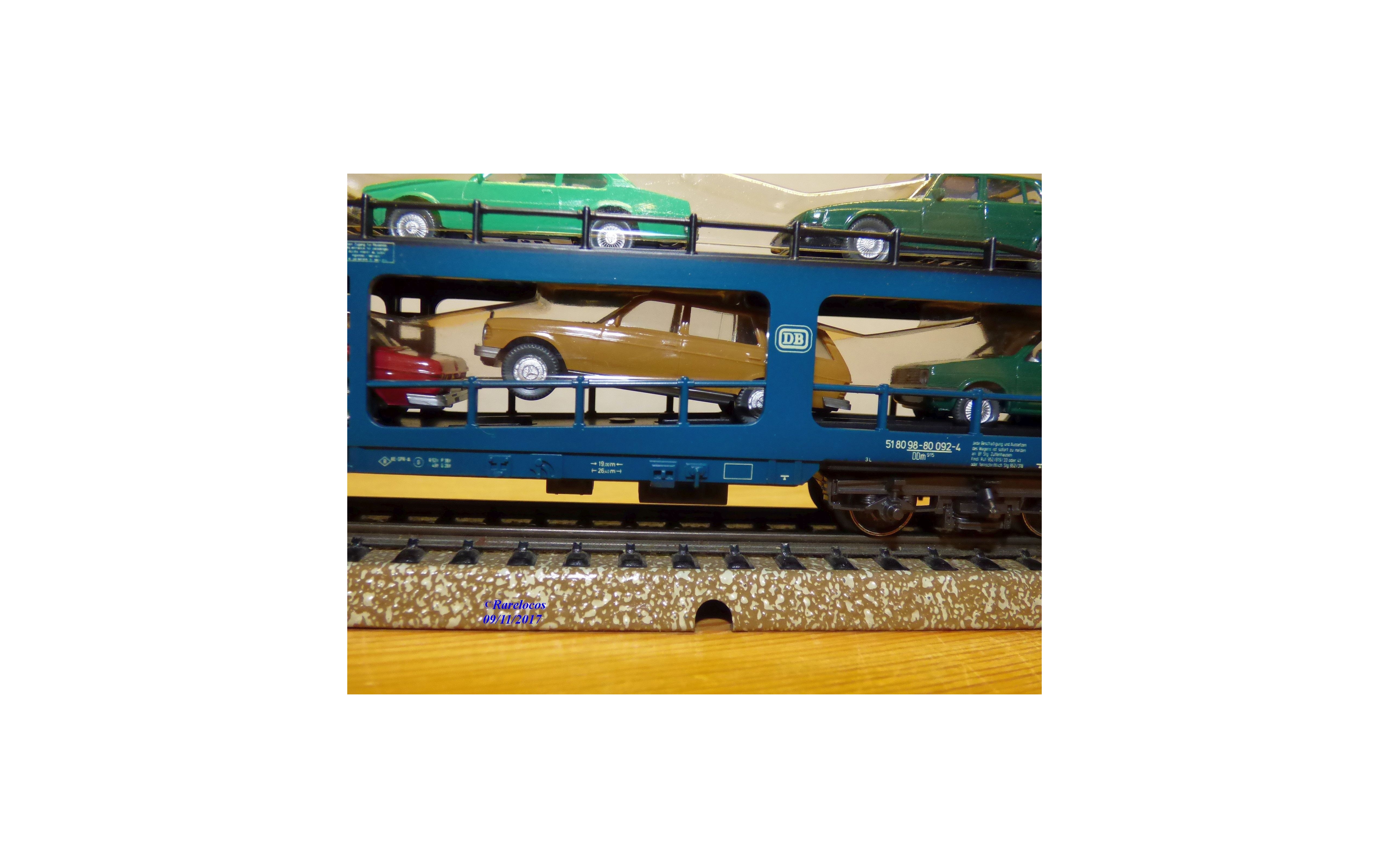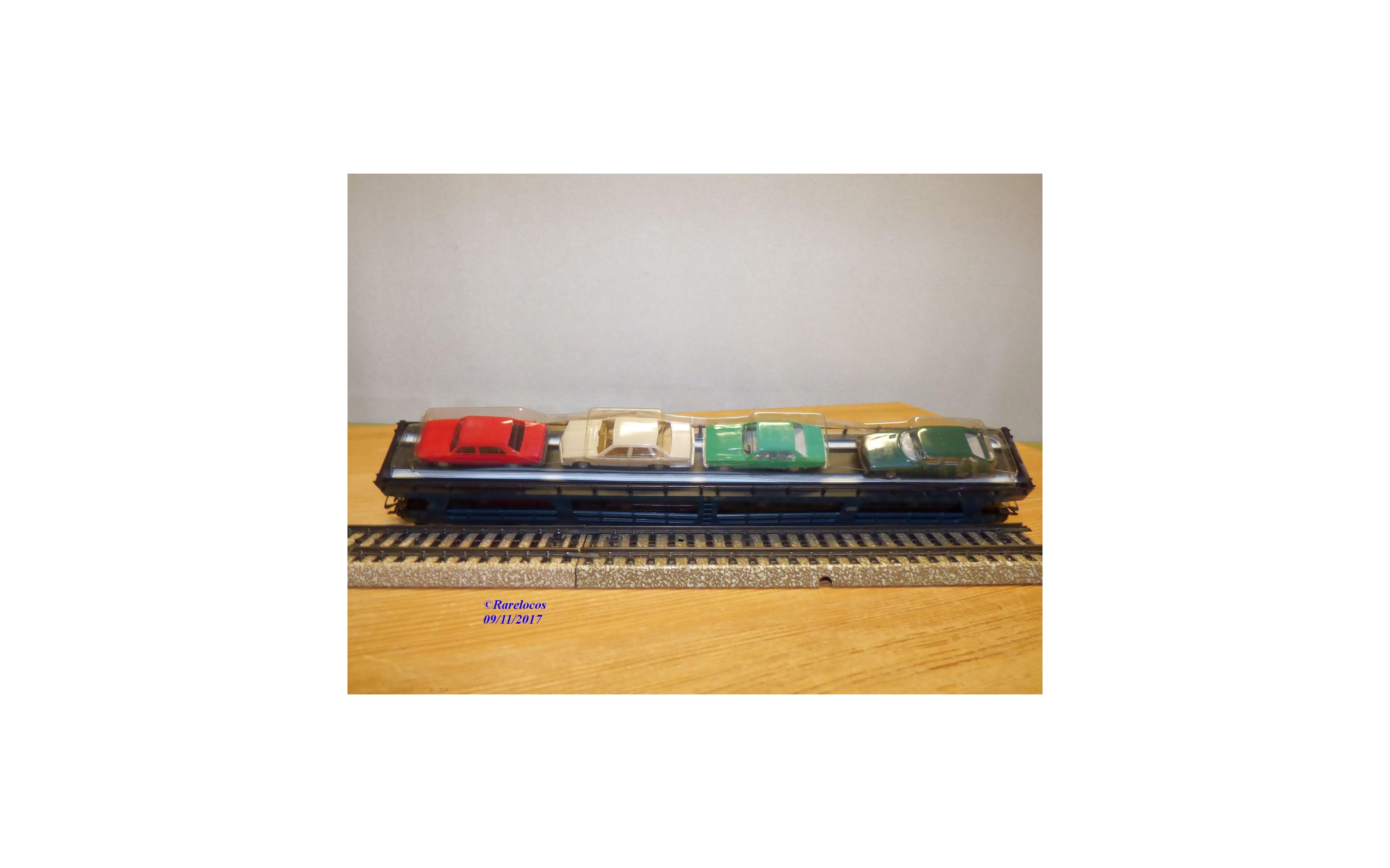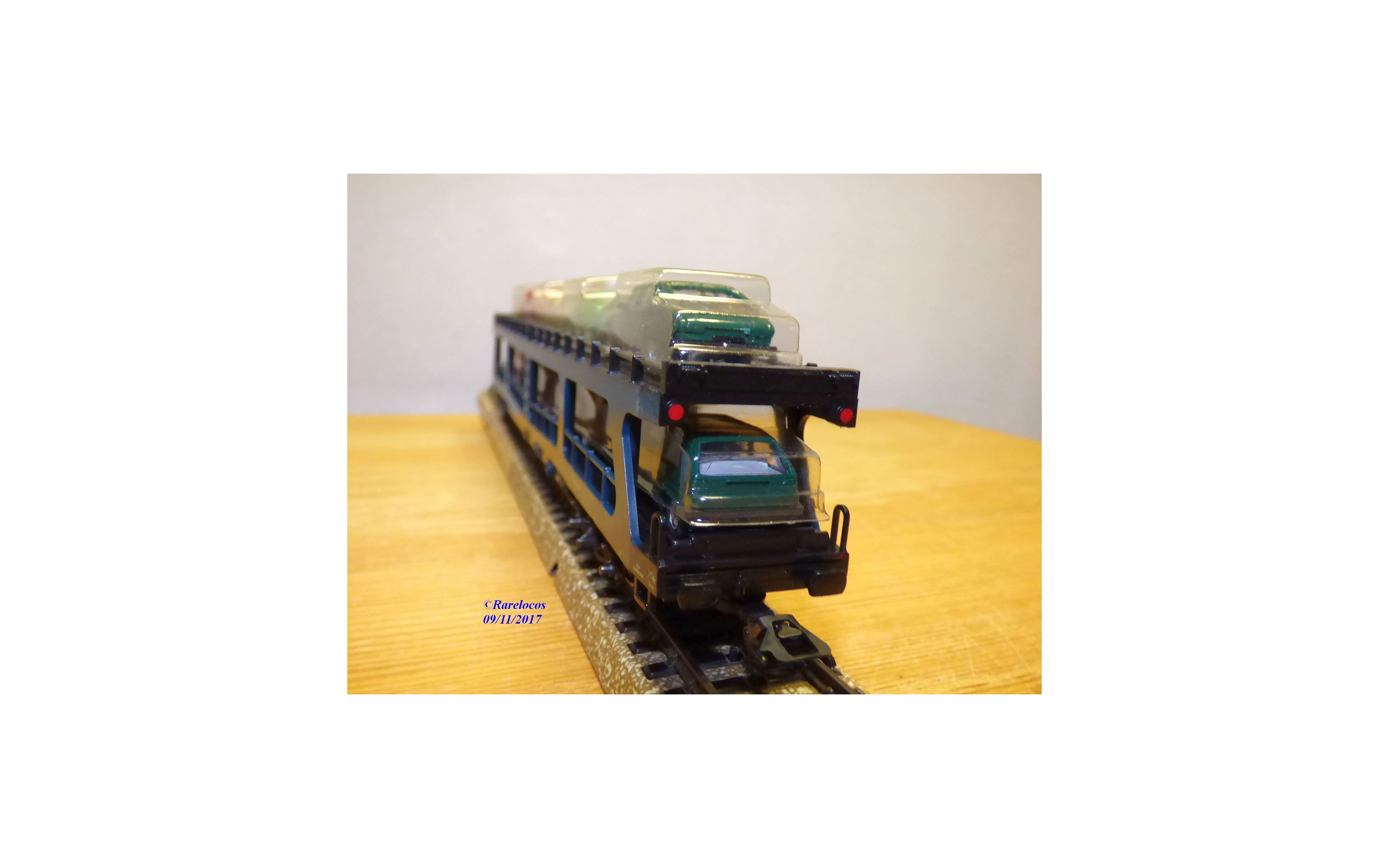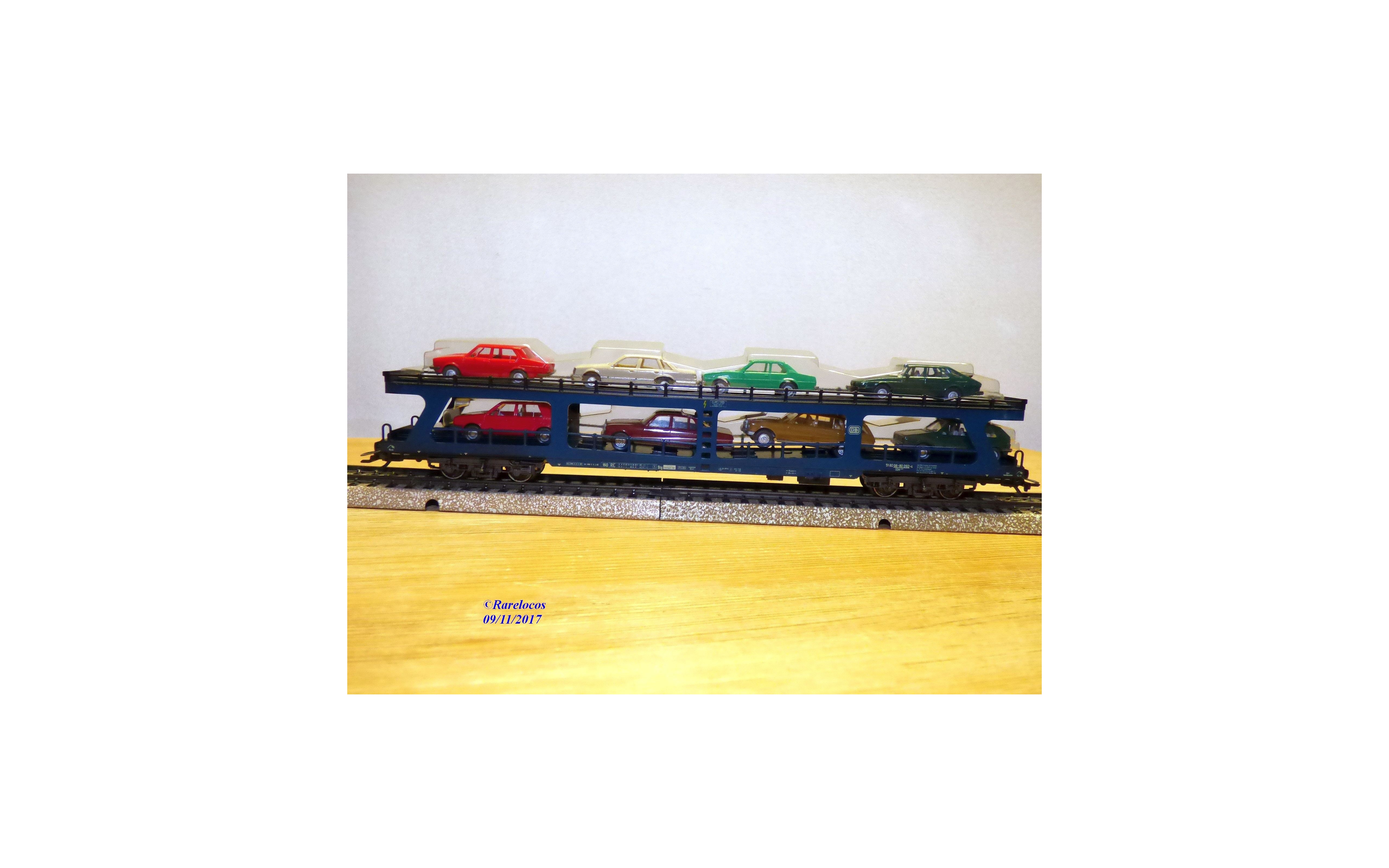 wagon porte autos à 2 bogies type DDm 915 des chemins de fer allemands ( DB ), livrée turquoise, chargé de 8 voitures ( Wiking ), emballage d'origine en état moyen.