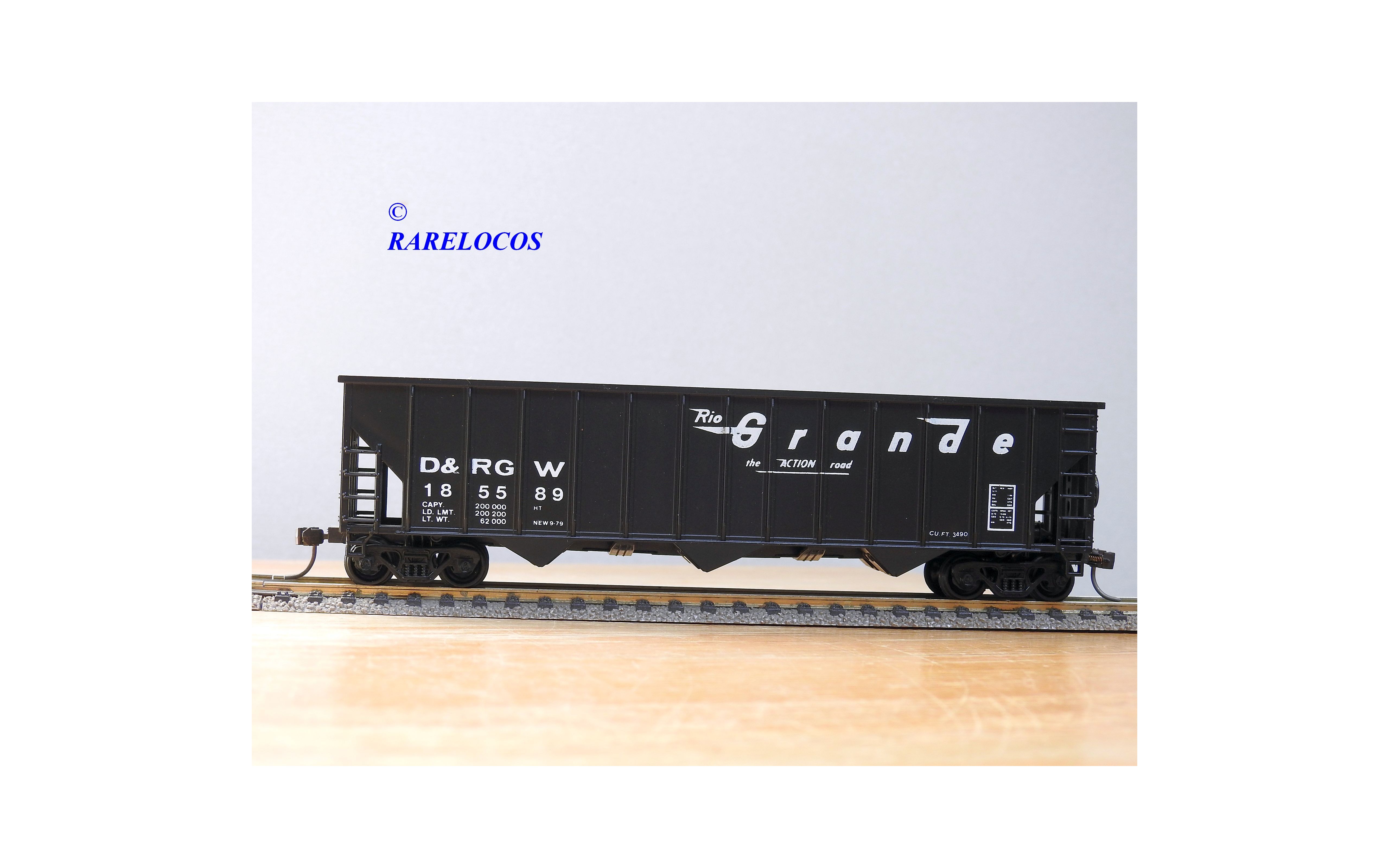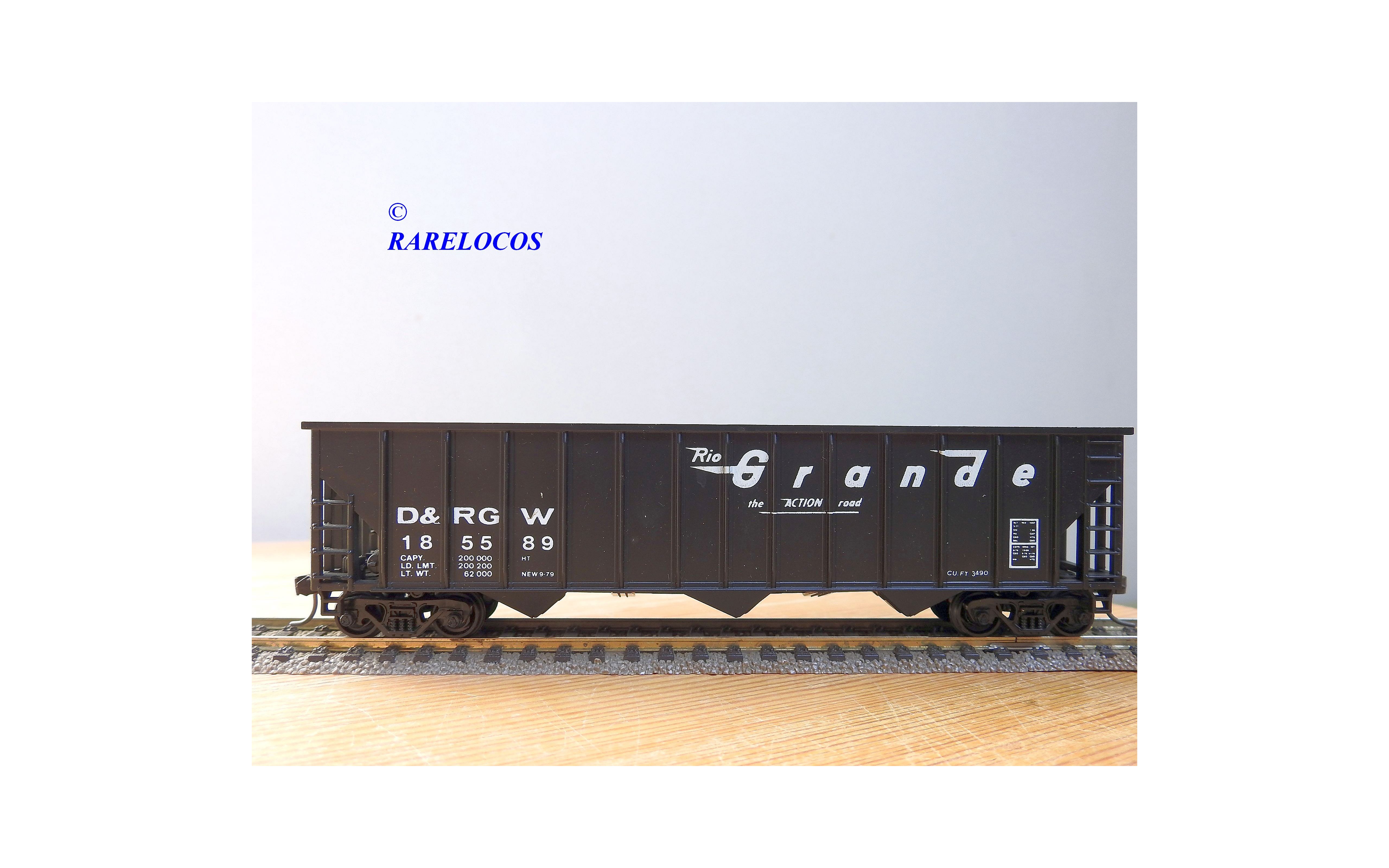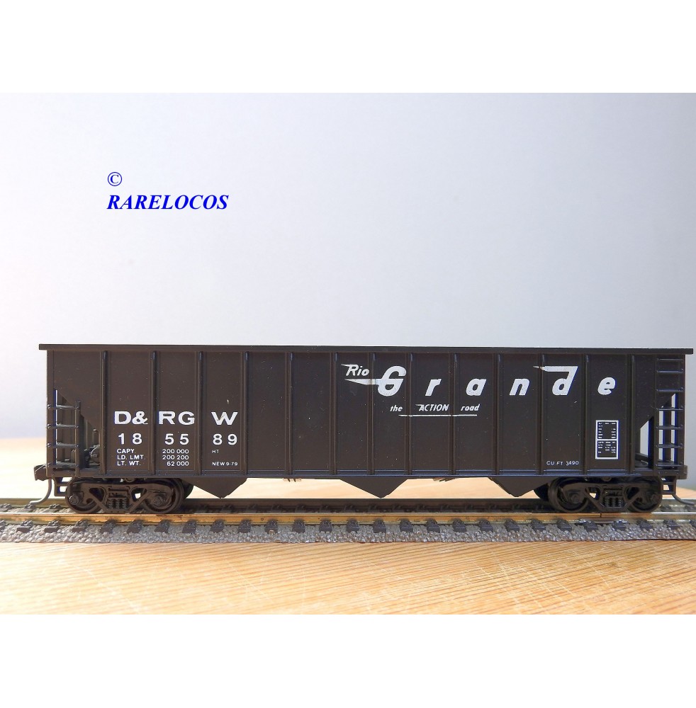 Peu courant wagon trémie ( hopper car ) des chemins de fer américains ( D&RGW: Denver and Rio Grande Western), livrée noire, immatriculation : 18 55 89, pas de boîte d' origine.
