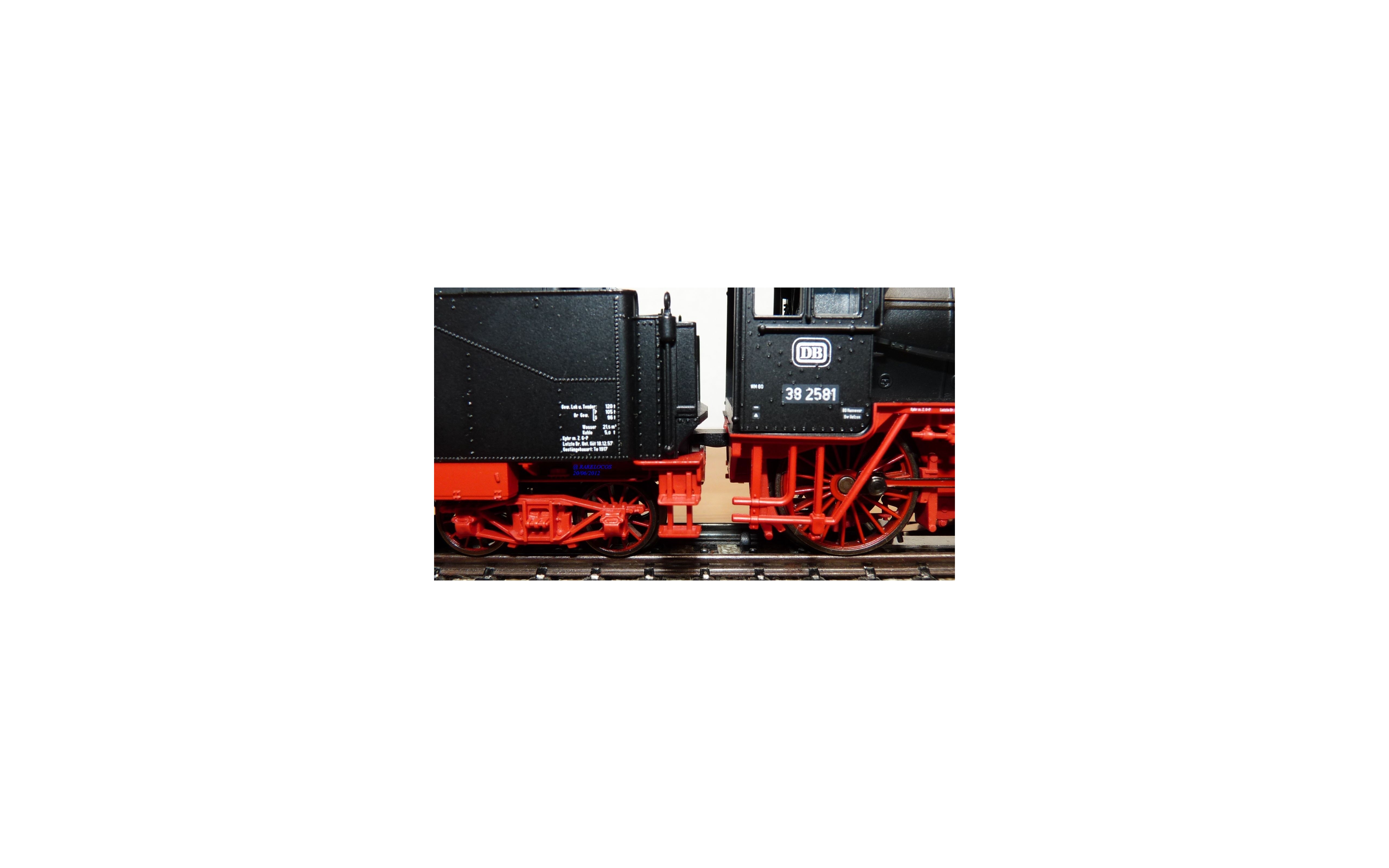 Locomotive 230 série Br 38 ( Ex P 8 Kpev ) des chemins de fer allemands ( DB ) , en métal, livrée noire à soubassements rouges, roues brunies, digital, moteur Faulhaber, attelages à élongation, immatriculation : 38 2581, pièces de détaillage + figurines de chauffeur et mécanicien encore scellés, notice + liste de pièces détachées présentes, emballage d'origine en très bon état .