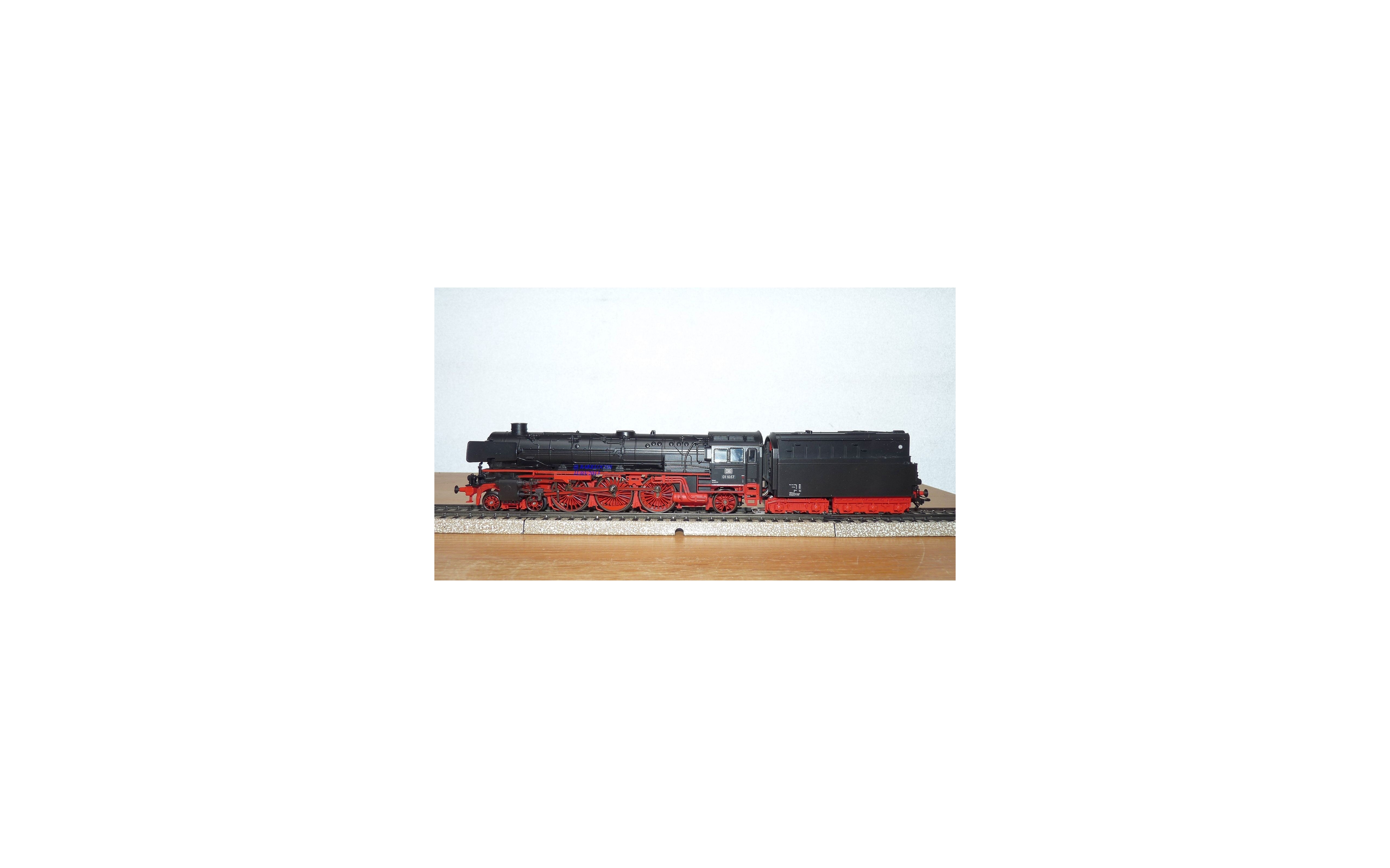 Locomotive Pacific 231 série Br 01 10 à chauffe au fuel des chemins de fer allemands ( DB ), livrée noire à soubassements rouges, loco en métal, tender en plastique, digital, moteur C sinus, sonorisée, éclairage du chassis, roues et embiellage brunis, immatriculation: 01 1057, notice et liste de pièces détachées présentes, emballage d'origine en état neuf.