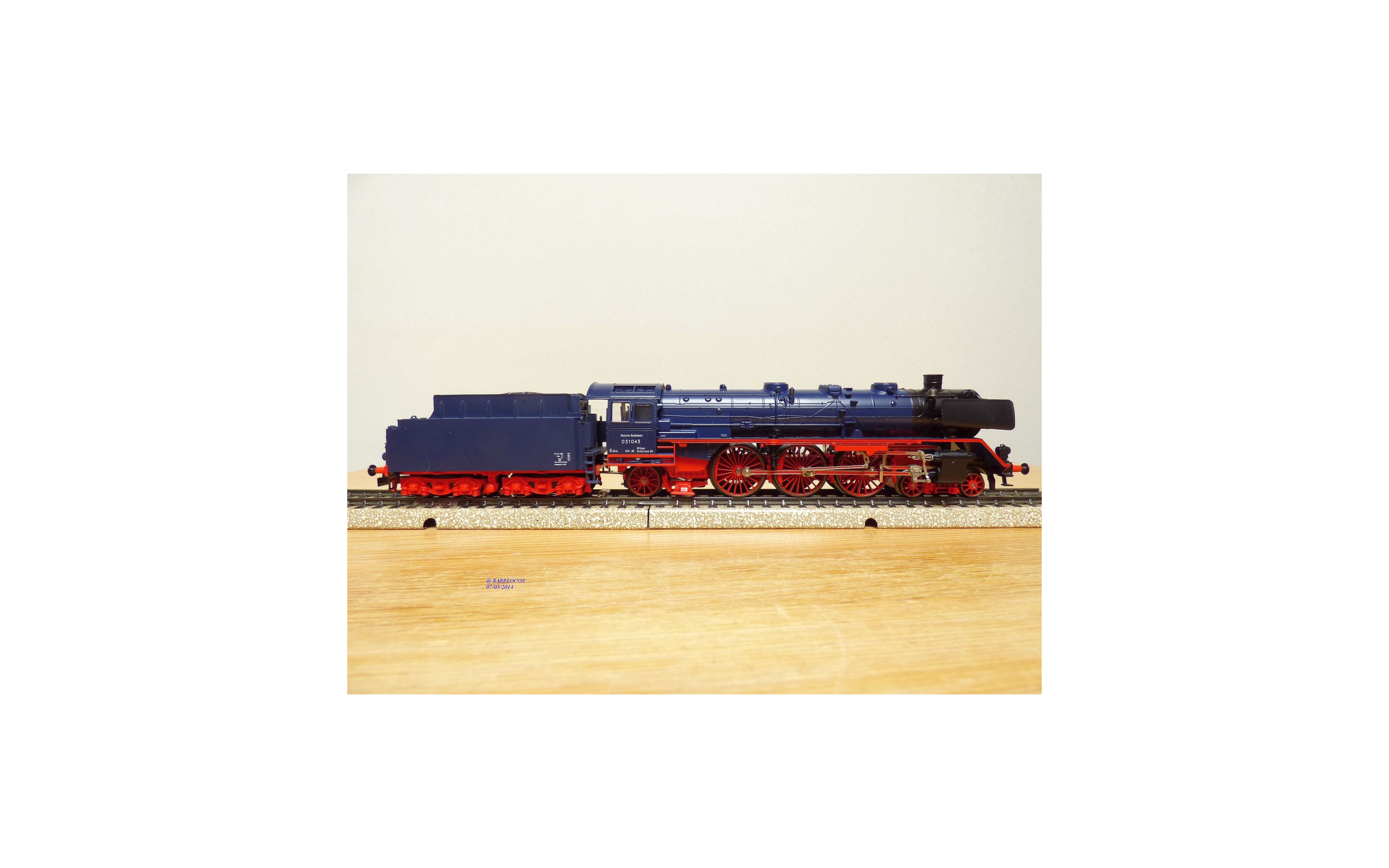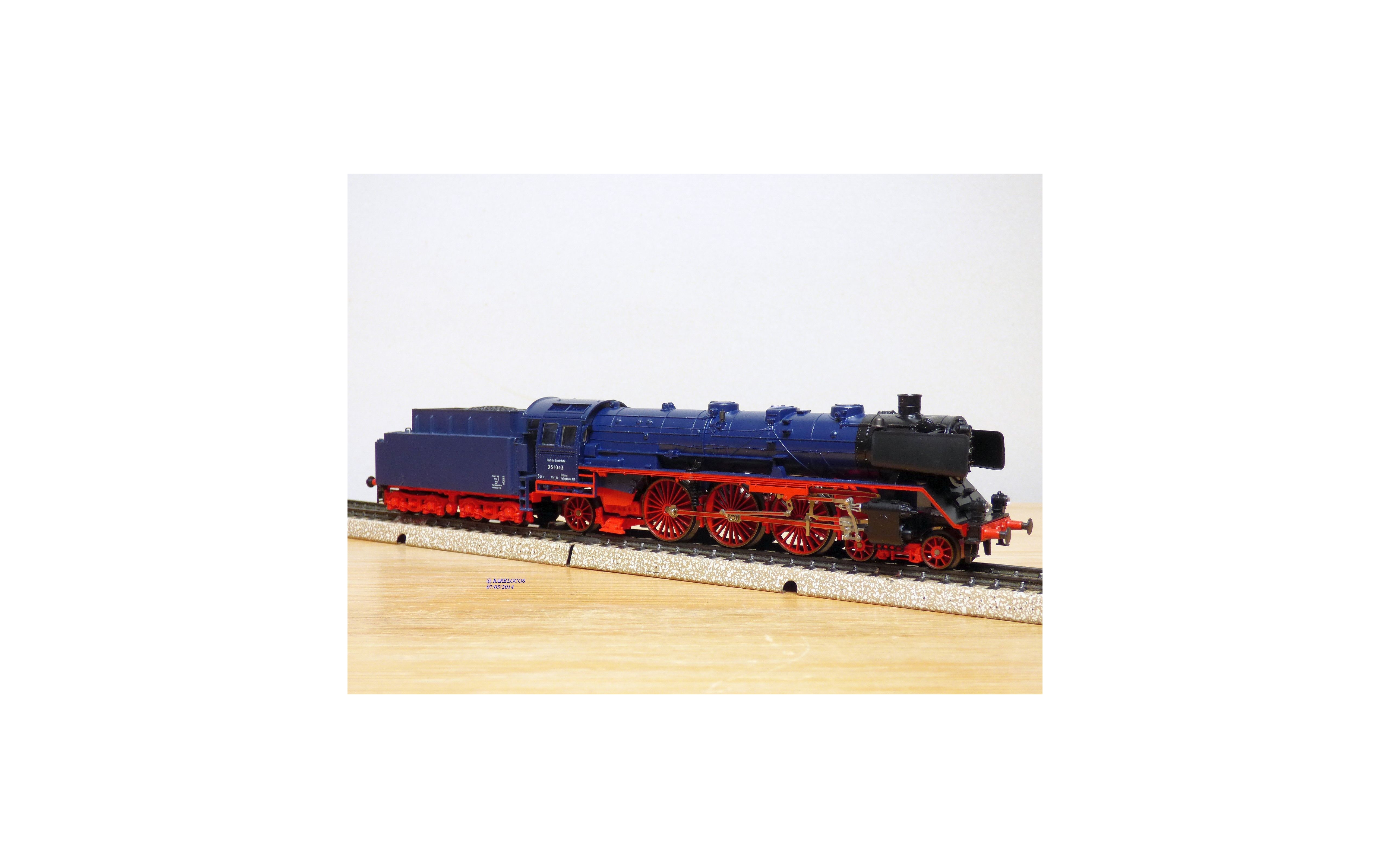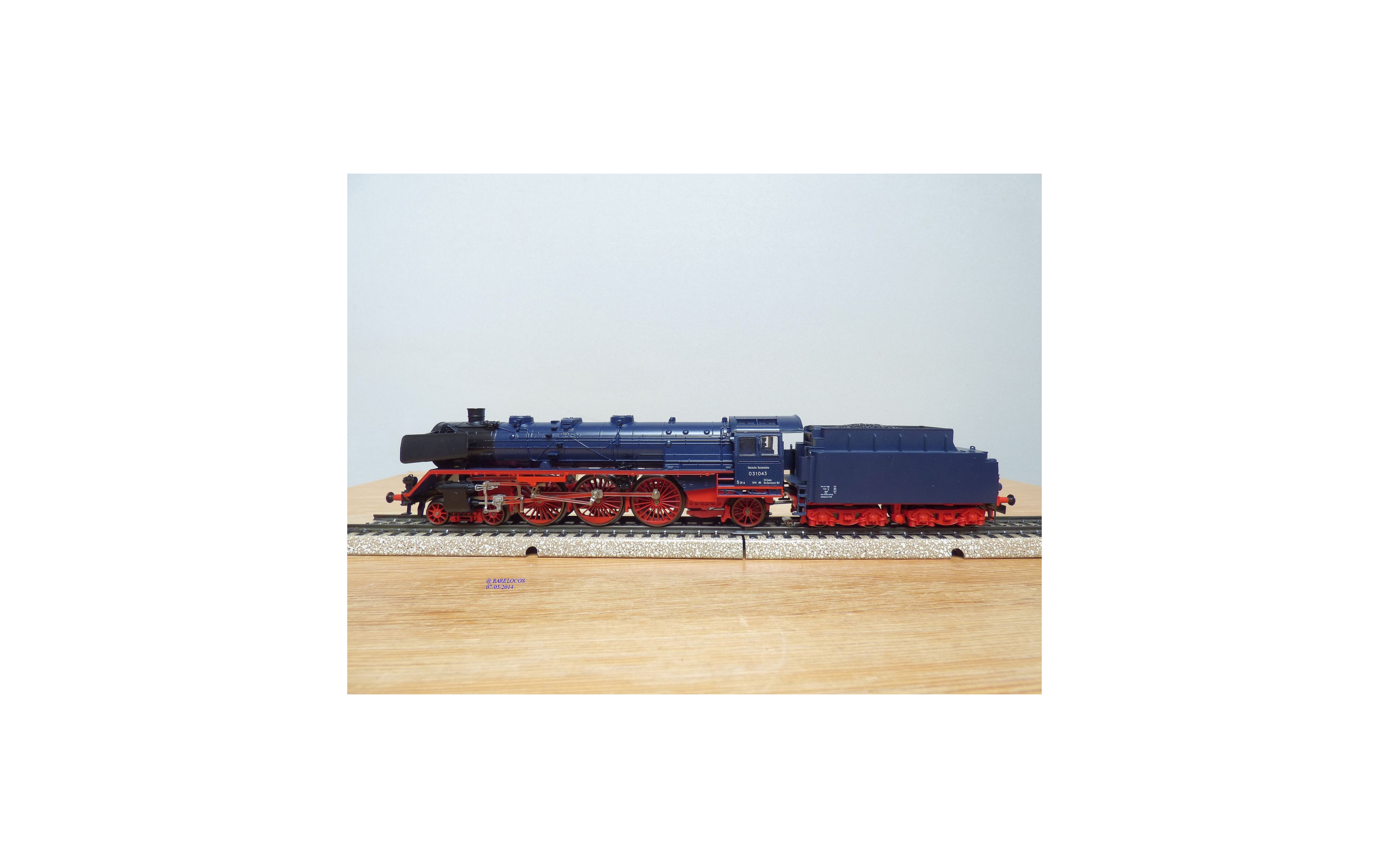 Plutôt rare locomotive Pacific 231 série Br 03 des chemins de fer allemands ( DB ), loco en métal,tender en plastique, livrée bleue et noire sur soubassements rouges, immatriculation :03 1043, notice présente, boîte d'origine en excellent état .