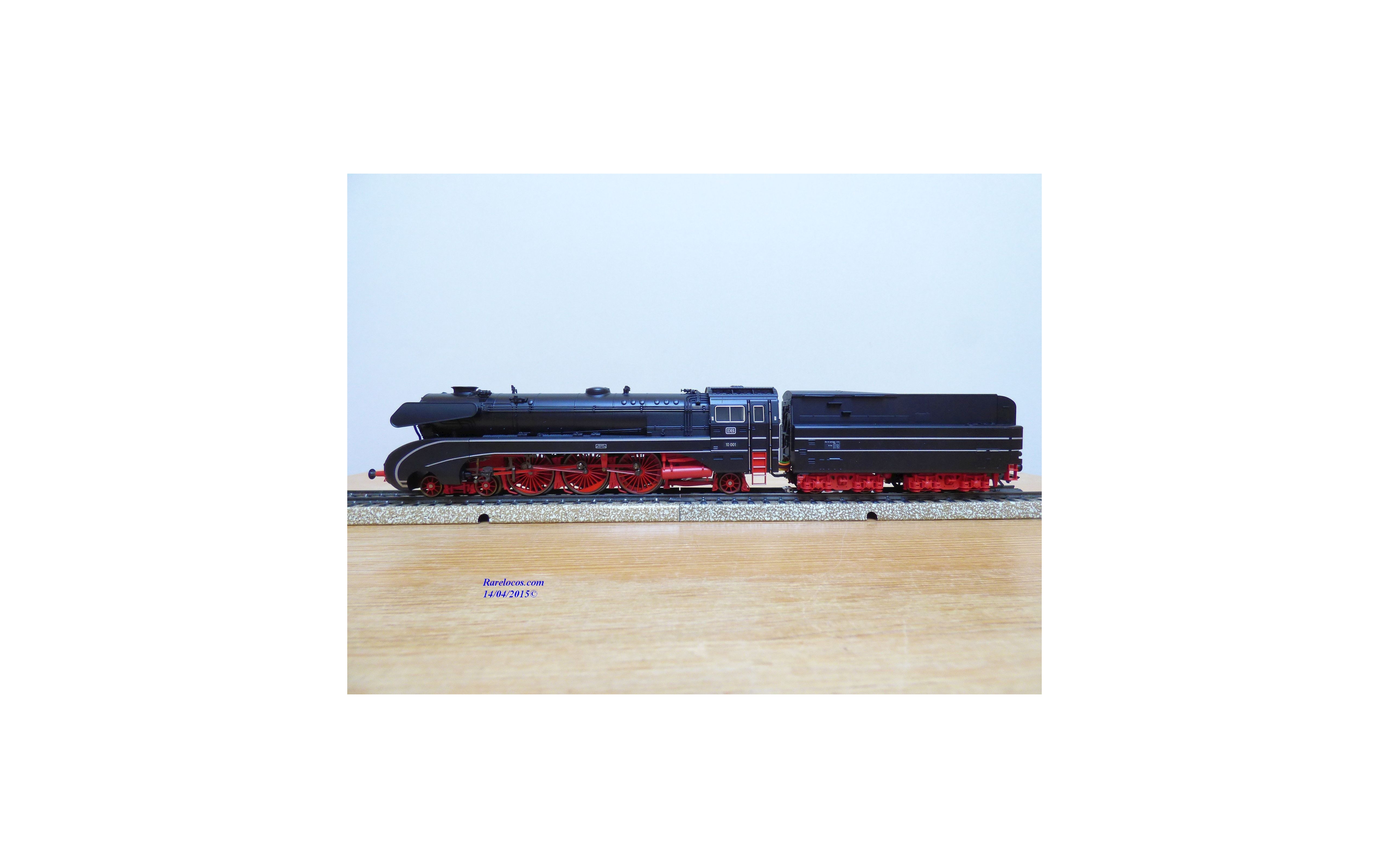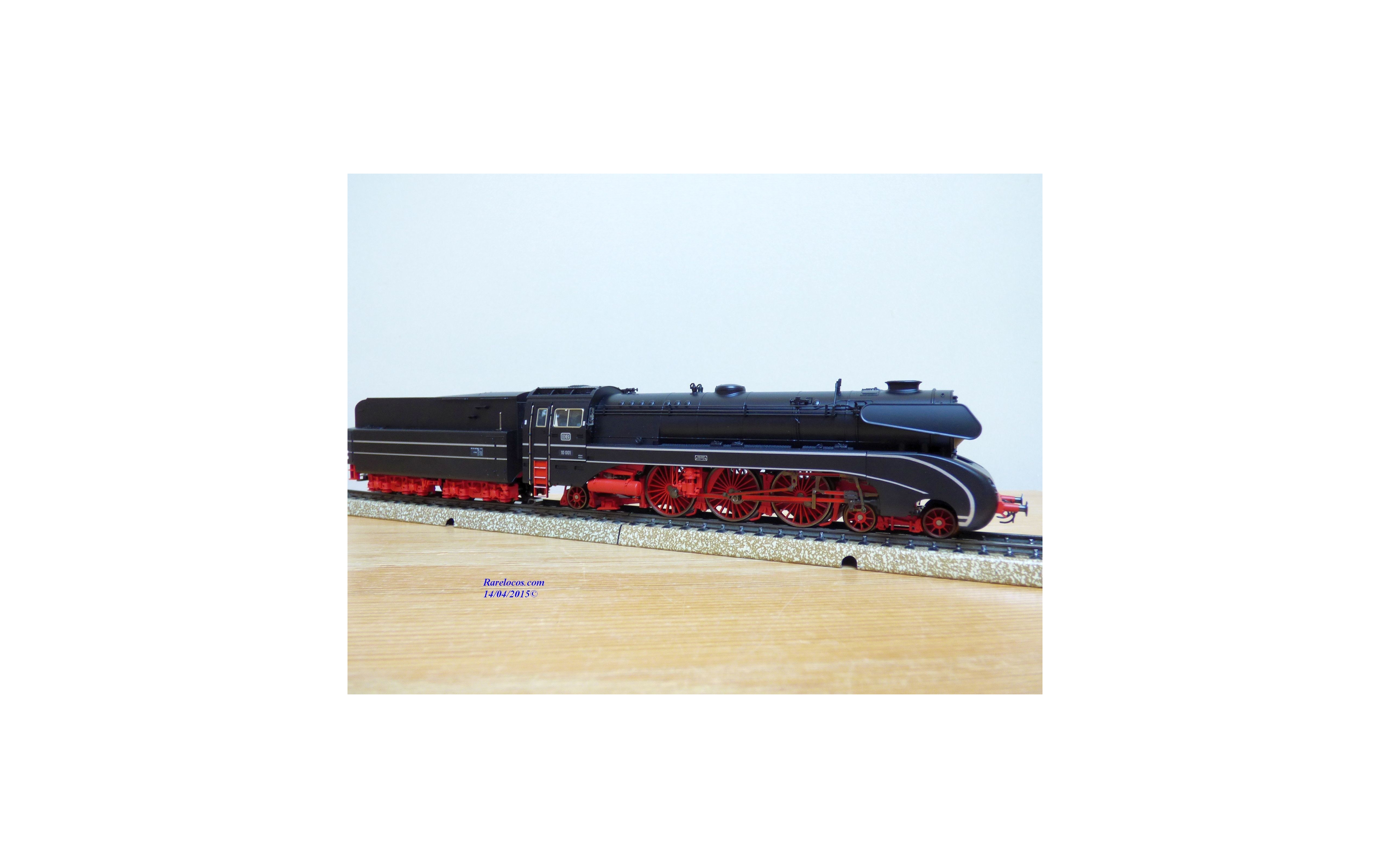 Rare locomotive carénée Pacific 231 série Br 10 des chemins de fer allemands ( DB ) , en métal, livrée noire , digitale, roues brunies, sonorisation, éclairage du chassis, jupes avant complémentaires pour exposition encore scellées, notice présente, emballage d'origine en excellent état .