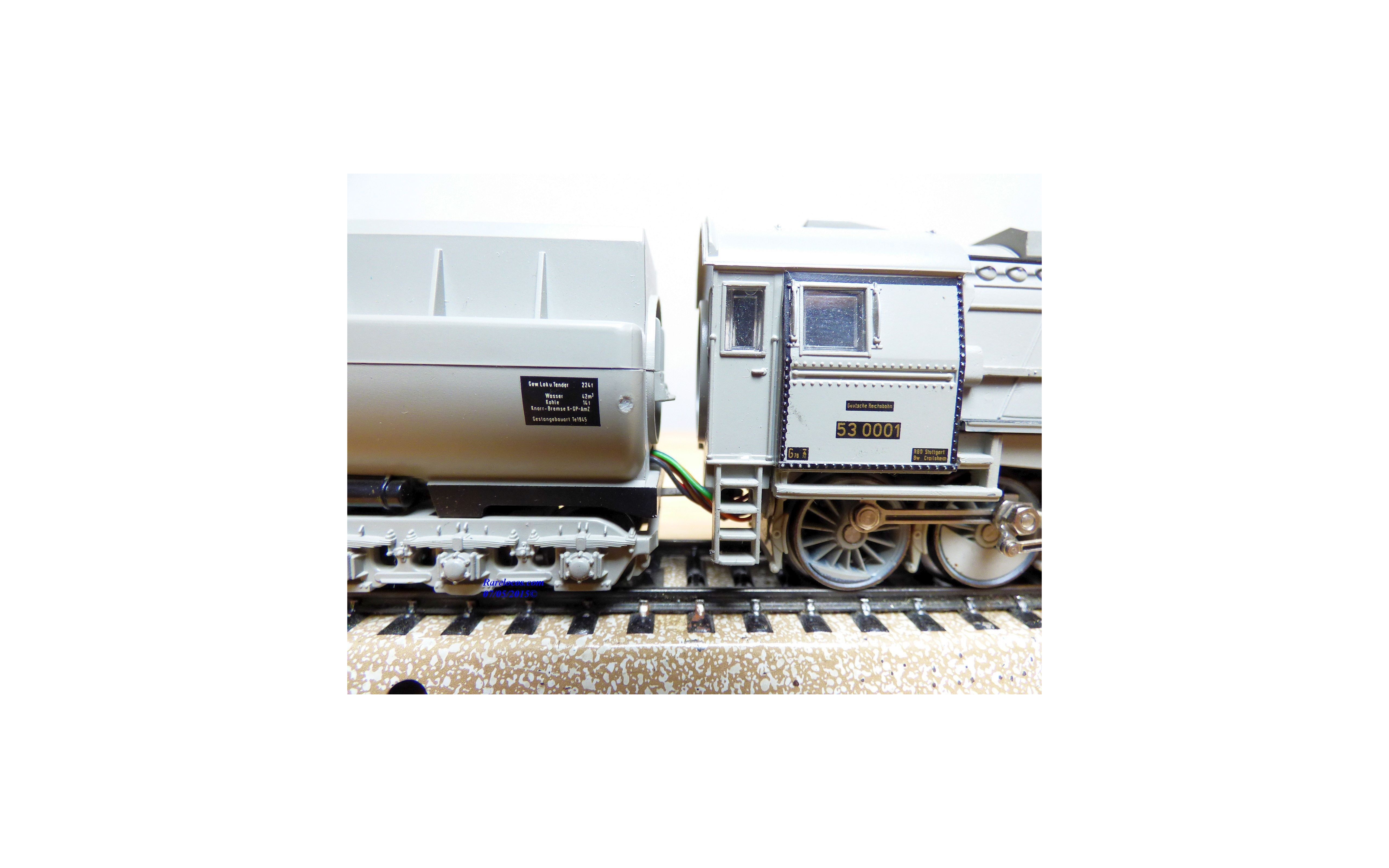 Locomotive prototype jamais réalisée par Börsig, Mallet 1340 série Br 53 des chemins de fer allemands ( DRG) , plastique et métal, livrée grise et noire sortie d'usine, roues brunies, immatriculation : 53 0001, notice présente, emballage d'origine incomplet ( voir photo ).