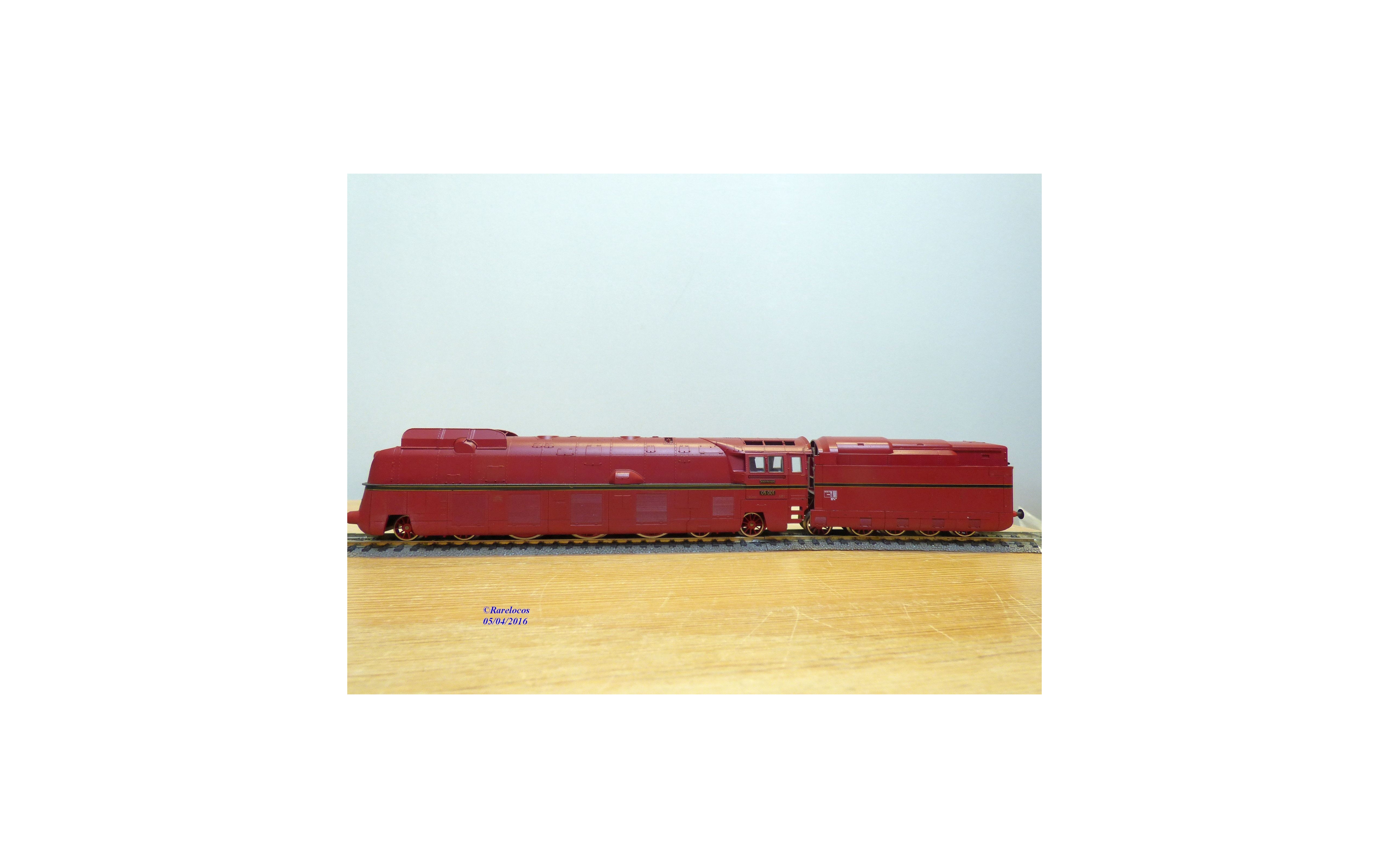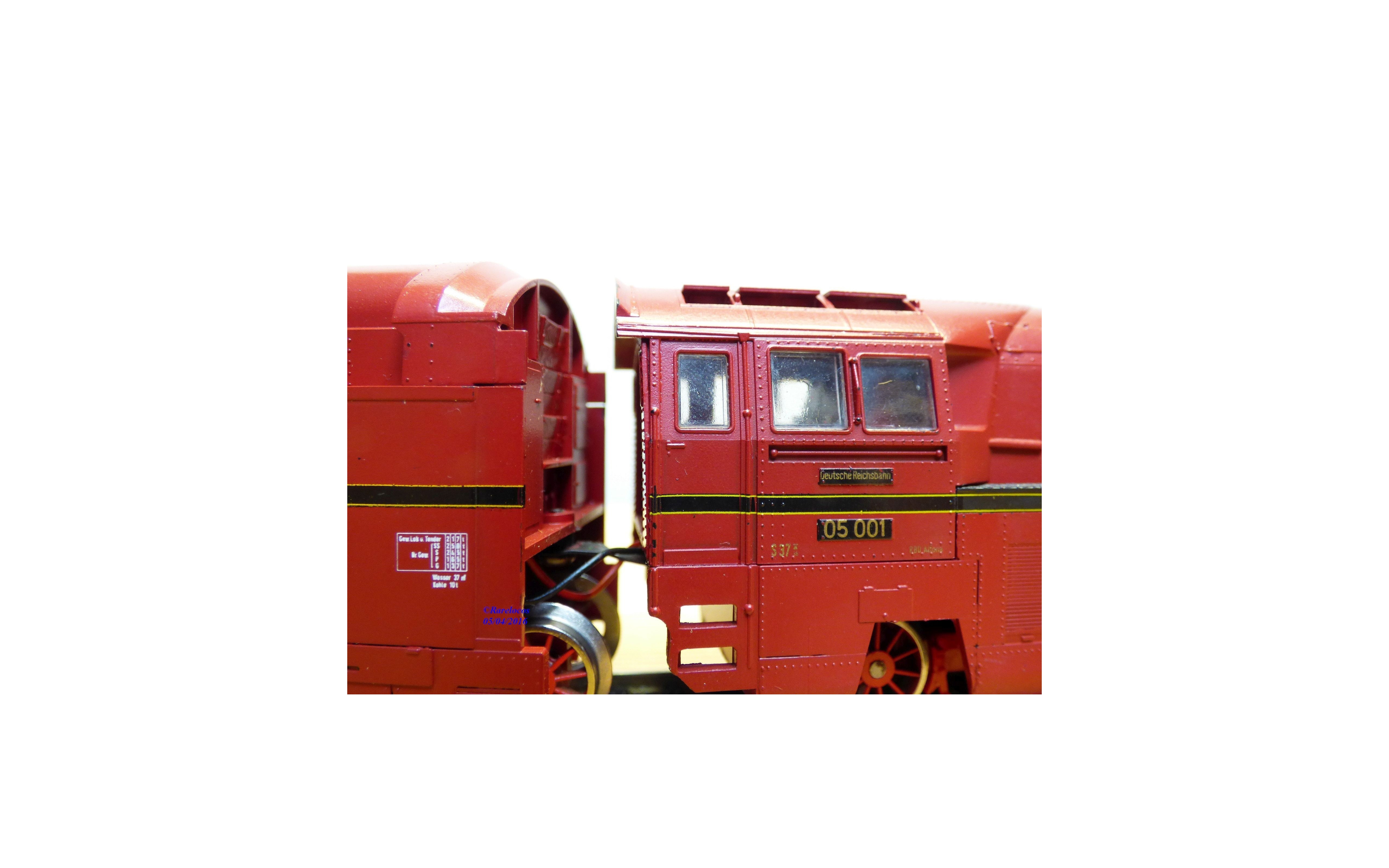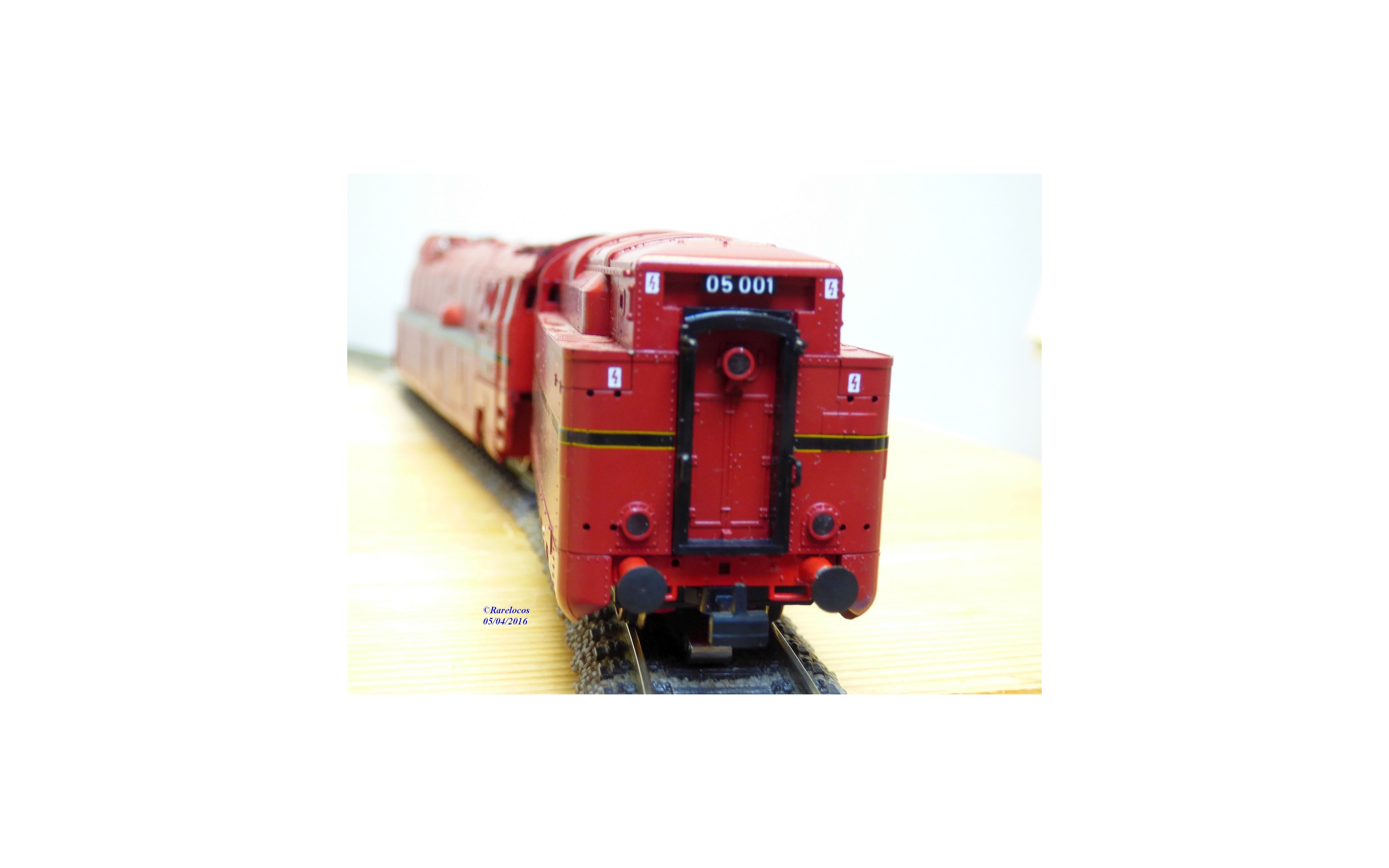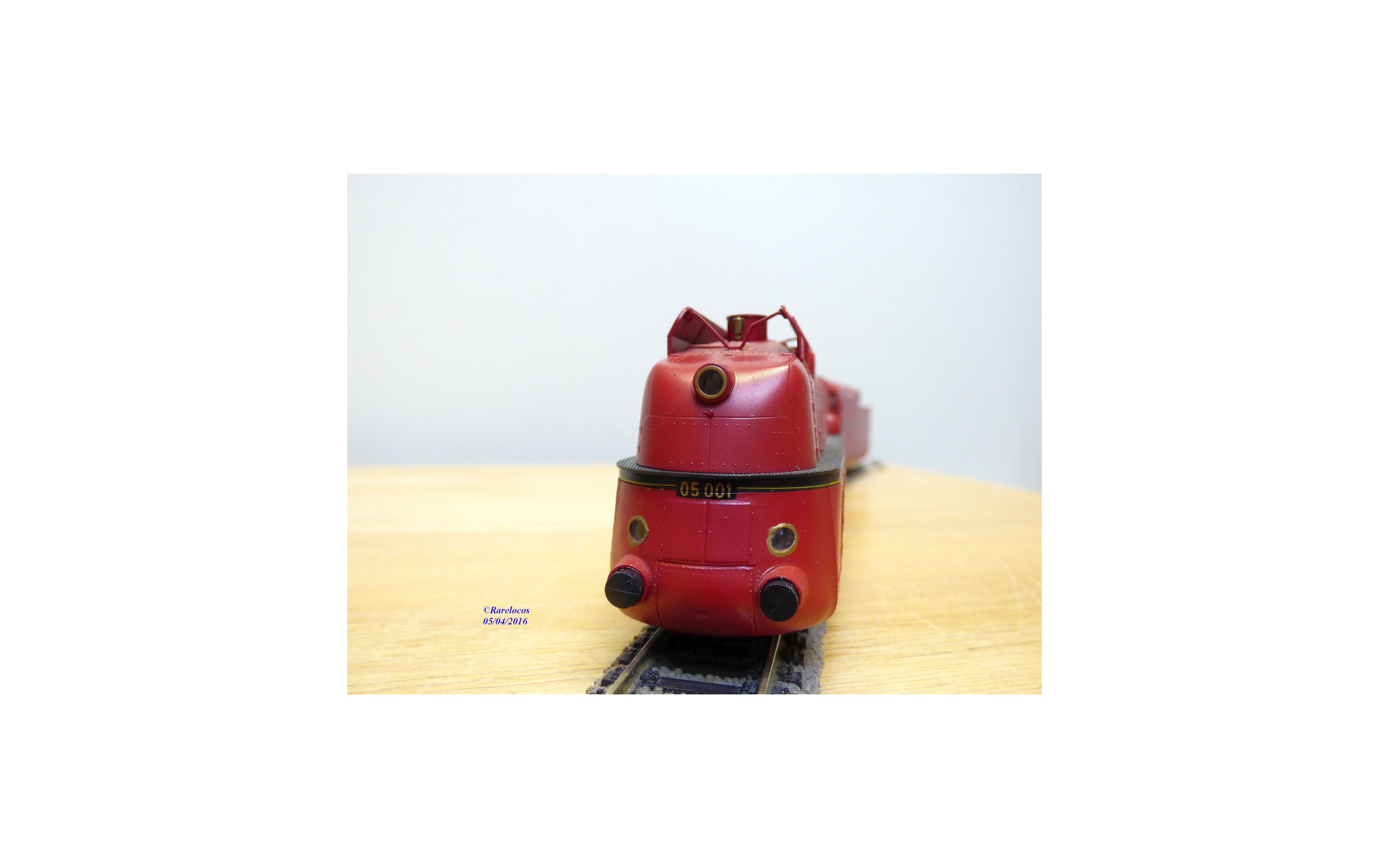 Locomotive 232 carénée série BR 05 des chemins de fer allemands ( DRG ), livrée lie de vin à bande noire et filets jaunes, immatriculation :05 001, emballage d'origine en excellent état.