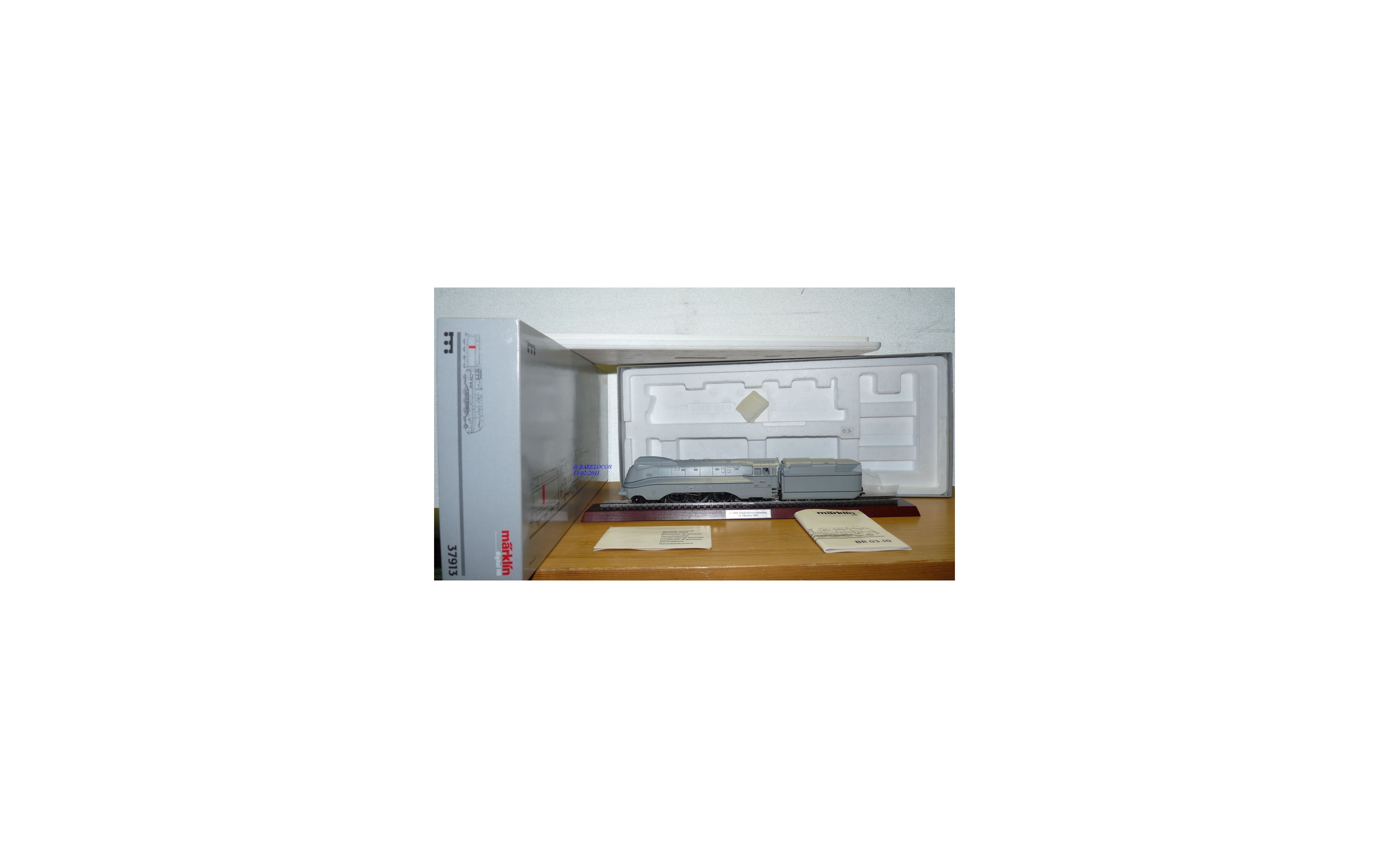 Locomotive à vapeur carénée Br 03 10 des chemins de fer allemands ( DRG ), livrée gris clair, loco en métal , tender en plastique, roues et embiellage brunis, digitale, immatriculation : 2002, voie de présentation avec plaque "6. MHI Mitgliederversammlung 11 Oktober 2002", notice présente, boîte d'origine en très bon état.
