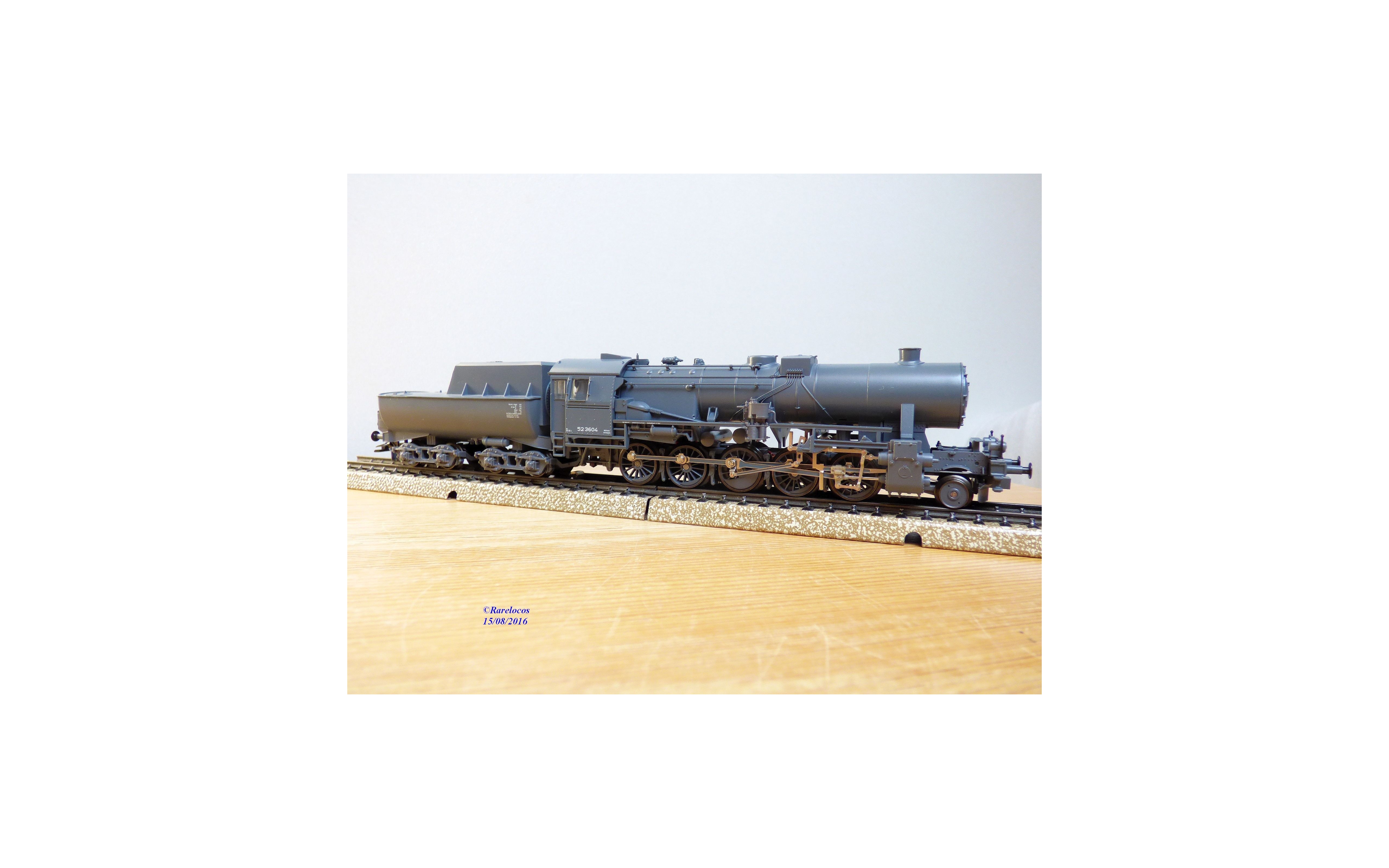 Locomotive 150 Decapod série Br 52 des chemins de fer allemands ( DRG ) , caisse loco en métal, tender baignoire en plastique, livrée grise ( sortie d' usine ), système Delta, attelages à élongation, immatriculation : 52 3604, notice présente, boîte d'origine en bon état .