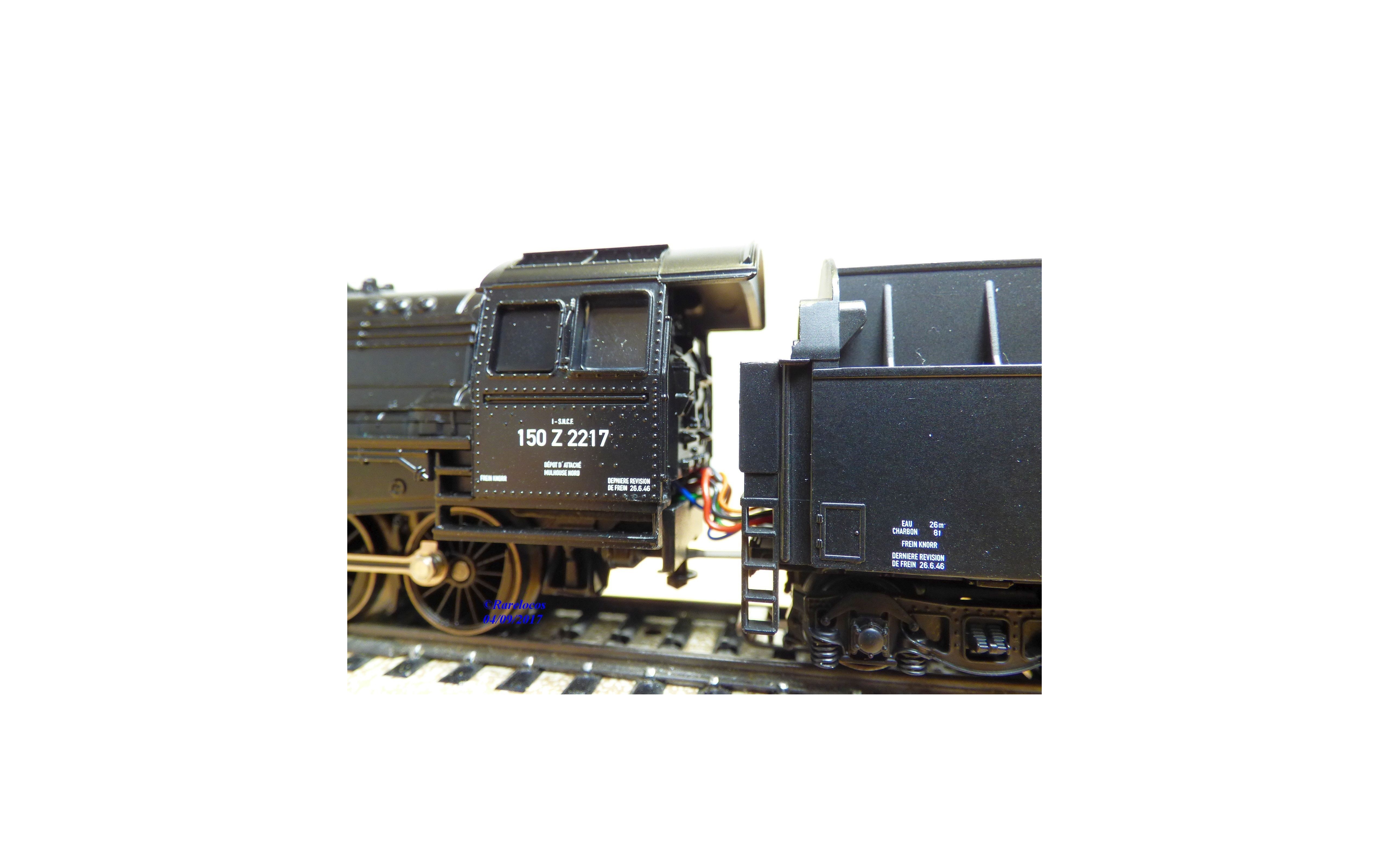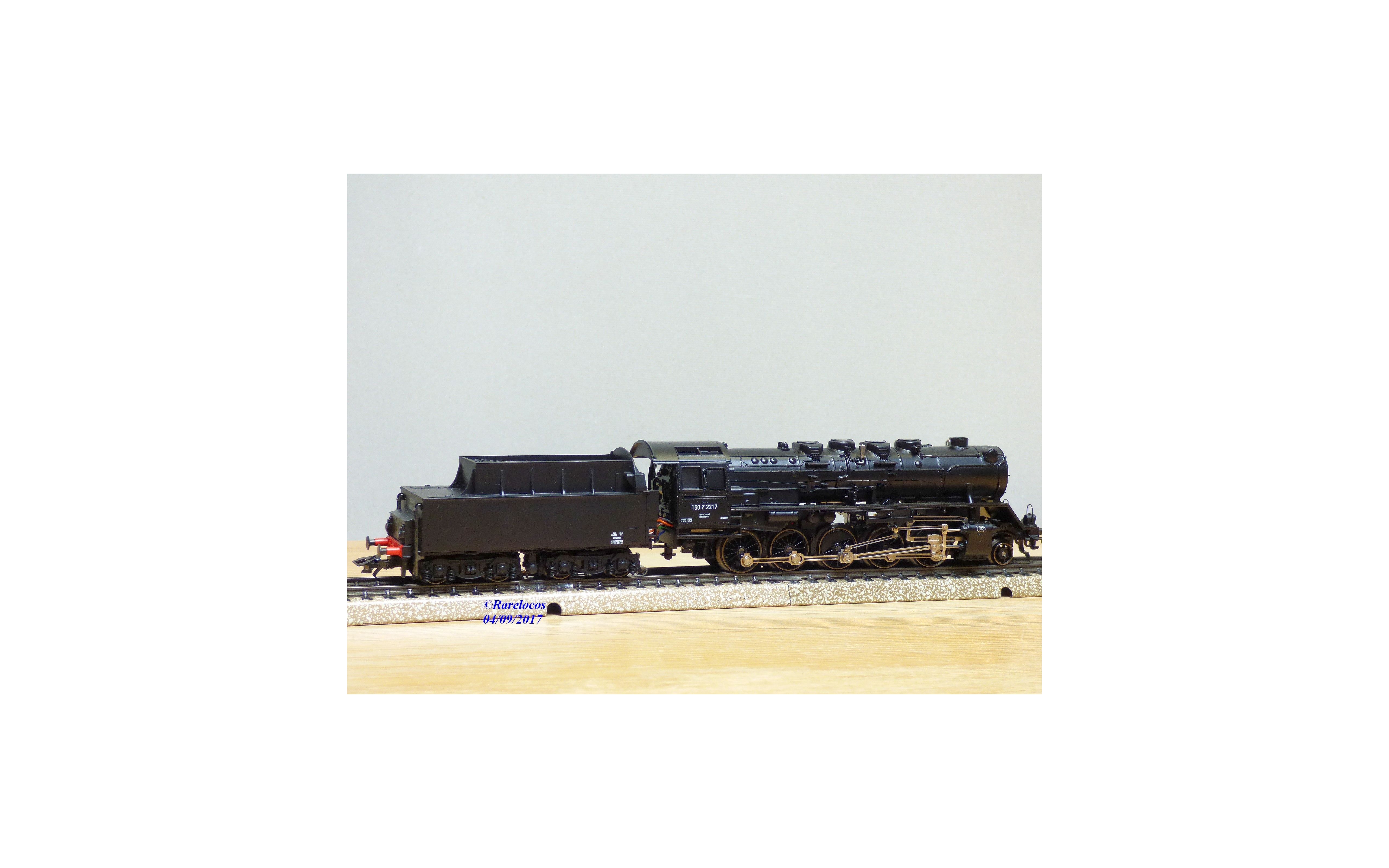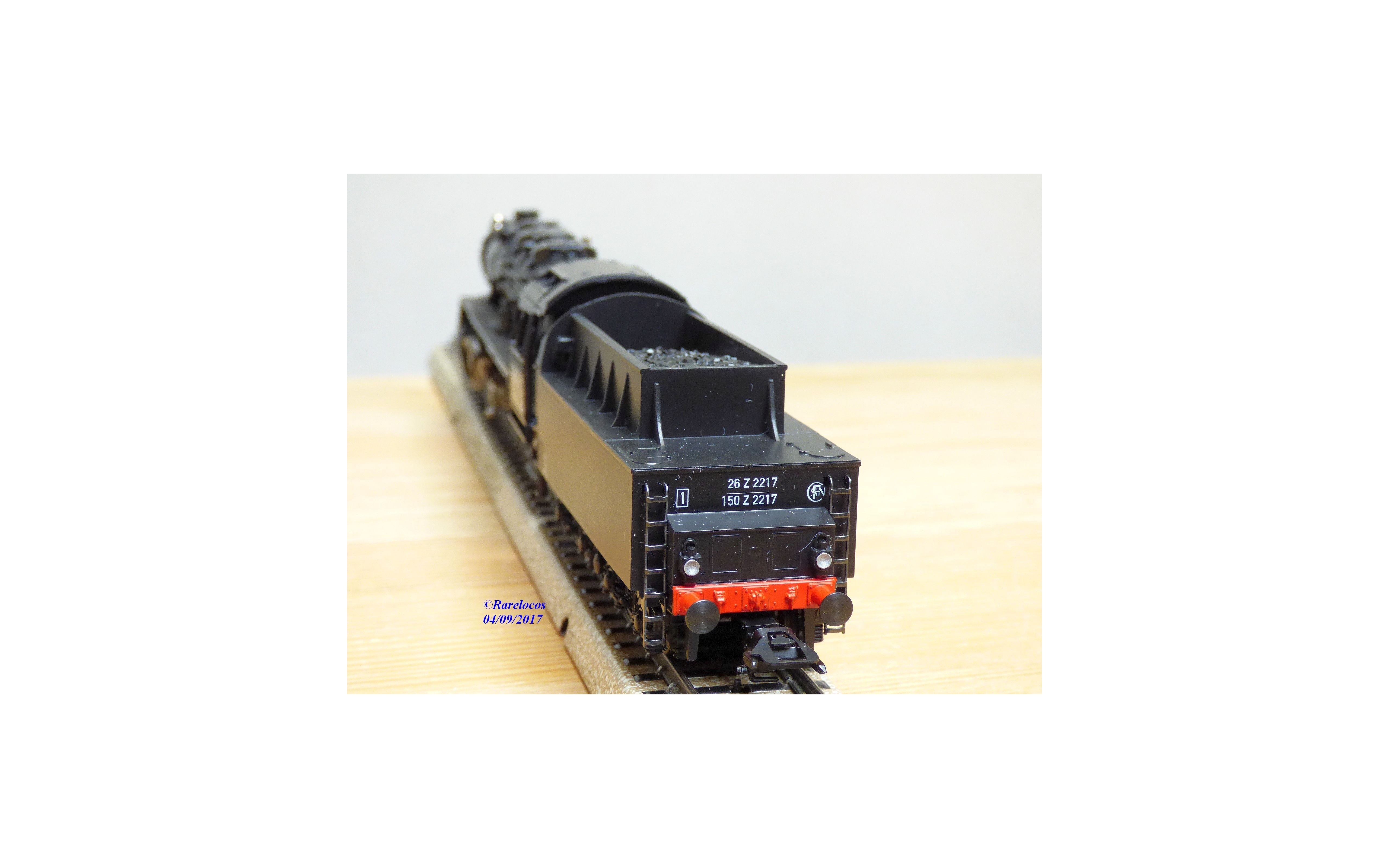 Locomotive Decapod série 150 Z ( ex Br 50 DR ) des chemins de fer français ( SNCF ), livrée noire, loco en métal, tender en plastique, immatriculation: 150 Z 2217 du dépôt de Mulhouse Nord, notice présente, boîte d'origine en très bon état