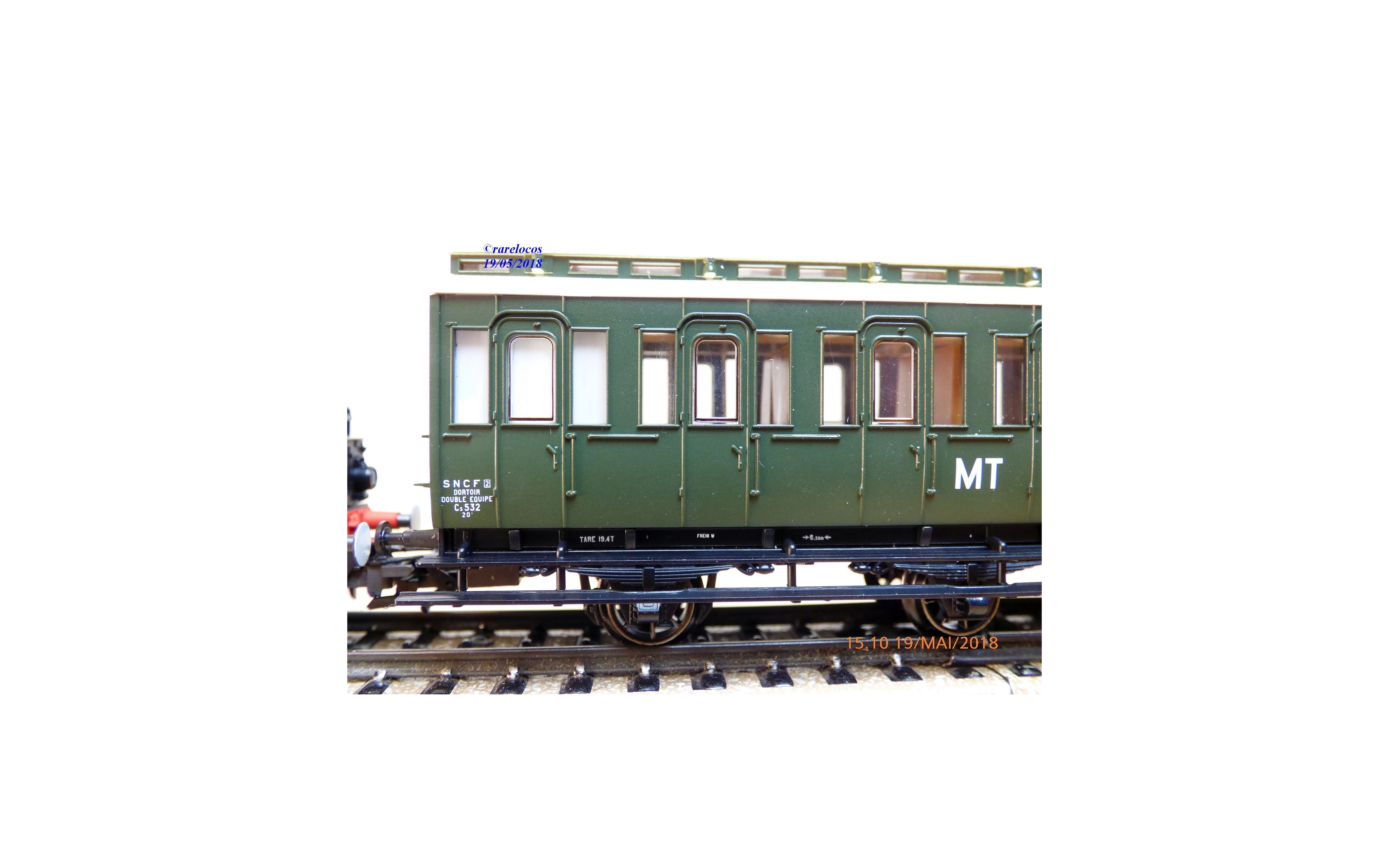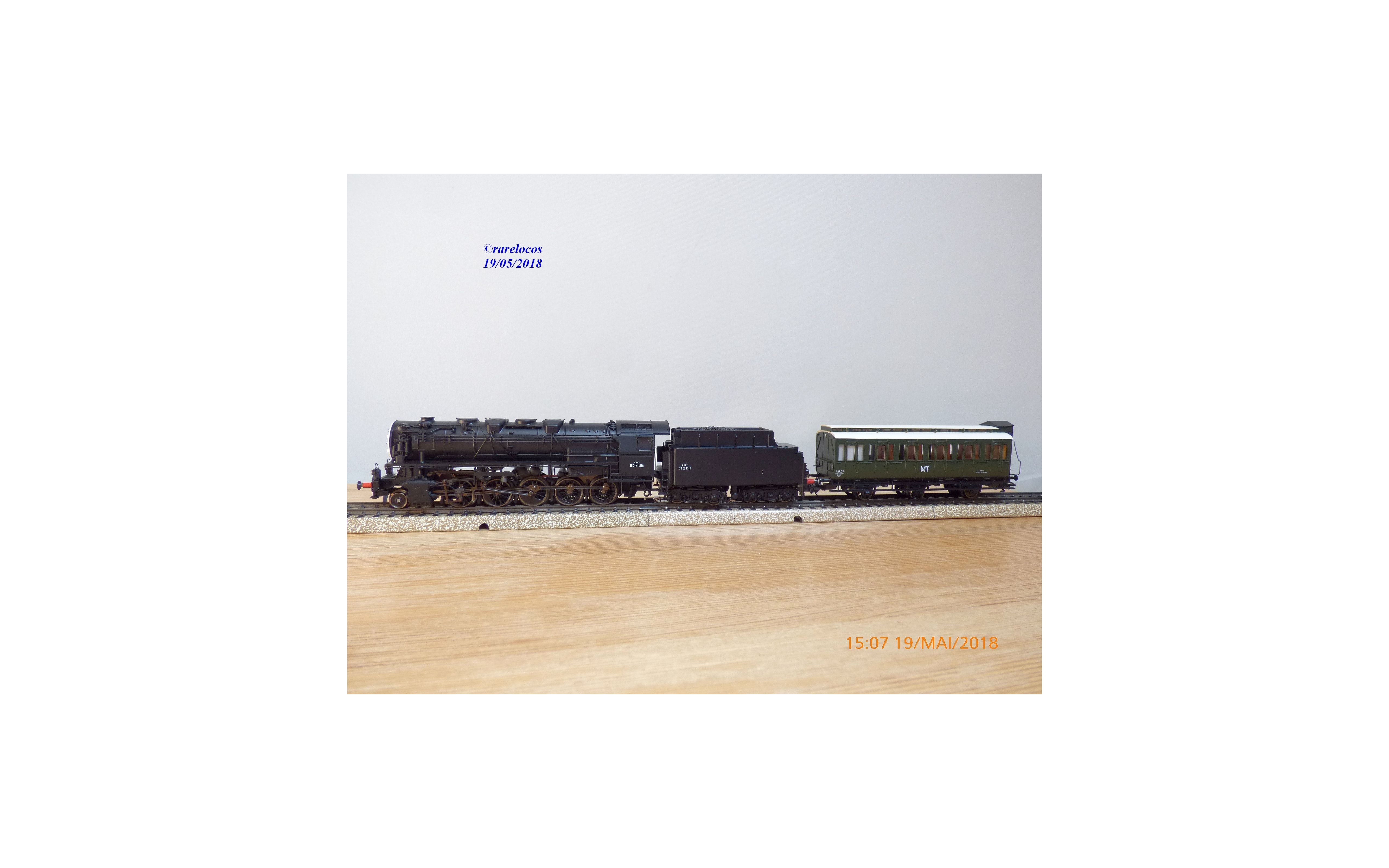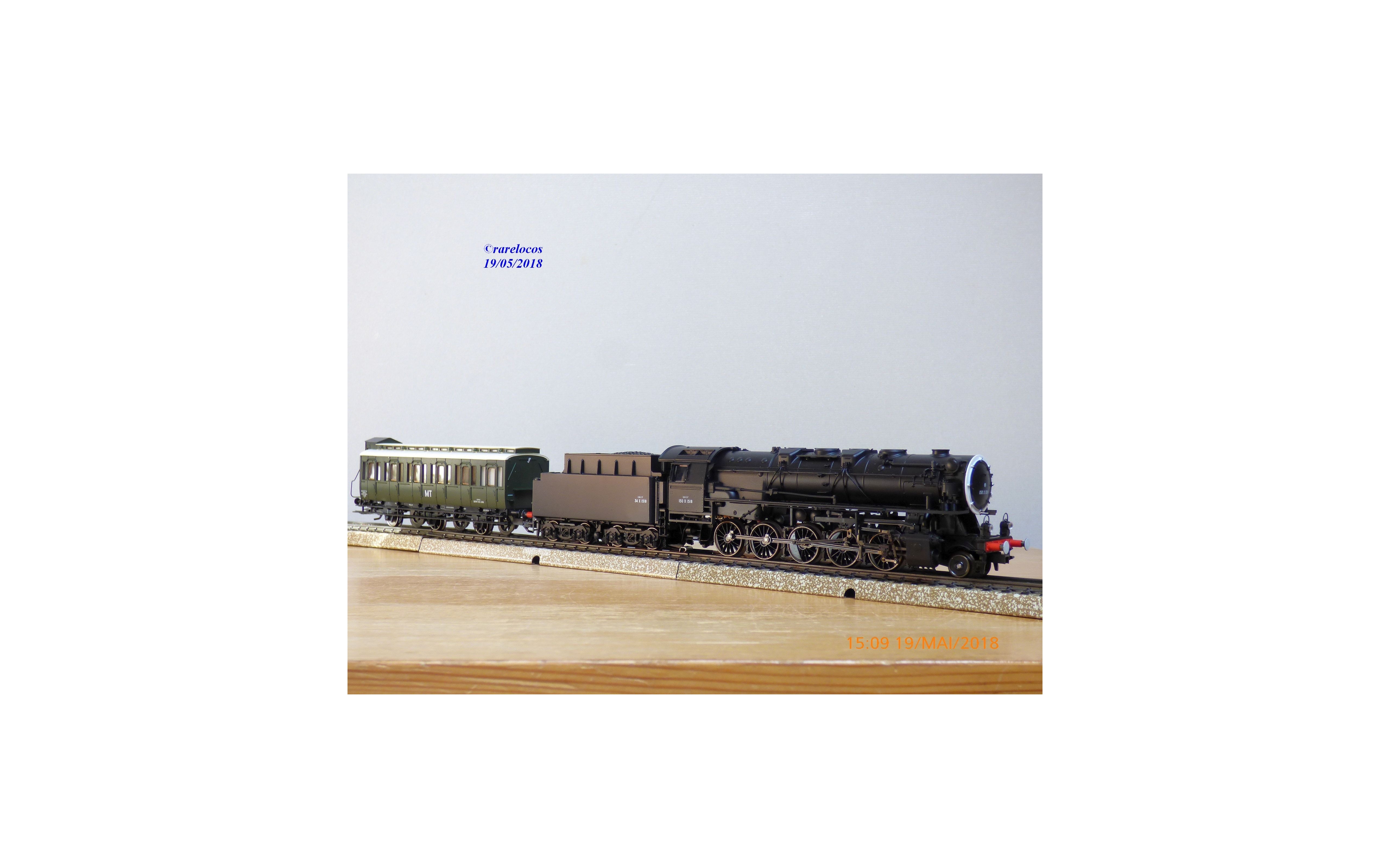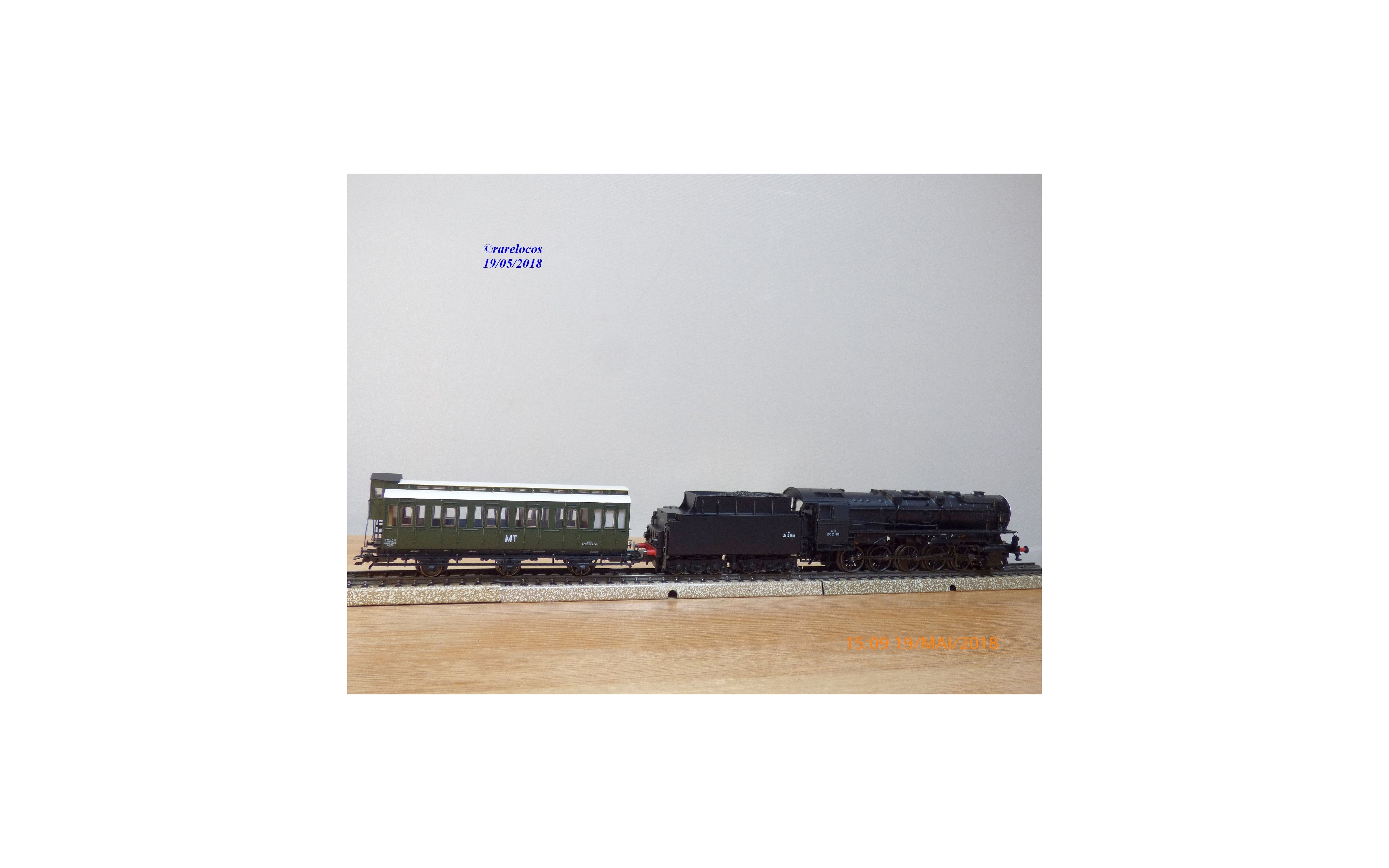 Coffret comprenant une locomotive Decapod série 150 X ( ex Br 44 DR ) des chemins de fer français ( SNCF ), livrée noire, loco en métal, tender en plastique, mfx digitale, immatriculation: 150 X 1518, et une voiture dortoir à 3 essieux type C5 avec marquages MT, boîte d'origine en excellent état.
