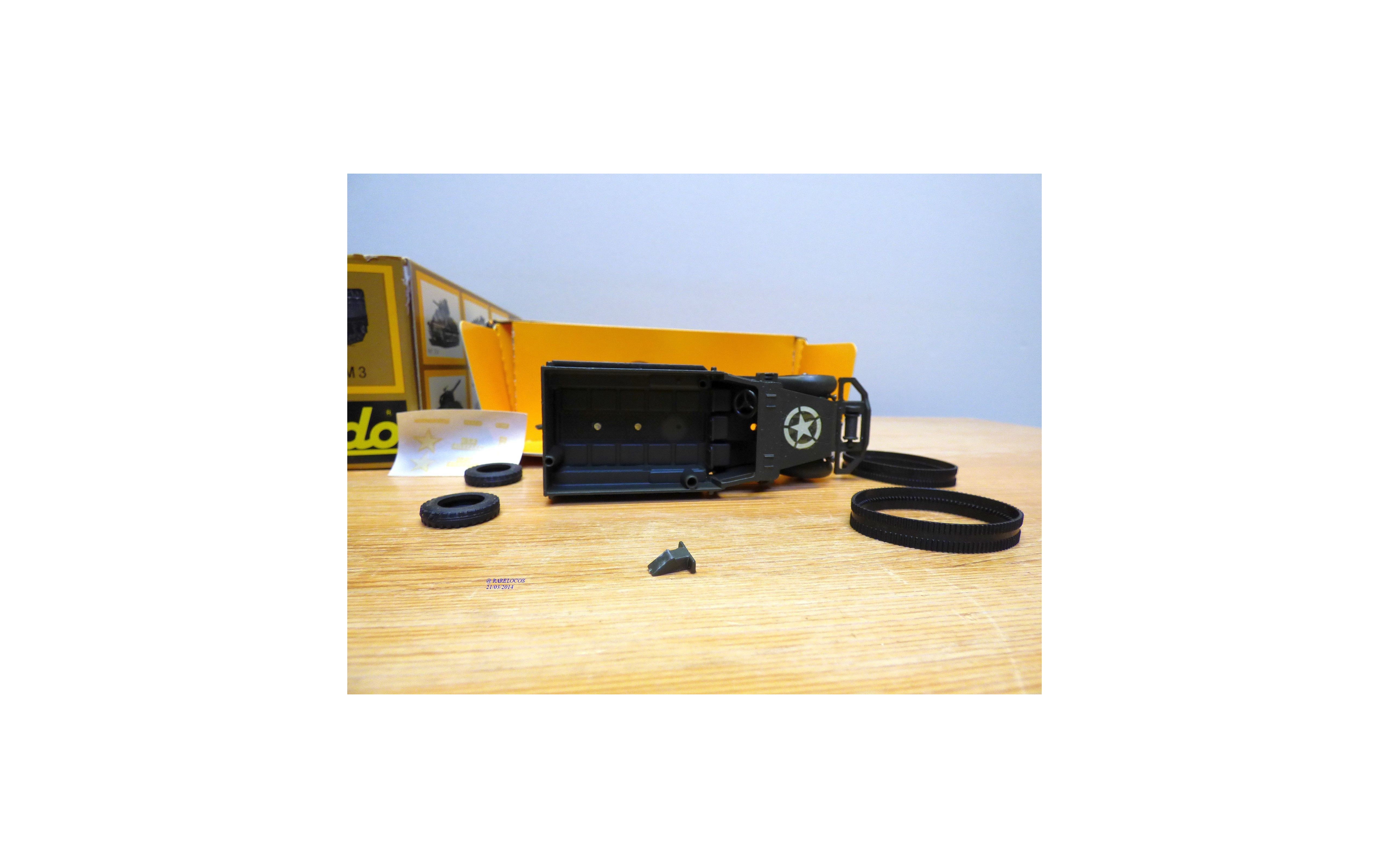 Modèle réduit à l'échelle 1/50 ème du célçbre half track américain type M3 A1, décalcomanies intactes, boîte d'origine en état moyen .