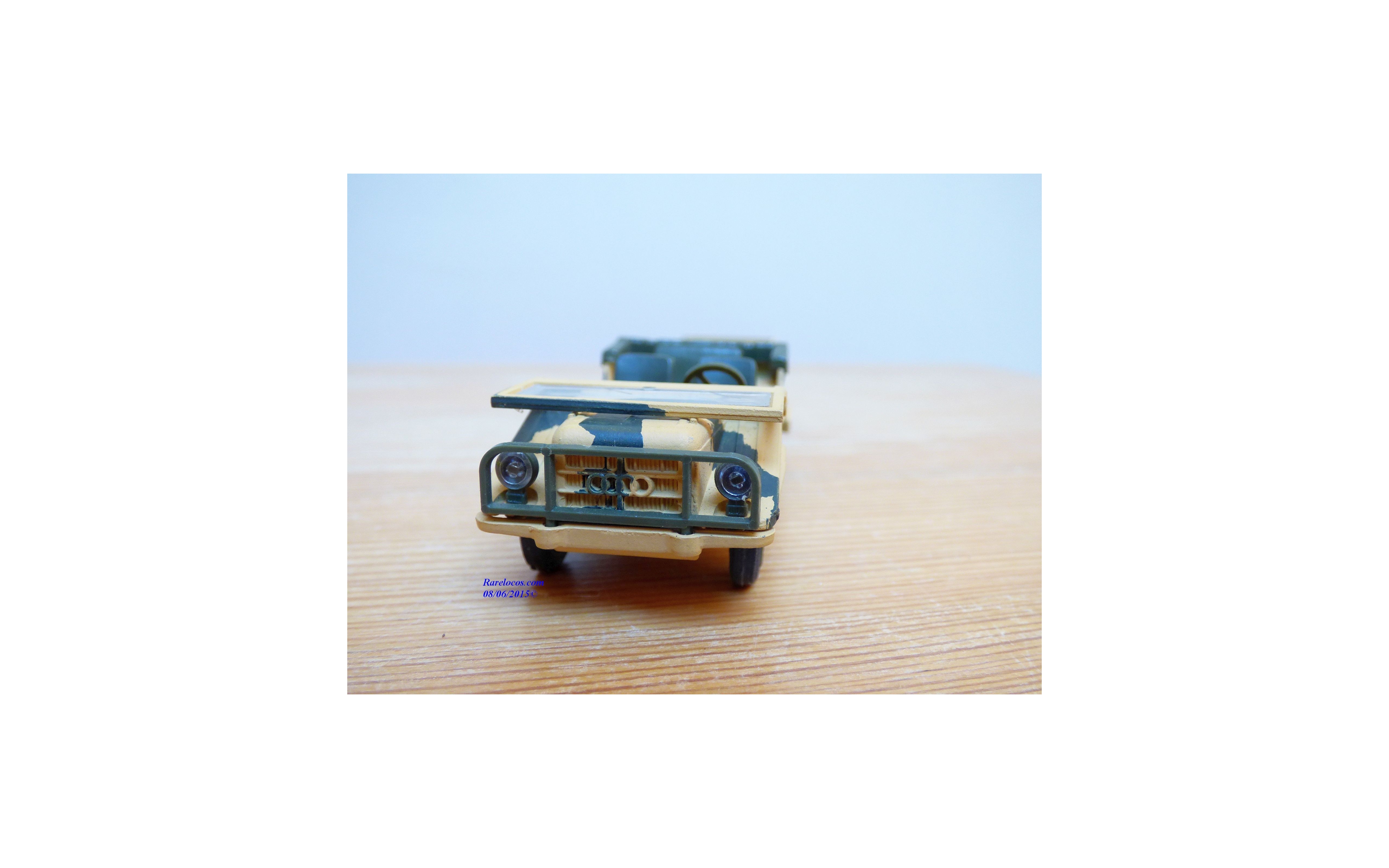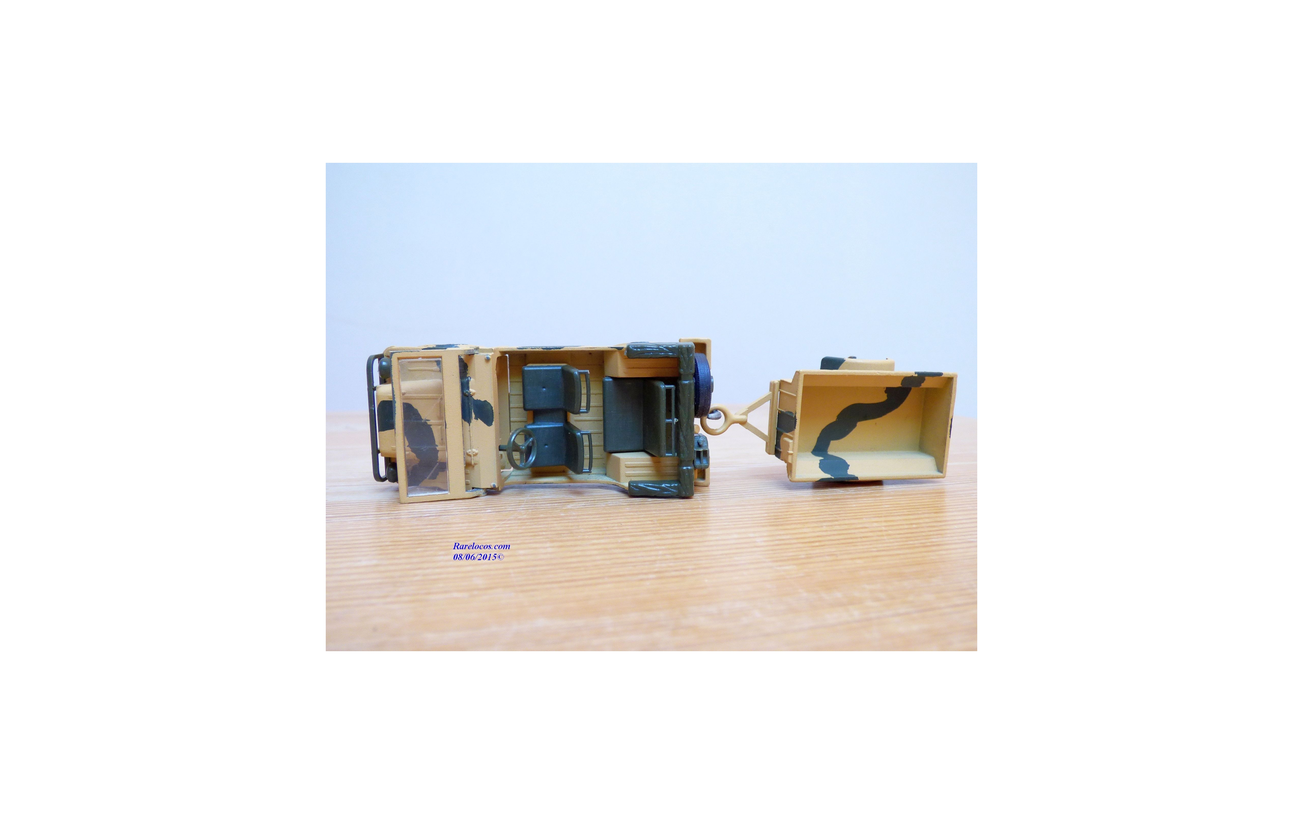 Modèle réduit à l'échelle 1/50 ème de la Jeep Mercedes vendue sous la marque Peugeot, c'était en fait un petit véhicule tout terrain conçu par DKW ( Auto Union ) et vendu sous le nom de Munga, et d'une remorque, livrée camouflage, boîte d'origine ( pas la bonne référence) en état moyen .
