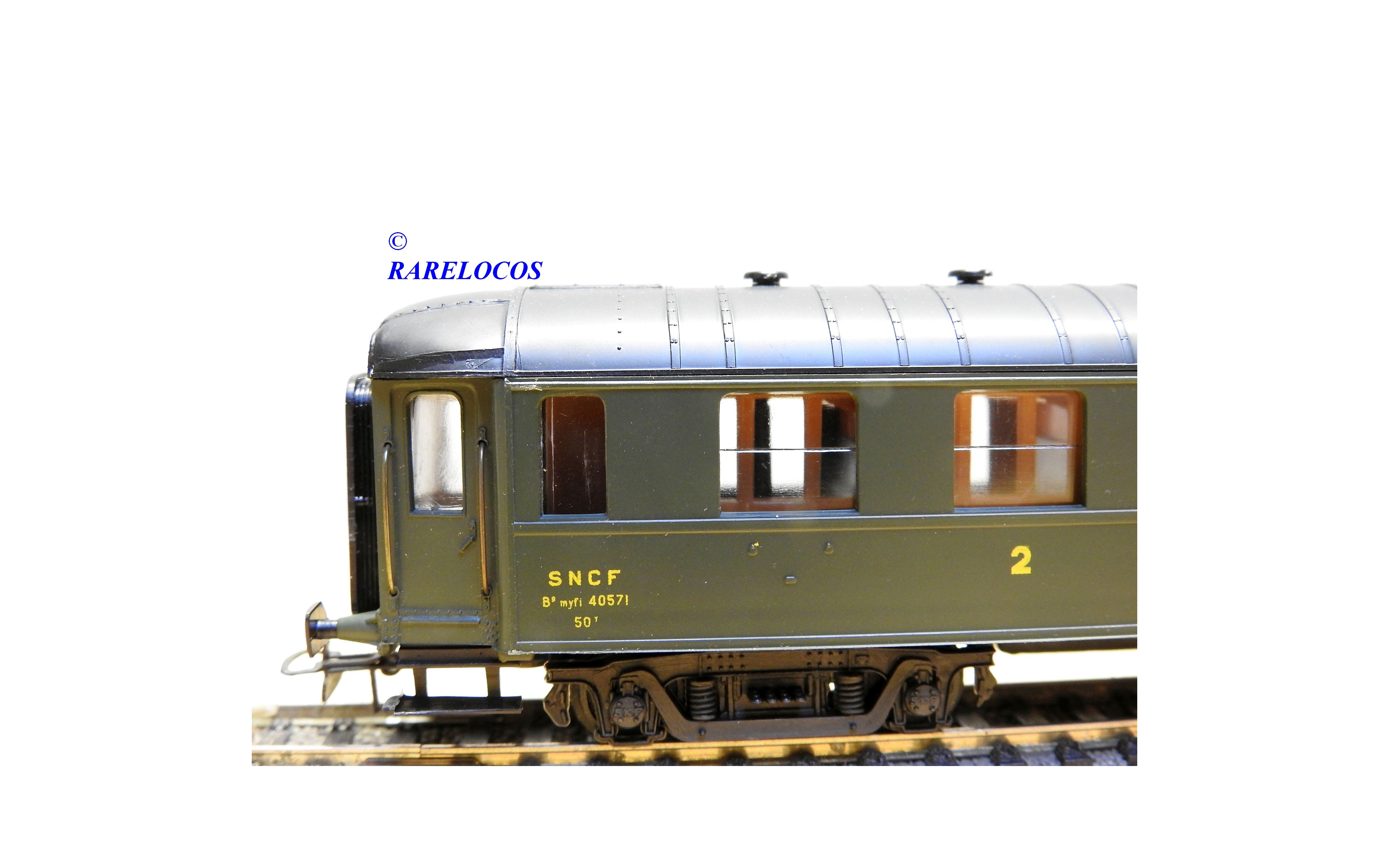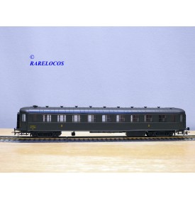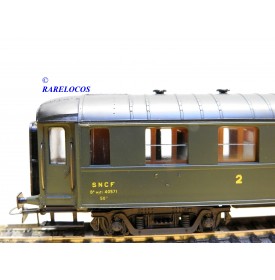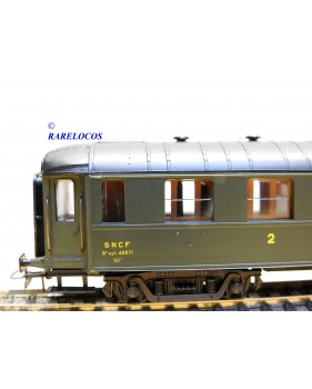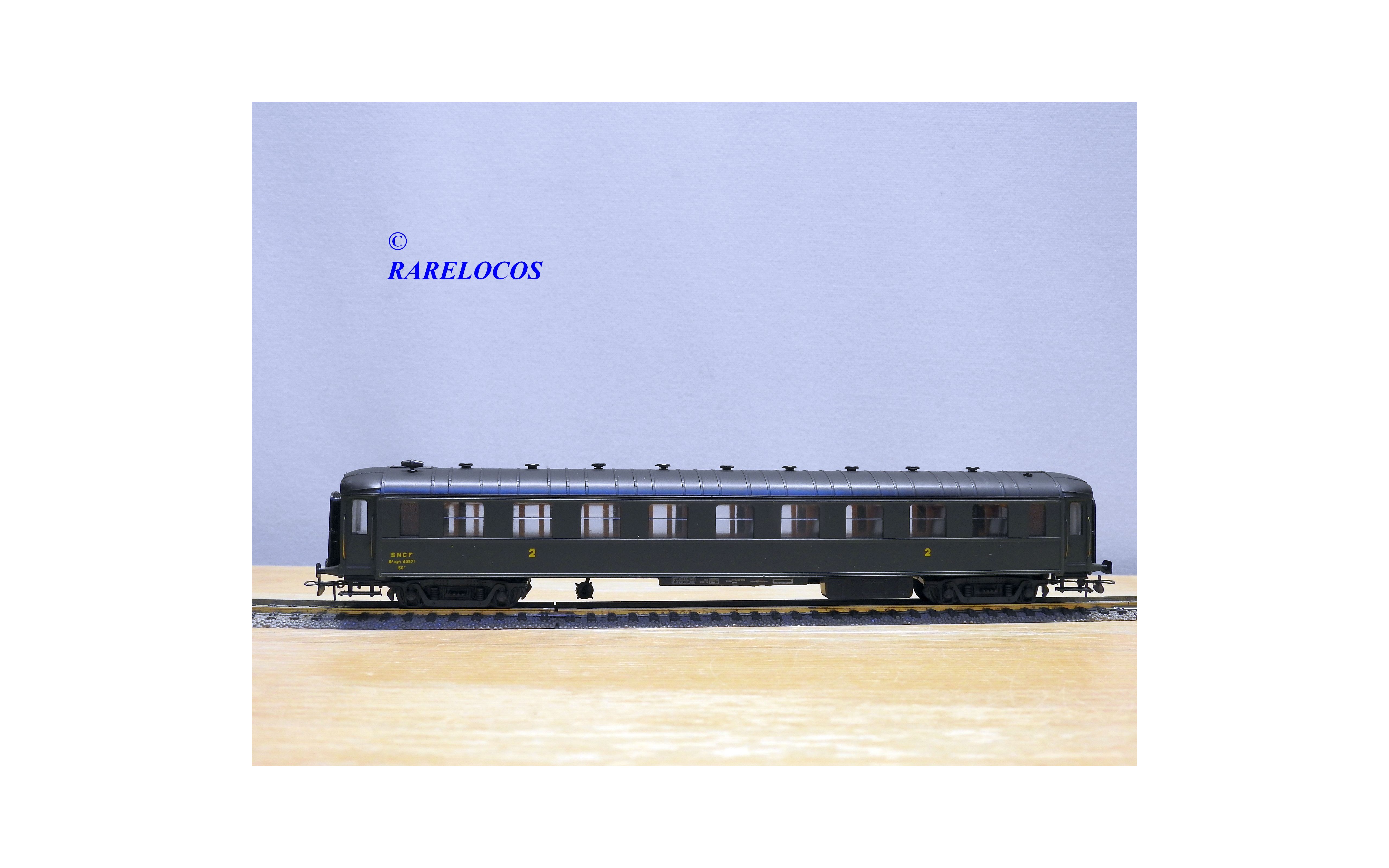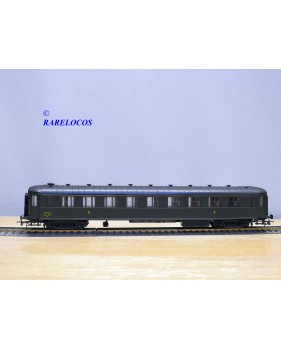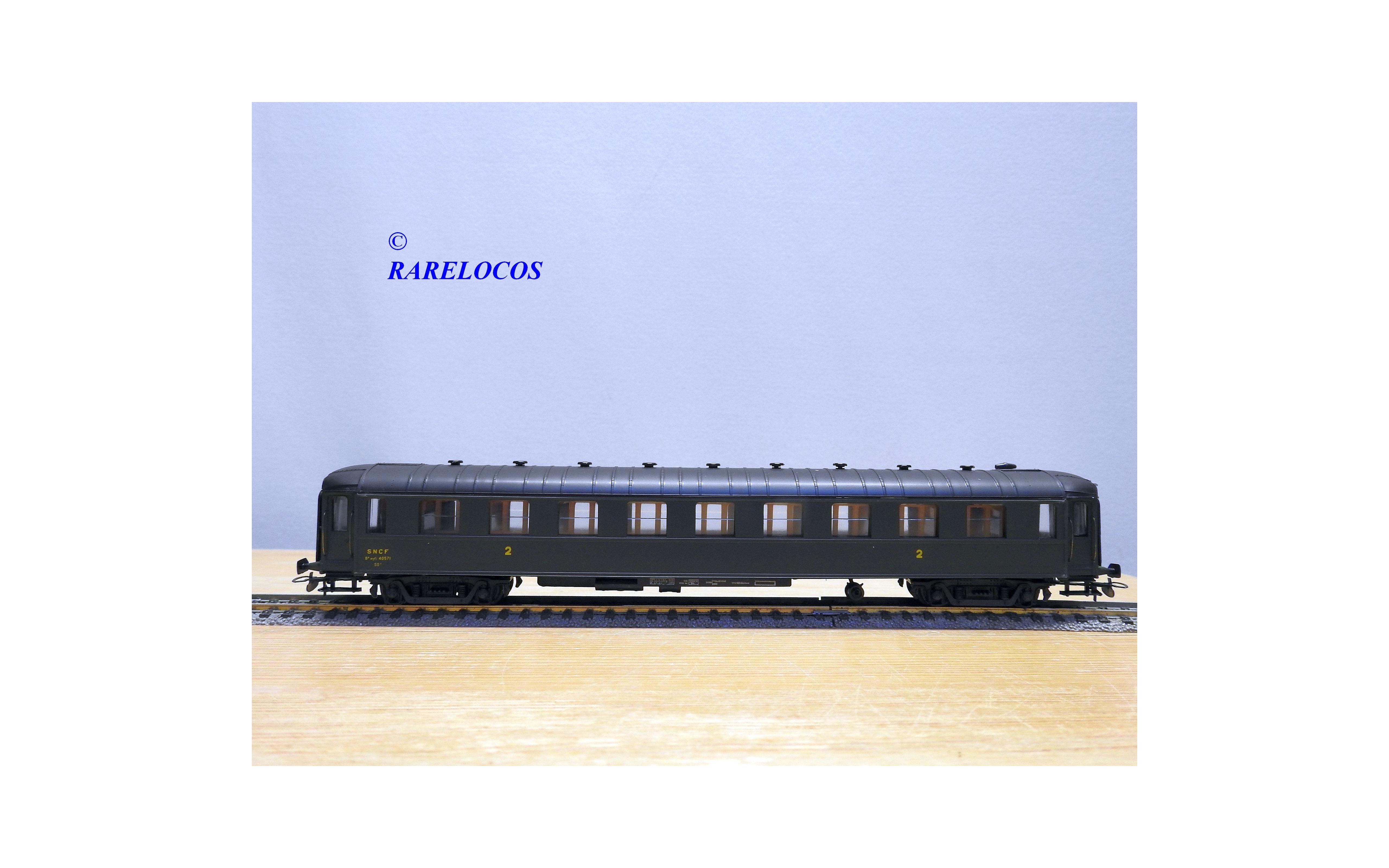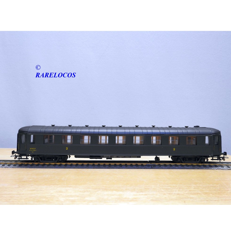 Voiture grandes lignes à bogies OCEM à flancs lisses de 2 ème classe type B 9 des chemins de fer français (SNCF ) , livrée vert SNCF à toit noir, aménagements intérieurs, immatriculation: B 9 myfi 40571, boîte d'origine en excellent état.