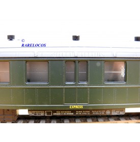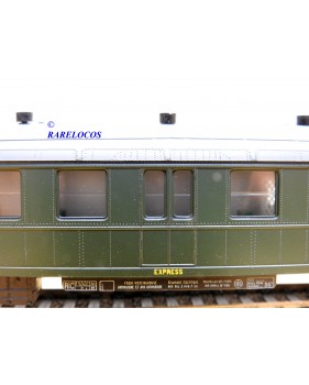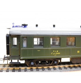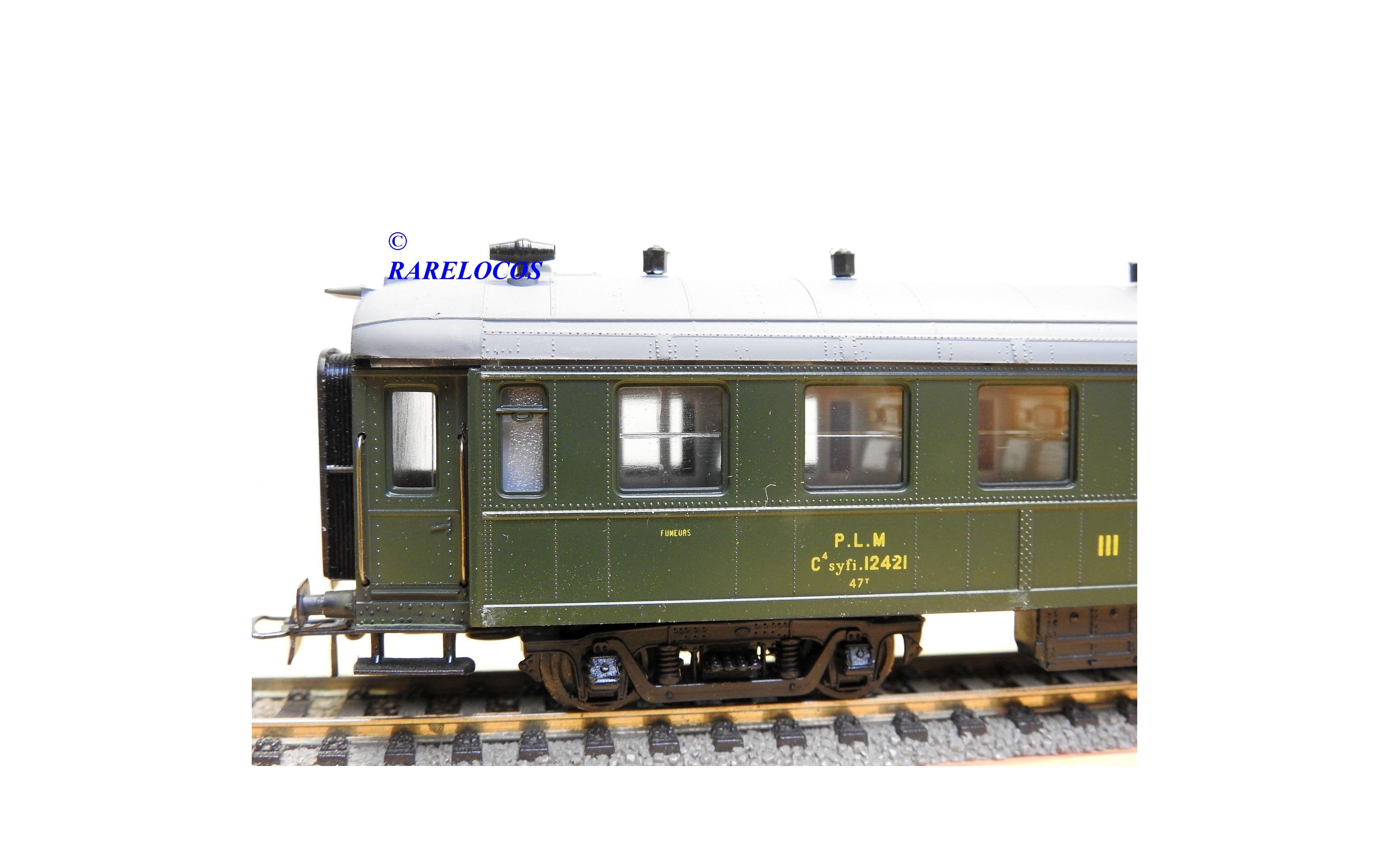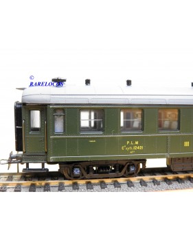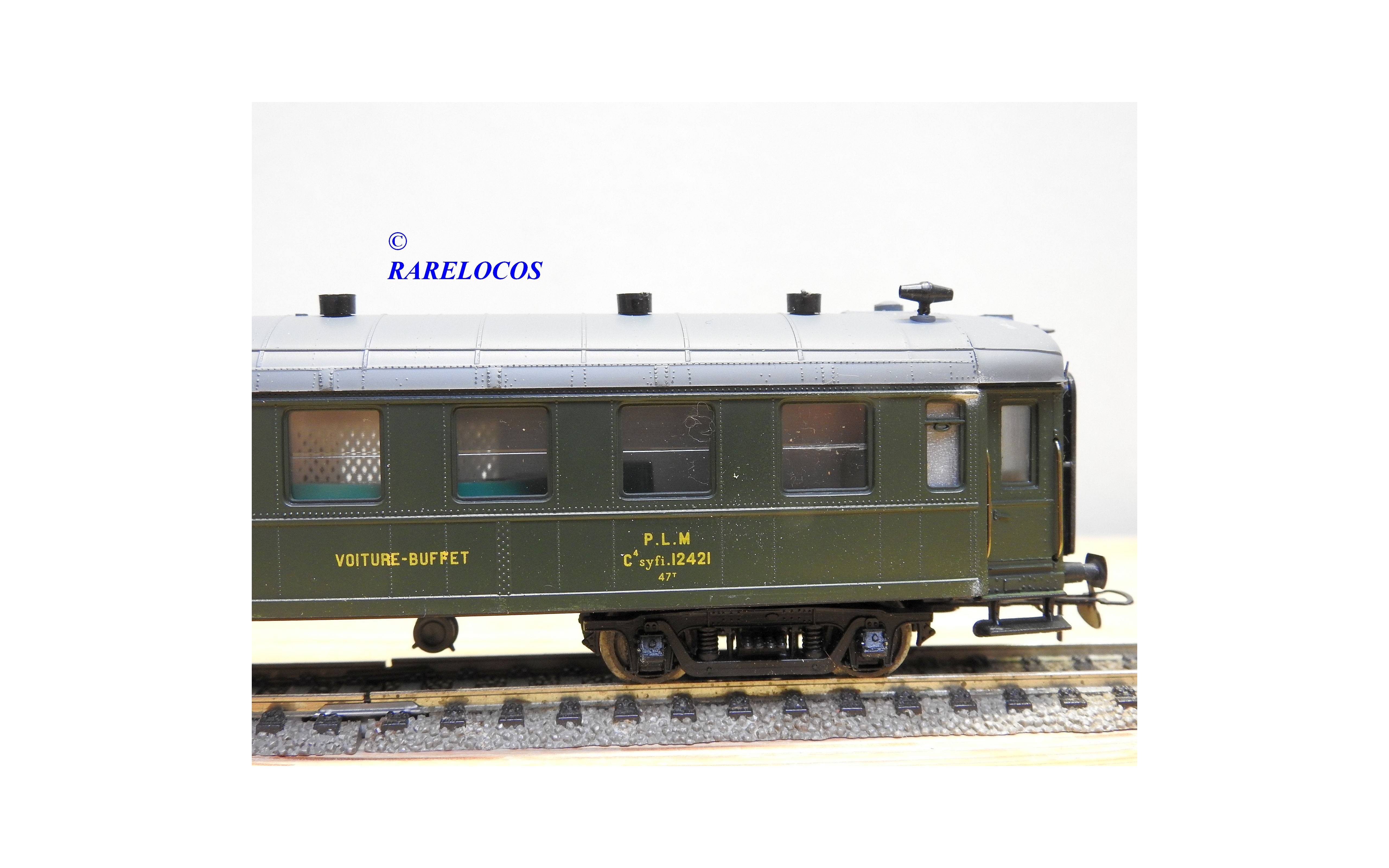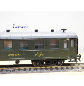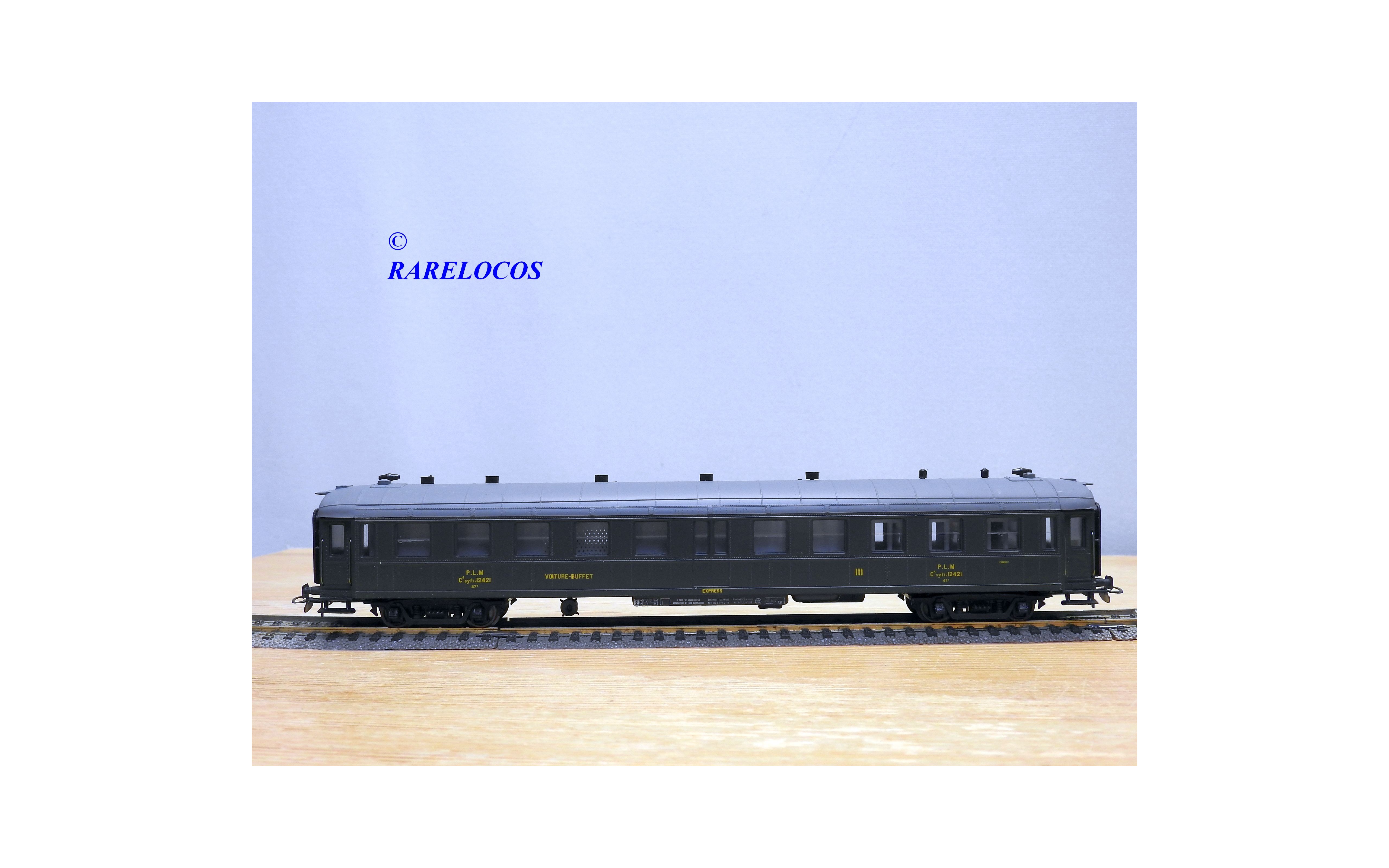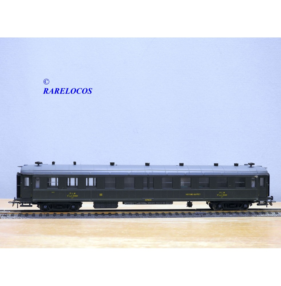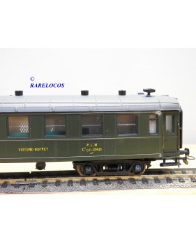 Très rare voiture buffet grandes lignes à bogies DYLE et BACALAN à rivets type C4 des chemins de fer français ( PLM : Paris Lyon Méditerrannée ) , livrée verte à toit gris, aménagements intérieurs, immatriculation: C4 syfi.12421, boîte d'origine en excellent état.