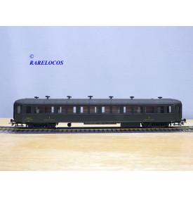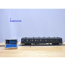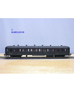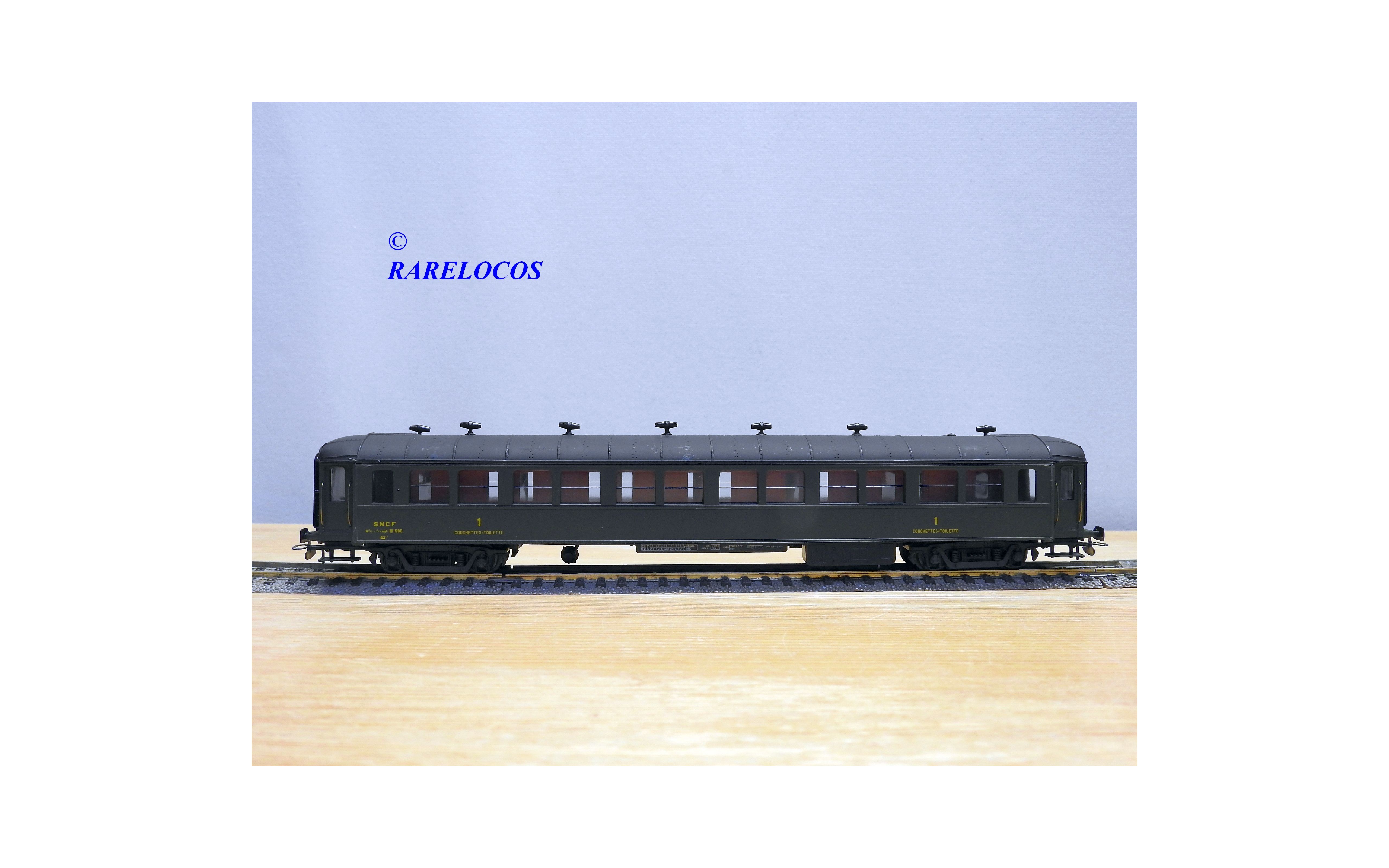 Rare voiture grandes lignes à bogies OCEM Couchettes-Toilette à flancs lisses de 1 ère classe type A 12/2 c 12/2 des chemins de fer français (SNCF ) , livrée vert SNCF à toit noir, aménagements intérieurs, immatriculation: A 12/2 c 12/2 myfi 580, boîte d'origine en excellent état.