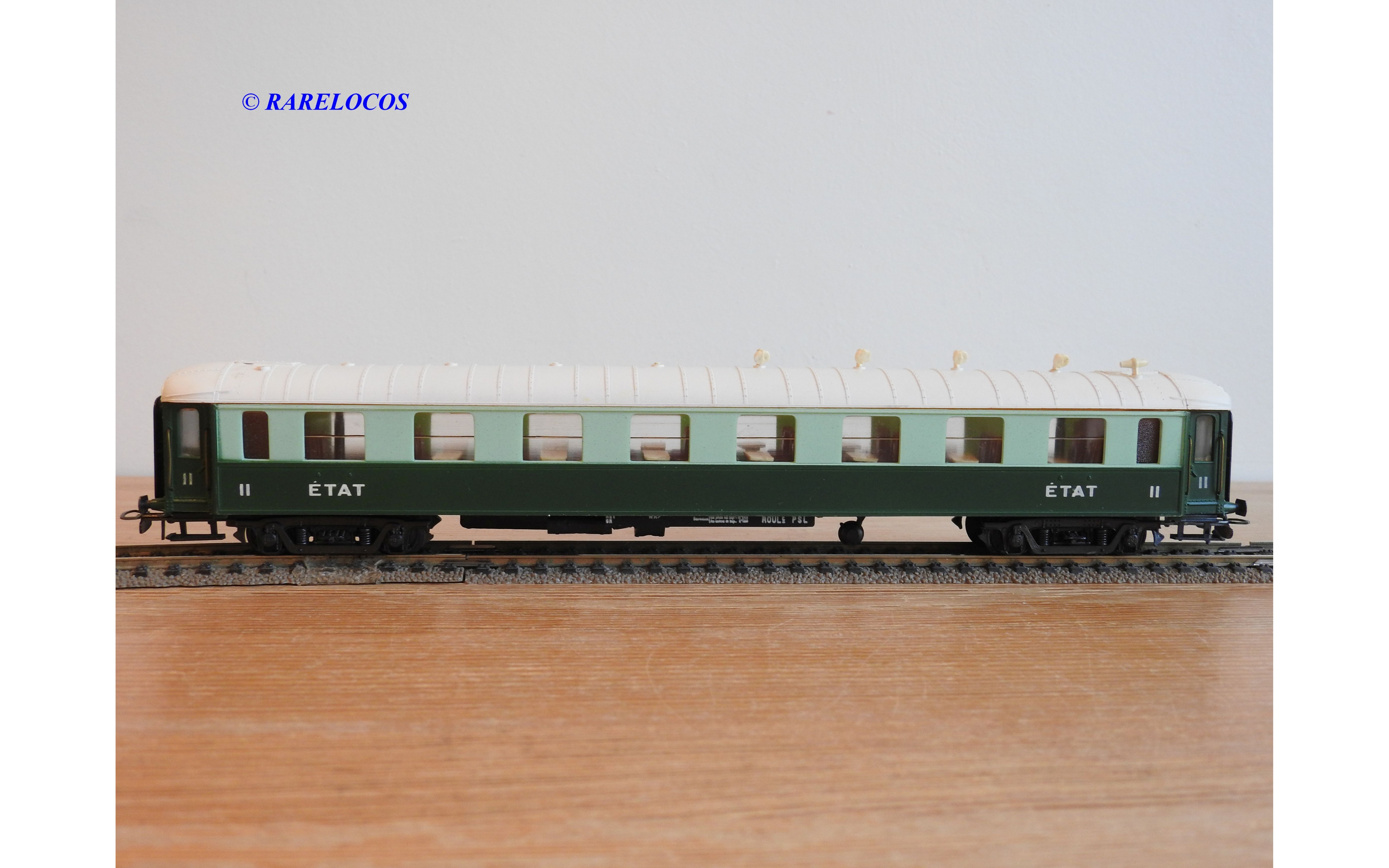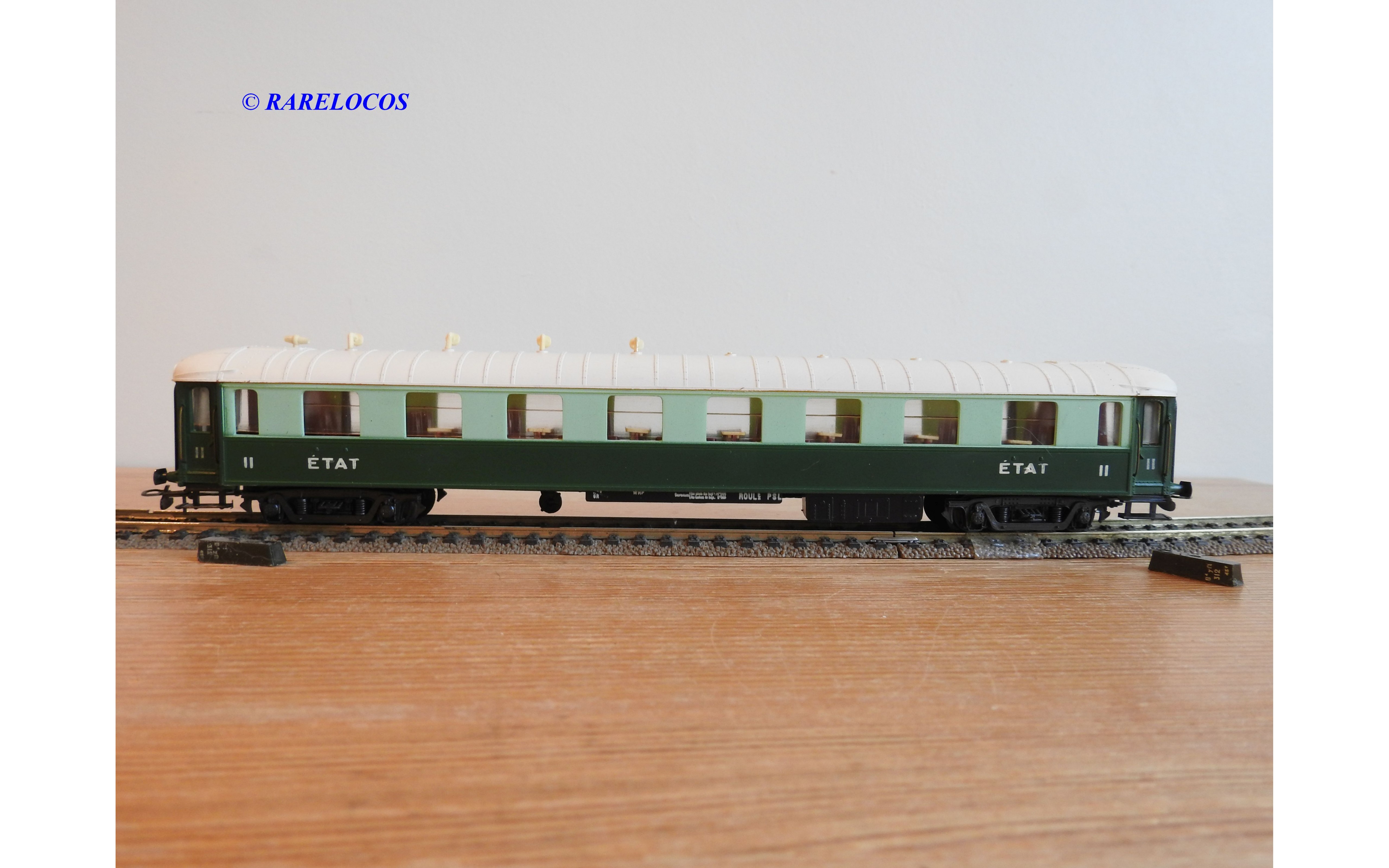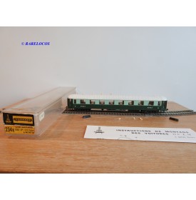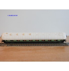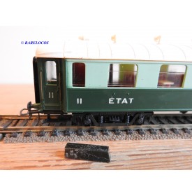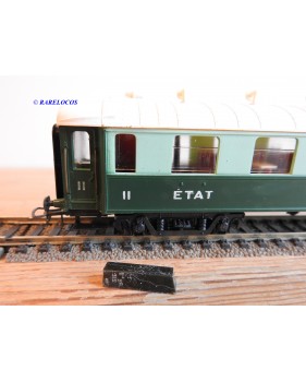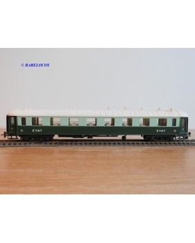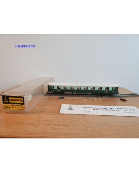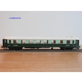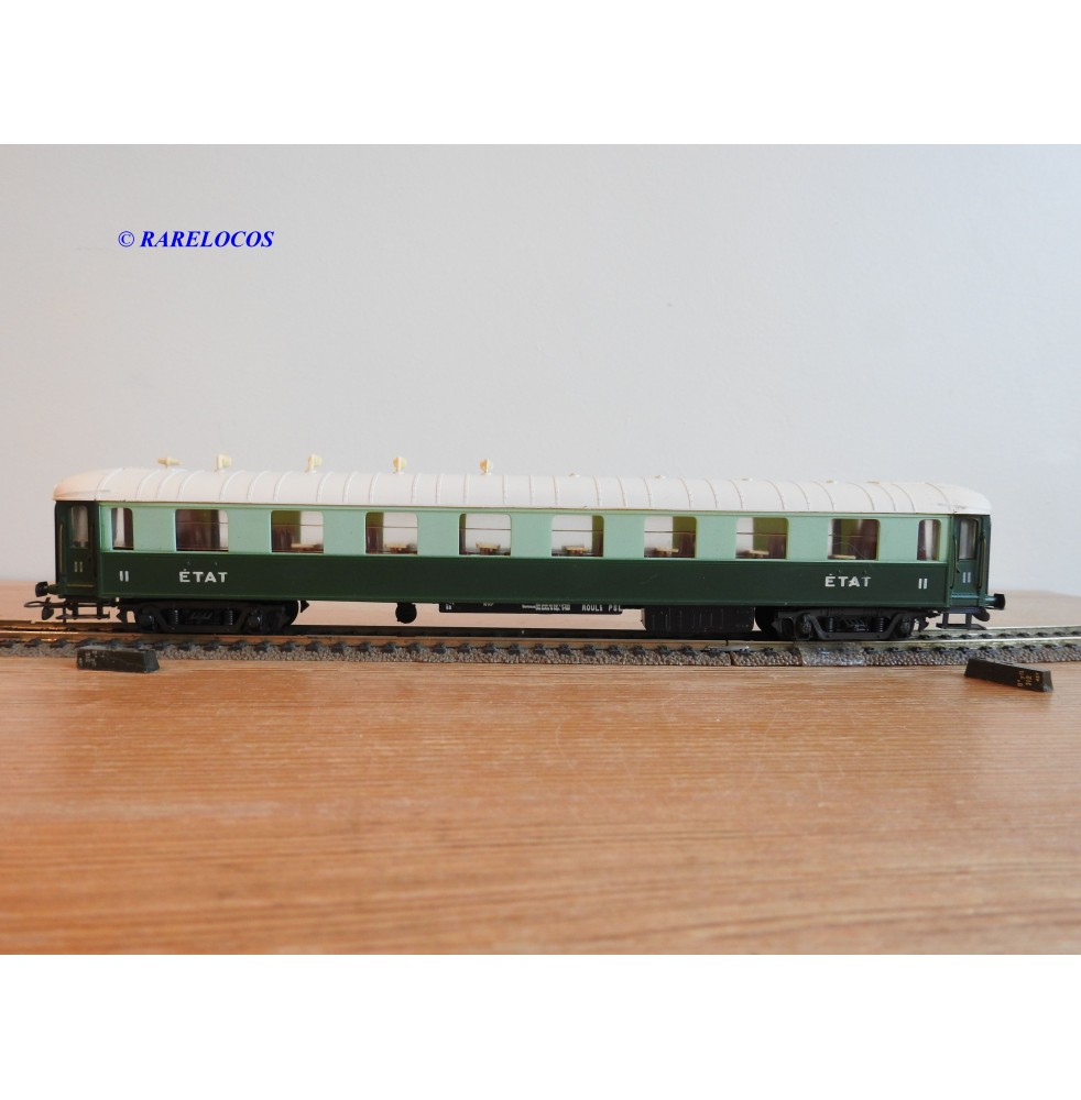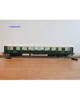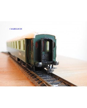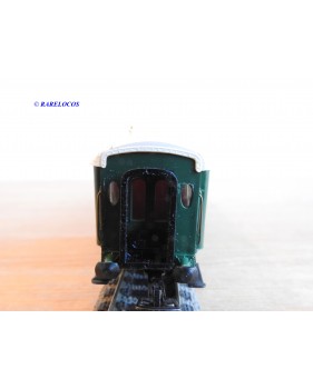 Voiture salon de 2 ème classe à bogies type B4 dite Transatlantique des chemins de fer français ( ETAT ), livrée en 2 tons de vert à toit blanc, aménagements intérieur, immatriculation : B4 yfi 312, notice présente, boîtte d'origine en bon état.