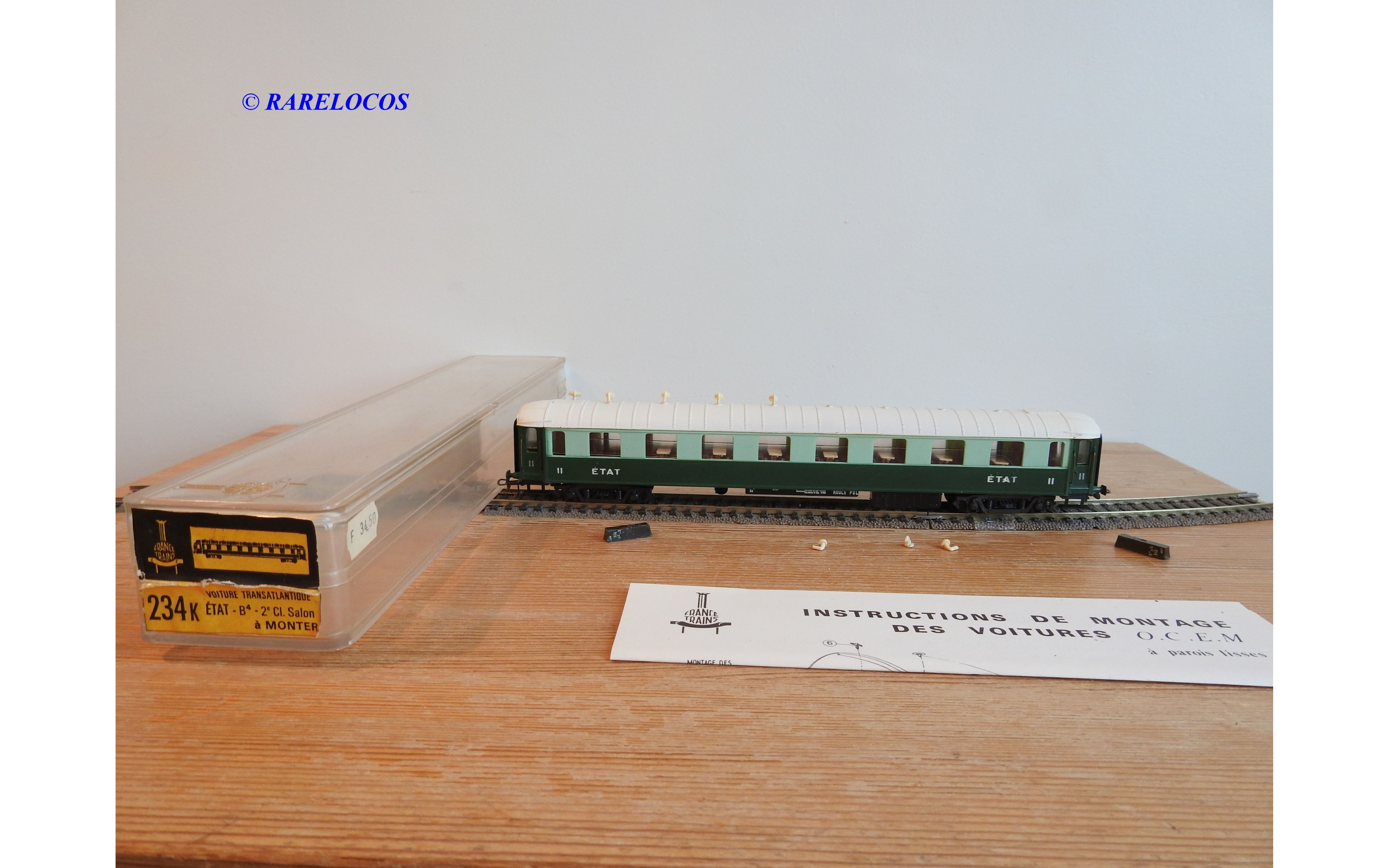 France Trains 234 K , voiture salon Transatlantique type B4 2 Cl. ETAT BO (Ref: #234 K)