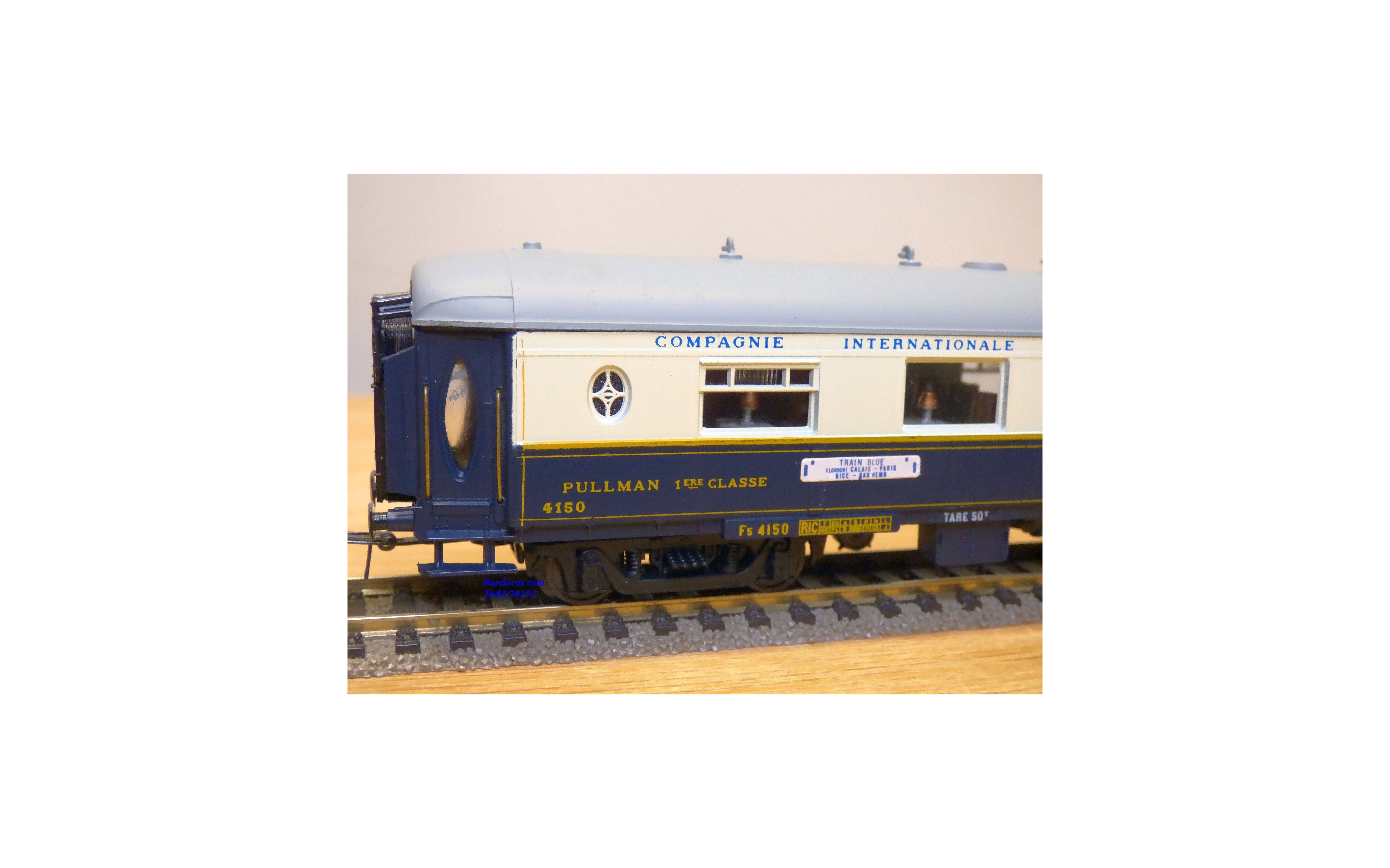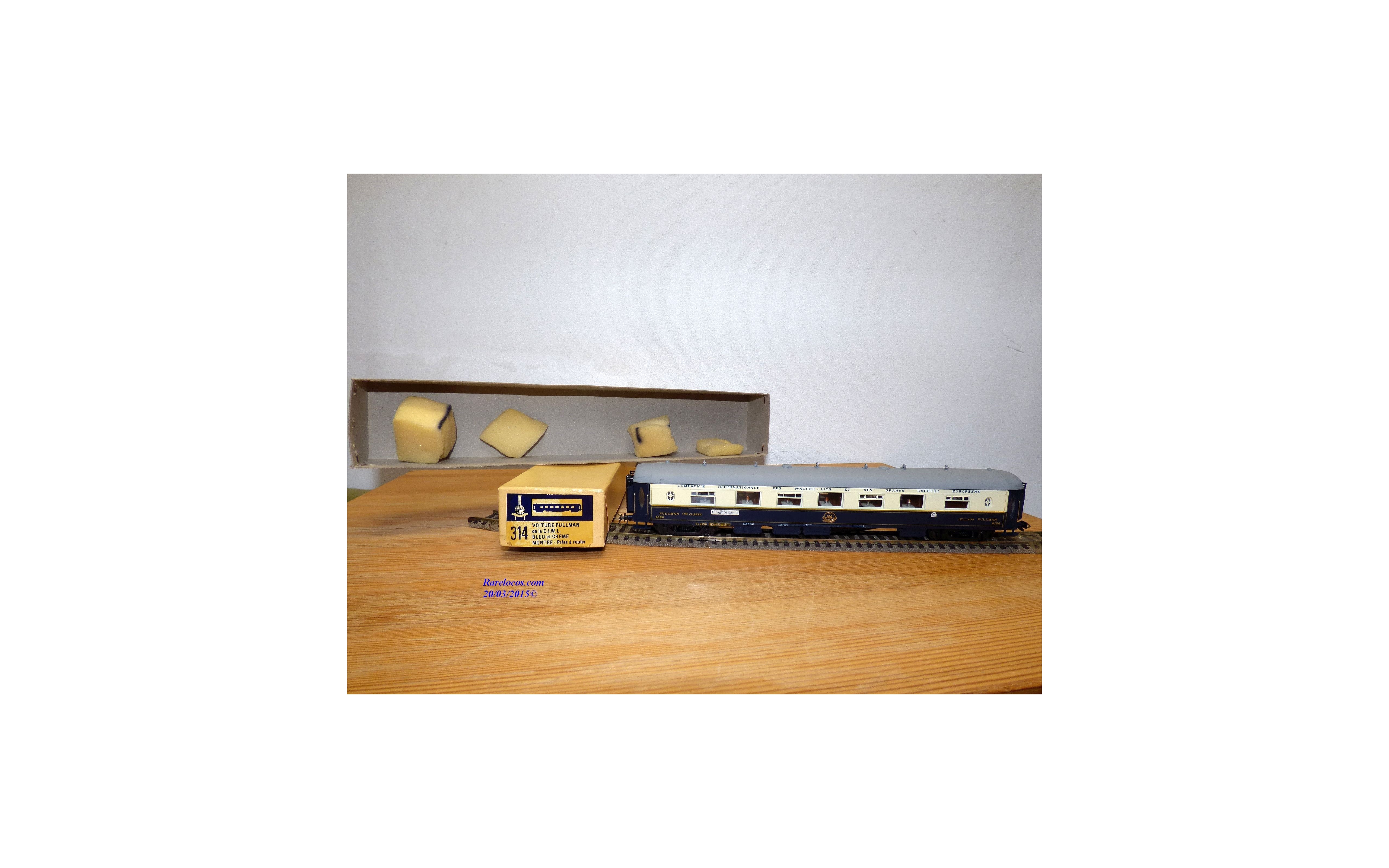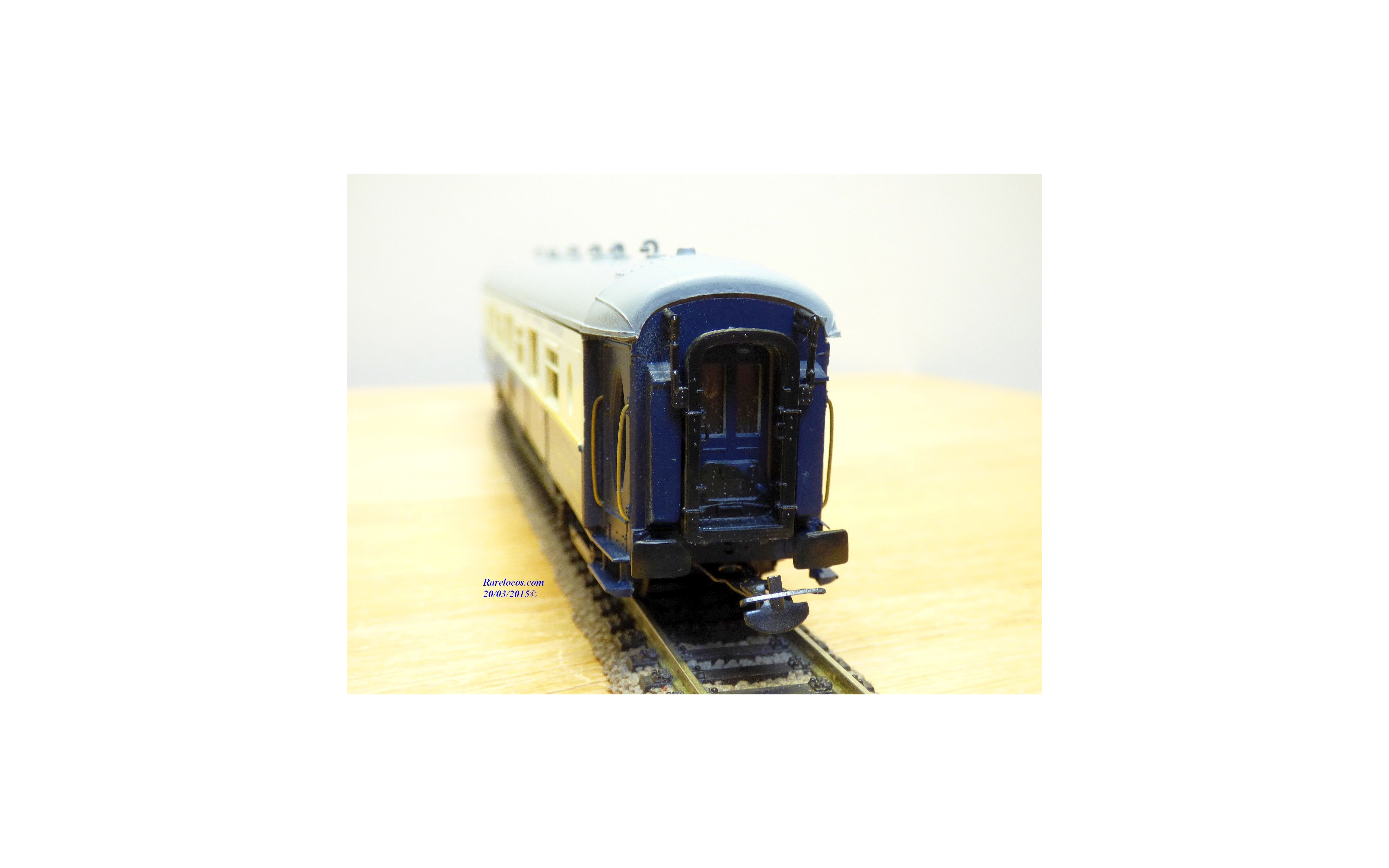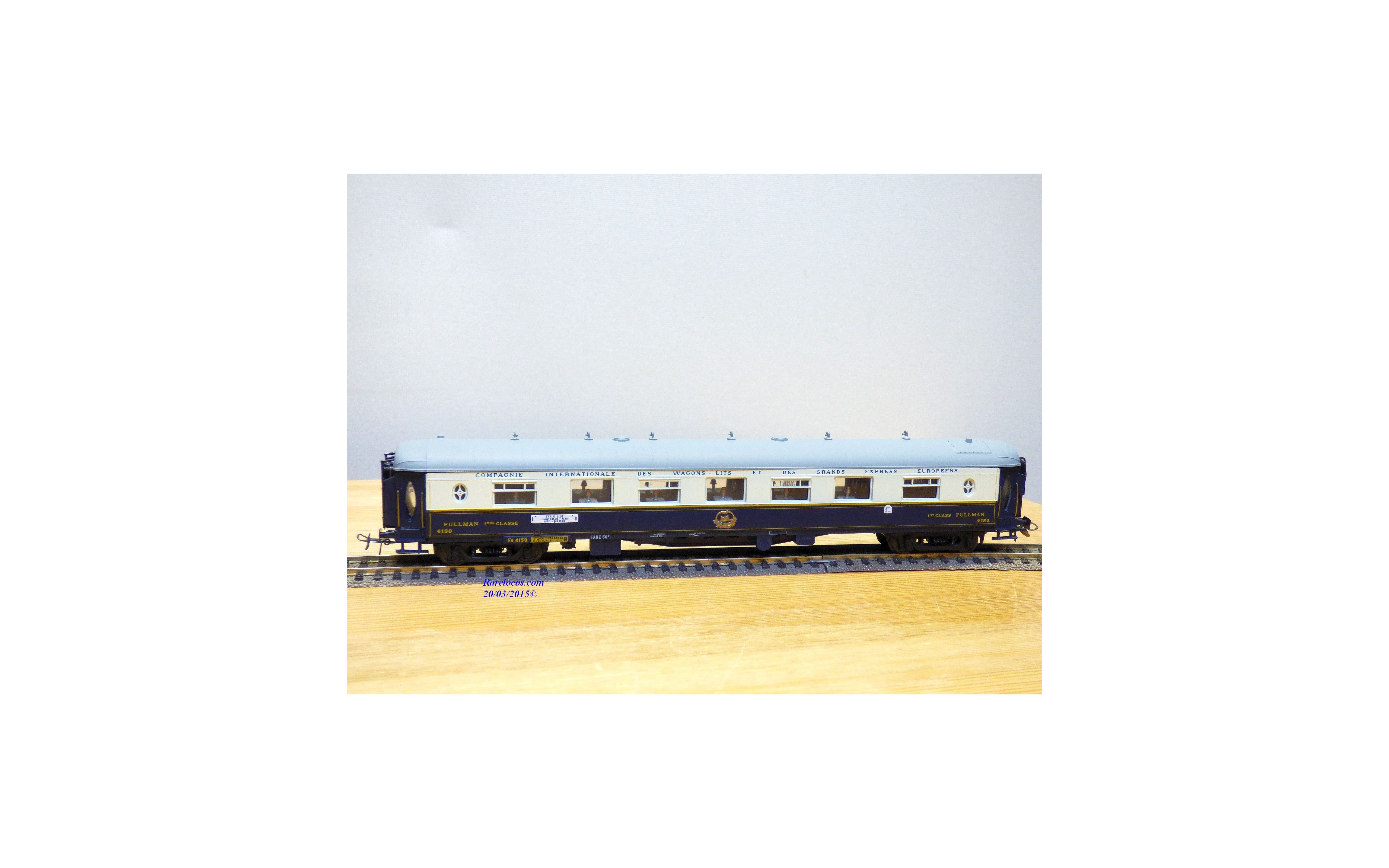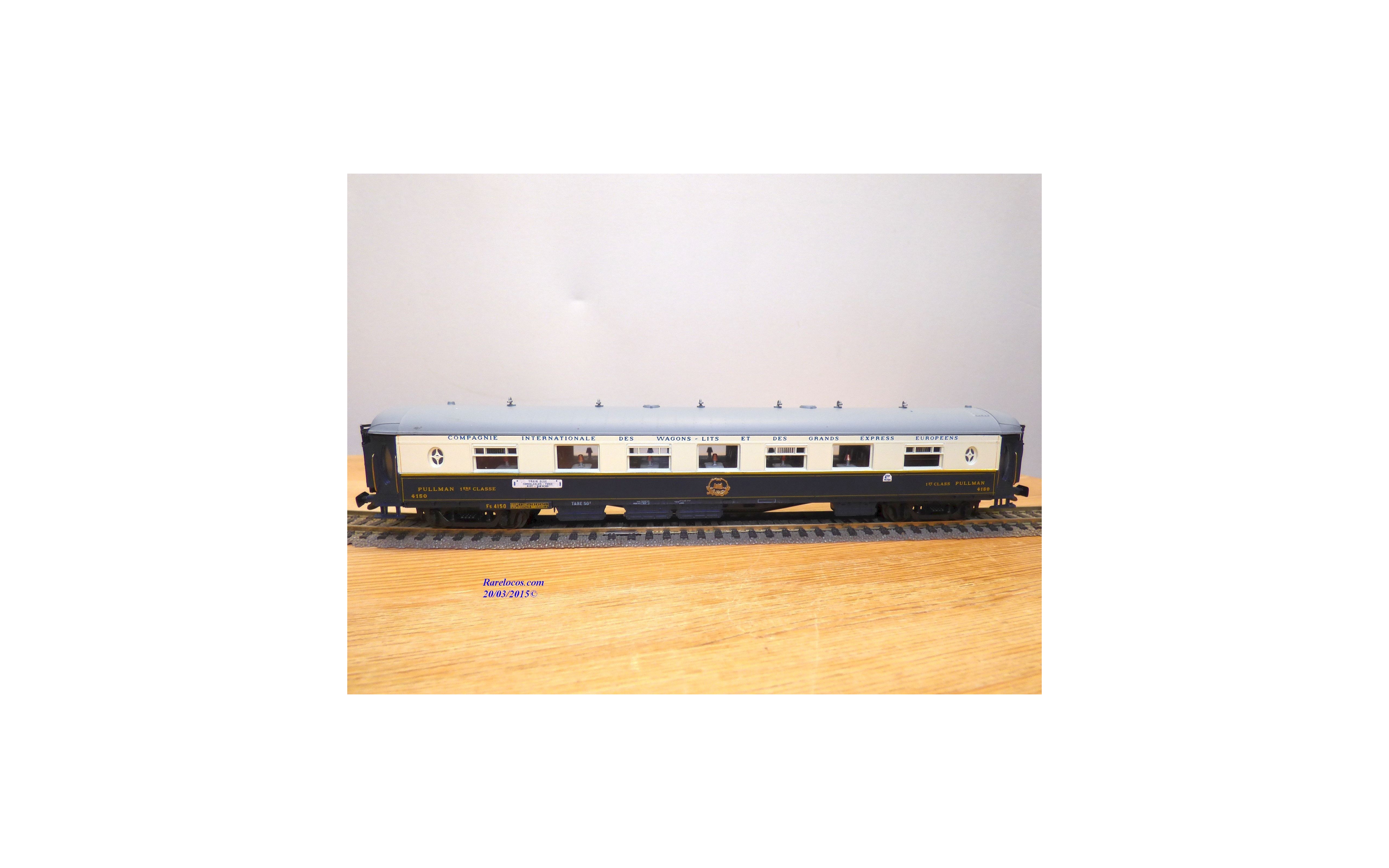 Voiture Pullman salon de 1 ère classe type Côte d'Azur à bogies des chemins de fer français ( CIWL) , livrée bleue et crême à toit gris, aménagements intérieurs, immatriculation: 4150, boîte d'origine carton "coins piquants " .