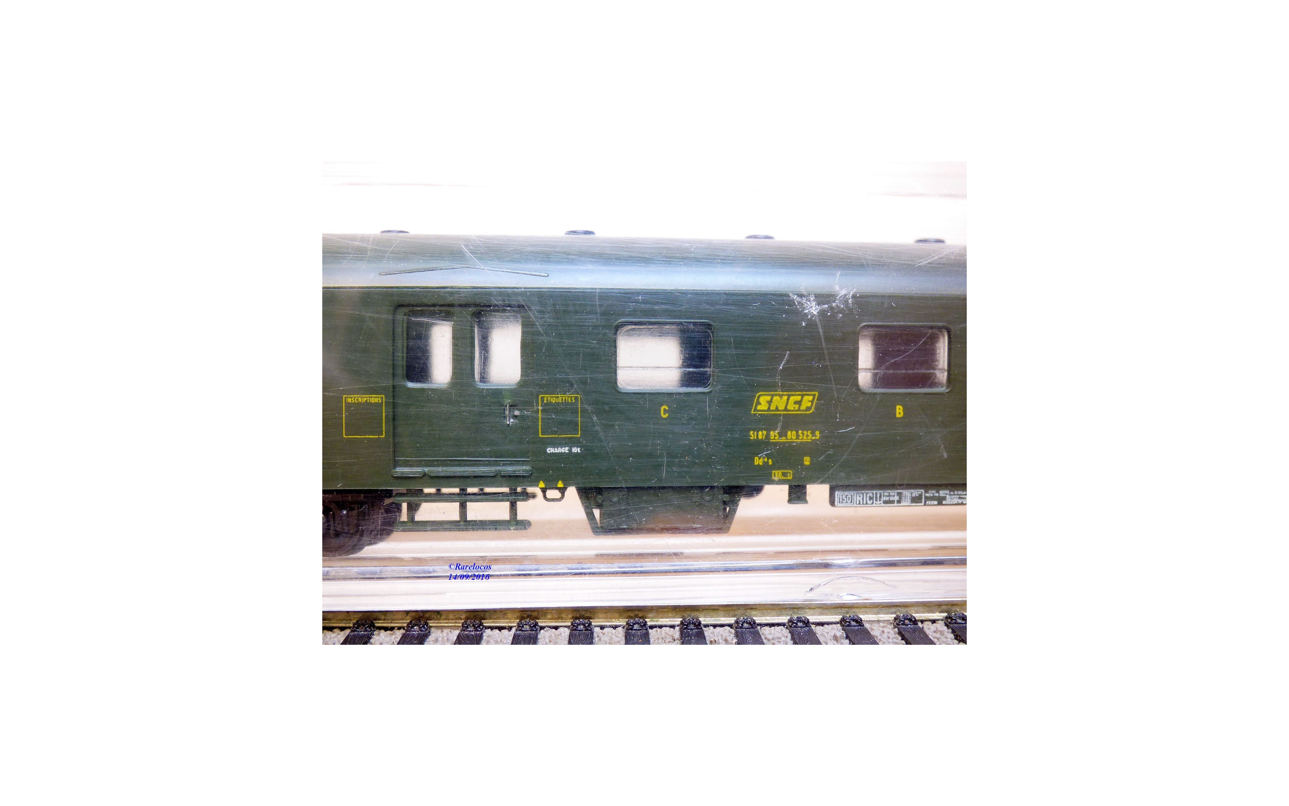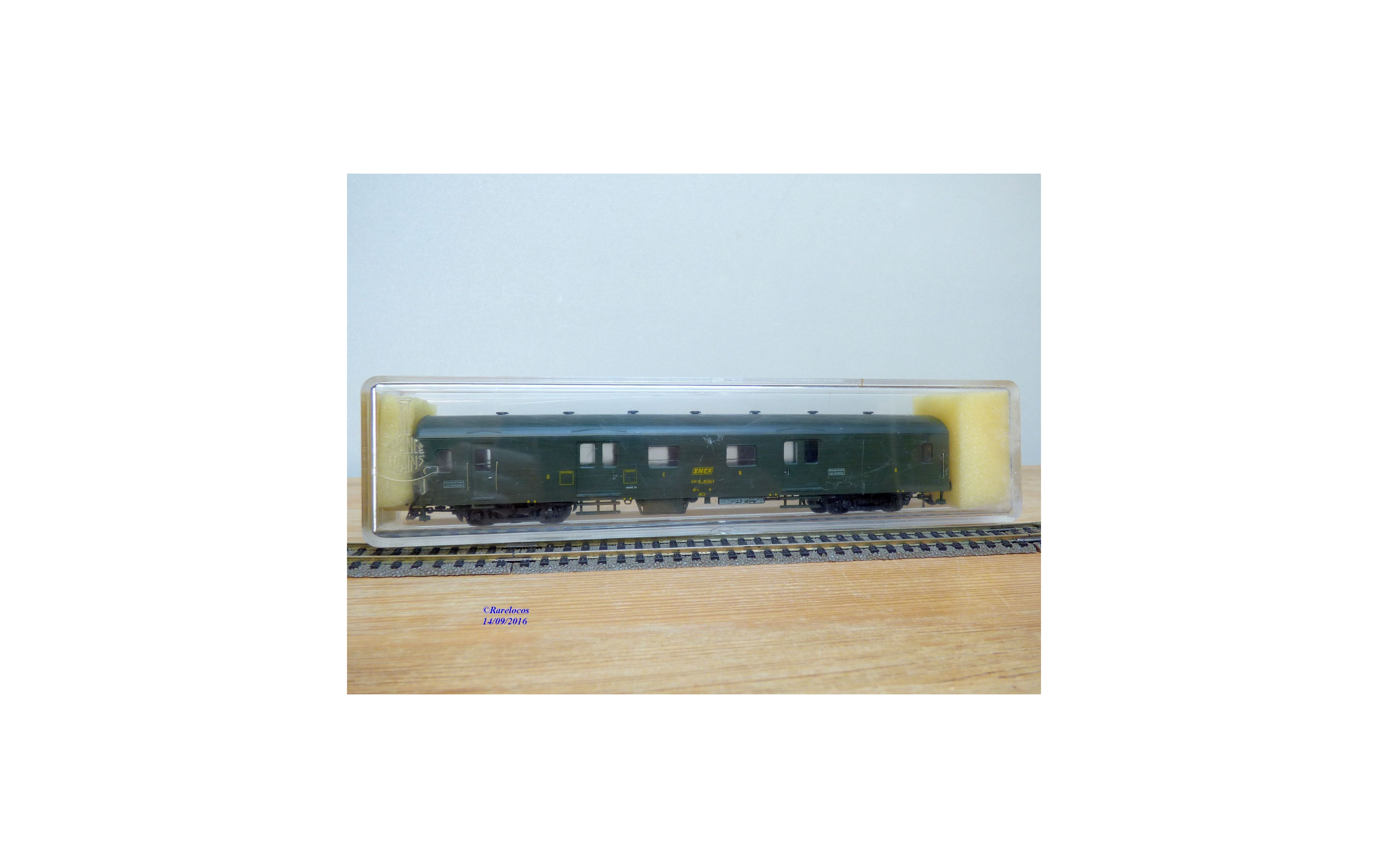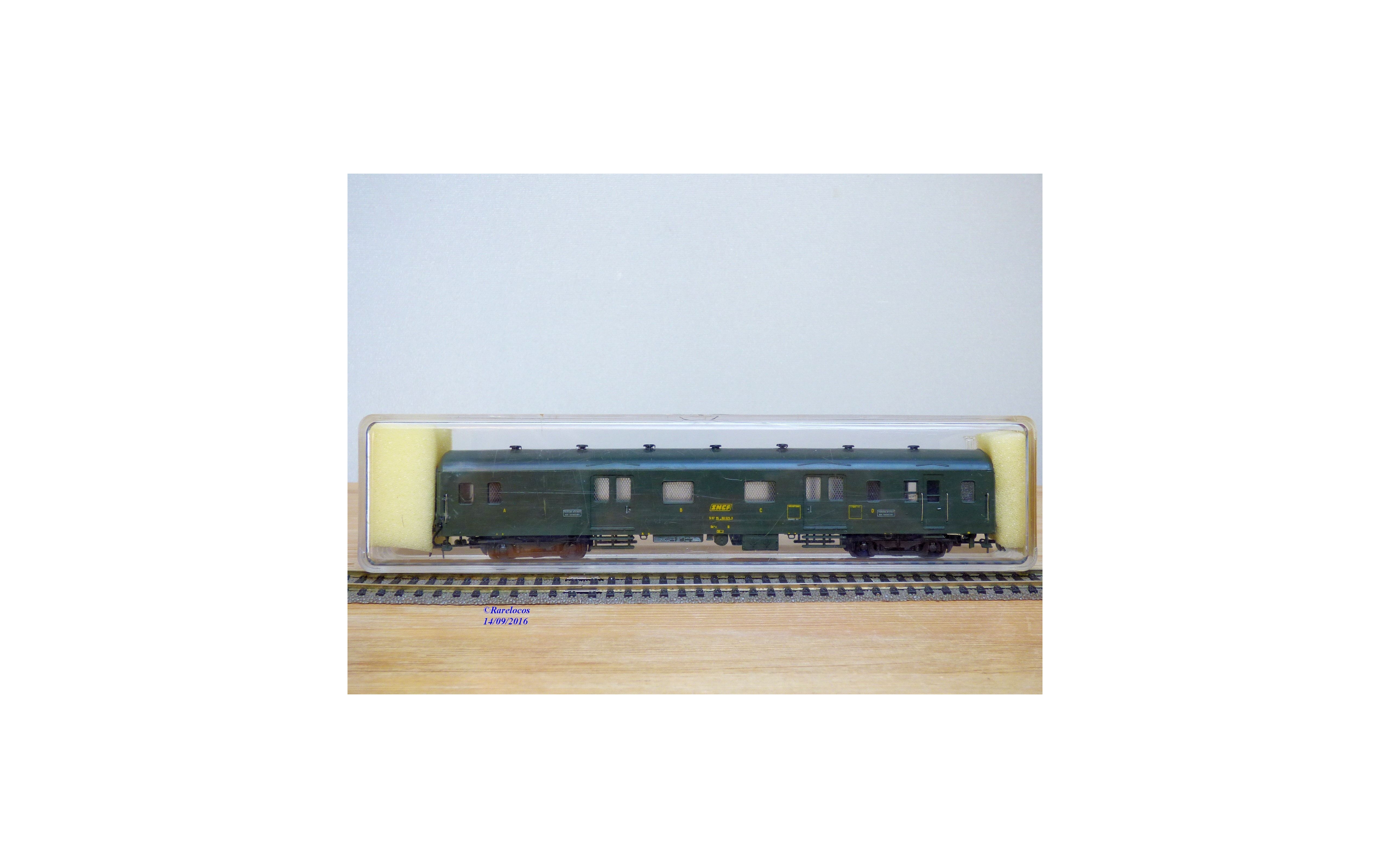 Fourgon grandes lignes à bogies D.E.V. type Dd4 s myi des chemins de fer français ( SNCF ) , livrée verte à toit noir, immatriculation:51 87 95_80 525_9, boîte d'origine en excellent état mais pas la bonne référence ?).