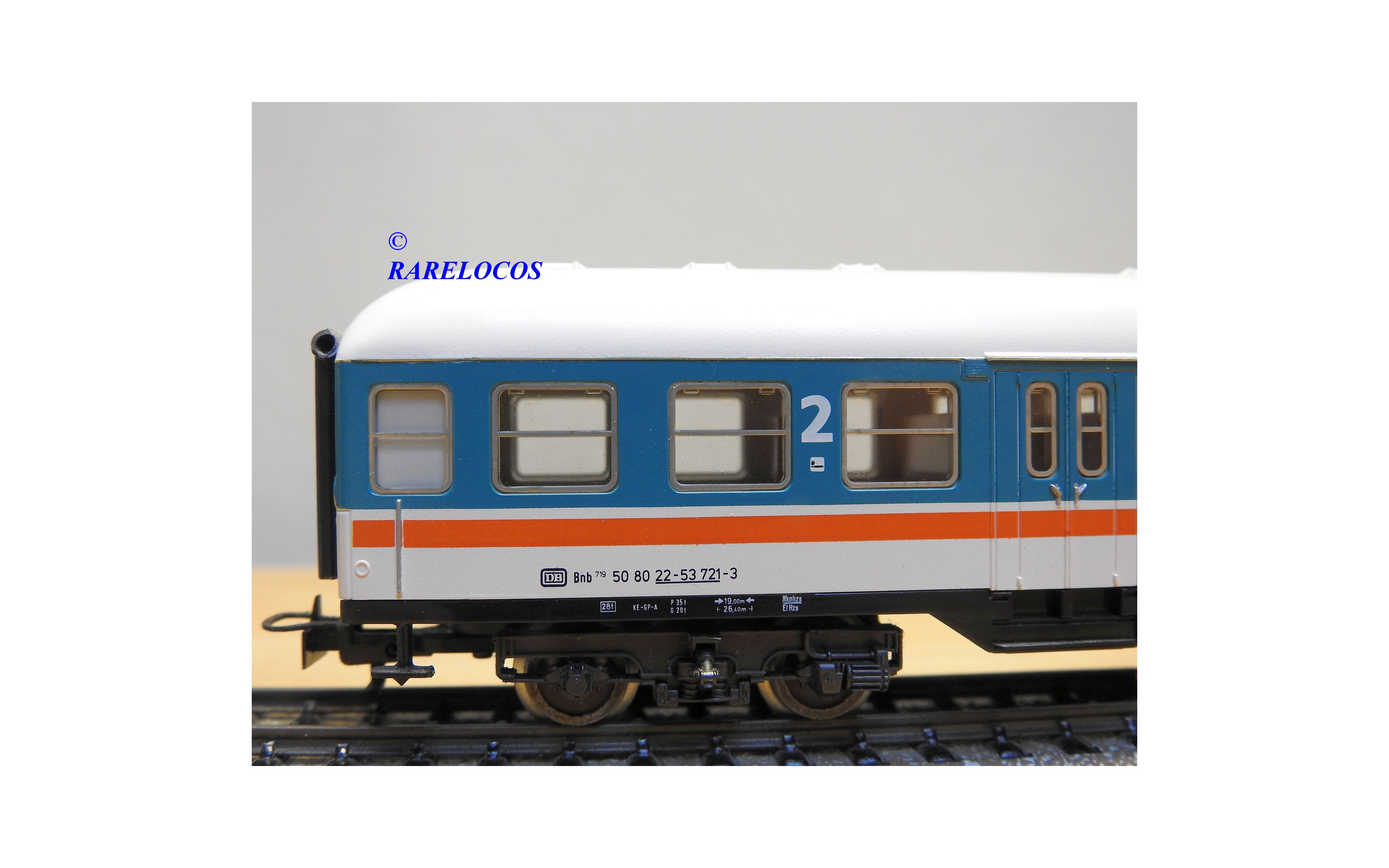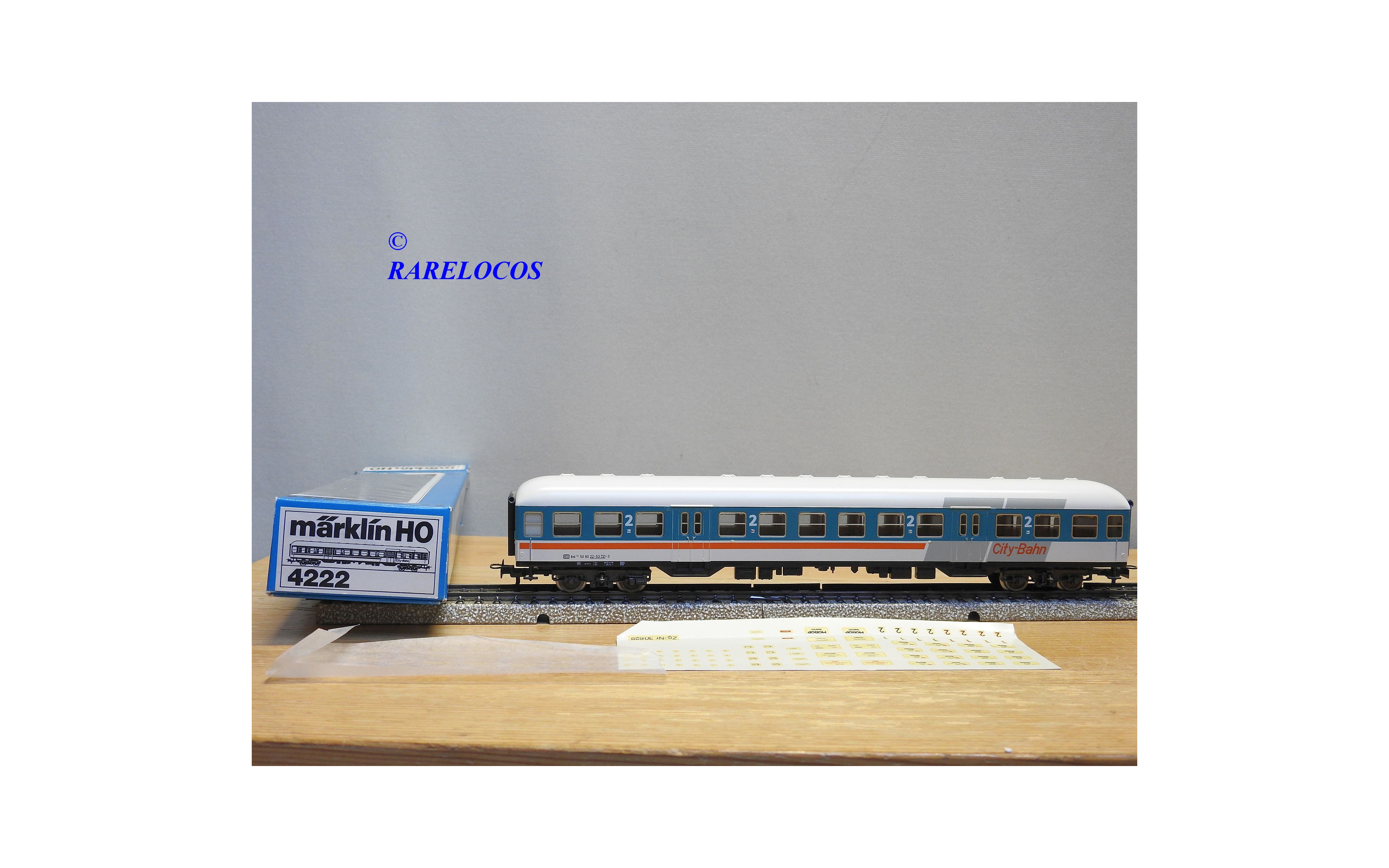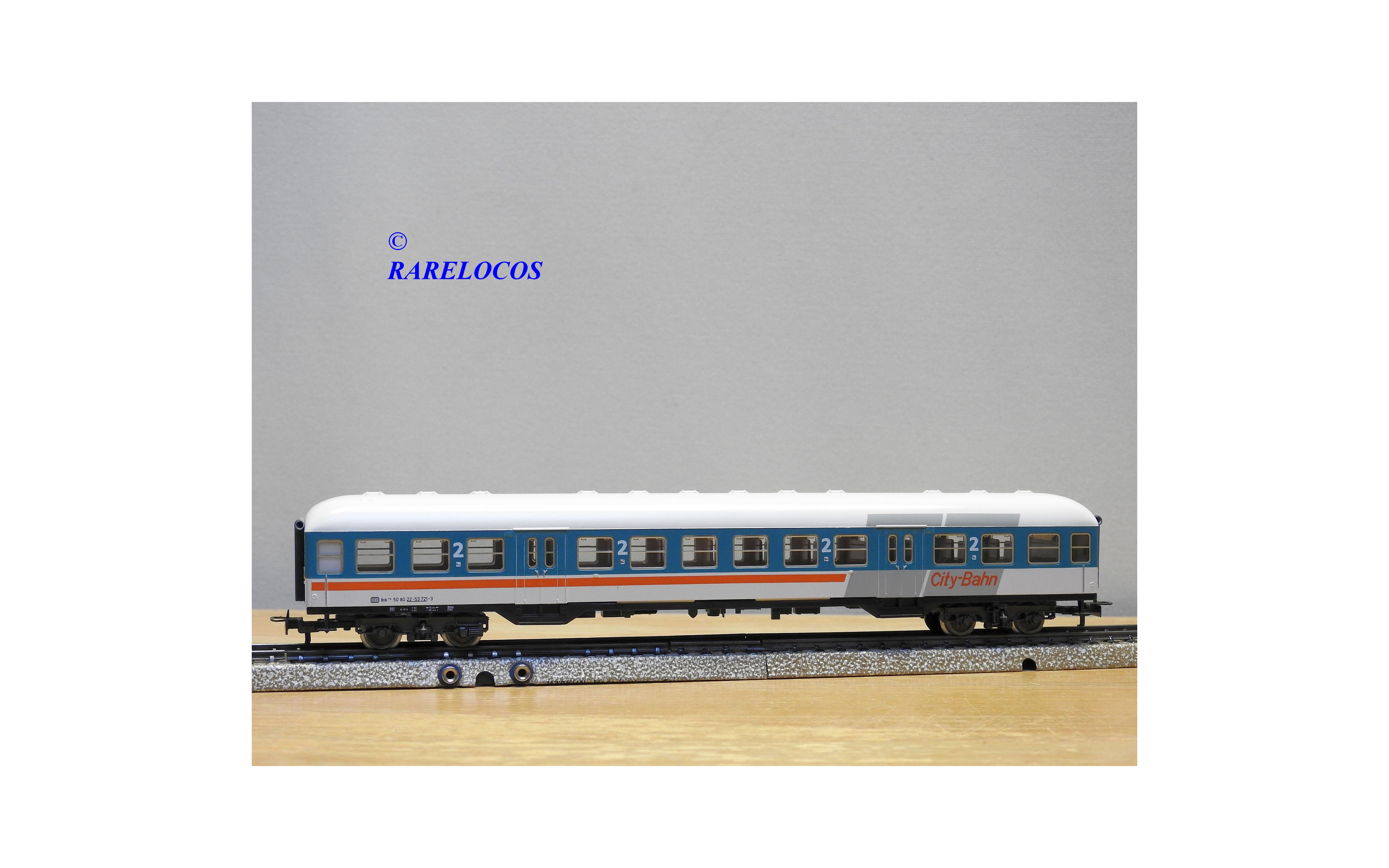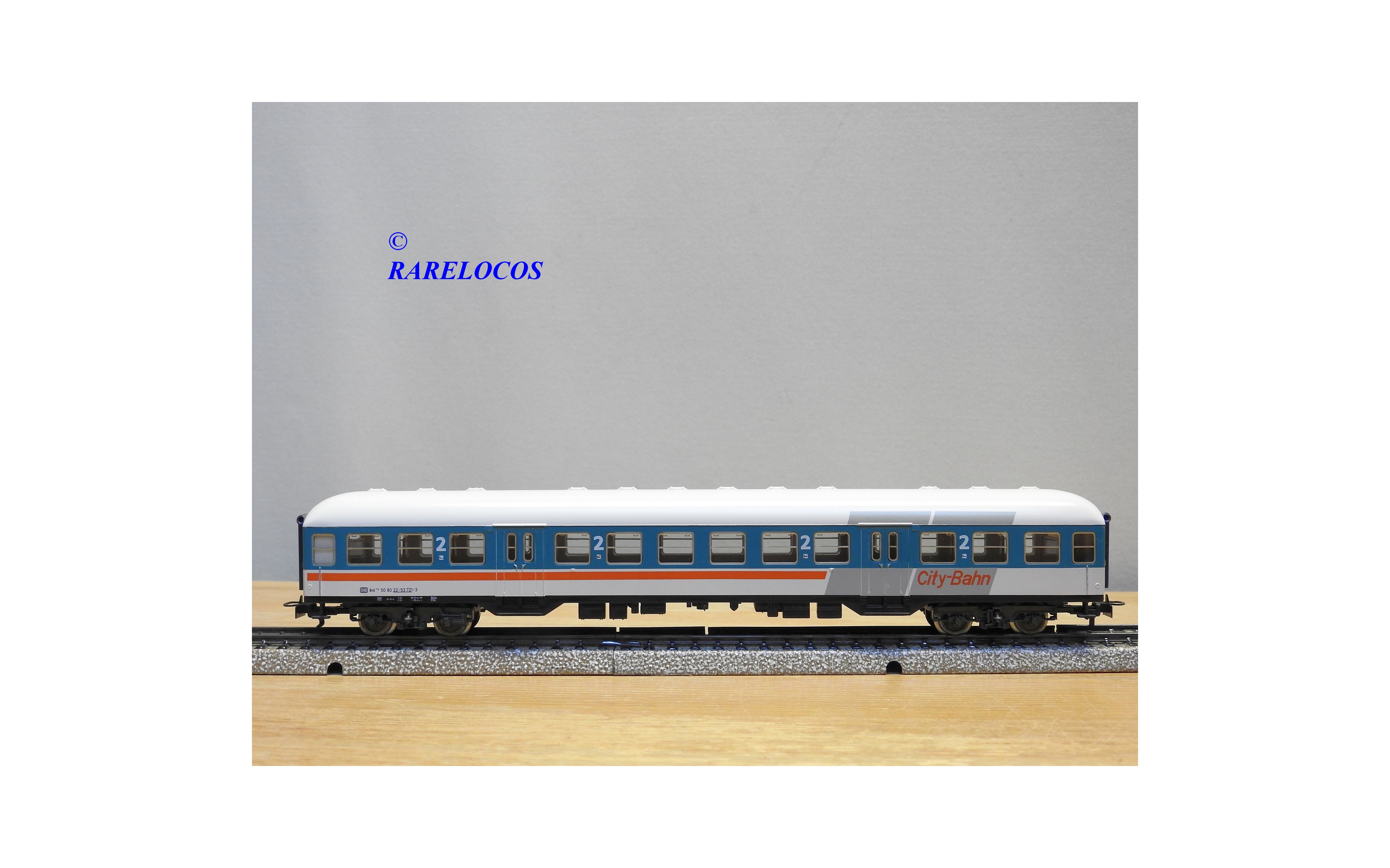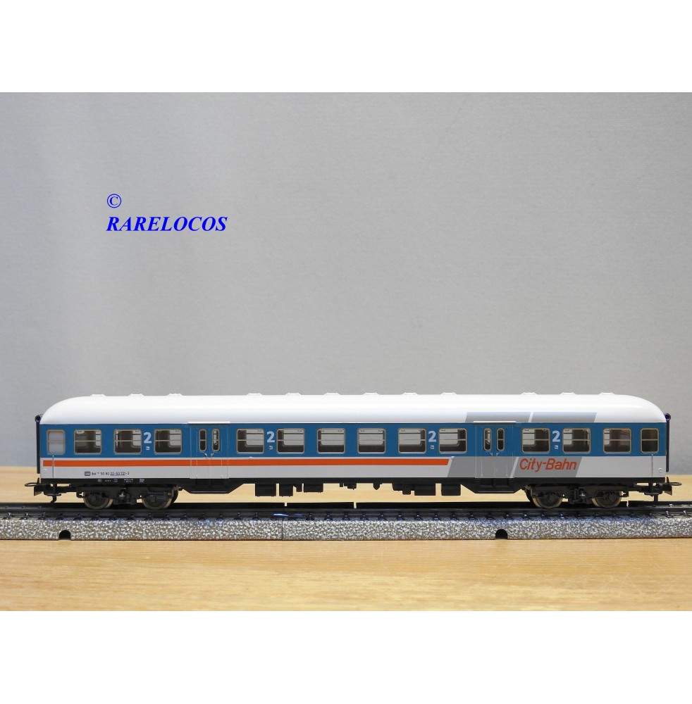 Voiture de banlieue de 2 ème classe type Bnb 719 aux couleurs des chemins de fer allemands ( DB ), livrée blanche avec bande bleue et logo City Bahn, décalcomanies ( plaques d' itinéraires, etc ..), boîte d'origine en excellent état.