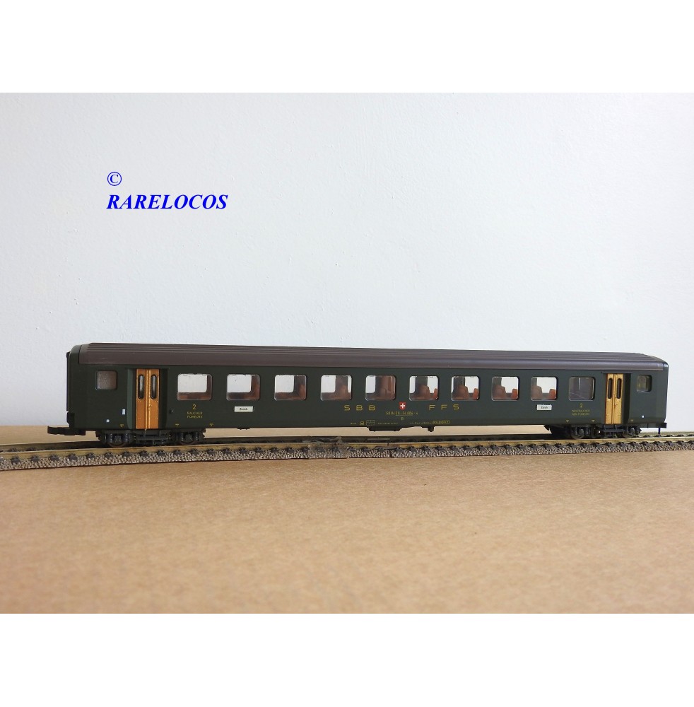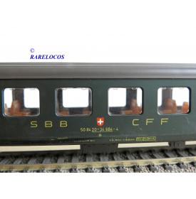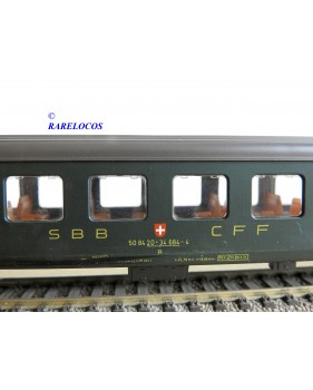 Voiture grandes lignes unifiée à bogies de 2 ème classe type B des chemins de fer suisses ( SBB/CFF/FFS), classique livrée vert sapin à toit gris, immatriculation : B 50 85 20-34 684-4, notice présente, boîte d'origine en excellent état.