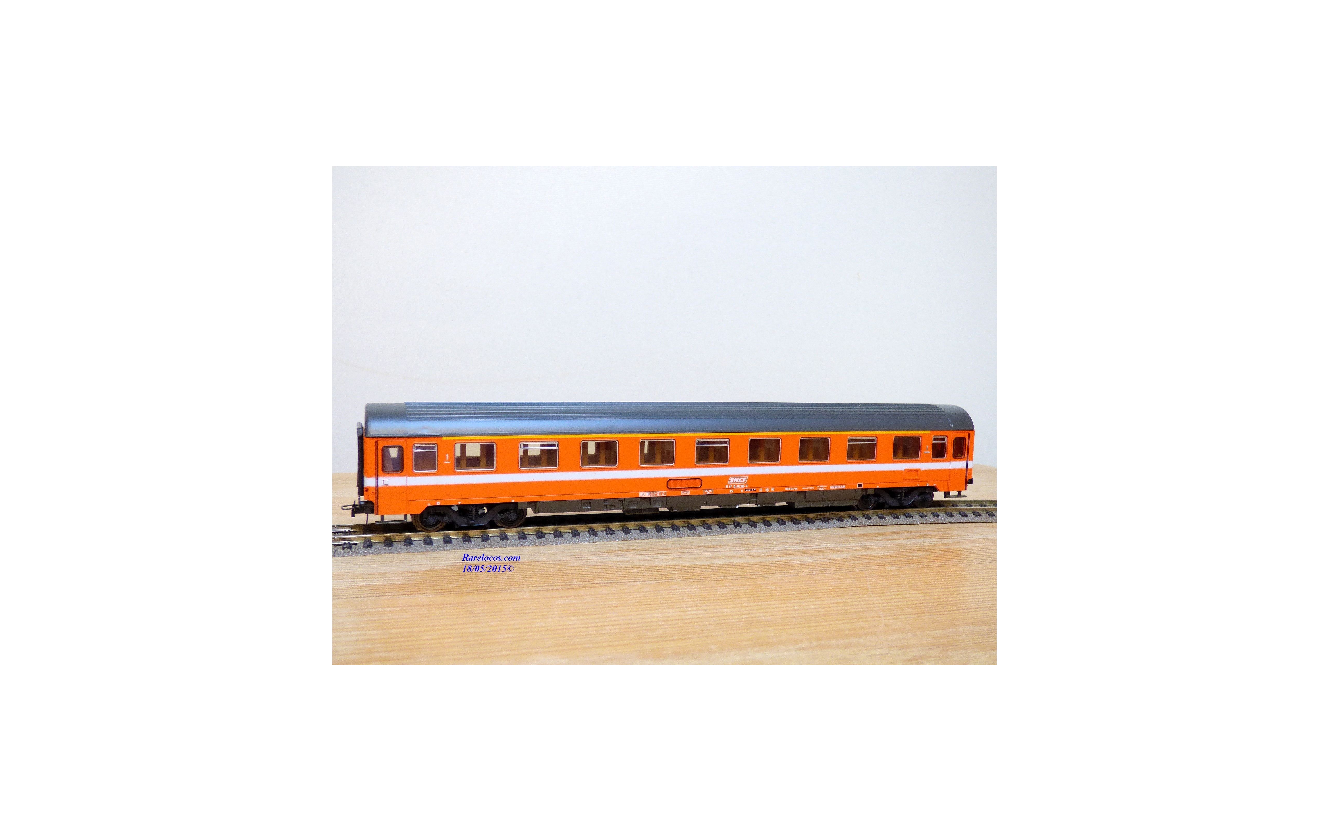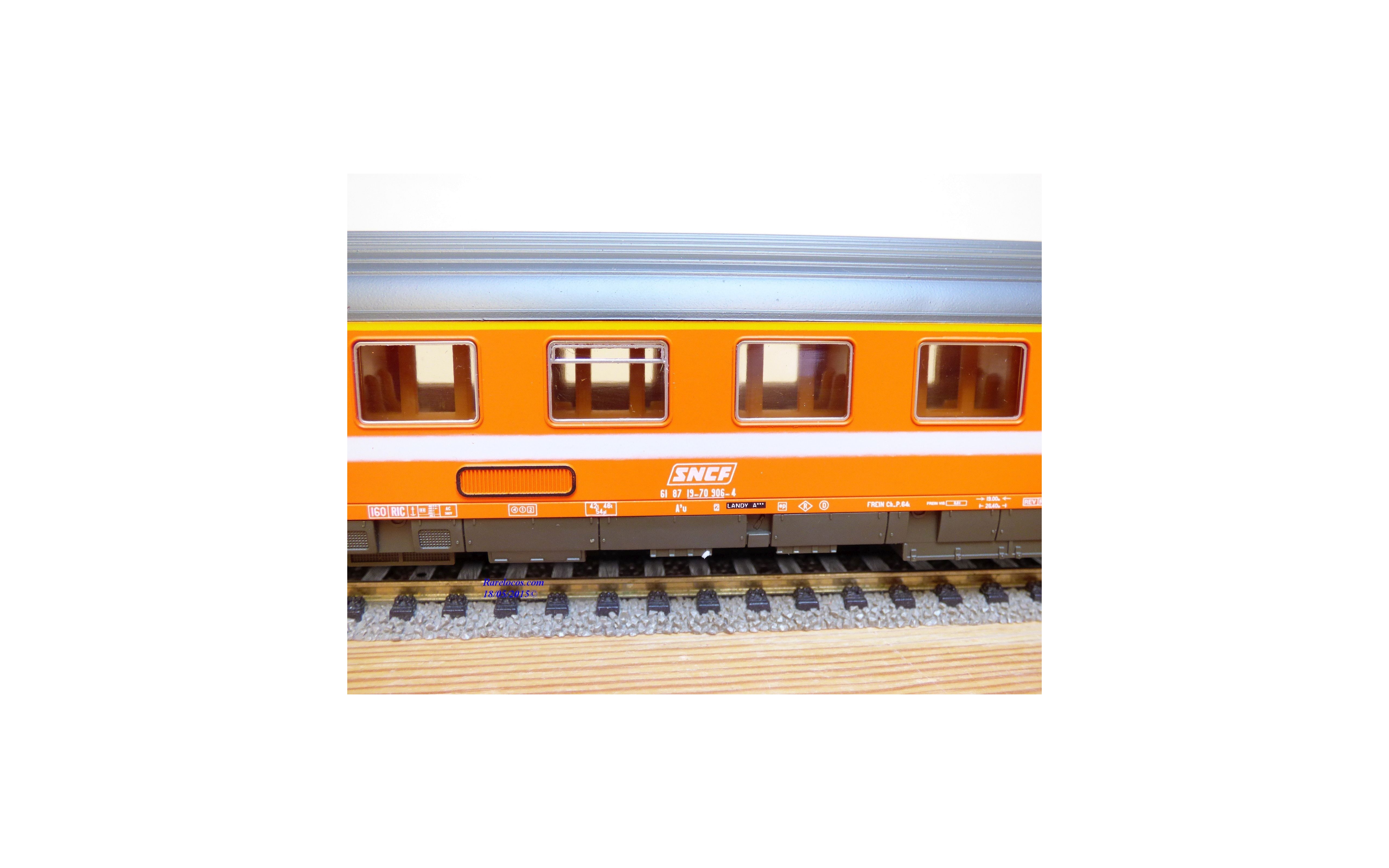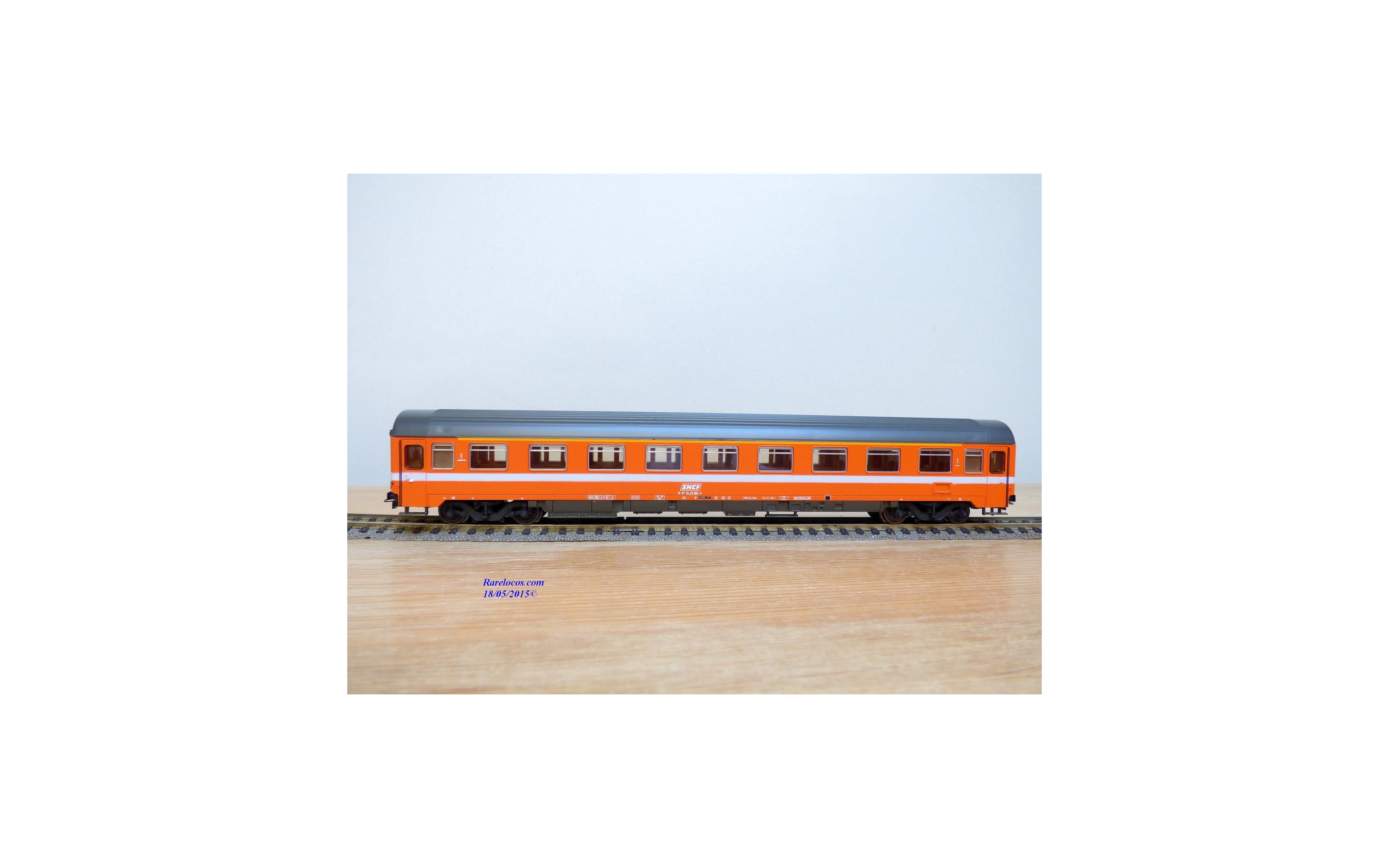 Voiture grande lignes à bogies de 1 ère classe type A9 u Eurofima des chemins de fer français (SNCF), livrée orange à bande blanche à toit gris, aménagements intérieurs, attelages à élongation, pièces de détaillage encore scellées, immatriculation: 61 87 19-70 906-4, notice présente, boîte d'origine en excellent état .