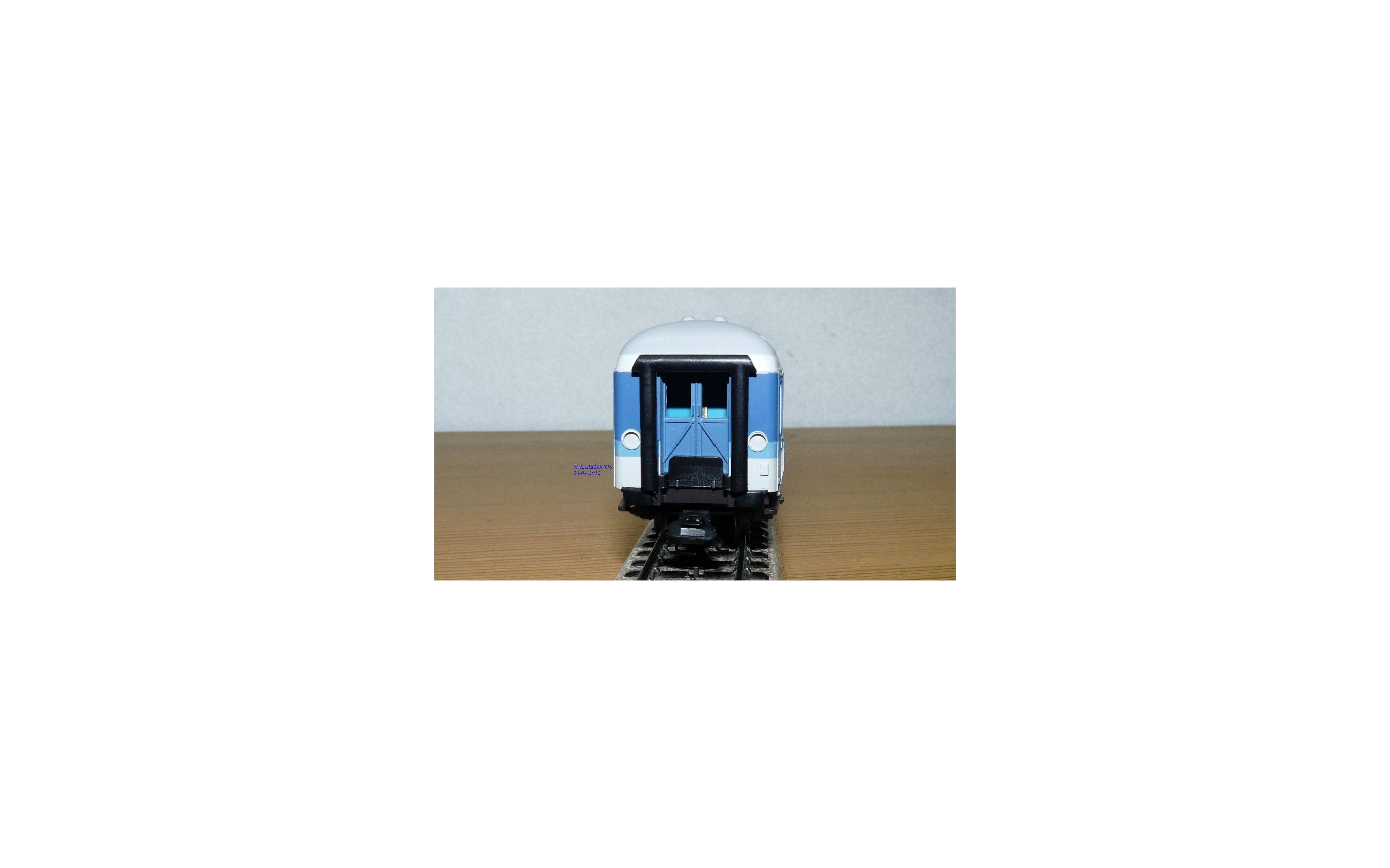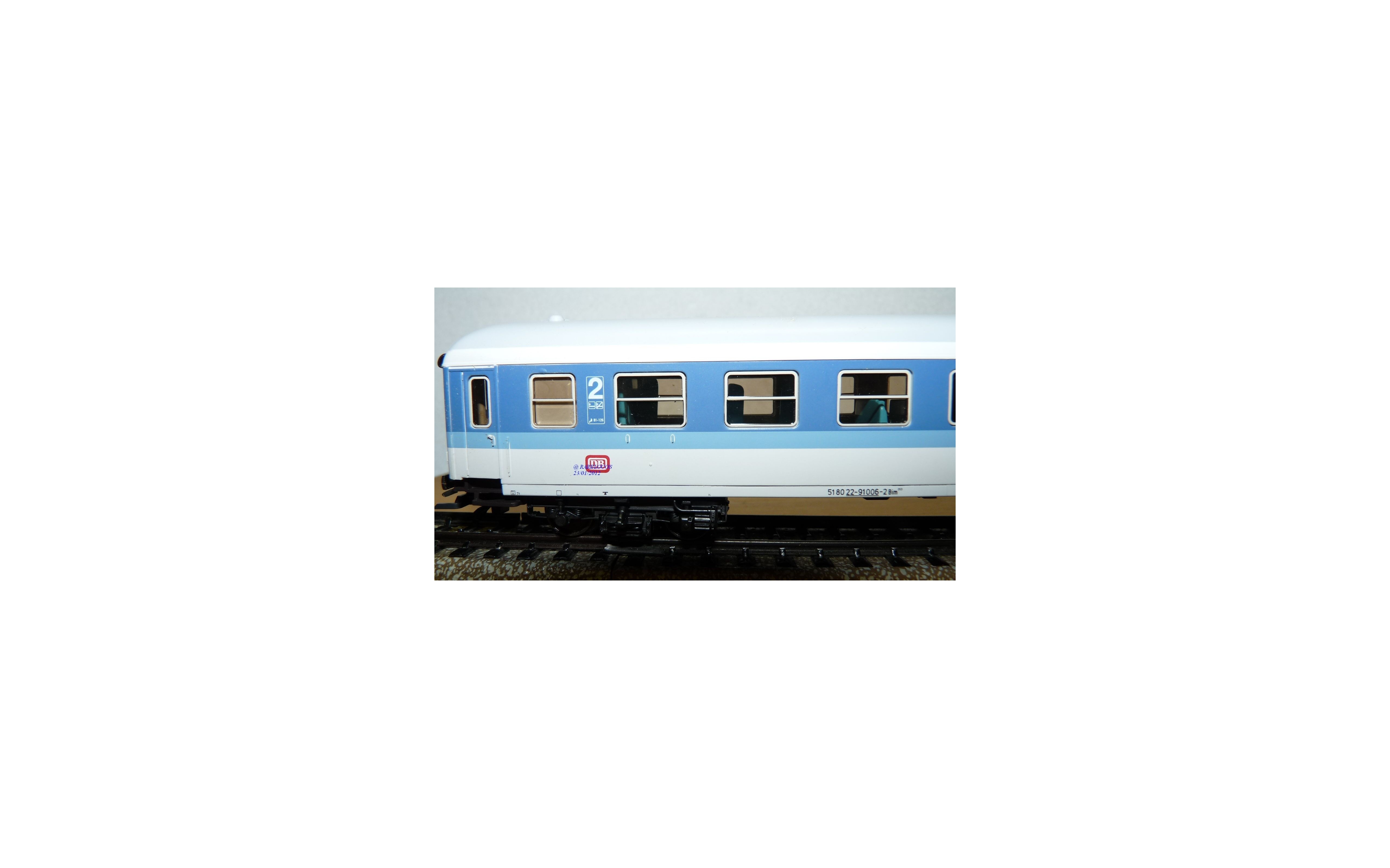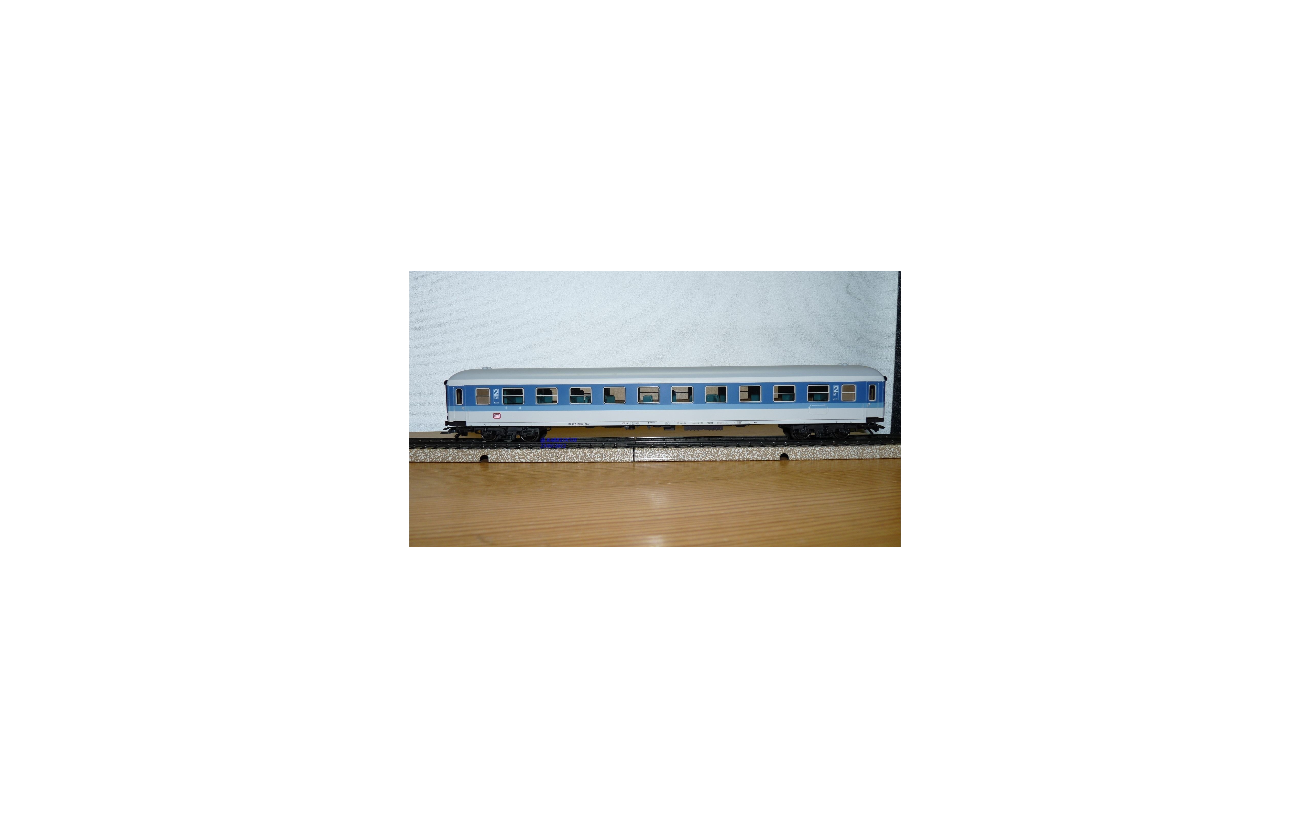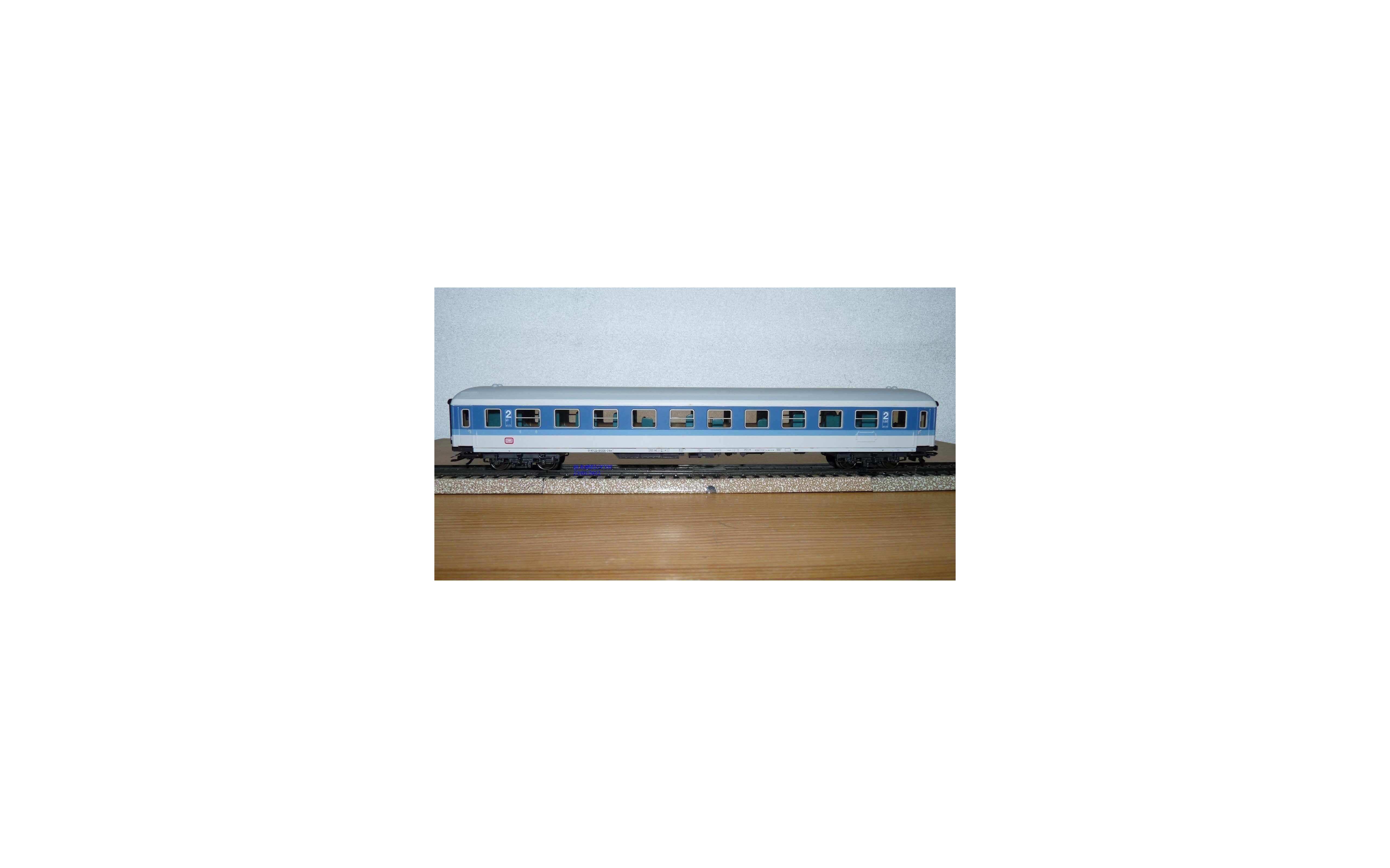 Voiture grandes lignes à bogies type Bim 263 des chemins de fer allemands ( DB ), livrée Inter- Regio bleue et blanche, aménagement intérieur, attelages à élongation, boîte d'origine en excellent état.