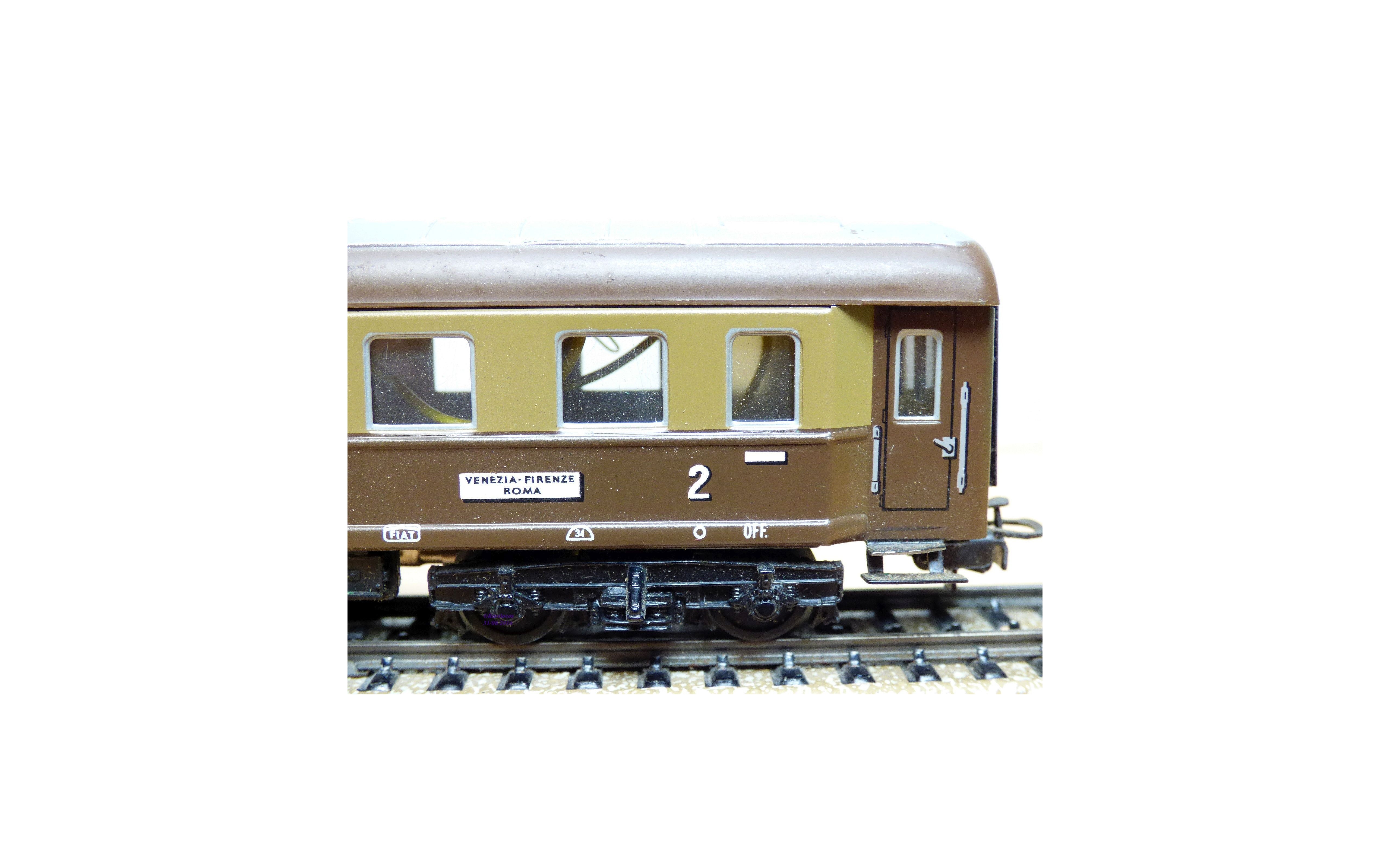 Voiture grandes lignes à bogies de 2 ème classe des chemins de fer italiens ( FS), livrée isabelle, équipé d'un éclairage intérieur testé OK, boîte d'origine en excellent état.