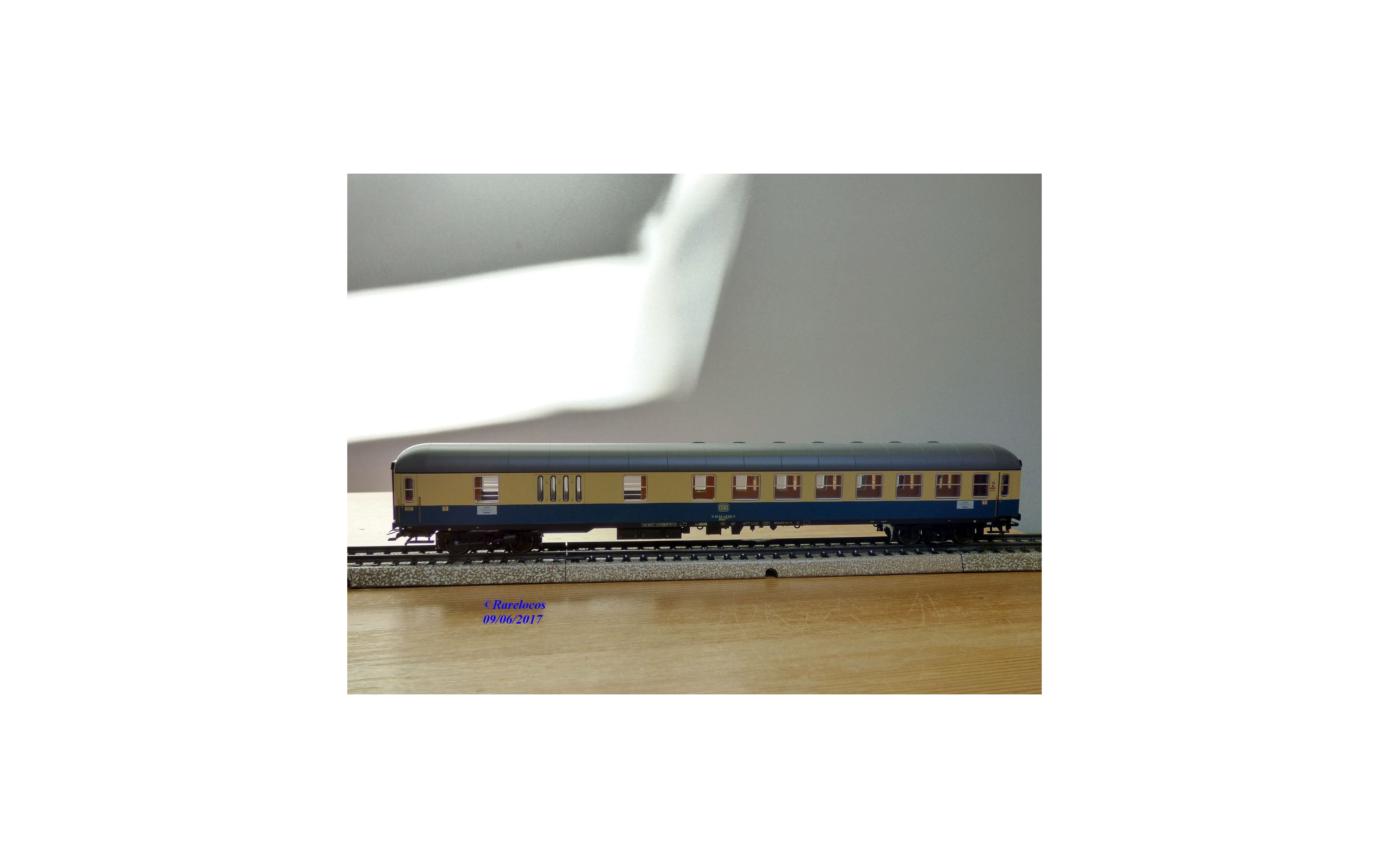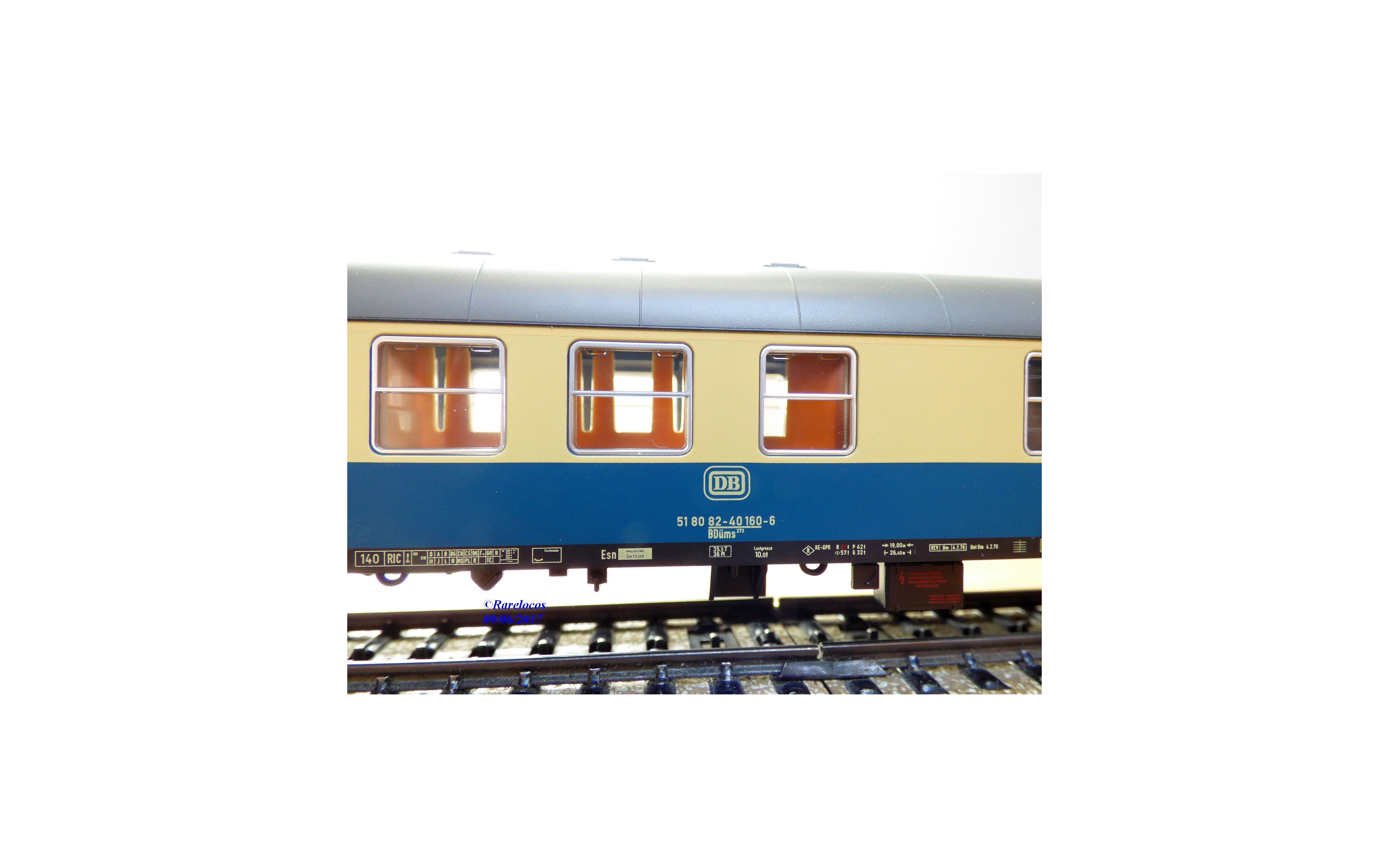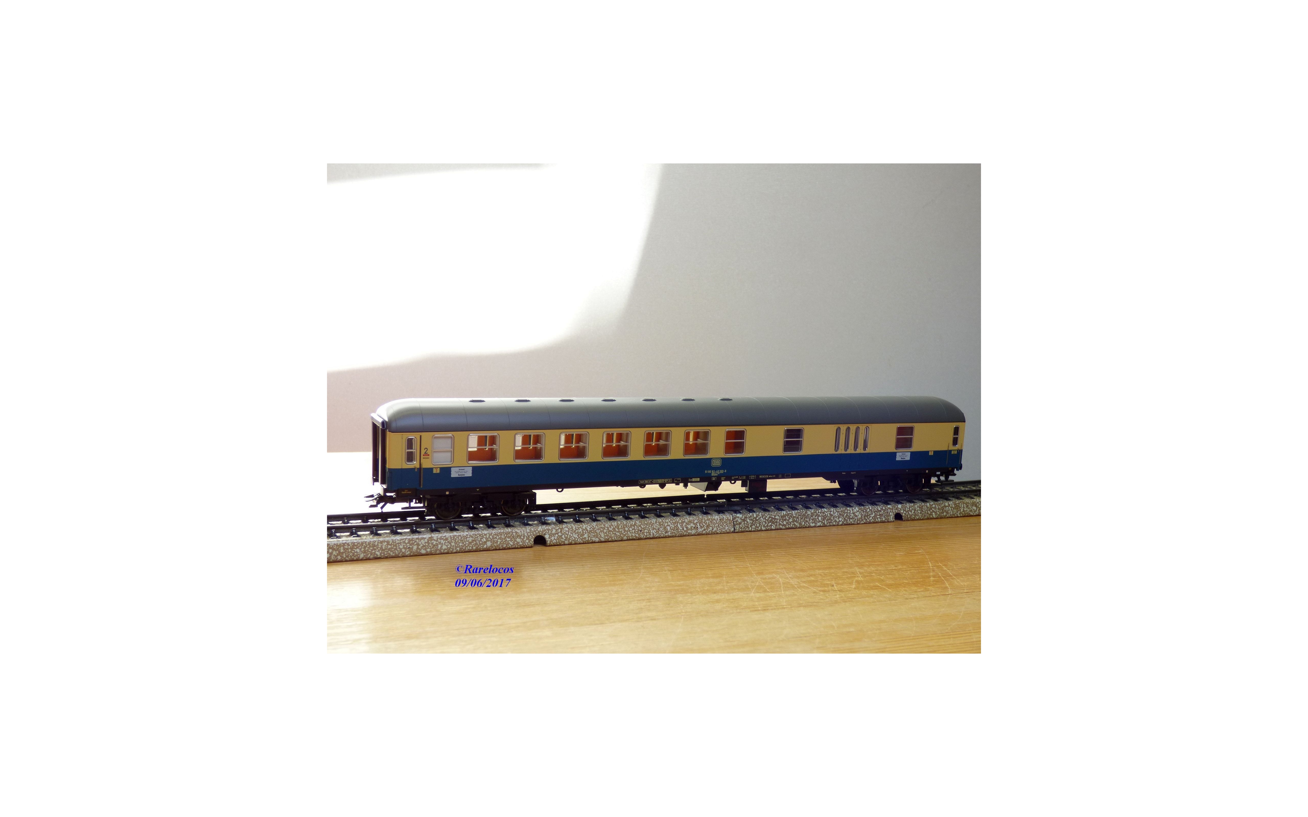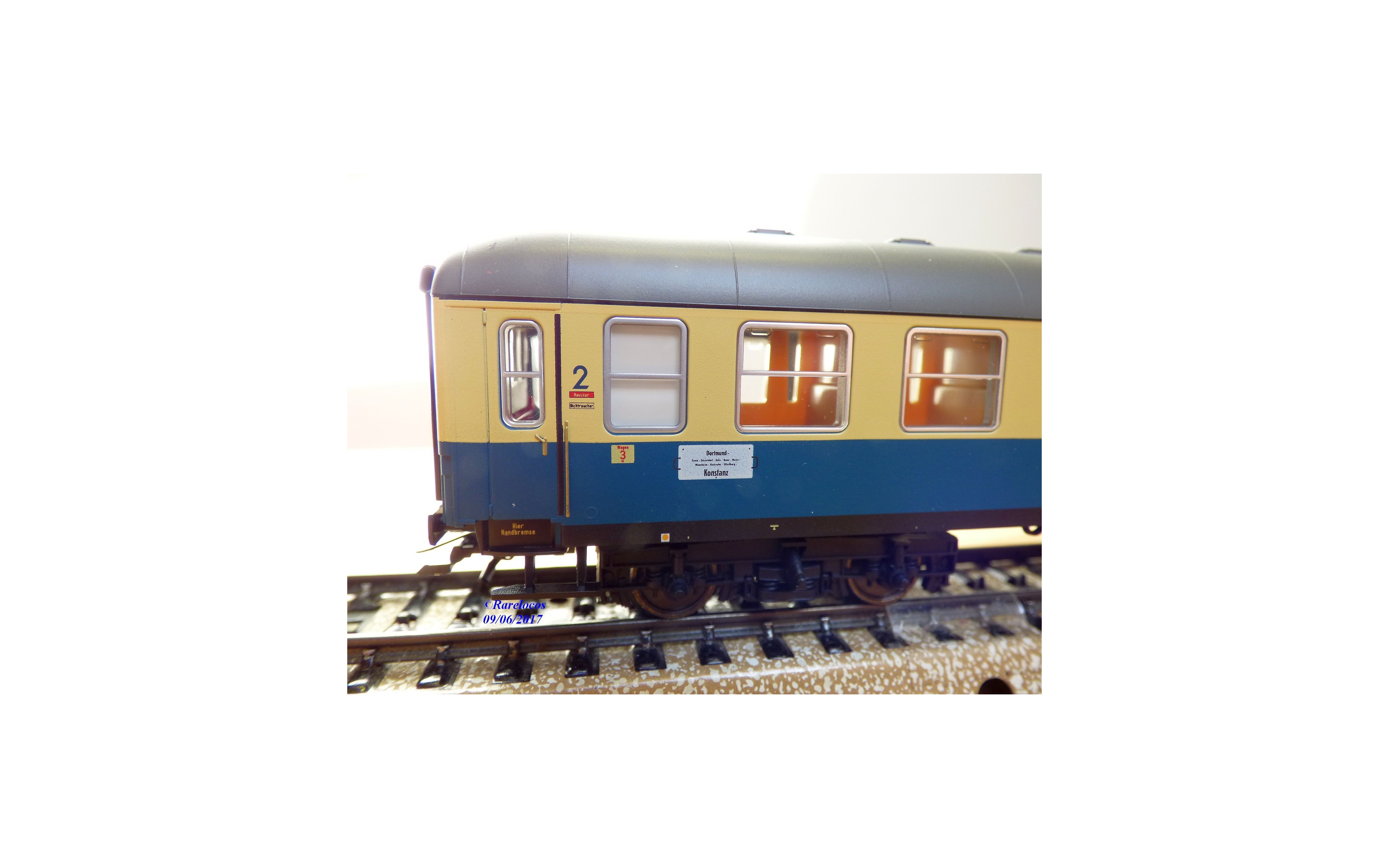 Voiture grandes lignes mixte de 2 ème classe et fourgon type BDüms 273 aux couleurs des chemins de fer allemands ( DB ), livrée turquoise et beige à toit gris argent , aménagements intérieurs d'origine, boite d'origine en état neuf.