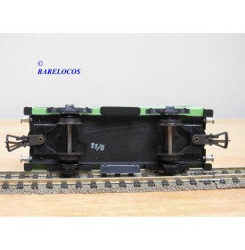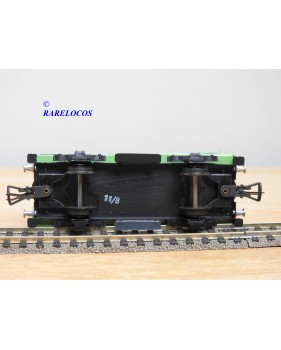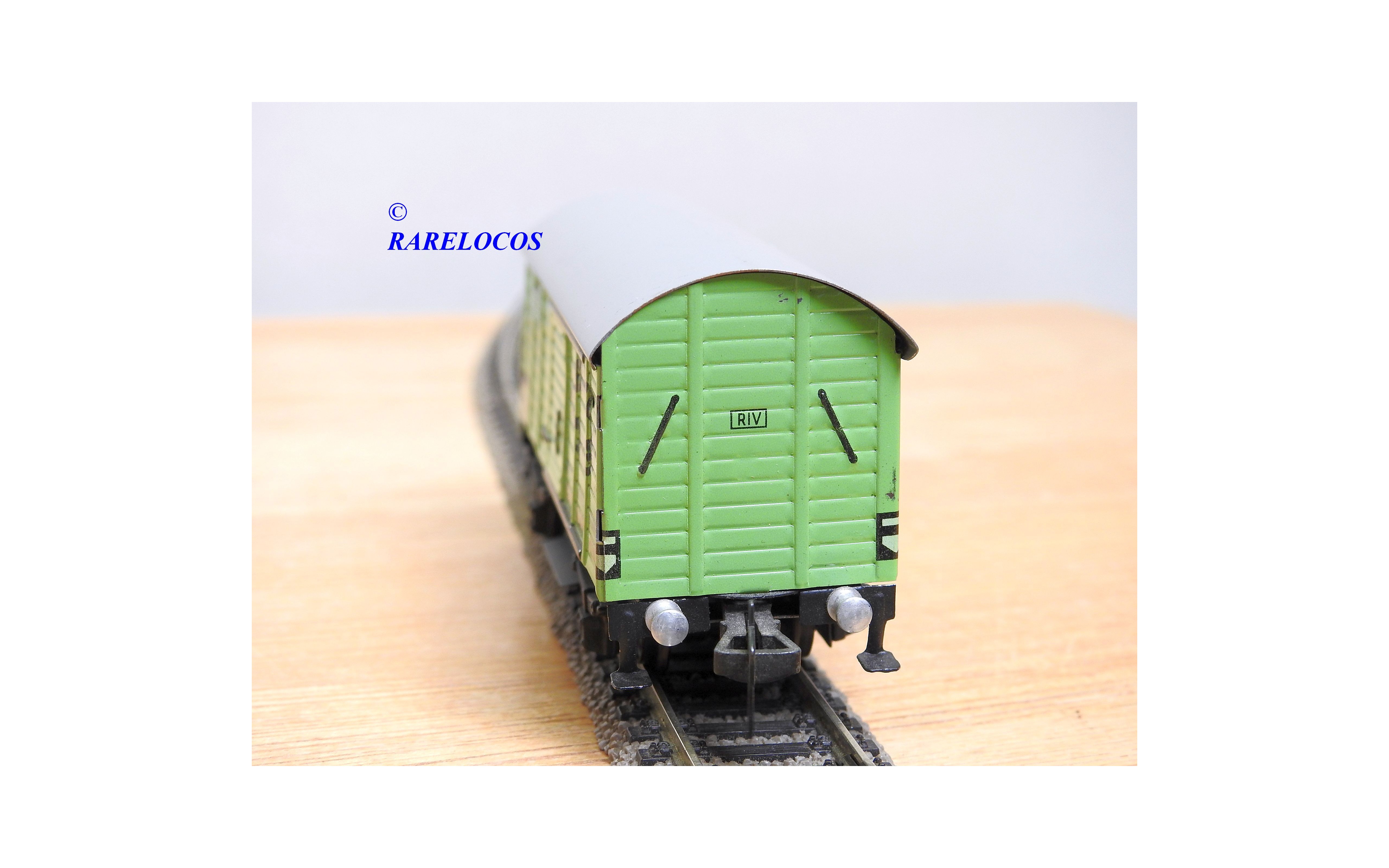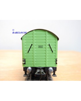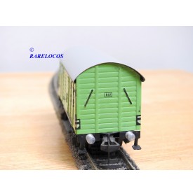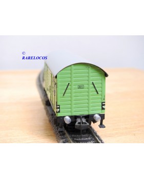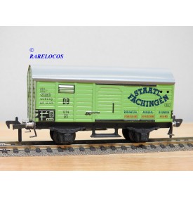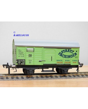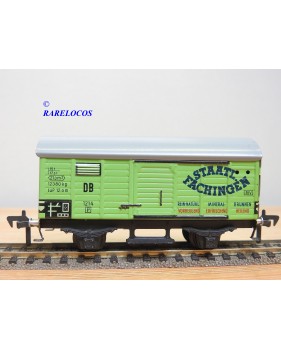 Wagon couvert réfrigérant à 2 essieux des chemins de fer allemands ( DB ), tout en métal, livrée vert pâle à toit gris avec marquages STAATL. FACHINGEN , pas de boîte d'origine.