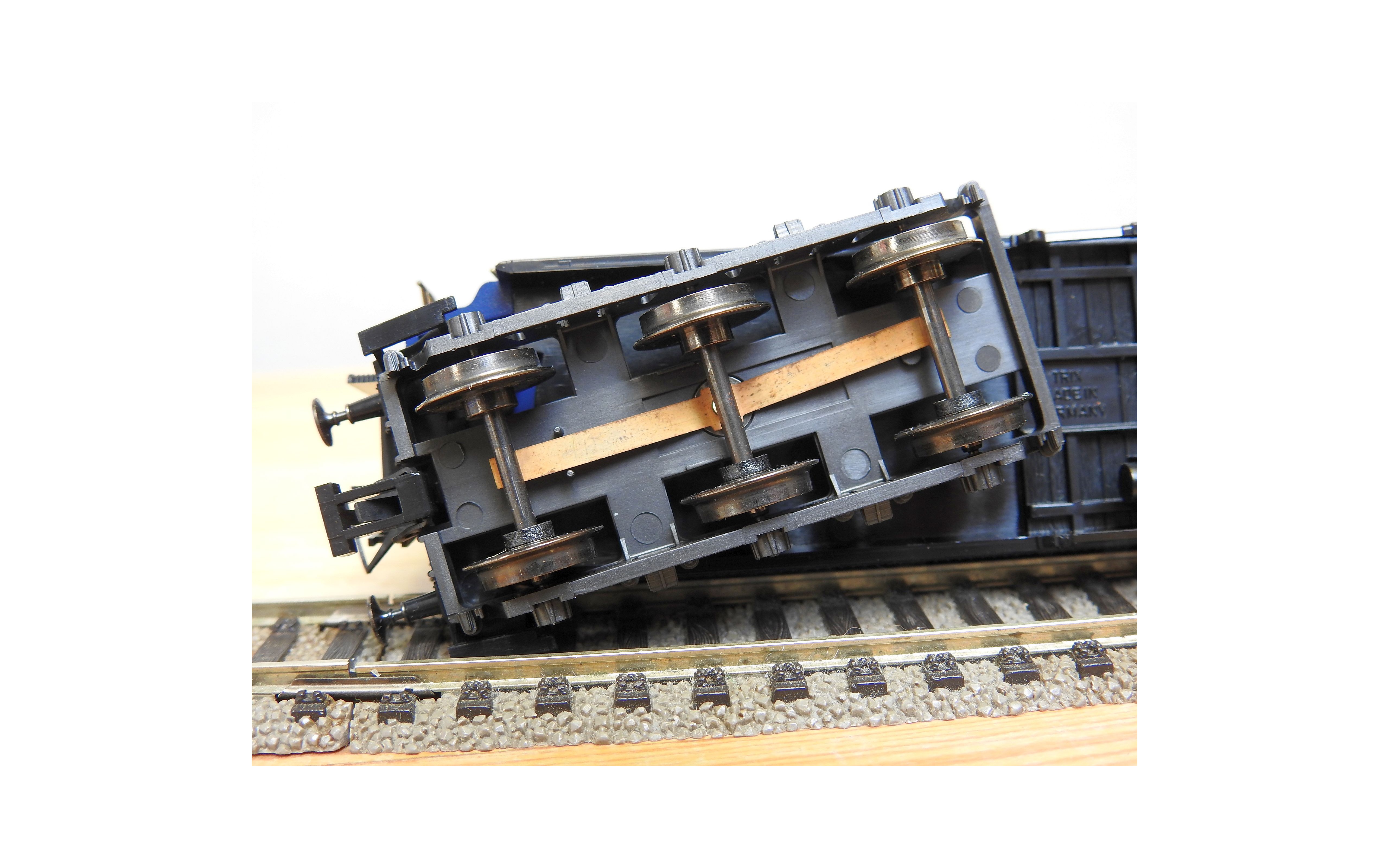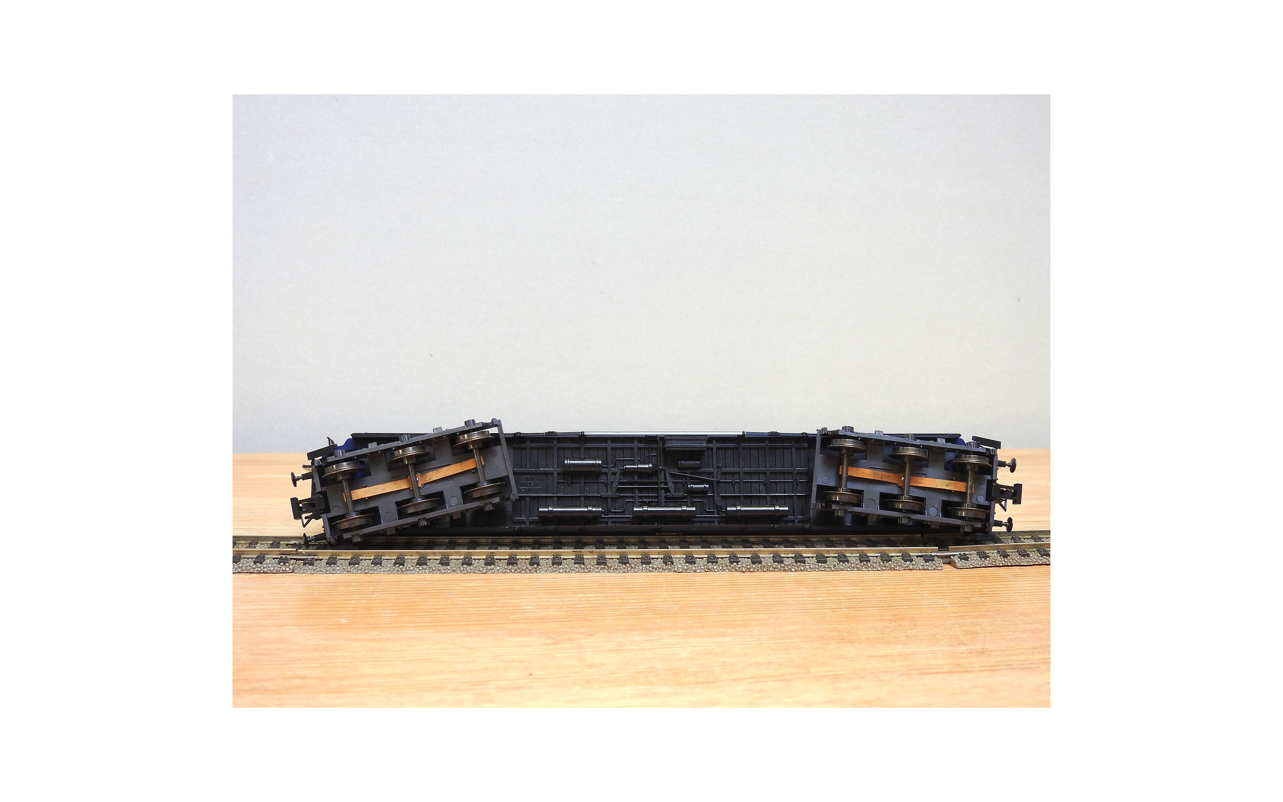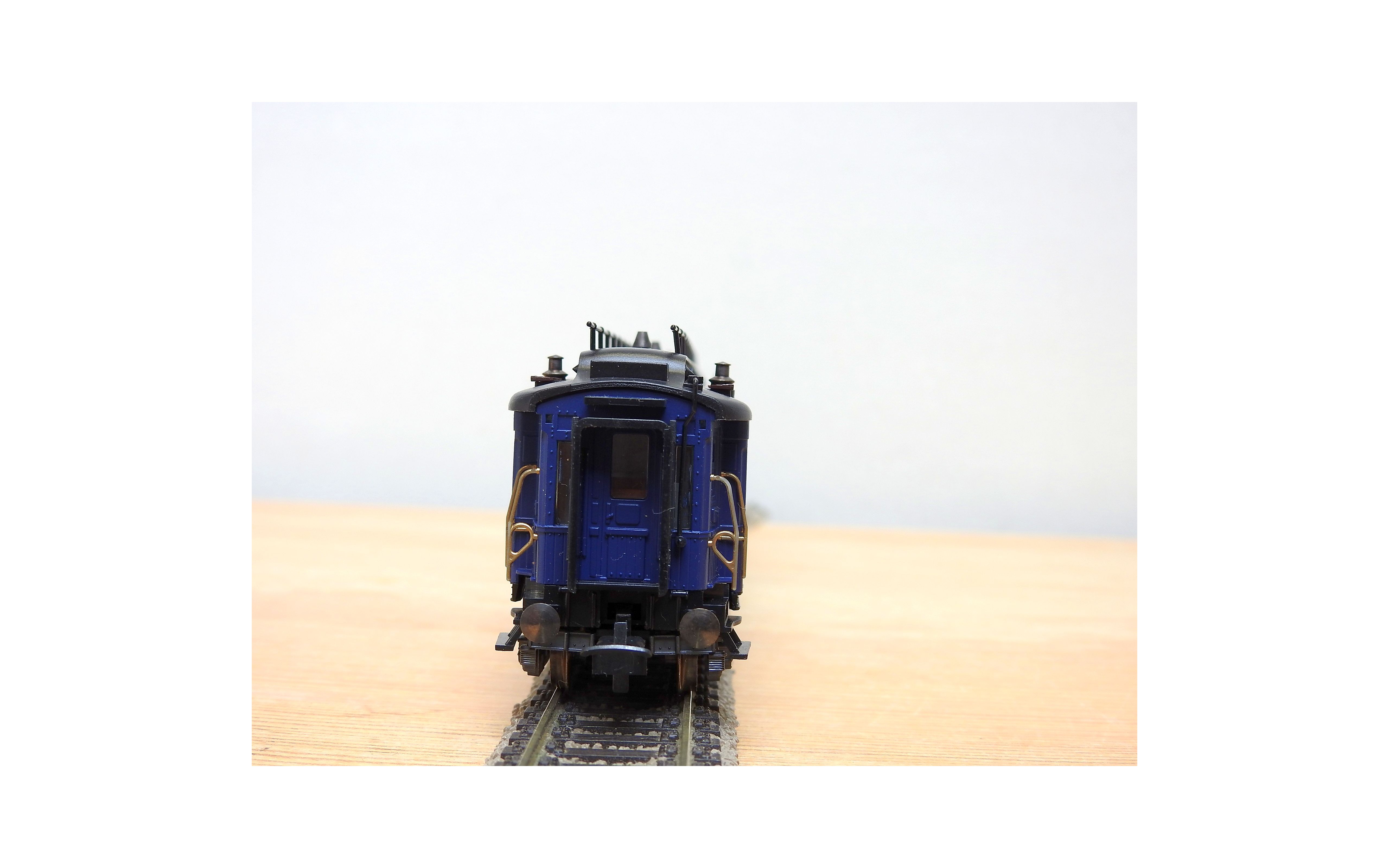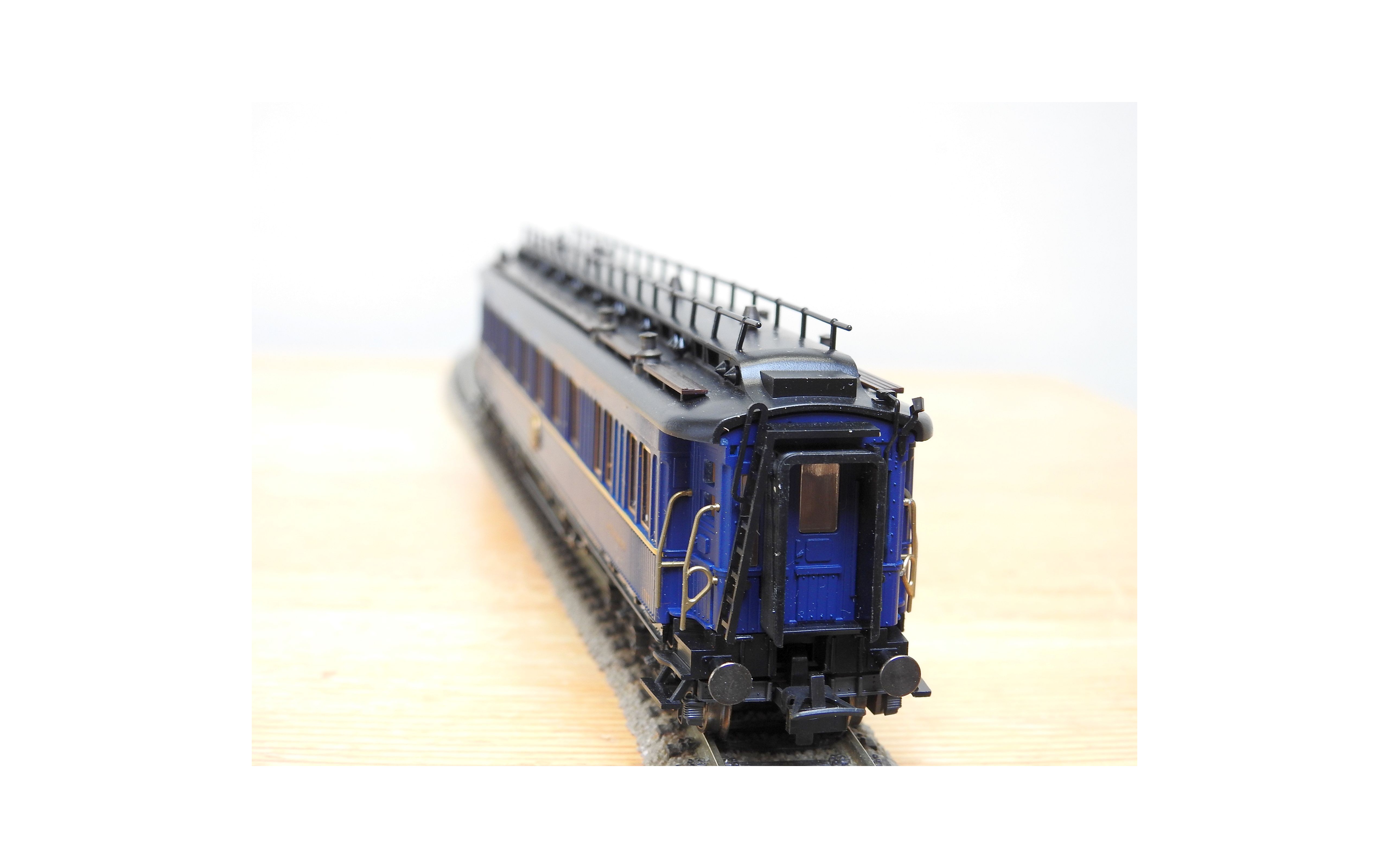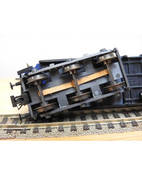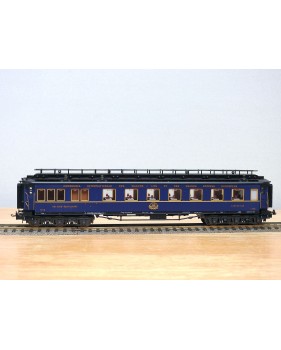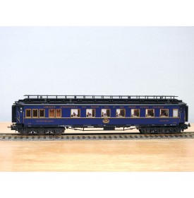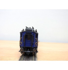 Très jolie voiture restaurant en teck à 2 bogies de 3 essieux de la CIWL, élégante livrée bleue à toit noir, aménagements et éclairage intérieurs ( testé partiellement OK ), immatriculation : 1702, boîte d'origine en bon état.