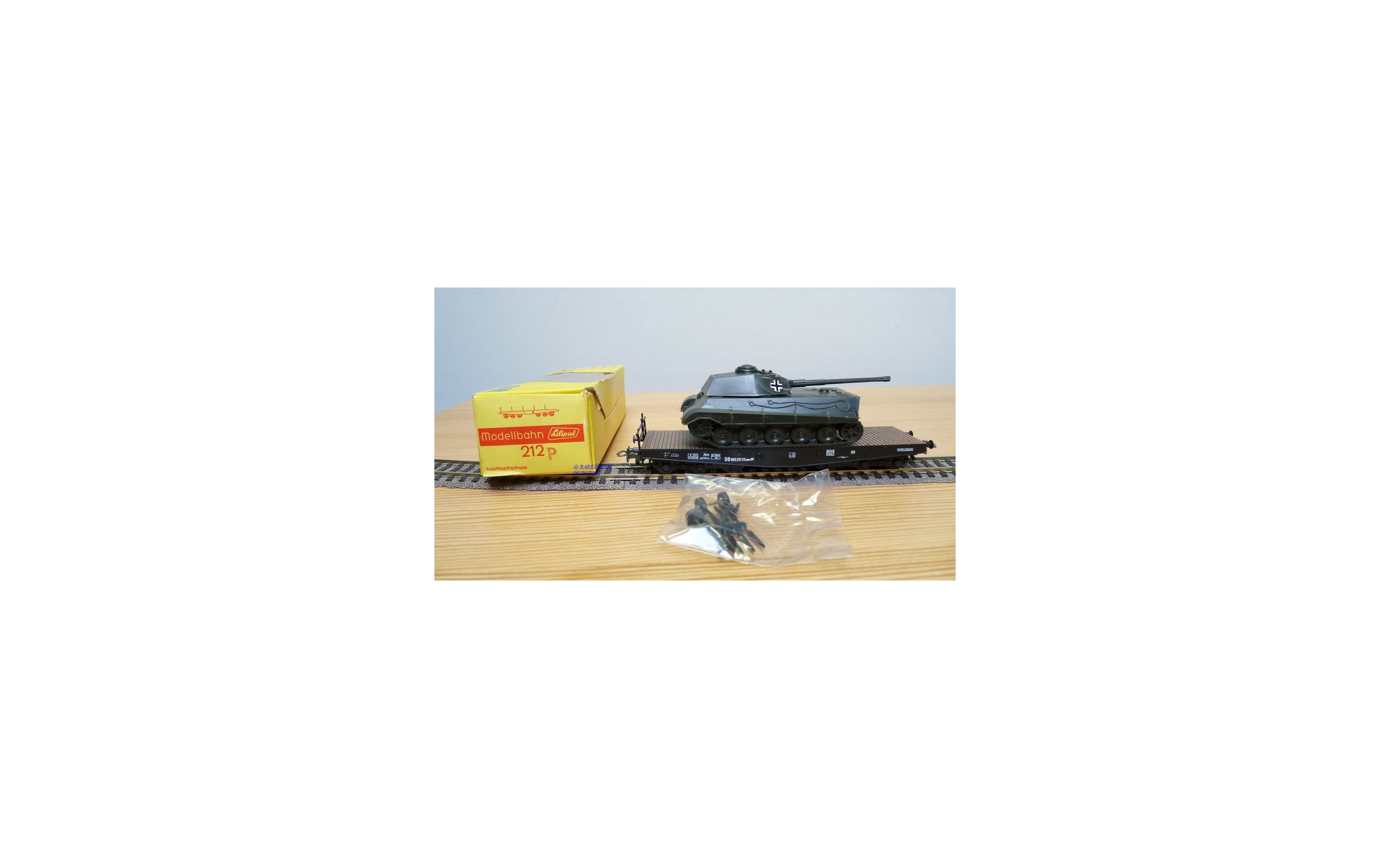 LILIPUT 212p, wagon plat pour charges lourdes type SSym 46 chargé d'un char Königstiger allemand DB BO (Ref: #212p)
