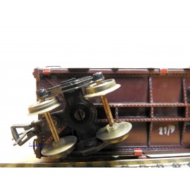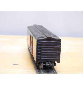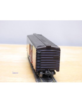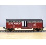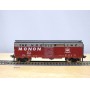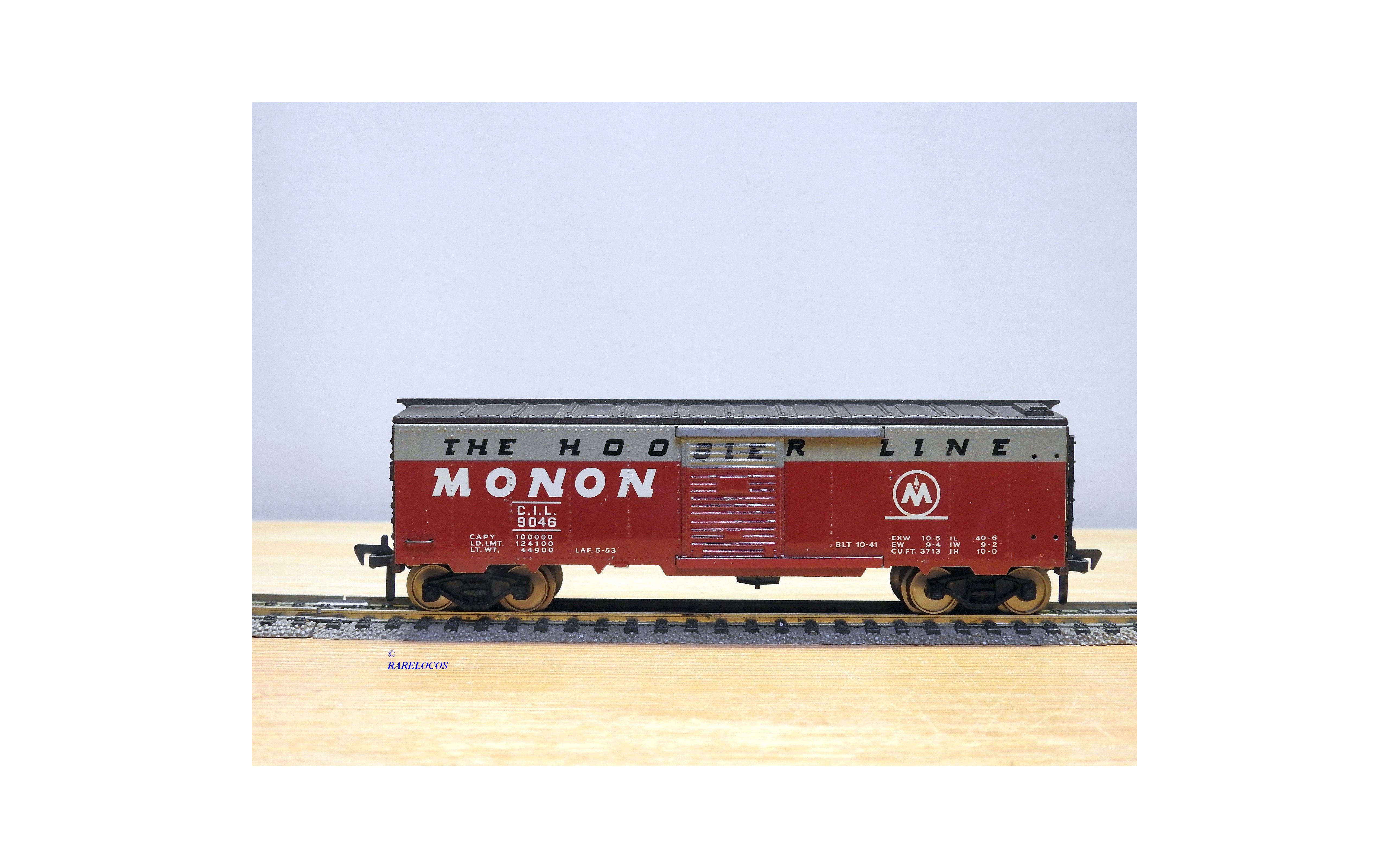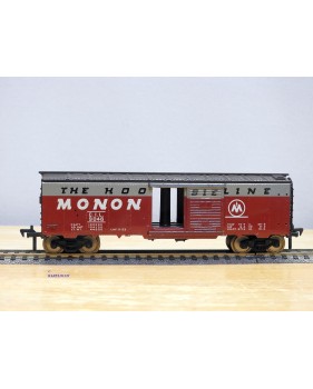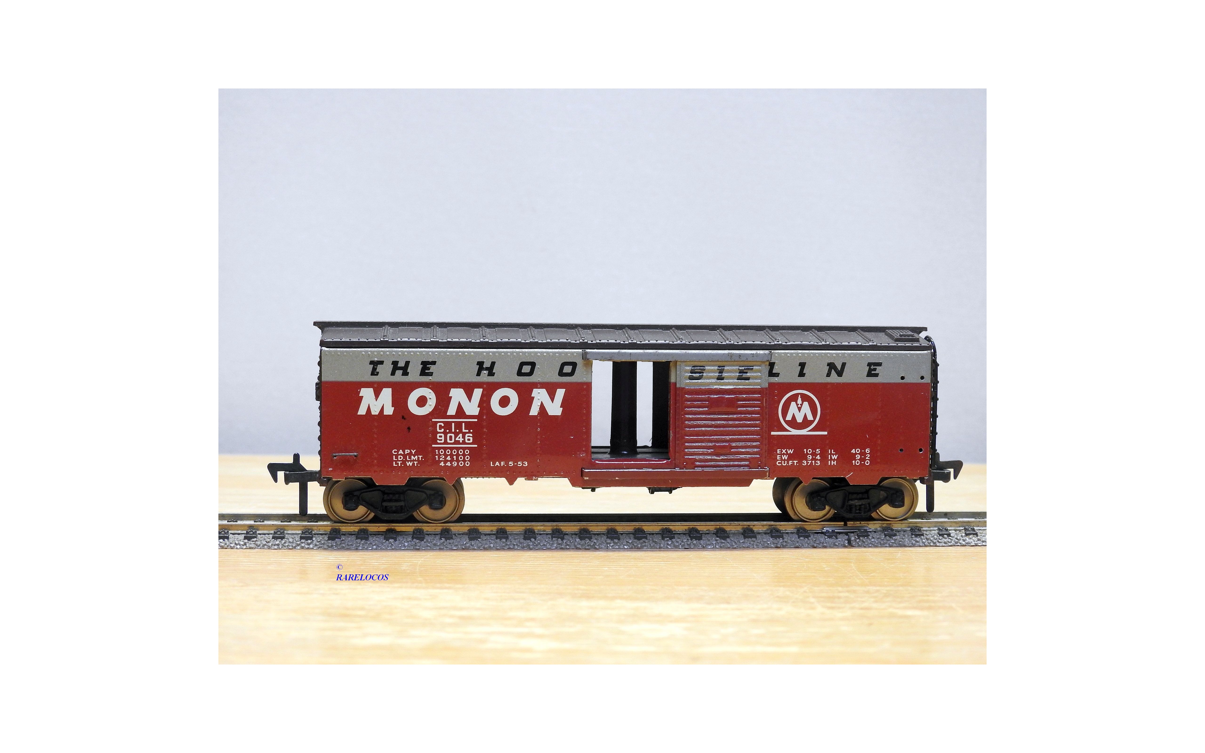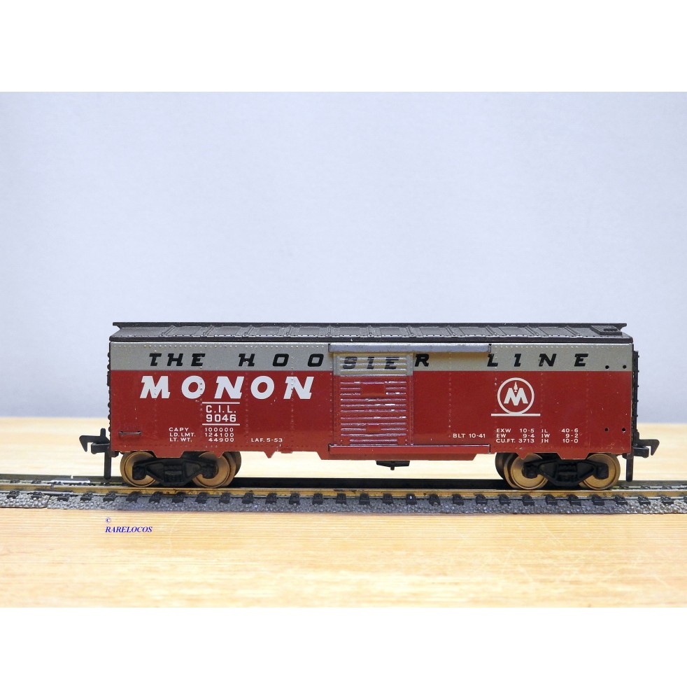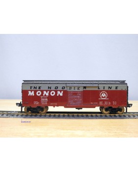 Rare wagon couvert à bogies ( boxcar) des chemins de fer américains ( MONON : Louisville & Nashville Railroad) , livrée rouge brique et grise à toit marron, marquages "The Hoosier Line ", portes coulissantes fonctionnelles, pas de boîte d'origine .