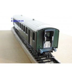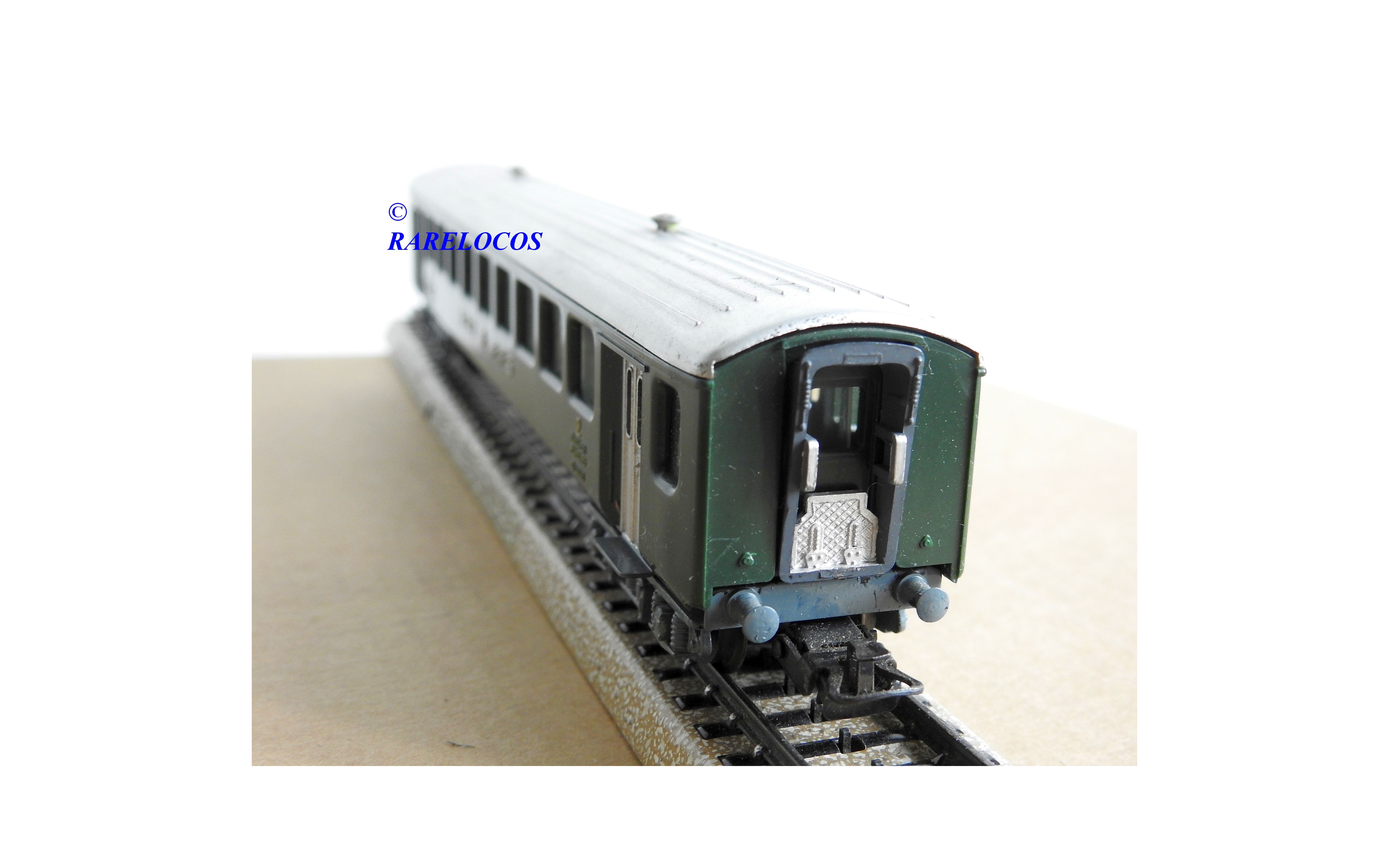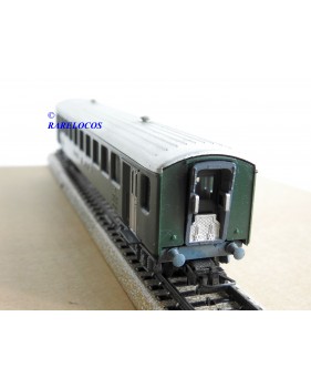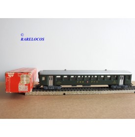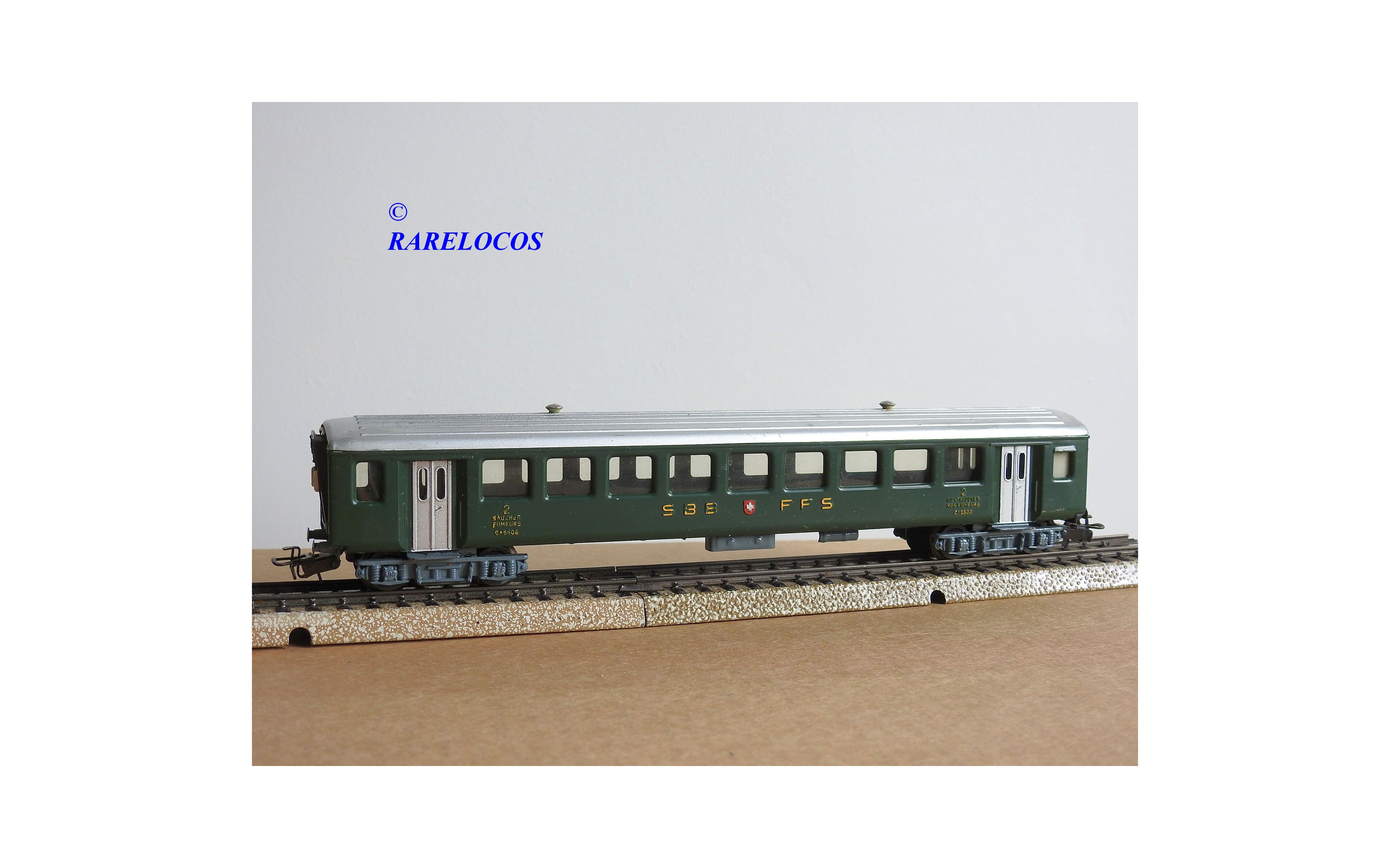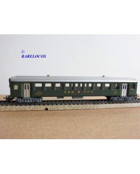 Voiture unifiée  de 2 ème  classe  type  C  des chemins de fer suisses ( SBB / CFF / FFS ), livrée vert sapin à toit gris argent, inscriptions  en relief, immatriculation : C4 6508,  boîte d'origine en bon état.