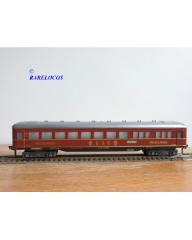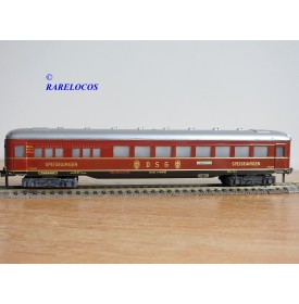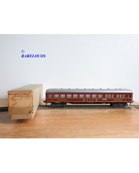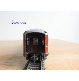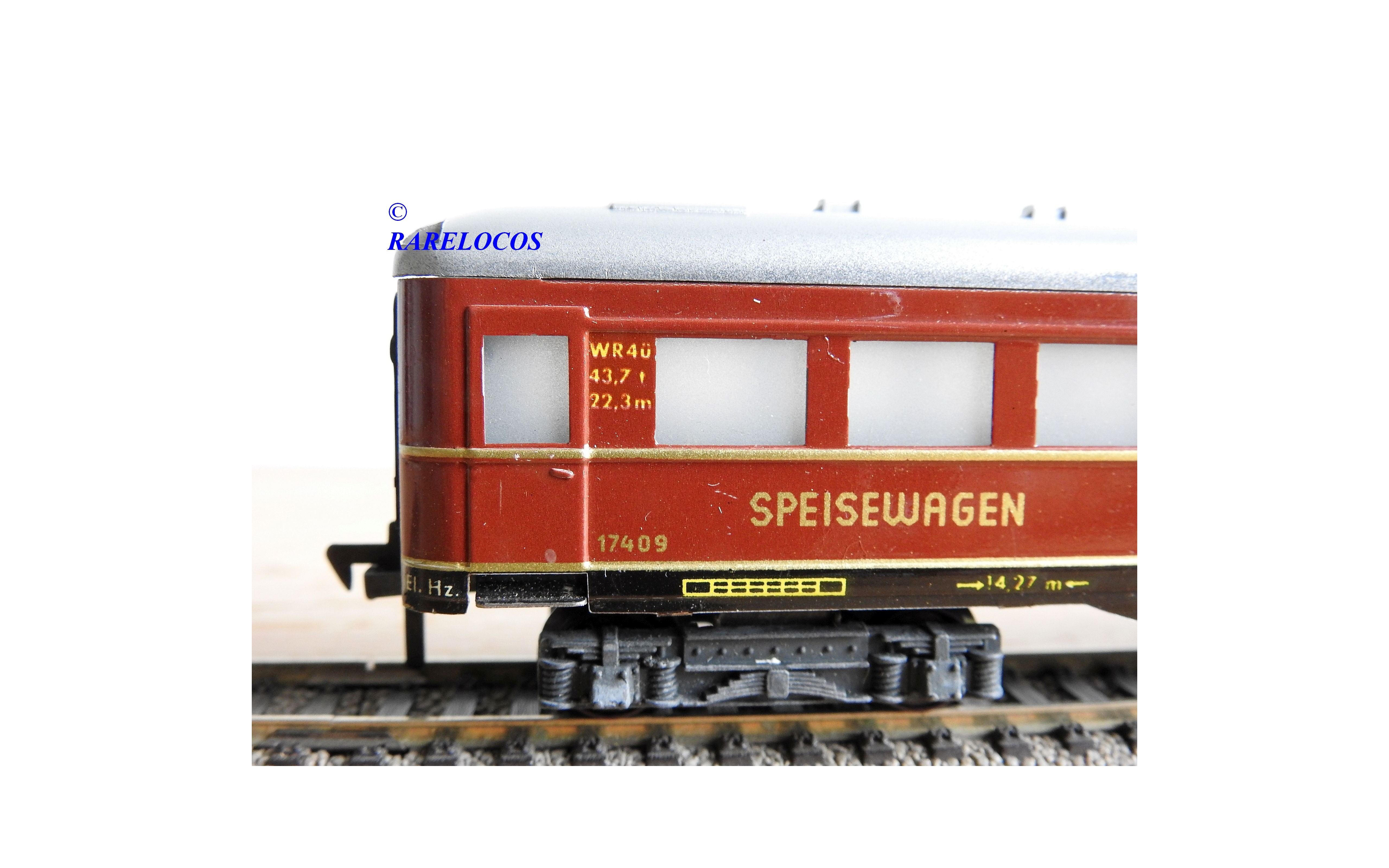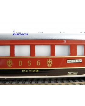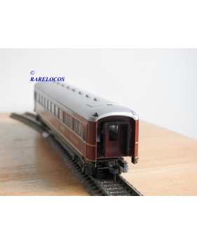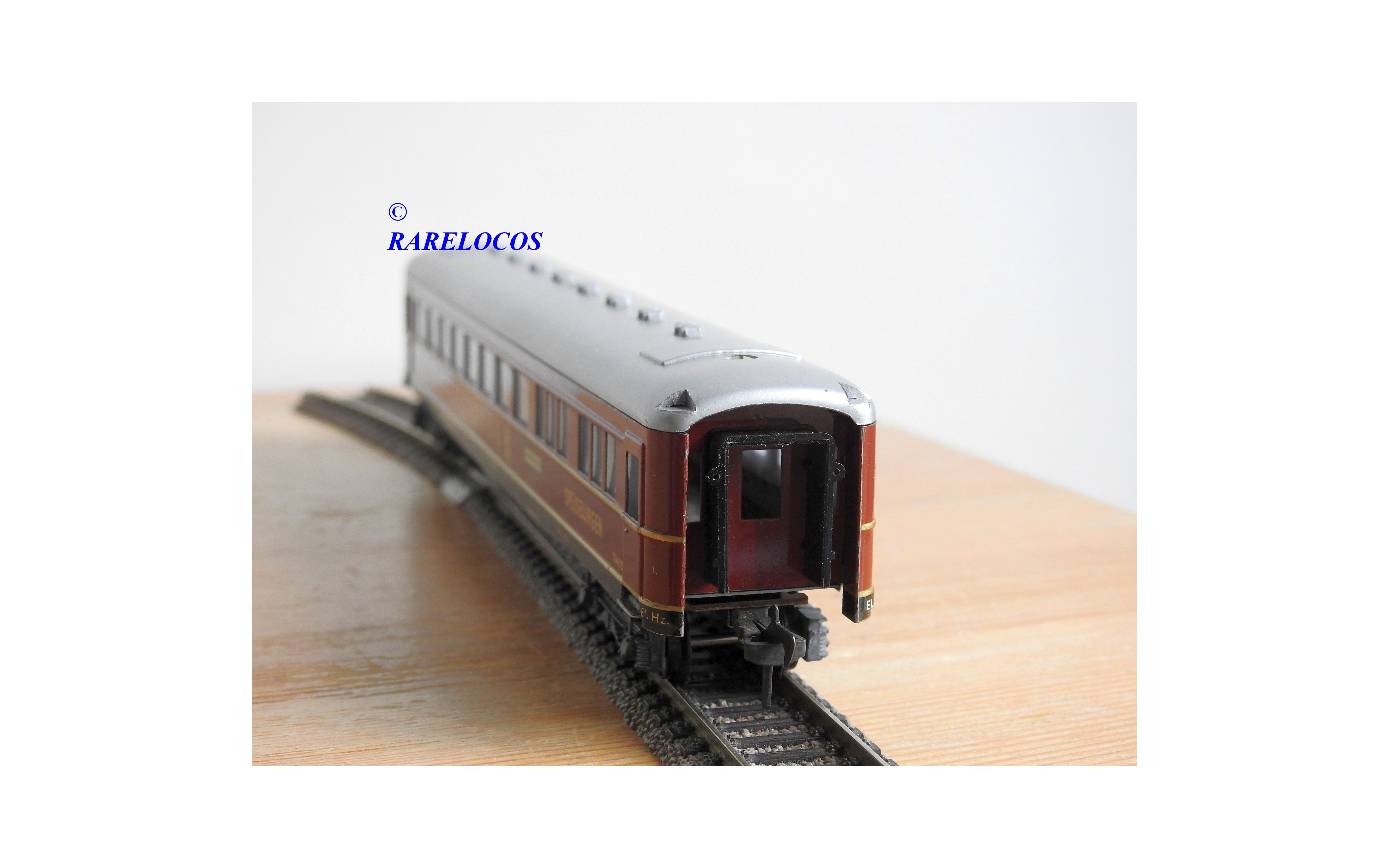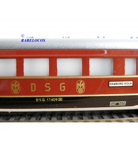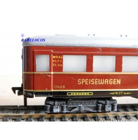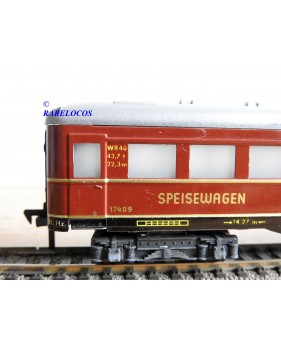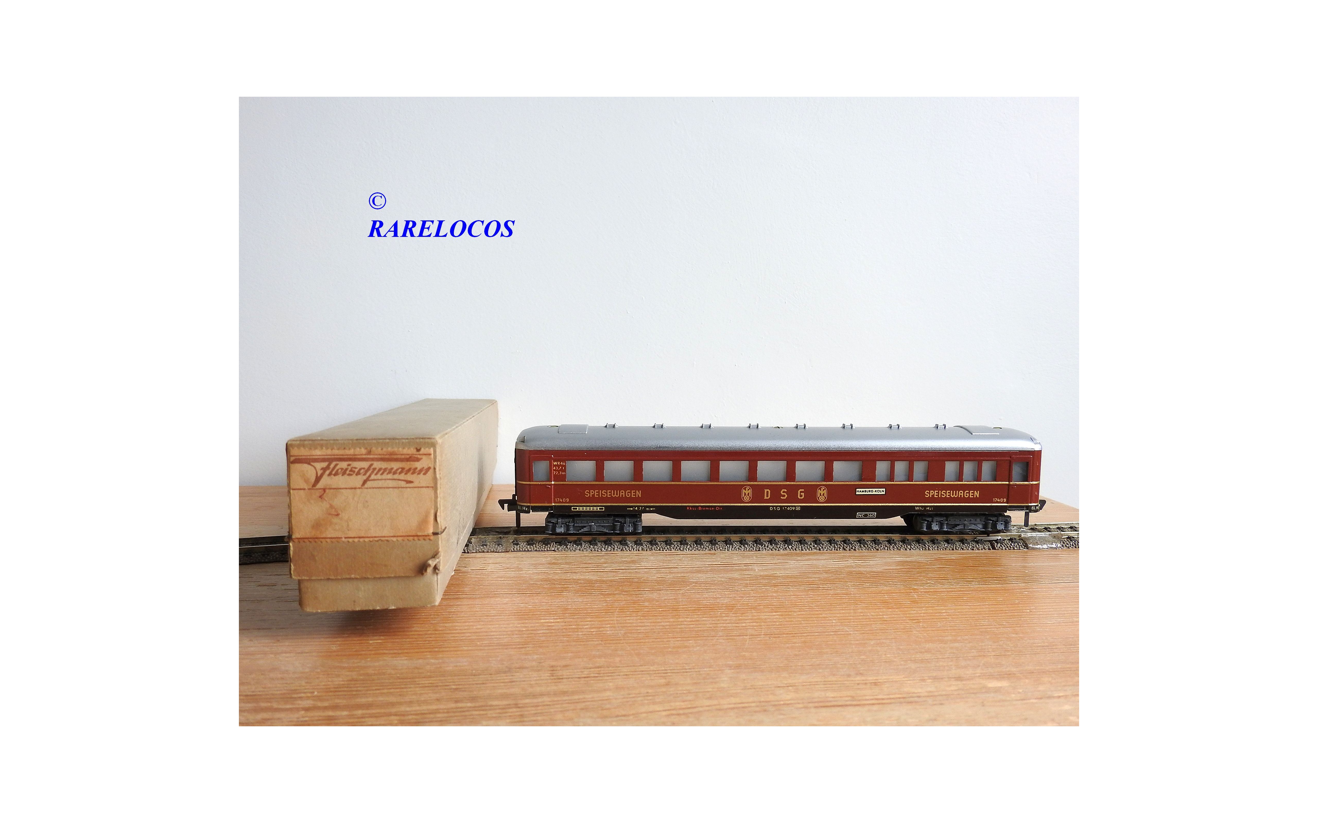 Voiture restaurant des chemins de fer allemands ( DSG ), caisse en tôle, toit en plastique, livrée lie de vin, boîte d'origine en très bon état.