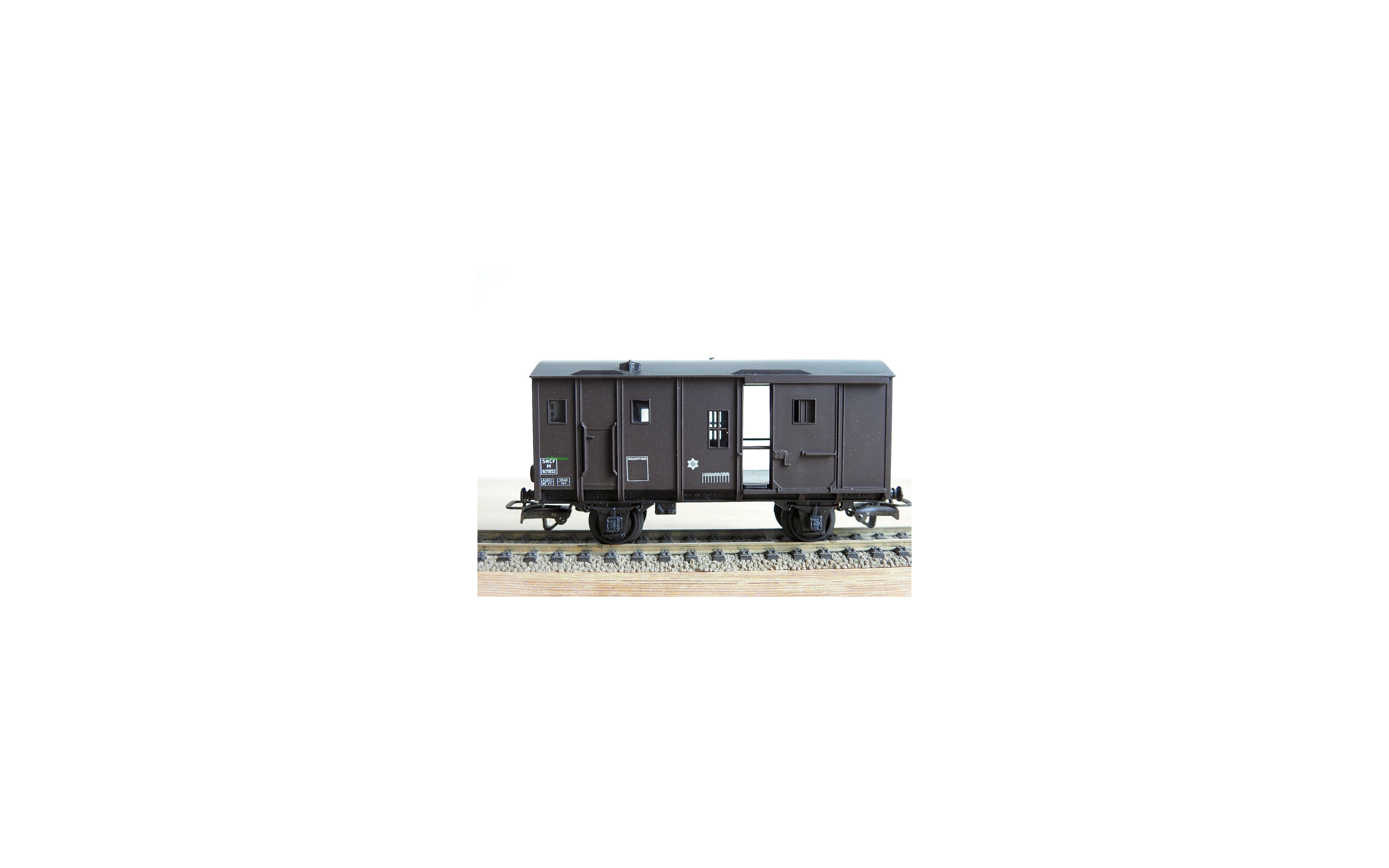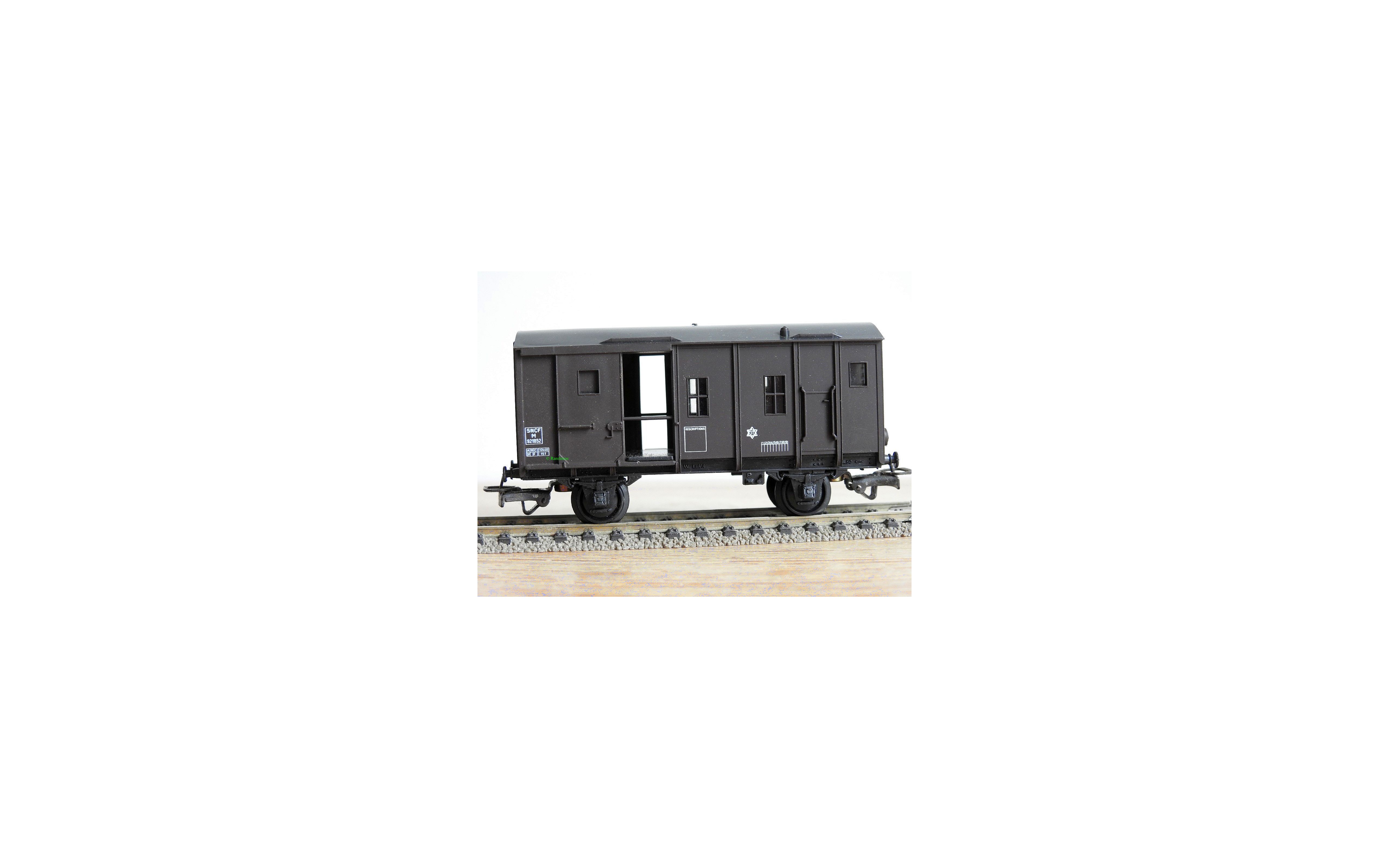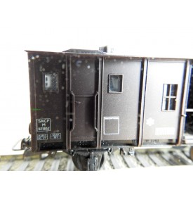 Fourgon à 2 essieux type M des chemins de fer français ( SNCF ), livrée brun foncé à toit noir, immatriculation : M 921852,boîte d'origine en très bon état .