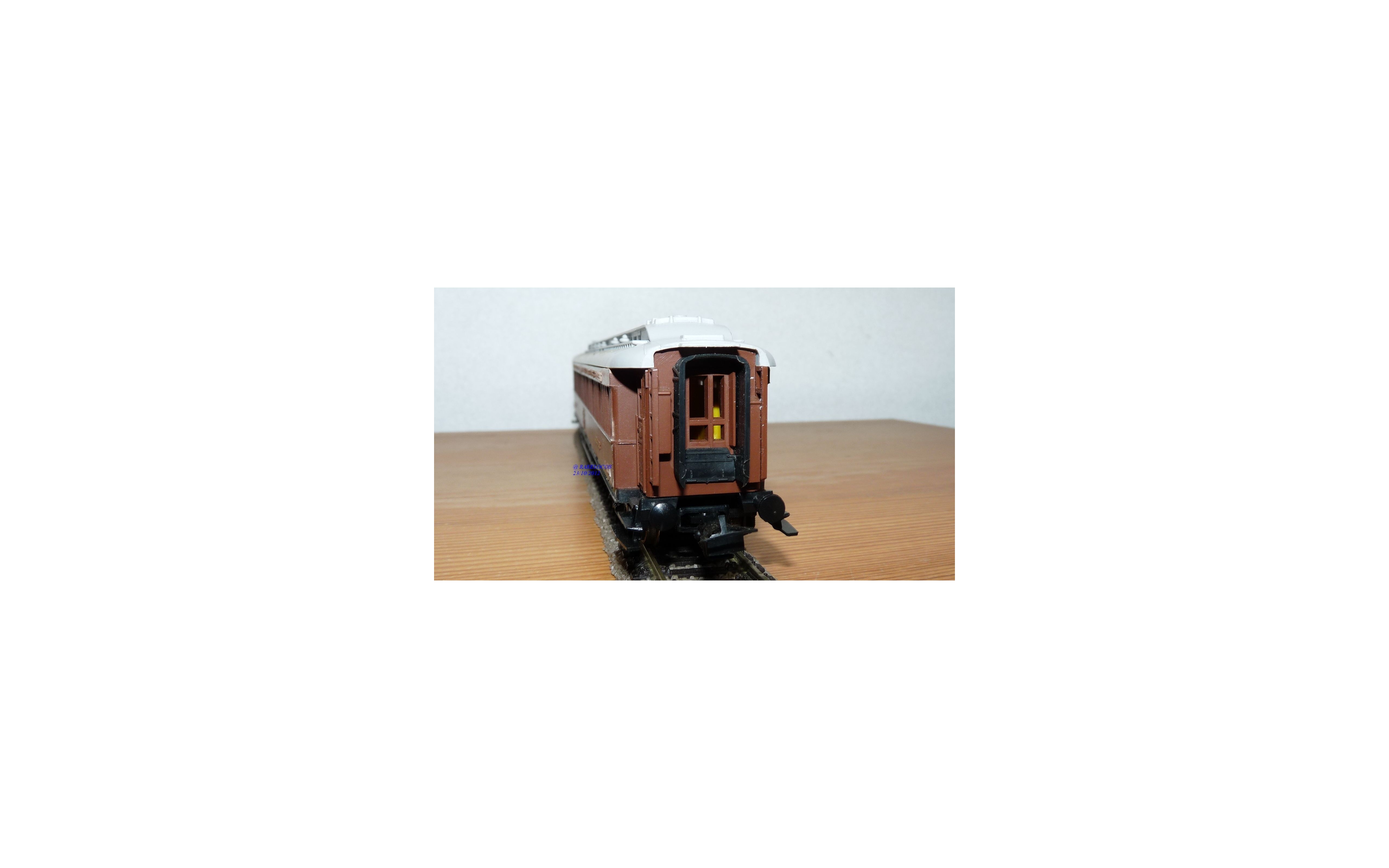 Voiture lits en teck à 2 bogies des chemins de fer français ( CIWL ), livrée brune à toit blanc, aménagements intérieurs, immatriculation : 1660 A, boîte d'origine en excellent état .