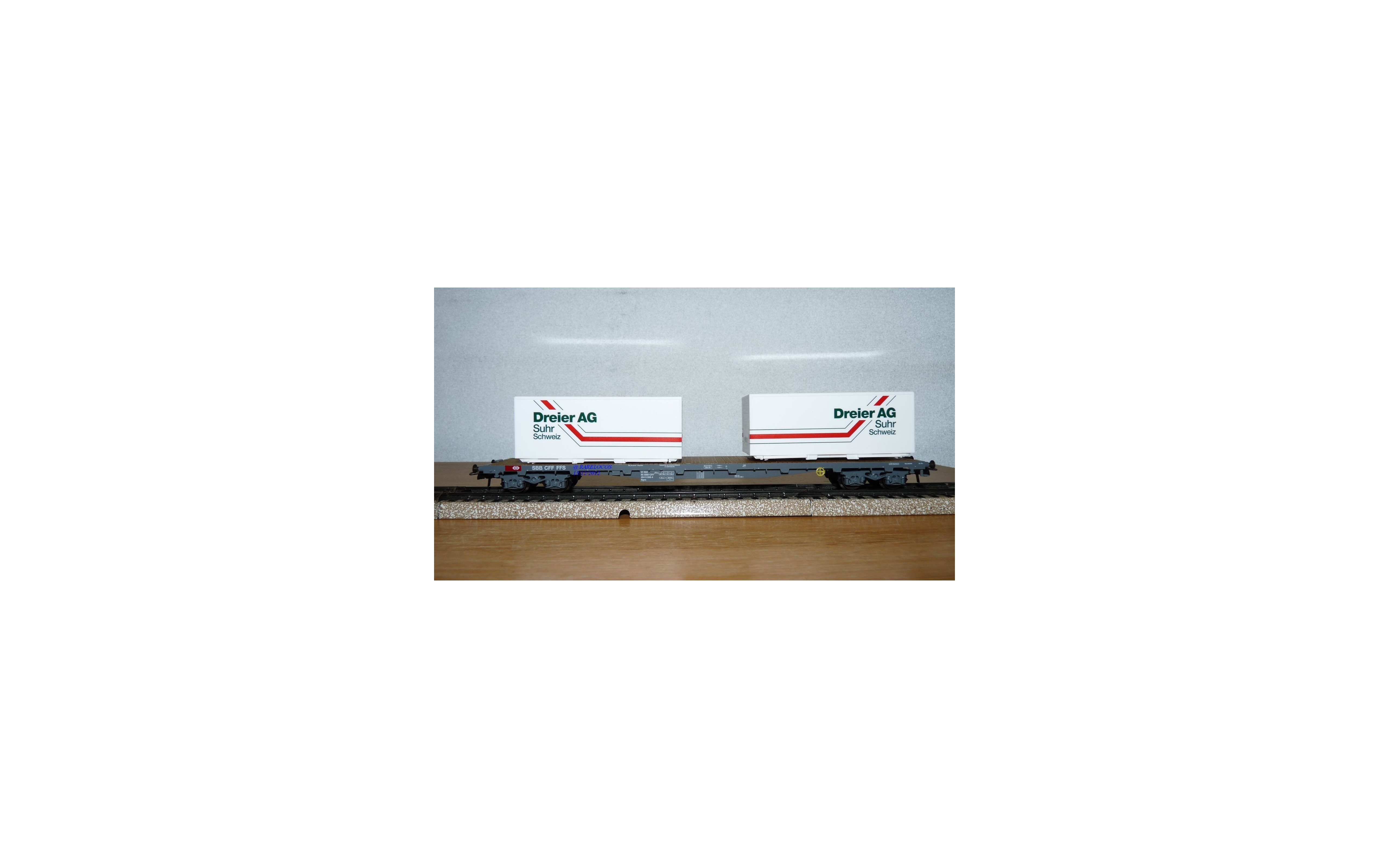 HAG 372 . 01, wagon plat type Sgss avec 2 conteneurs sur pieds DREIER SBB BO (Ref: #372 . 01)