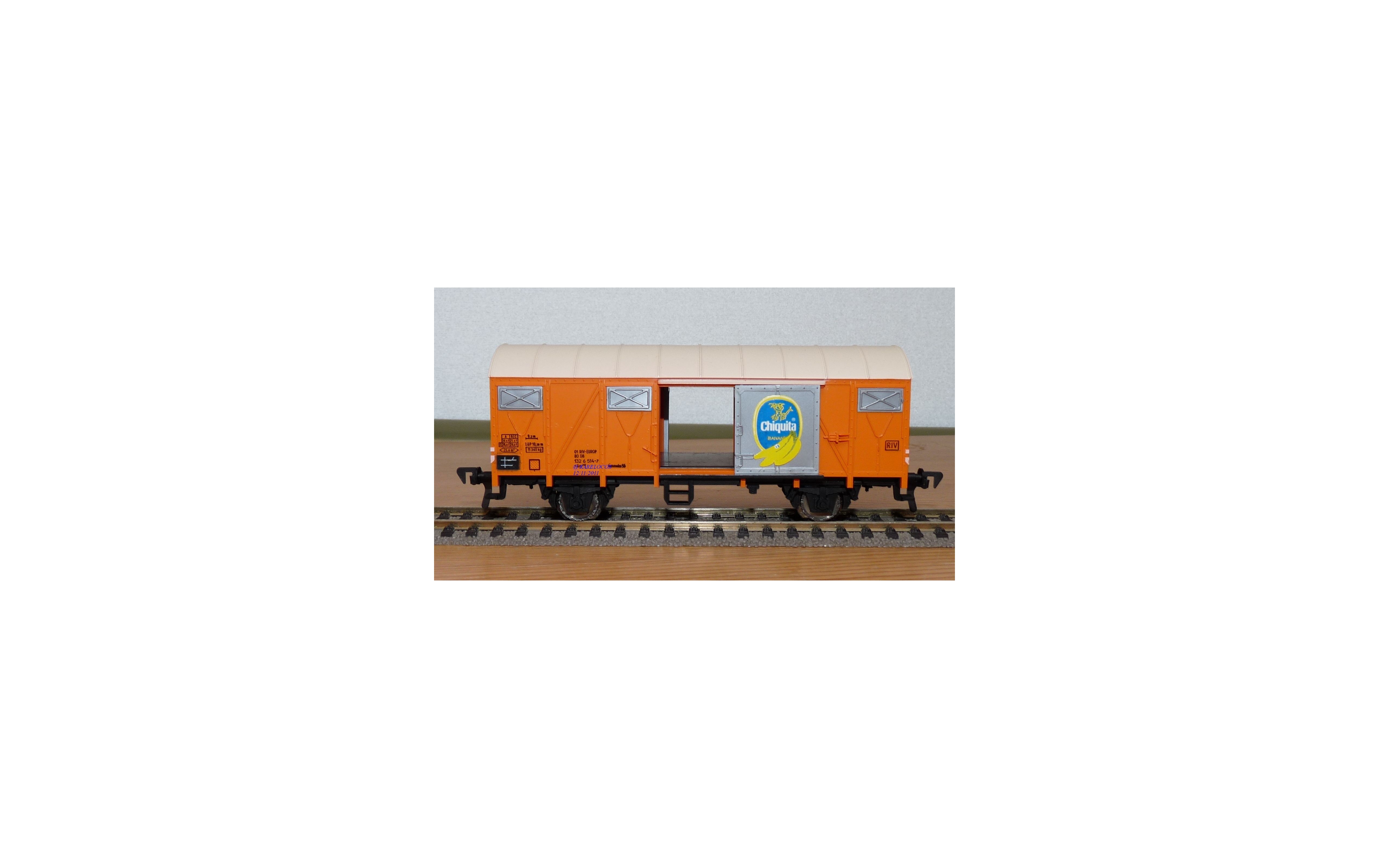 Wagon couvert à 2 essieux pour le transport de bananes des chemins de fer allemands (DB ), marquages CHIQUITA .