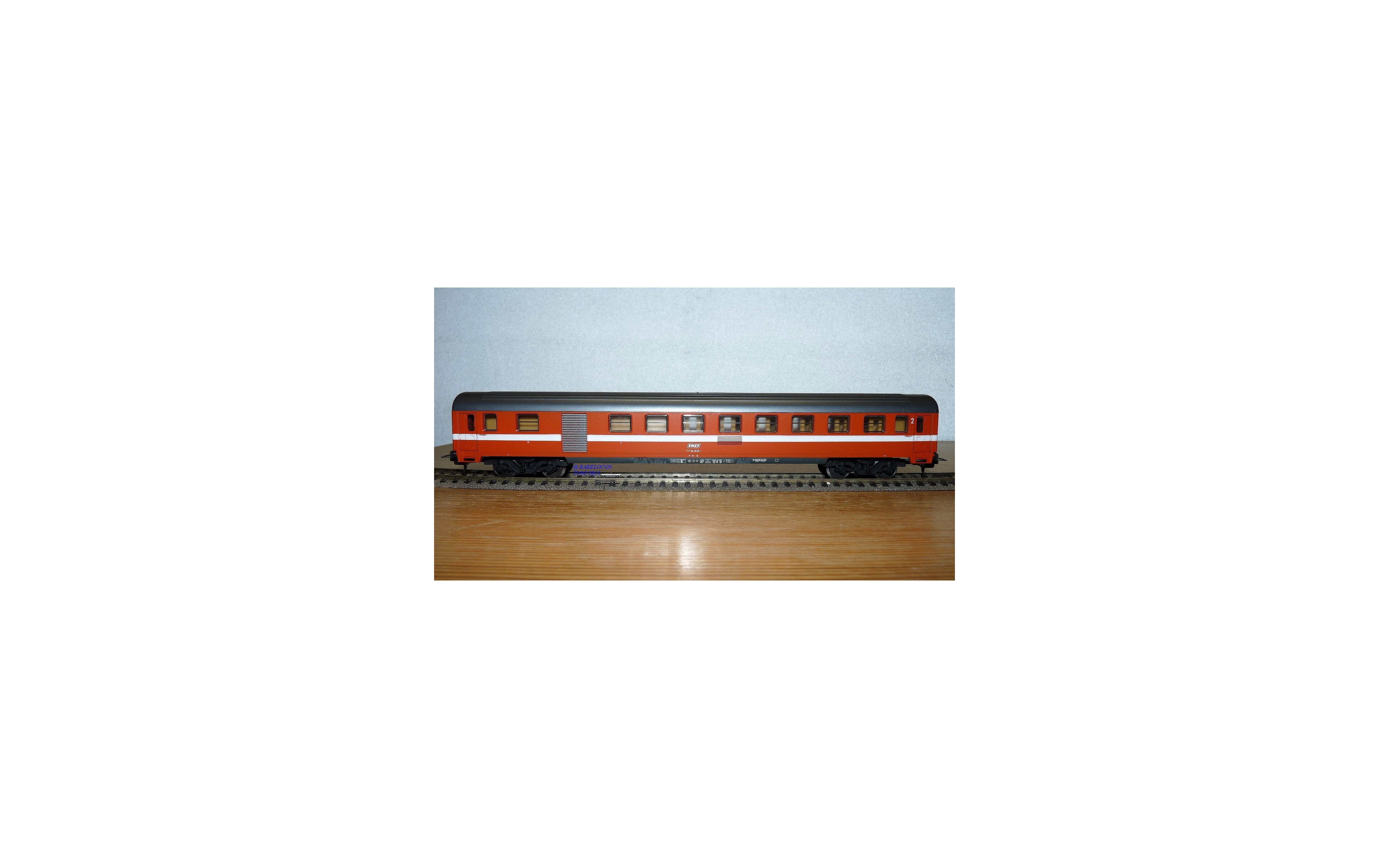 Voiture grandes lignes à bogies mixte de 2 ème classe et fourgon des chemins de fer français (SNCF), livrée orange à toit gris EUROFIMA, aménagements intérieurs, immatriculation : 51 87 82-70 274-1, boîte d'origine en état neuf .