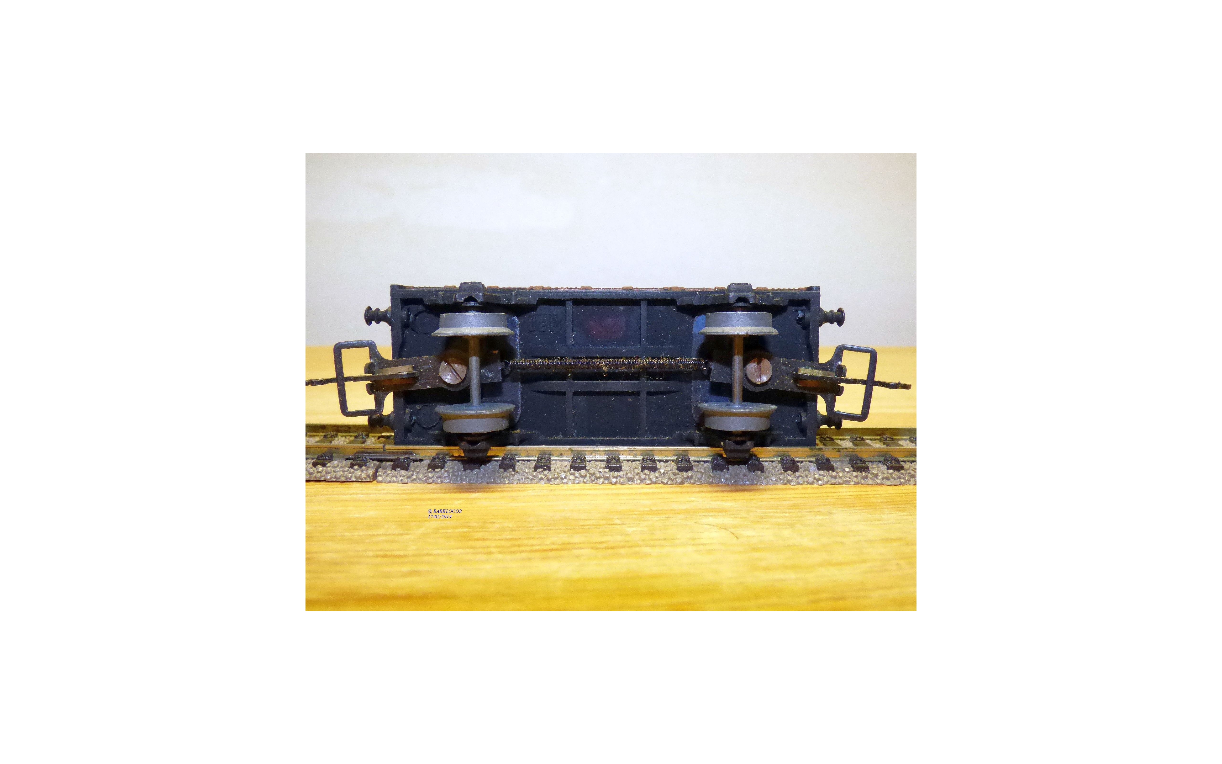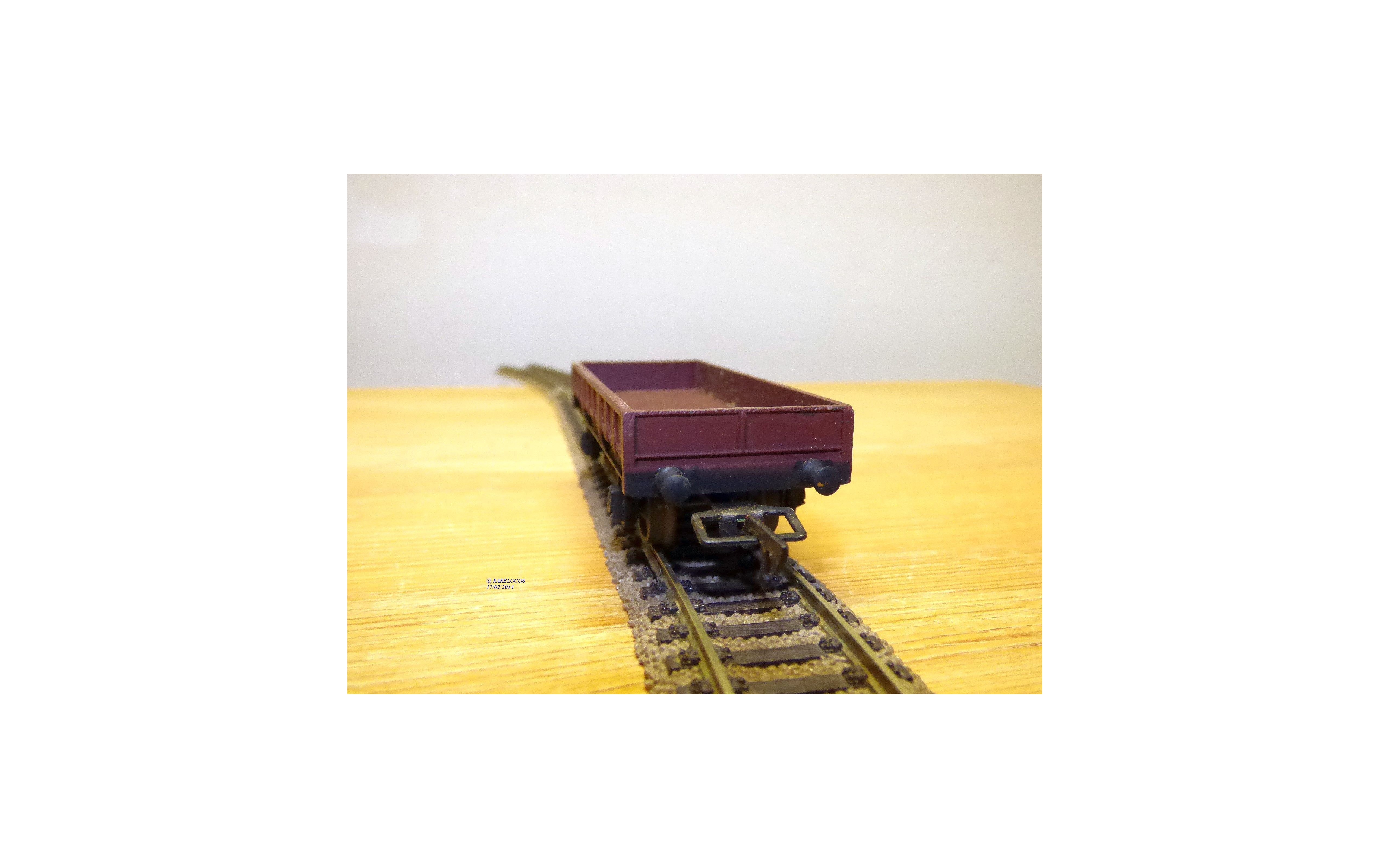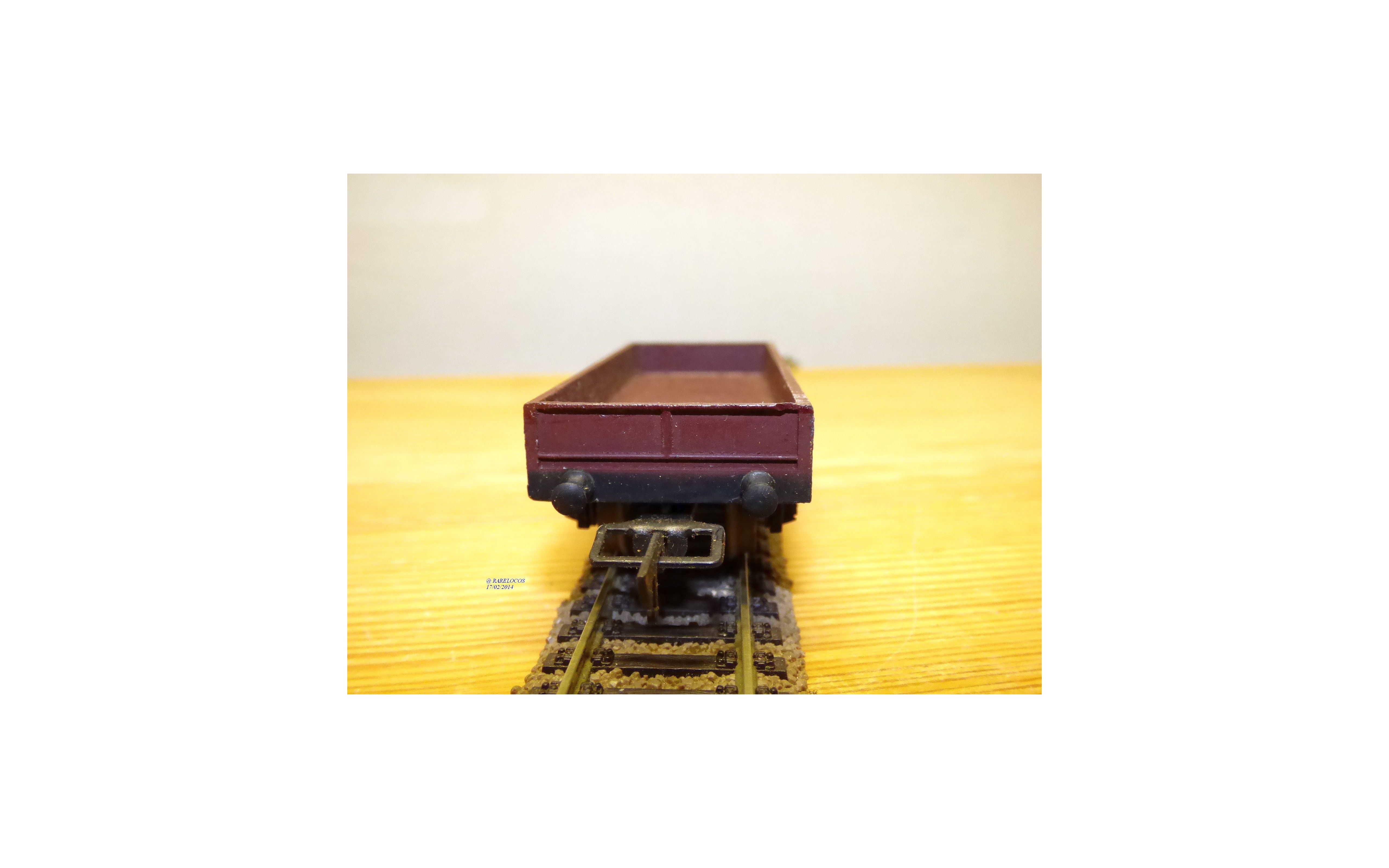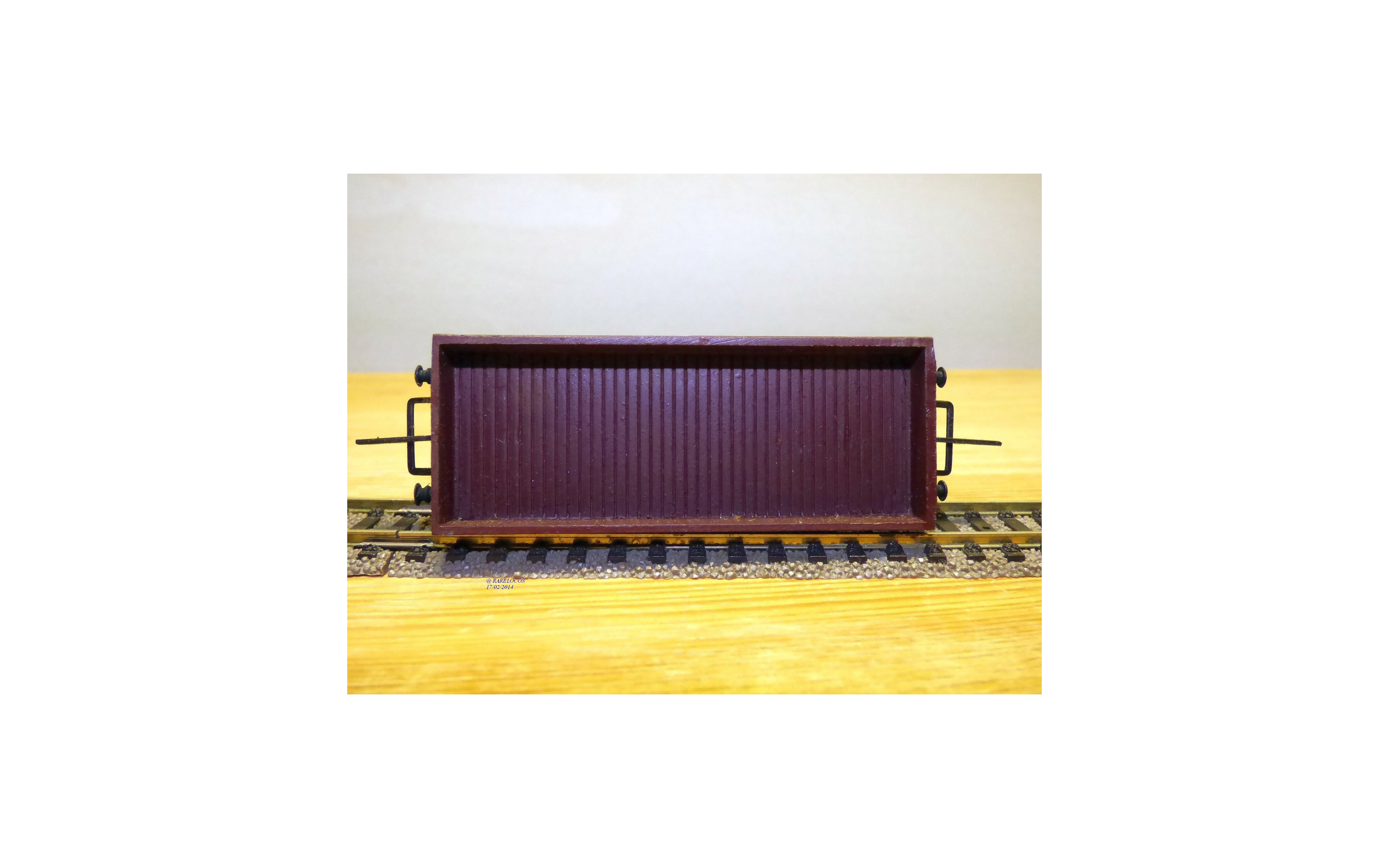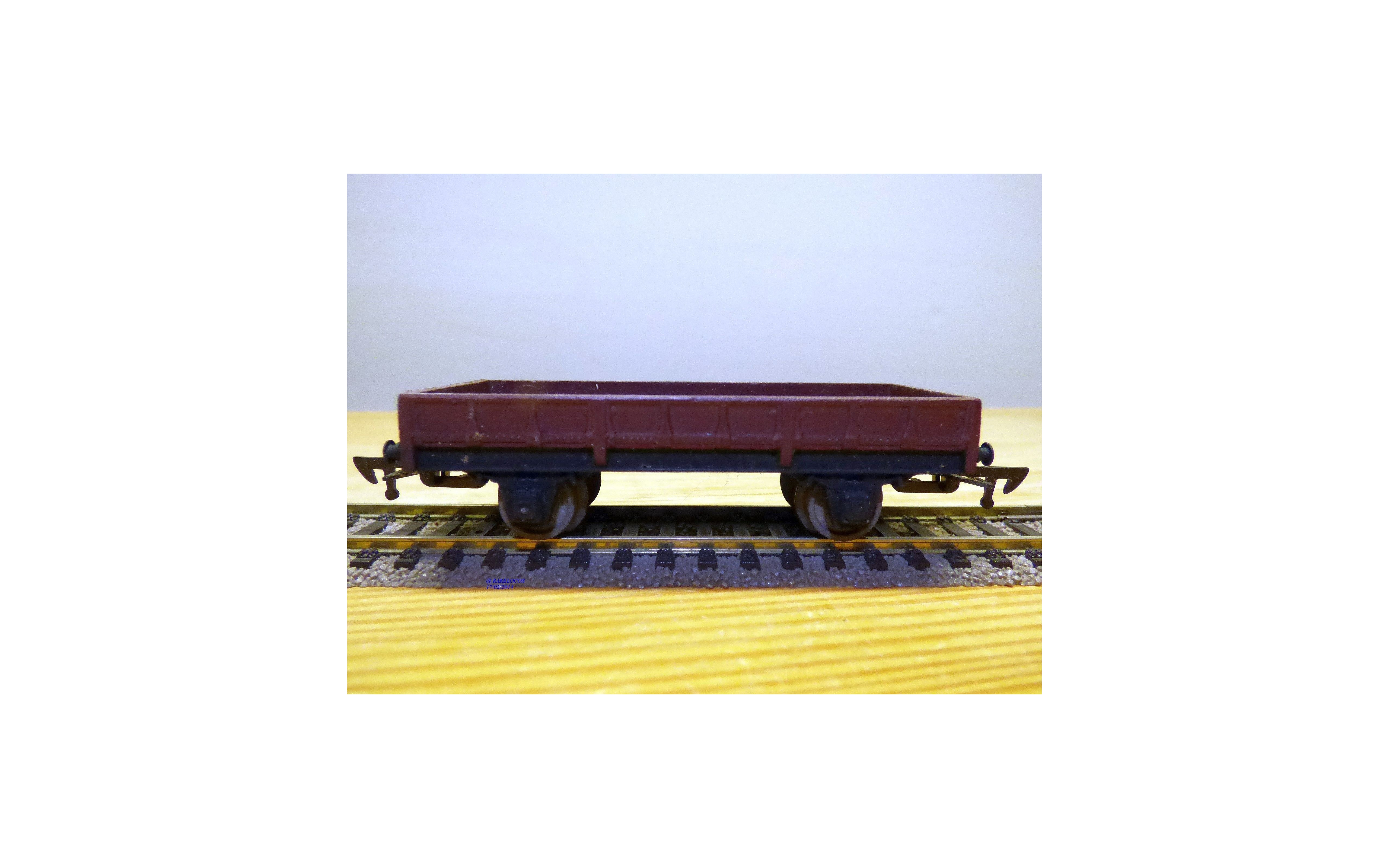 Wagon plat à 2 essieux des chemins de fer français (SNCF), tout en métal, livrée marron, boîte d'origine en état neuf.