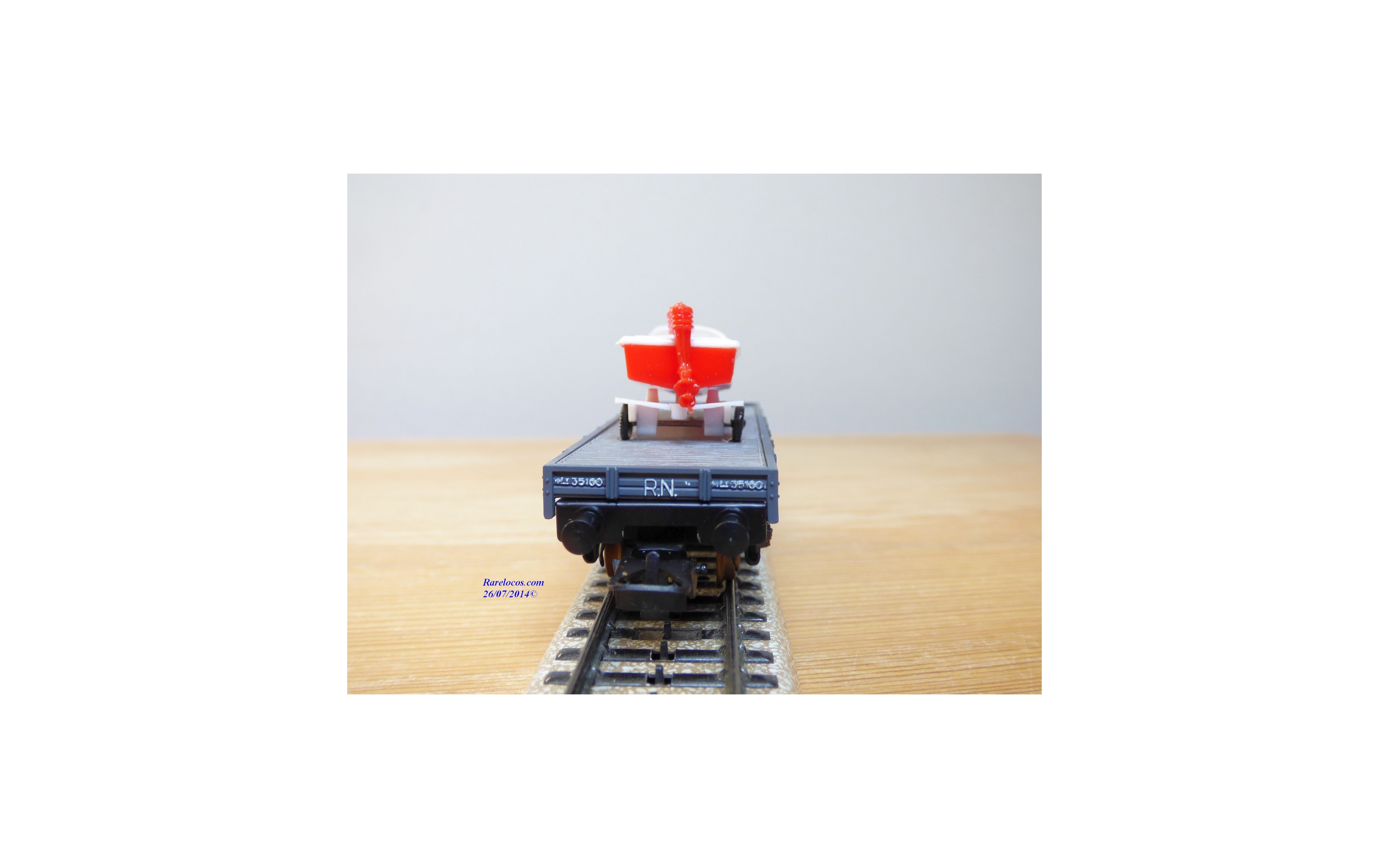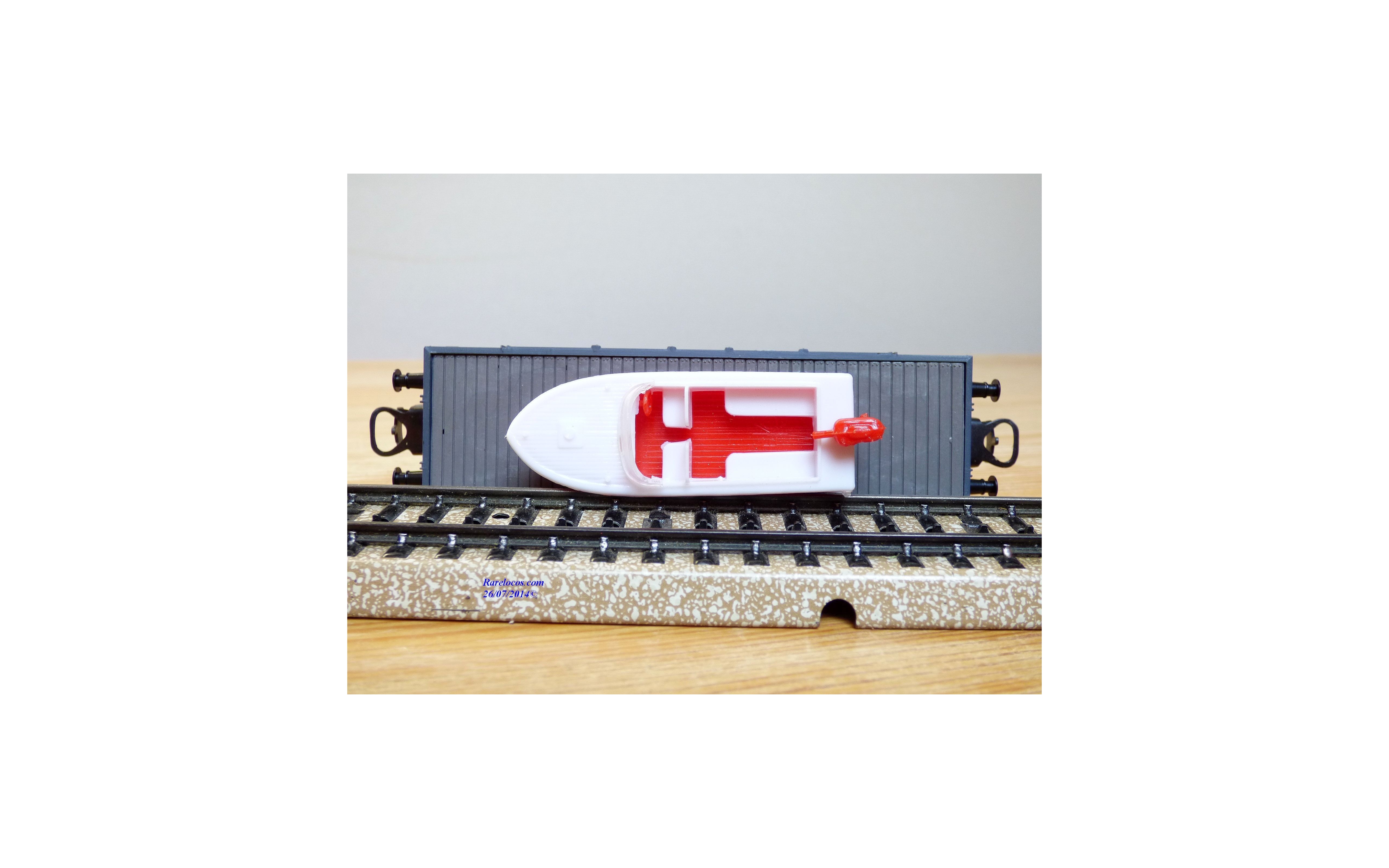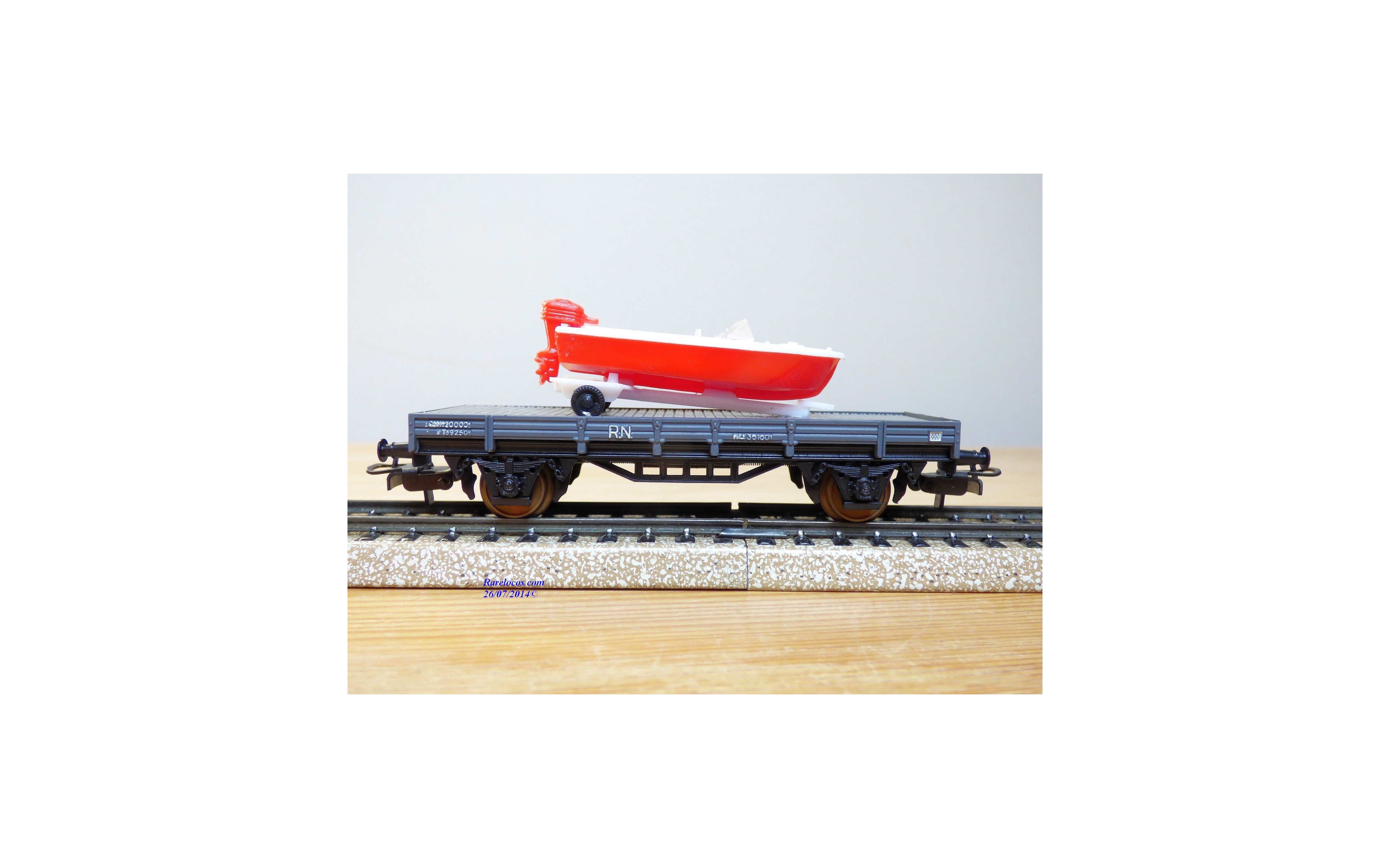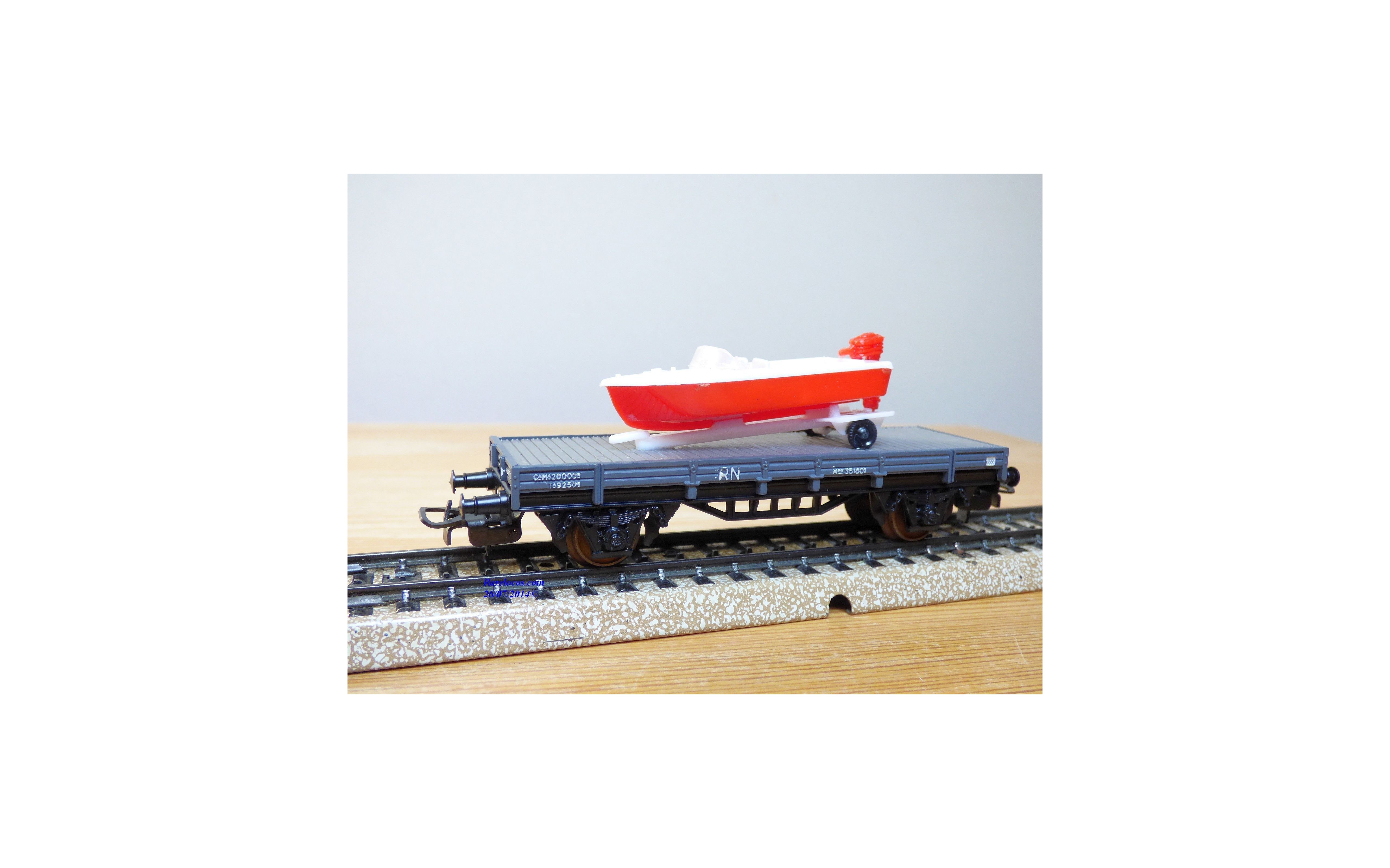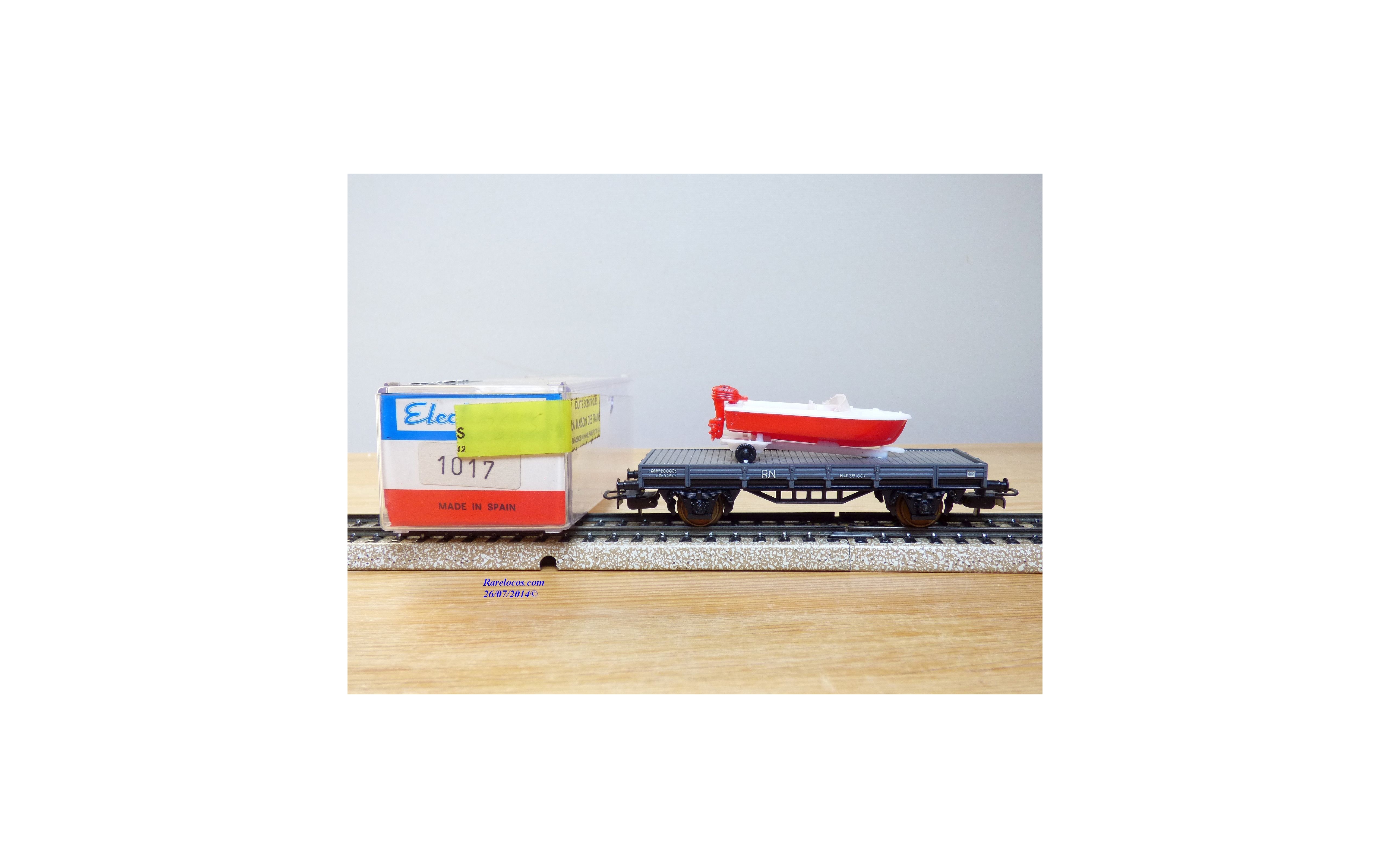 ELECTROTREN 1017, wagon plat chargé d' un canot hors bord sur remorque RENFE BO (Ref: #1017)