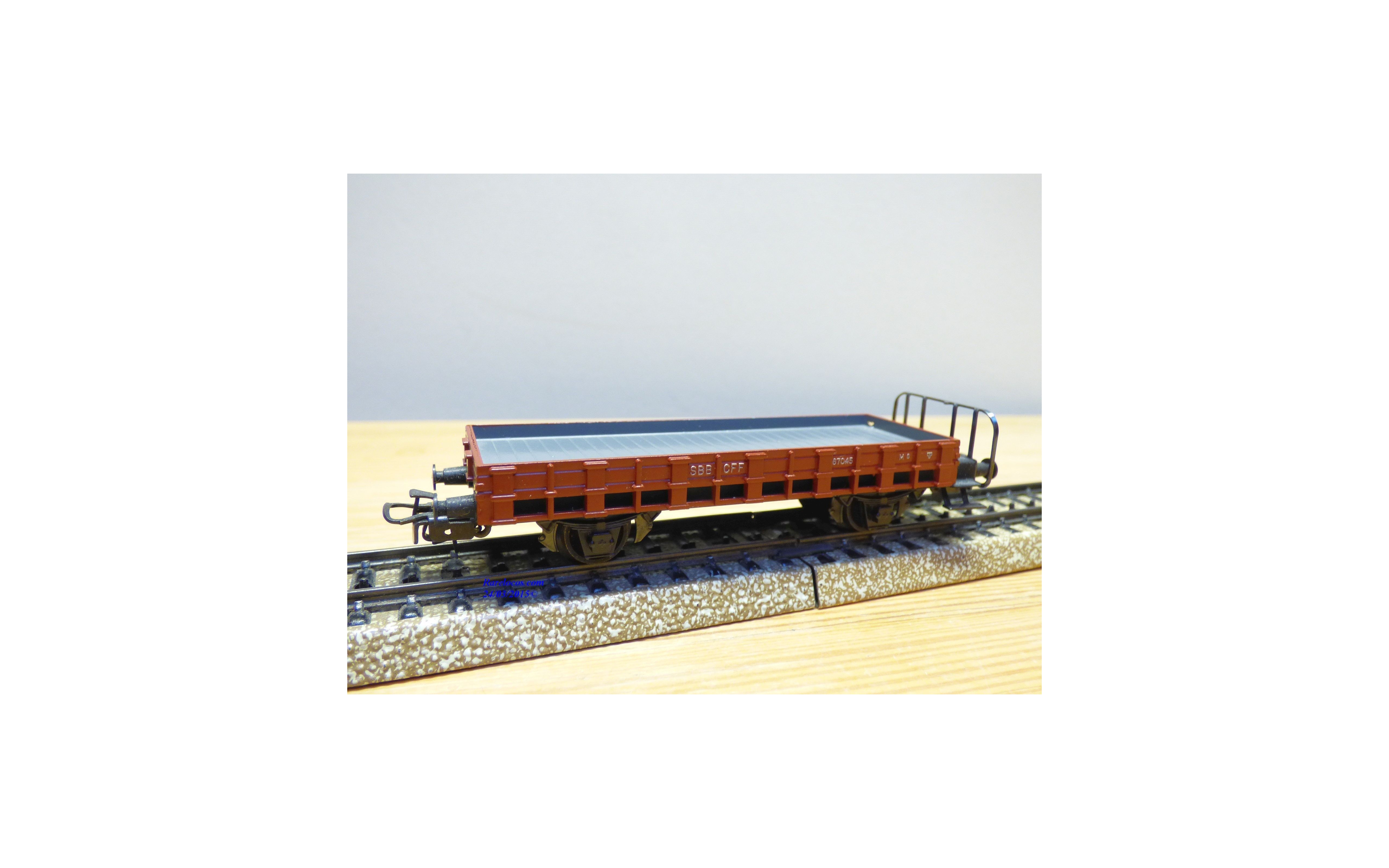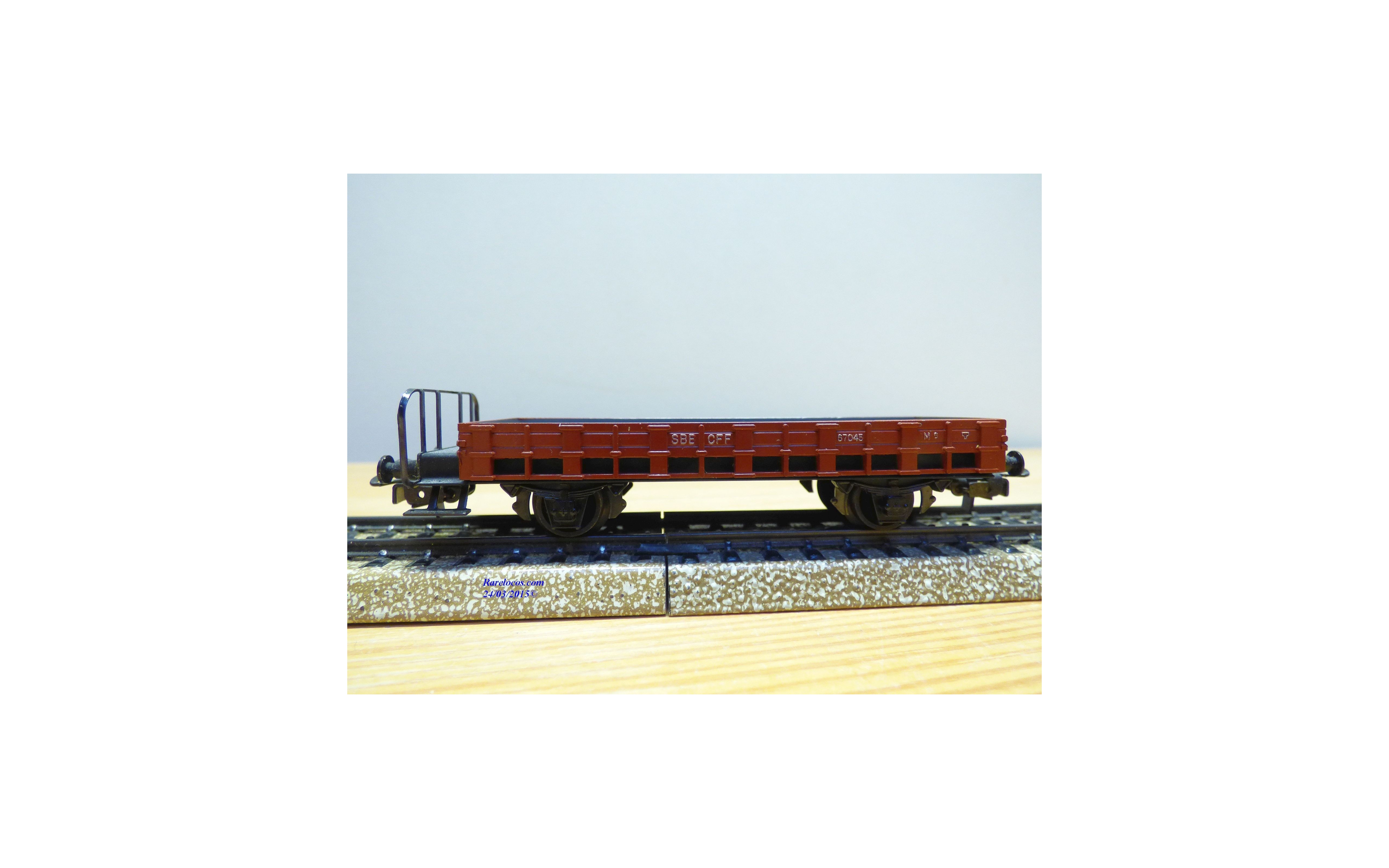 Wagon plat à plate forme d'extrémité type M6 des chemins de fer suisses ( SBB/CFF/FFS), livrée marron à plateau gris, tout en métal, immatriculation : 67045, boîte d'origine en état neuf.
