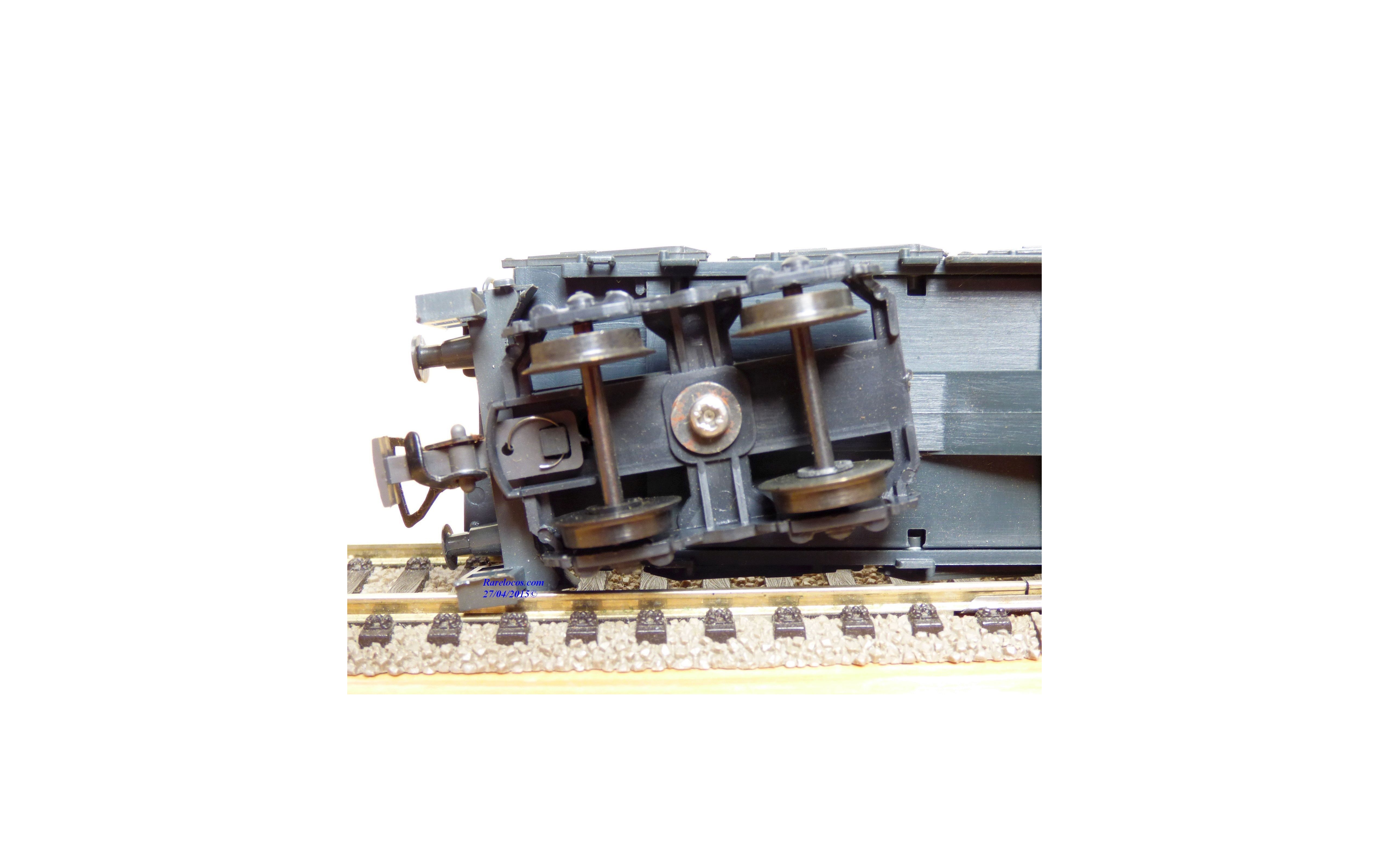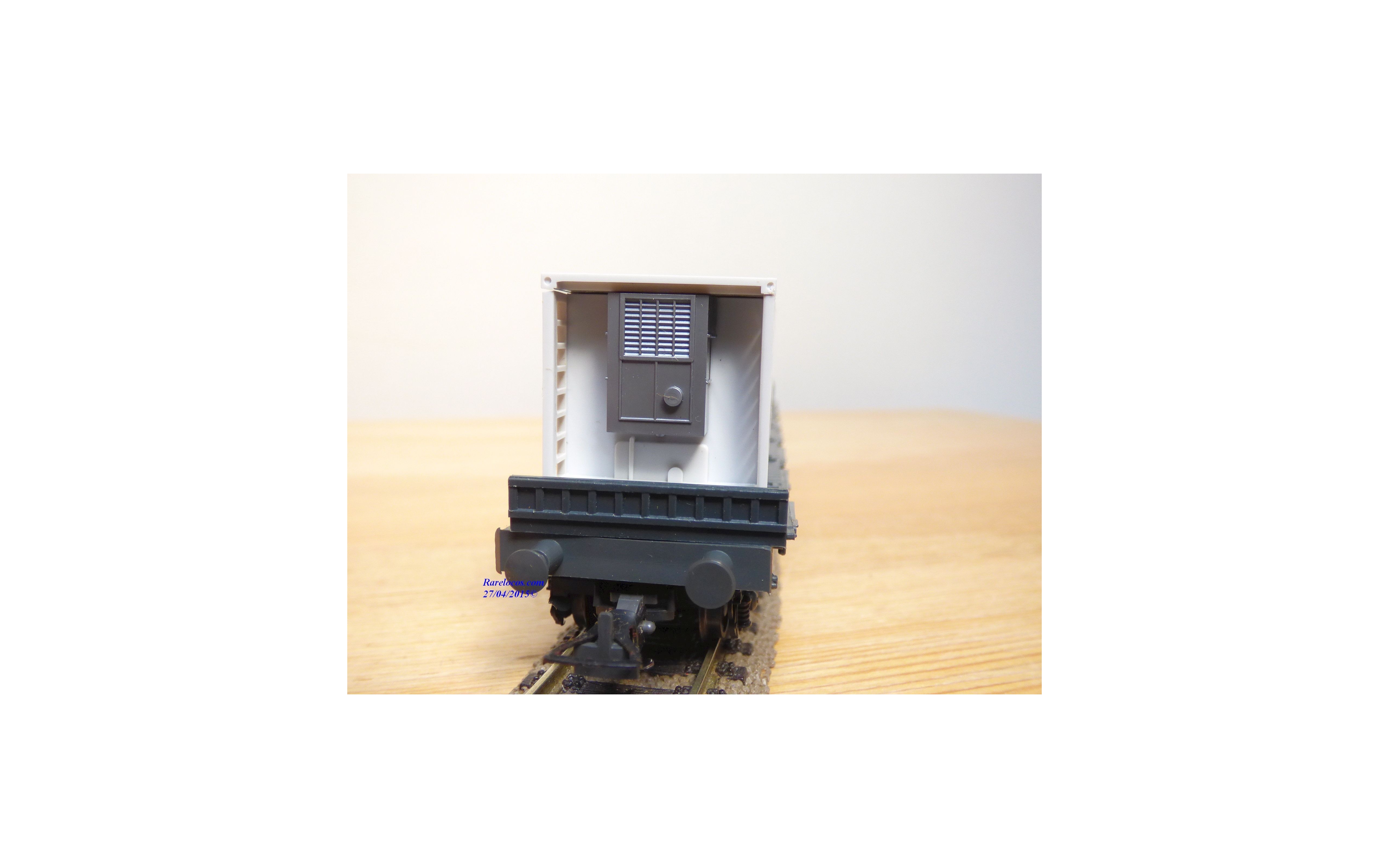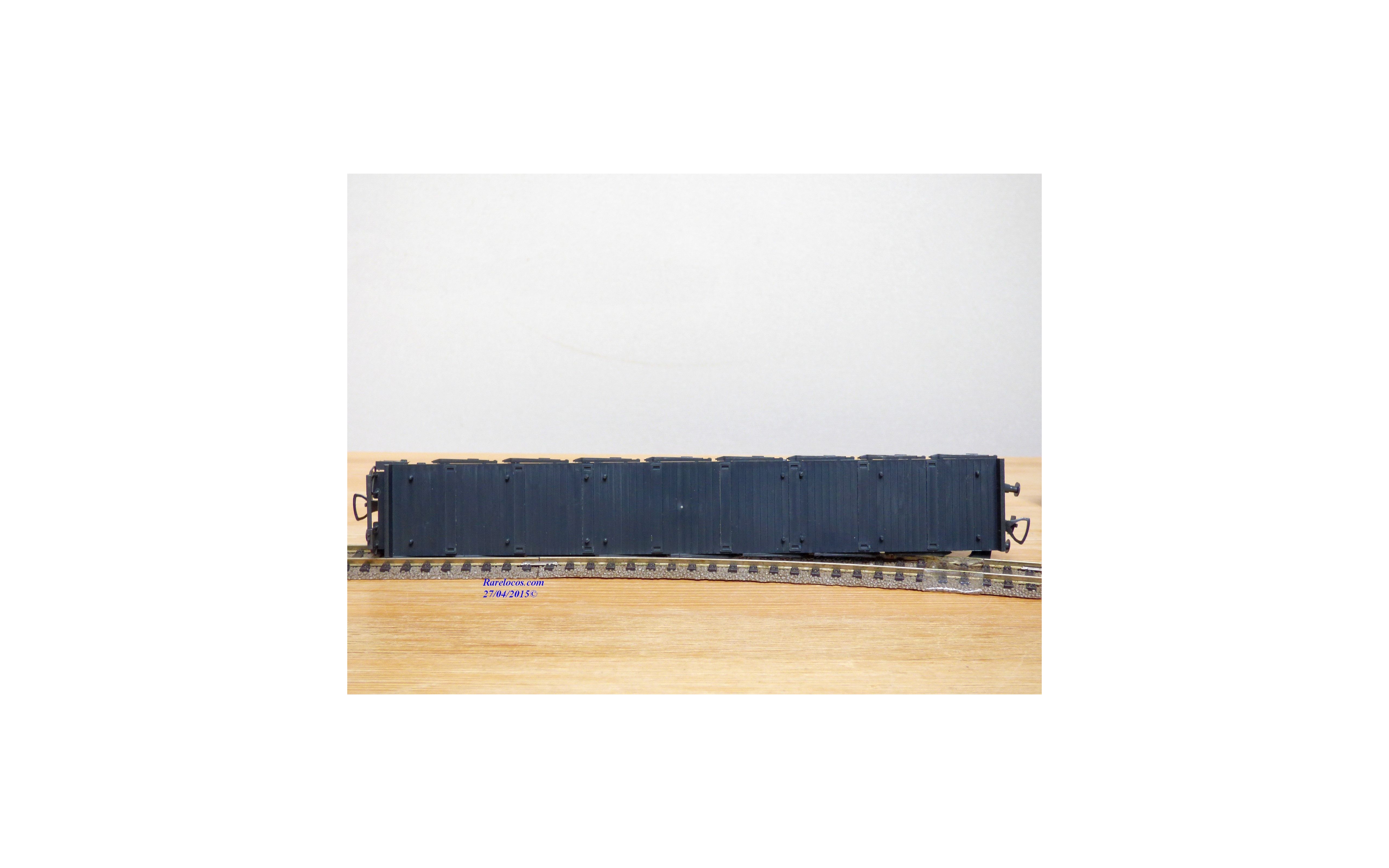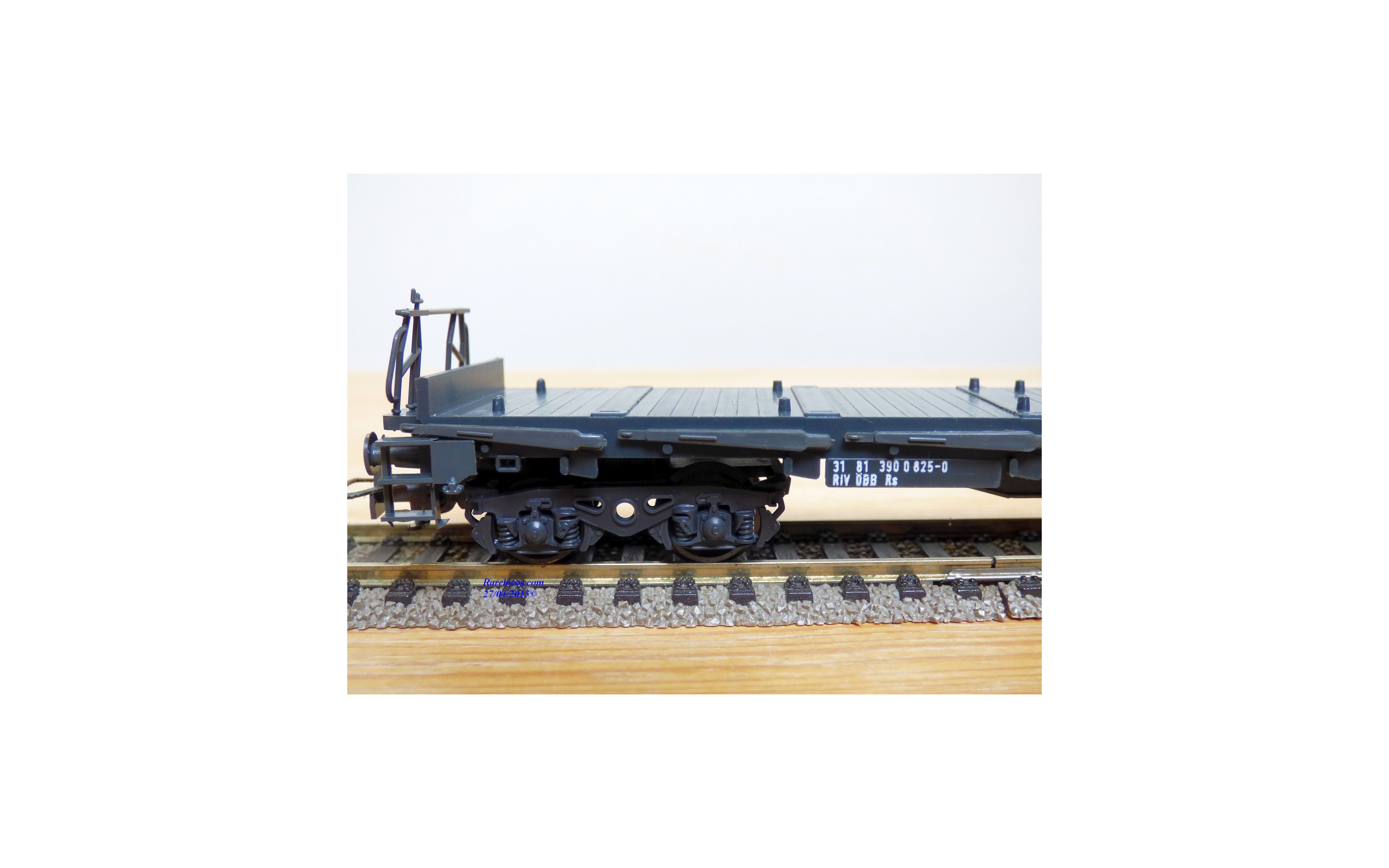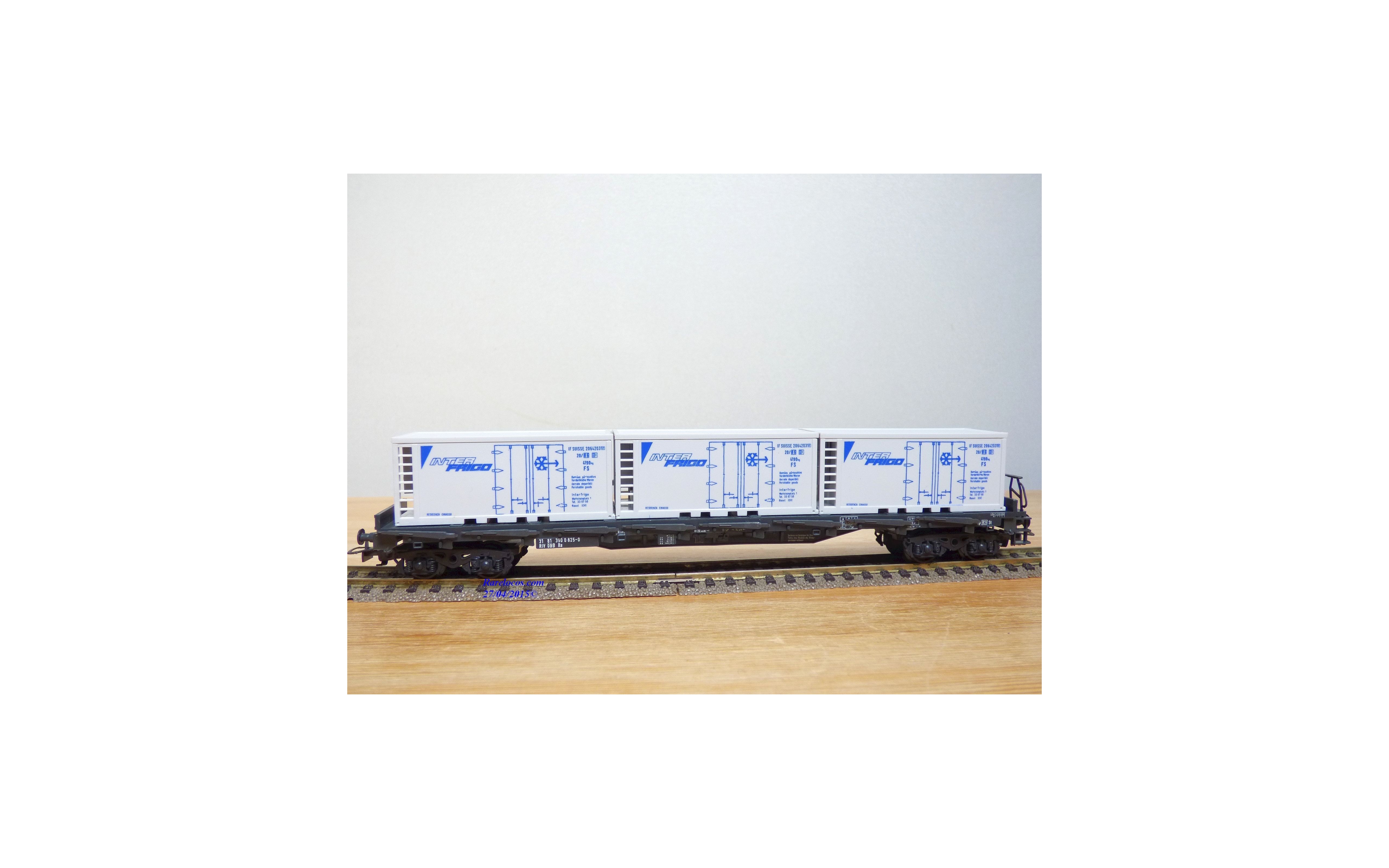 Rare wagon plat à ranchers type Rs 680 à 2 bogies des chemins de fer autrichiens ( ÖBB ), chargé de 3 conteneurs réfrigérants amovibles de 20 ' aux couleurs d' INTERFRIGO ( Wiking # 528a/6 ), emballage d'origine en excellent état.