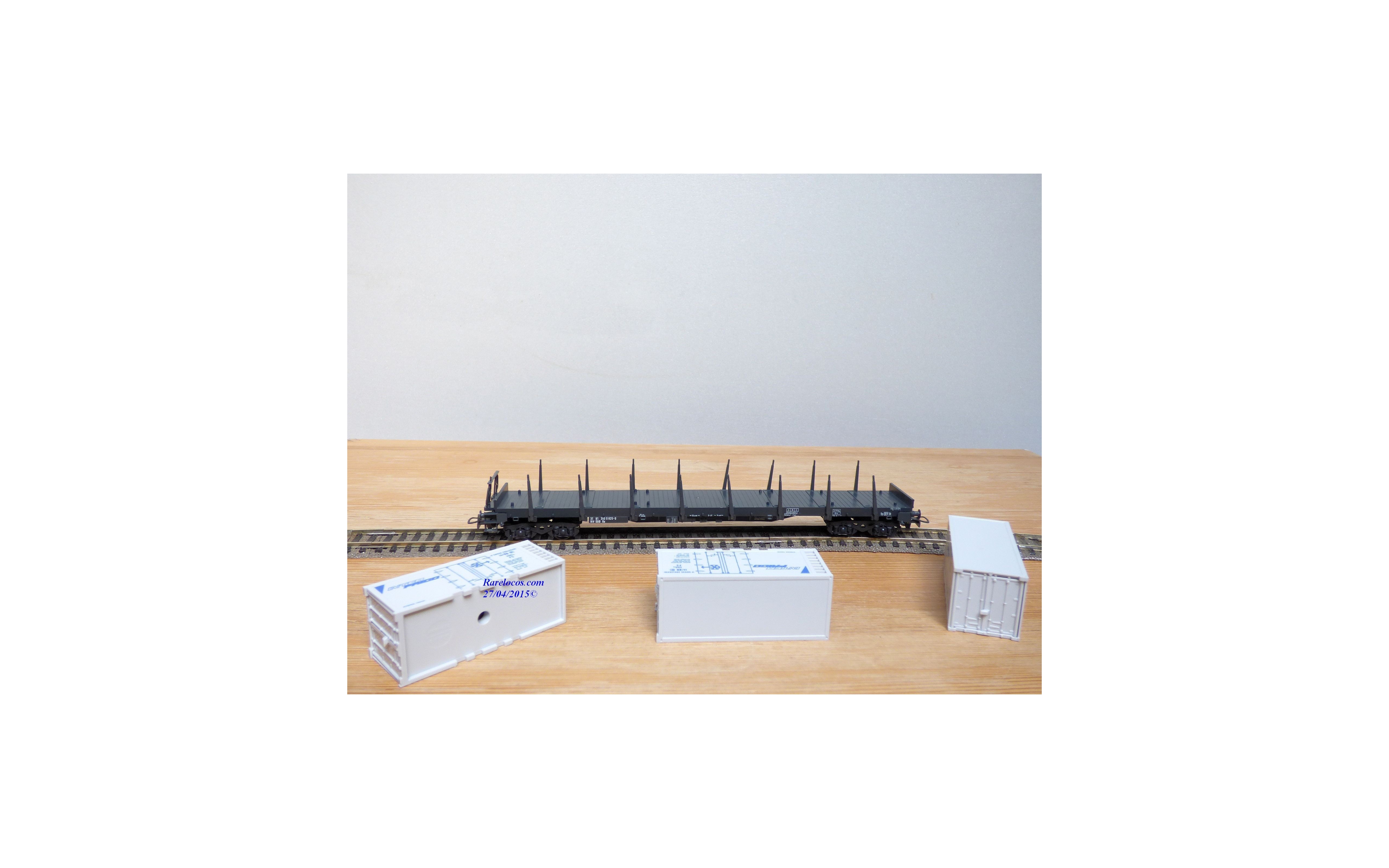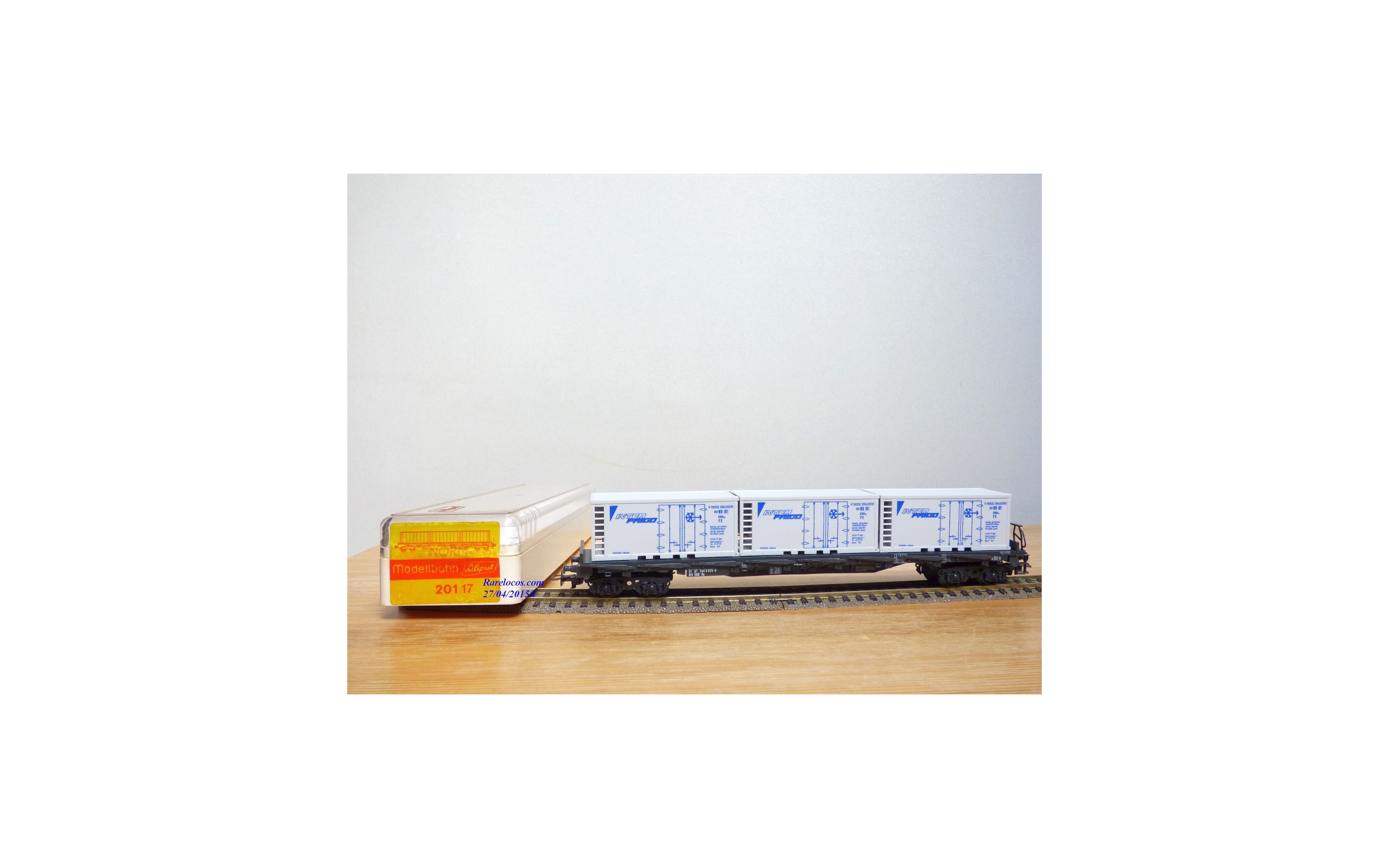 LILIPUT ( Wiking ) 201 17, wagon plat à ranchers chargé de 3 conteneurs réfrigérants de 20' INTERFRIGO ÖBB neuf BO (Ref: #201 17)