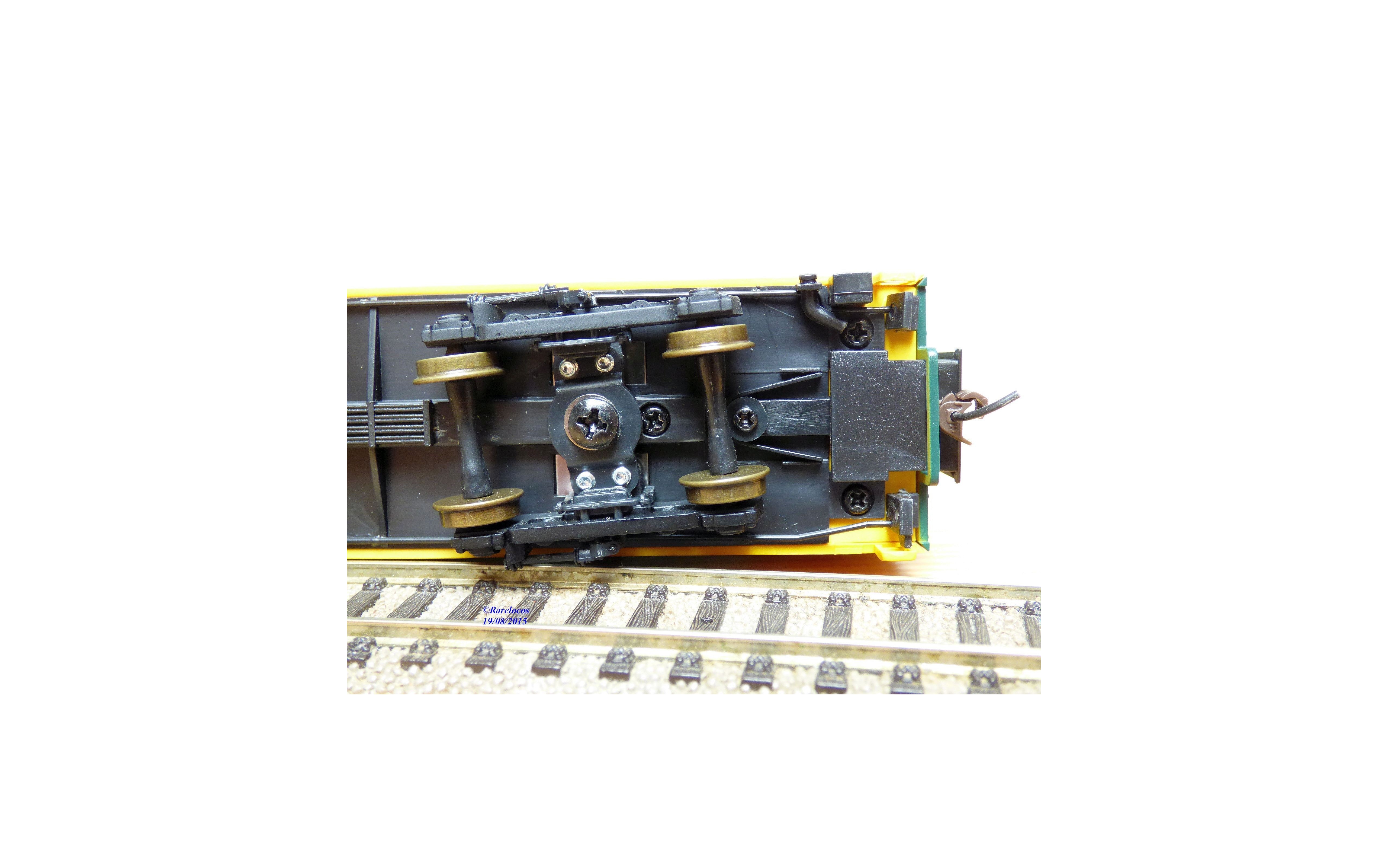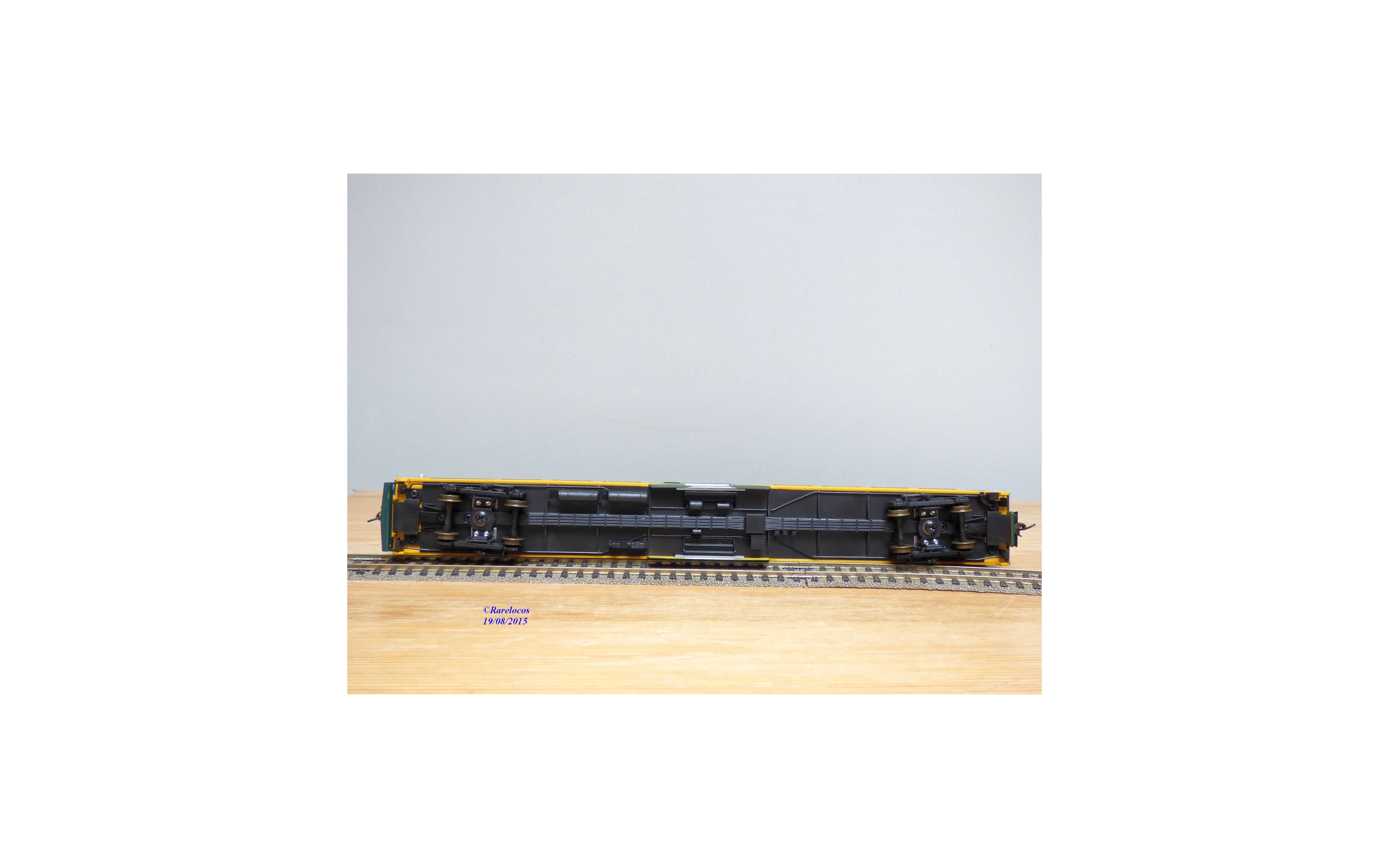 Voiture pilote de banlieue à 2 étages ( PS DD commuter cab car ) des chemins de fer américains ( C&NW : Chicago and NorthWestern ), livrée jaune et vert foncé, pièces de détaillage encore scellées, plaques de numérotation intactes, notice présente, boîte d'origine en bon état.