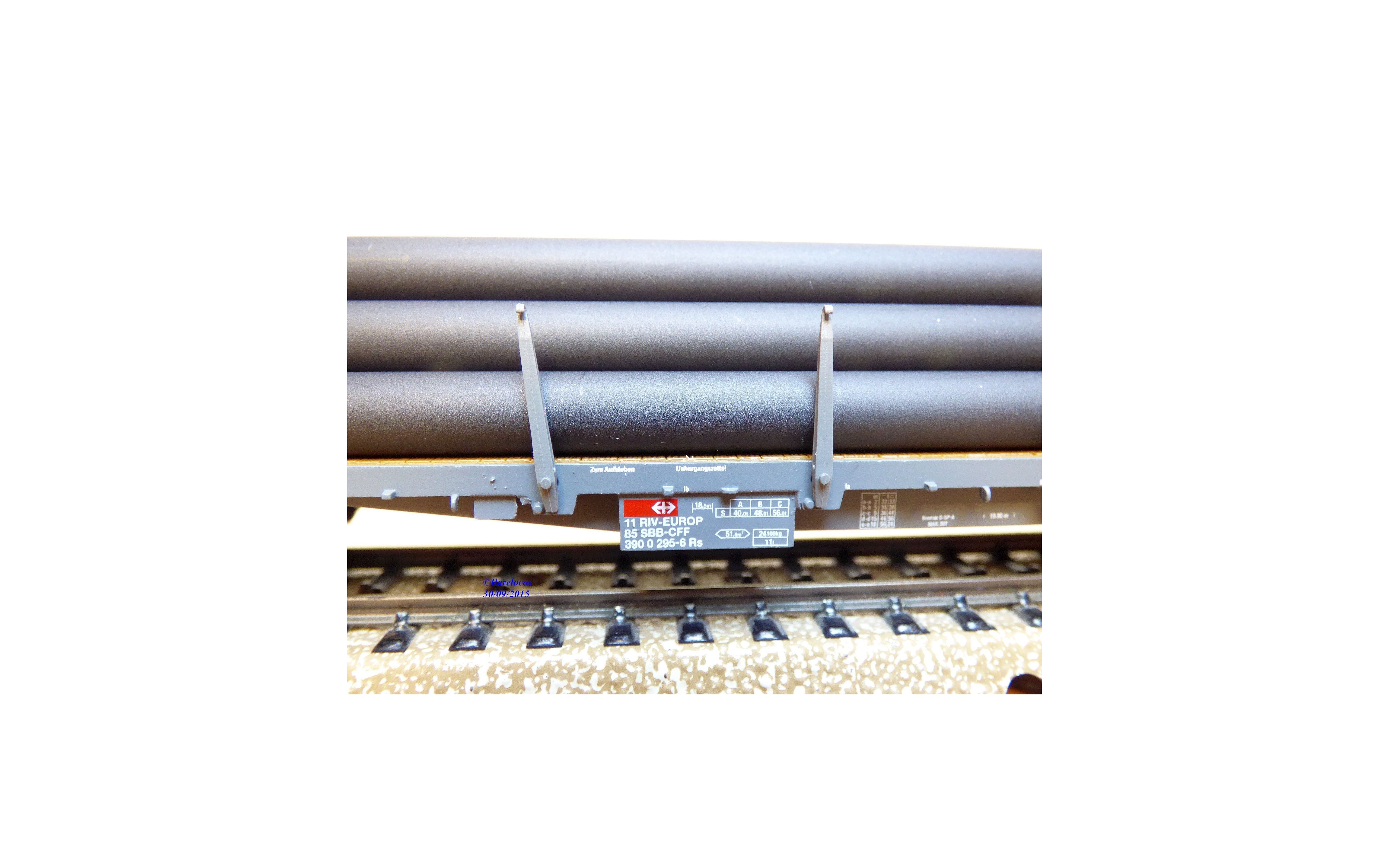 HAG 364 . 04 , wagon plat à ranchers type Rs chargé de tuyaux SBB BO (Ref: #364.04)