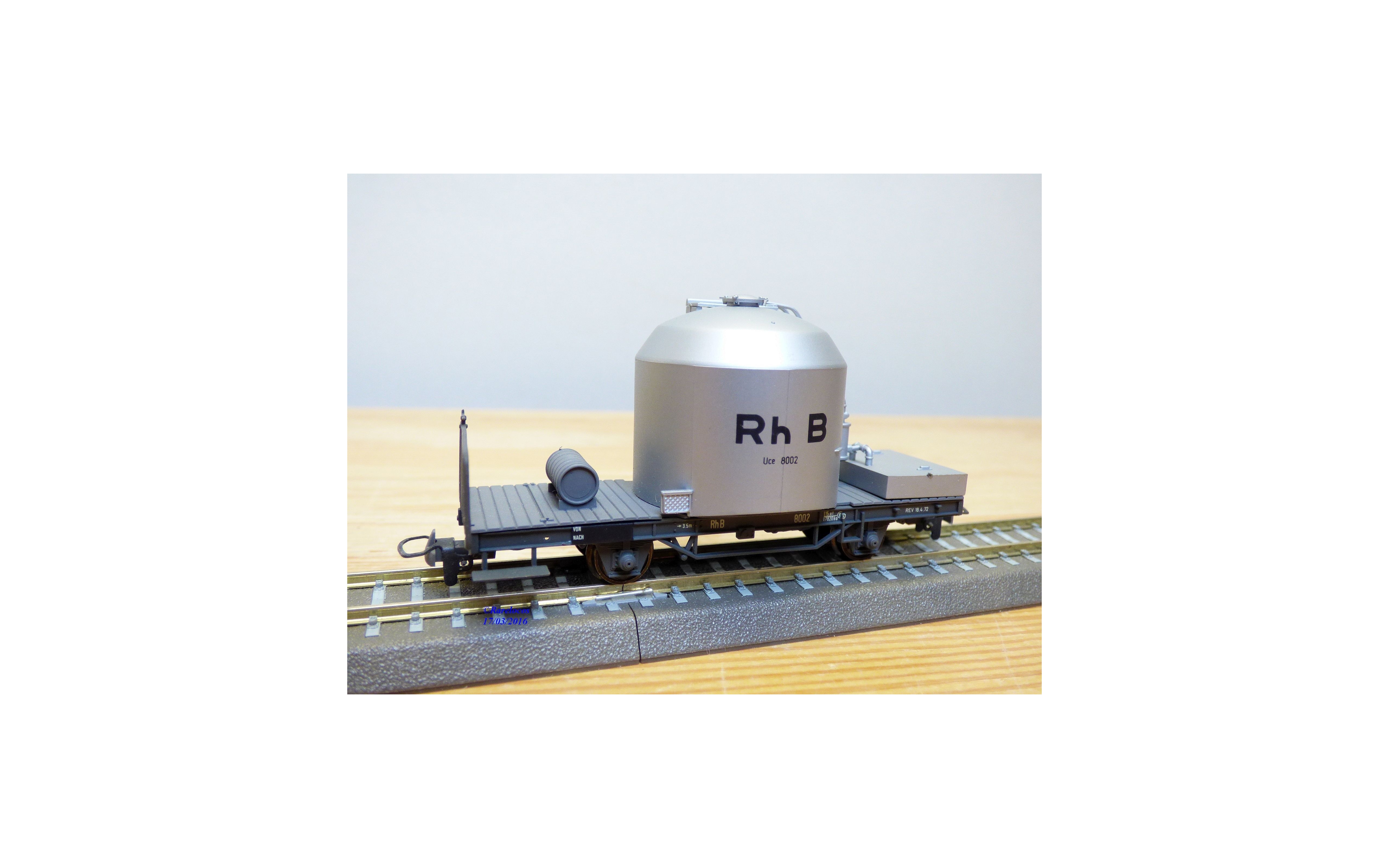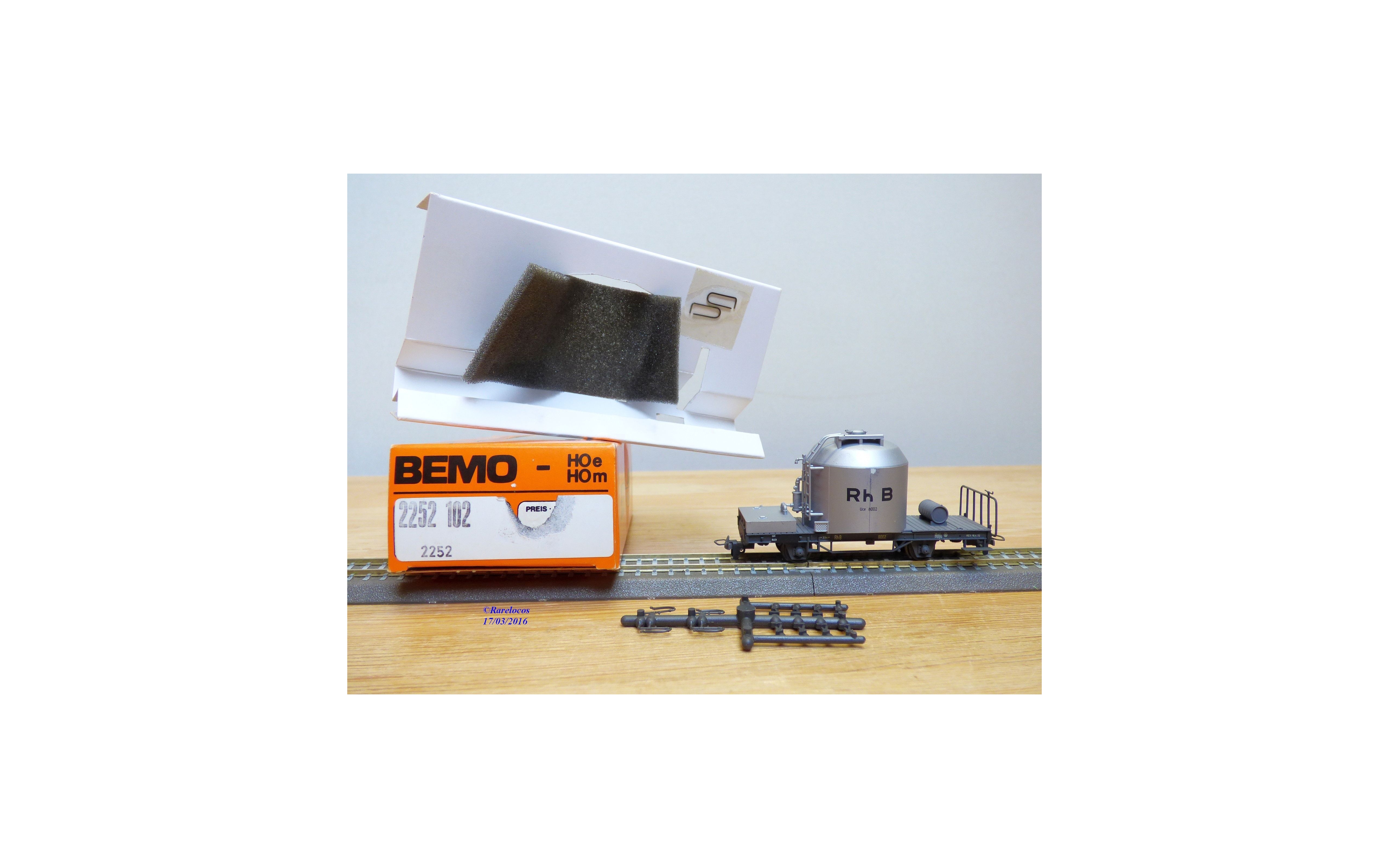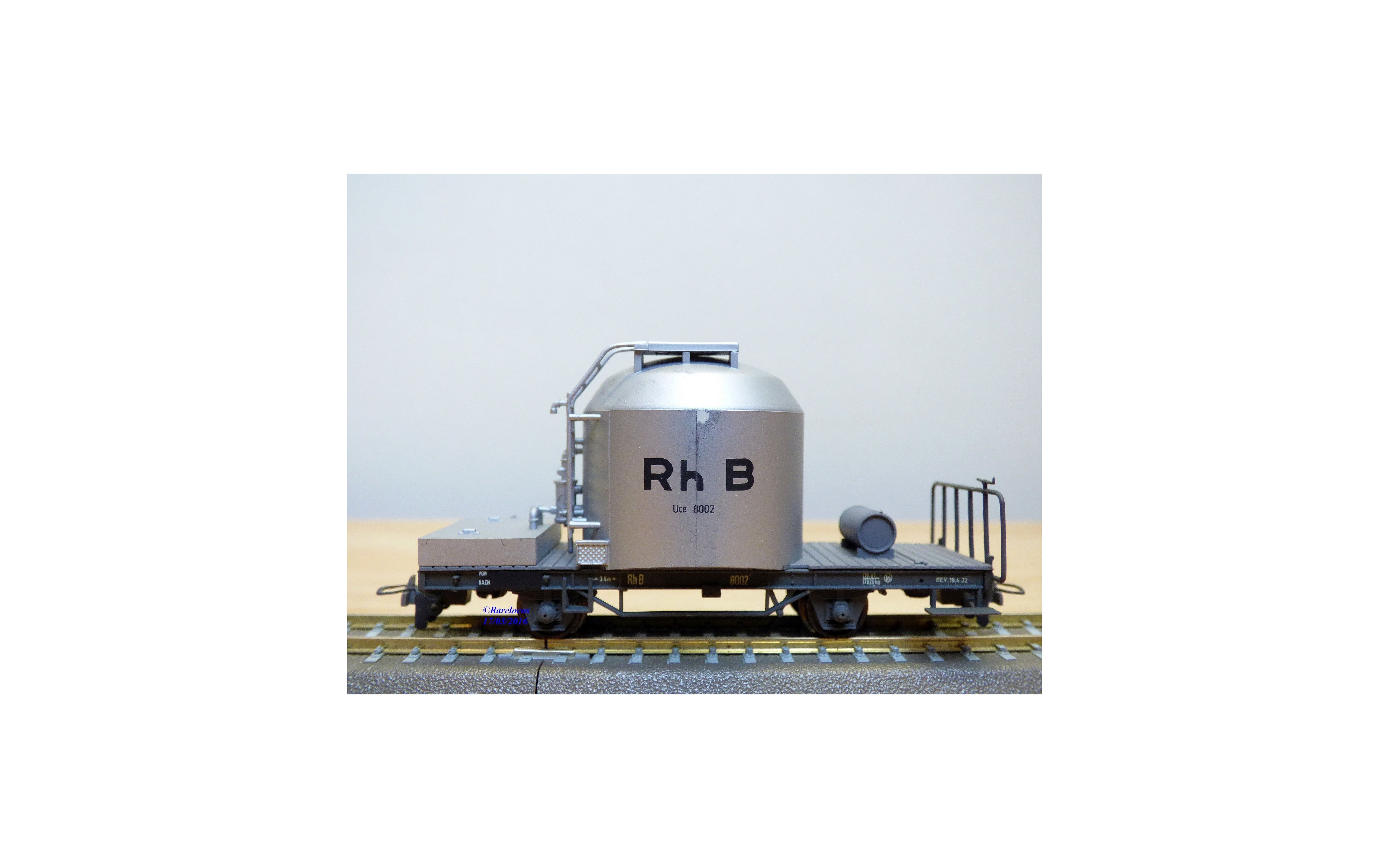 Wagon silo pour transport de ciment type Uce surnommés Mohrenköpf d'une compagnie privée suisse ( Rhb ; Rhätische Bahn, Chemins de fer Rhétiques), livrée grise, immatriculés : 8002, pièces de superdétaillage non montées, emballages d'origine en très bon état.