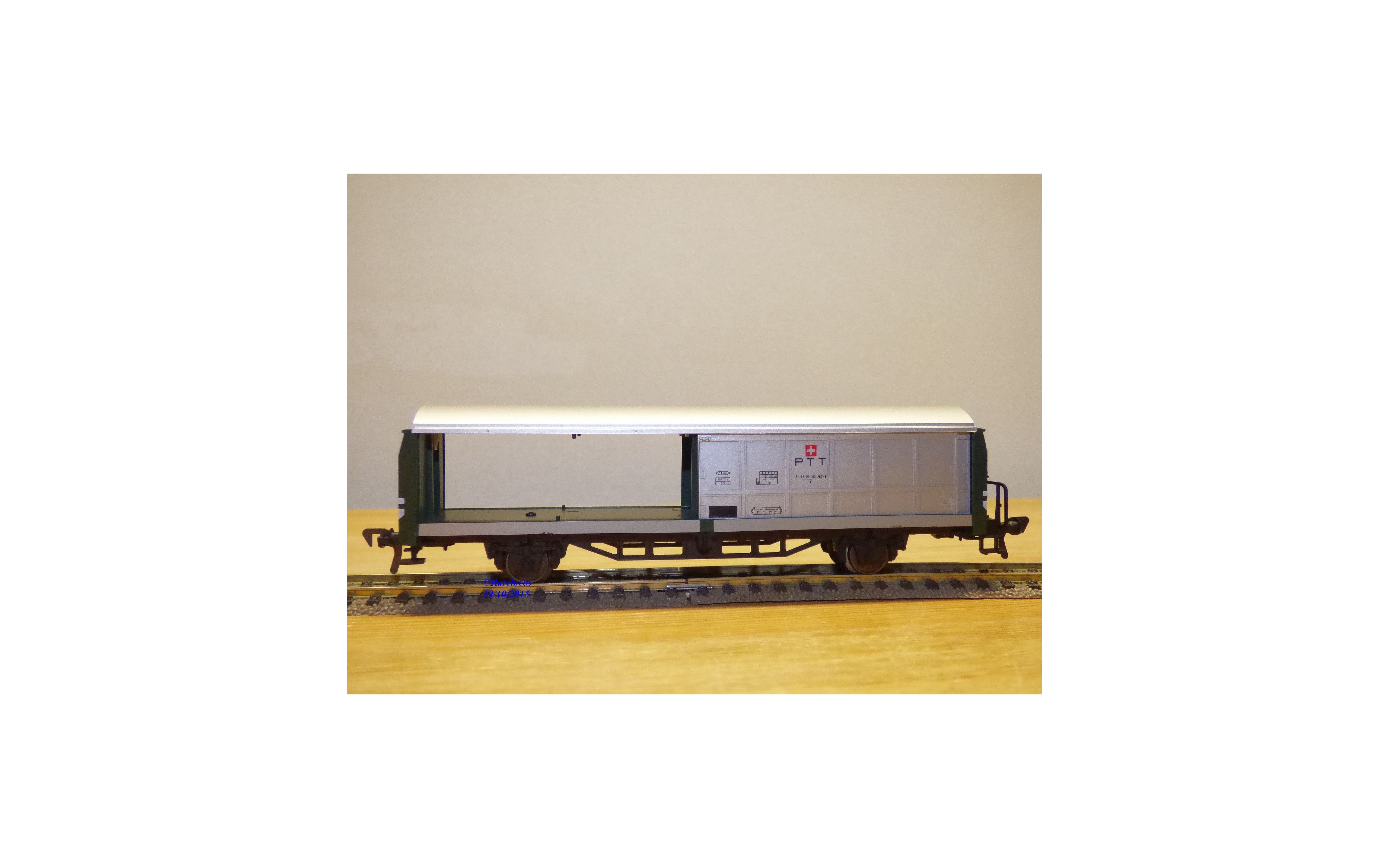 Wagon couvert postal à 2 essieux à parois coulissantes ( fonctionnelles) type Z des chemins de fer suisses ( SBB / CFF / FFS ), livrée gris argent et vert, immatriculation : 50 85 00-00 280-5, boîte d'origine en état très moyen.
