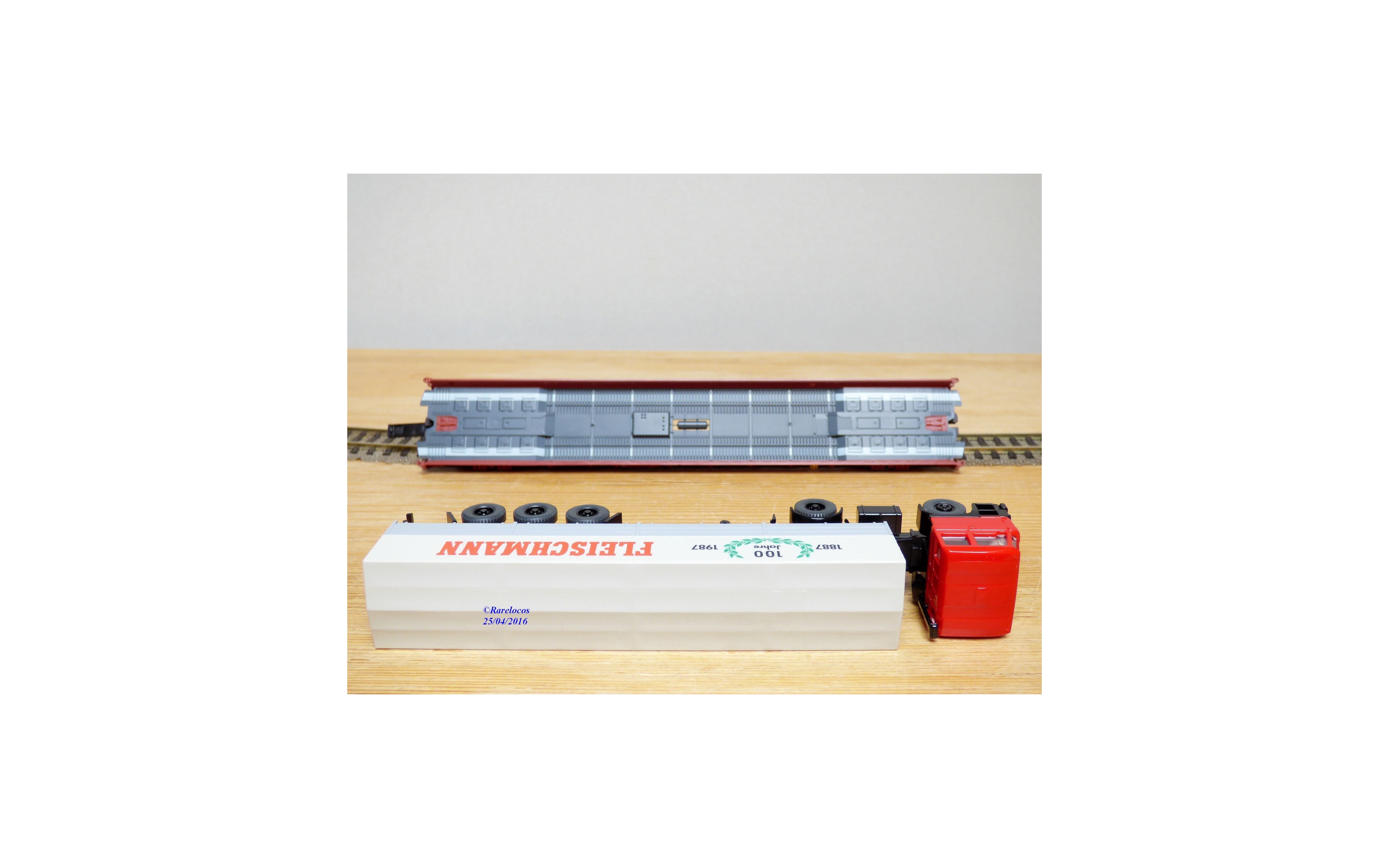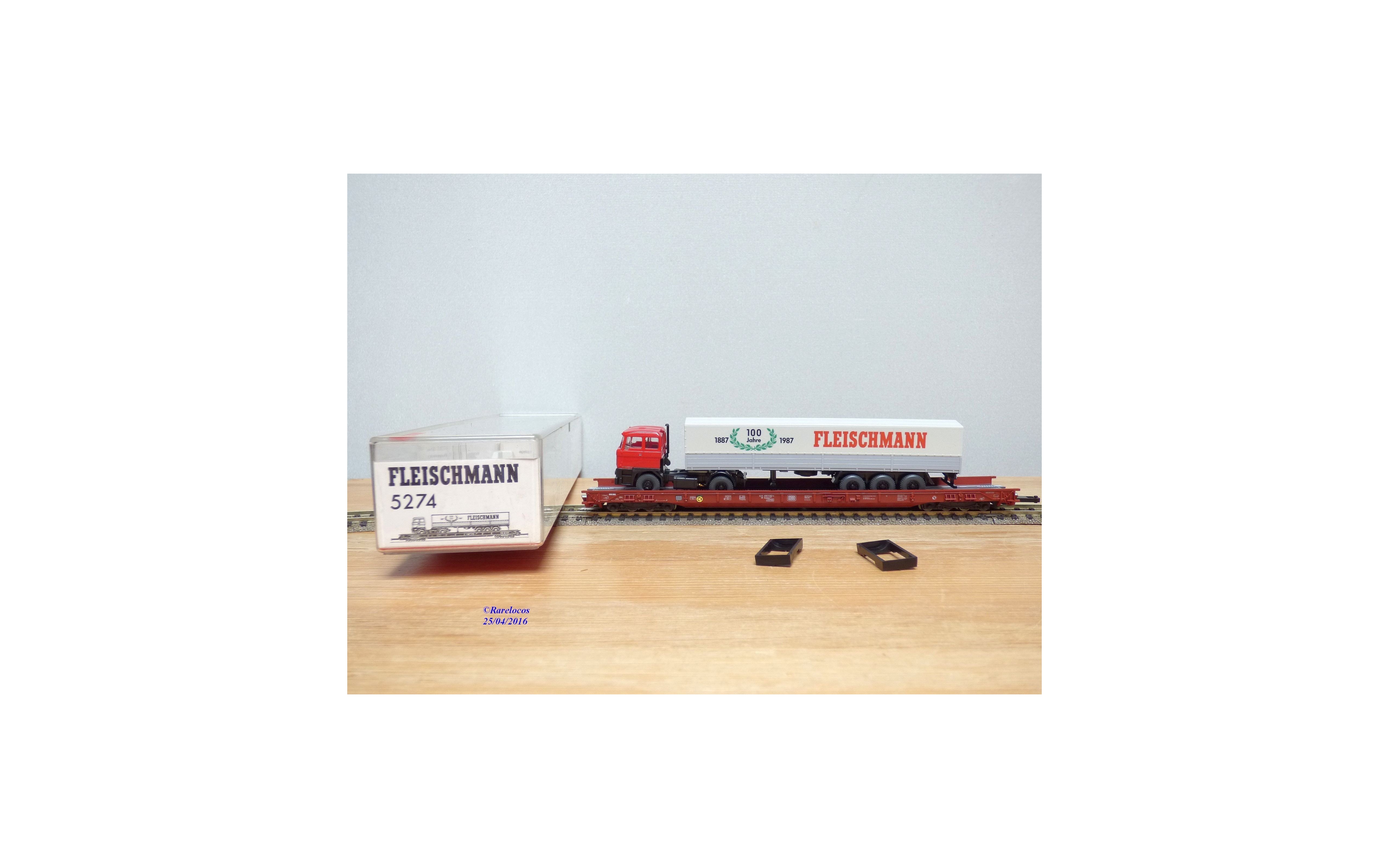 FLEISCHMANN 5274, wagon surbaissé type Saadkms.690 Rollende Landstrasse et camion VOLVO/DAF DB neuf BO (Ref: #5274)