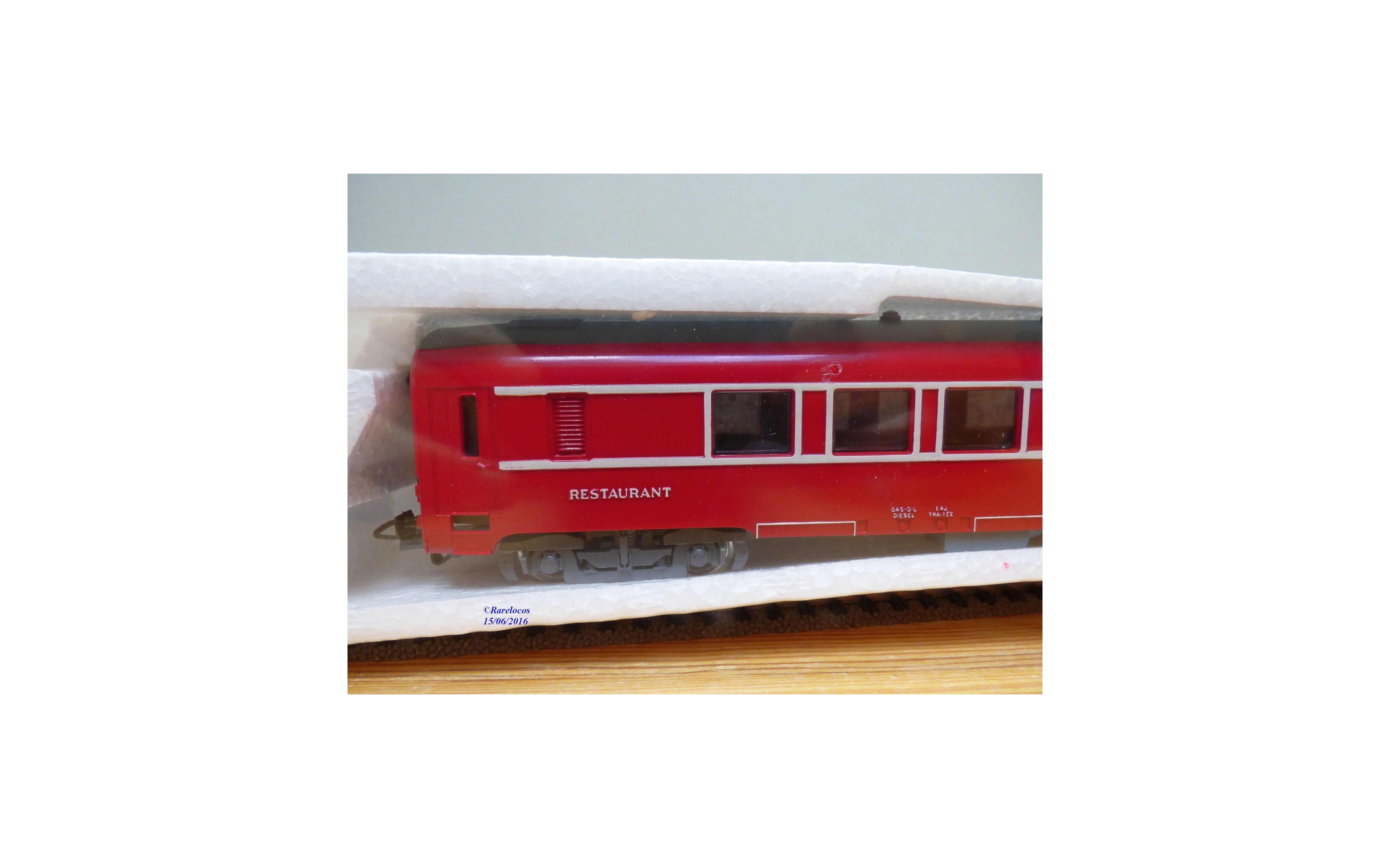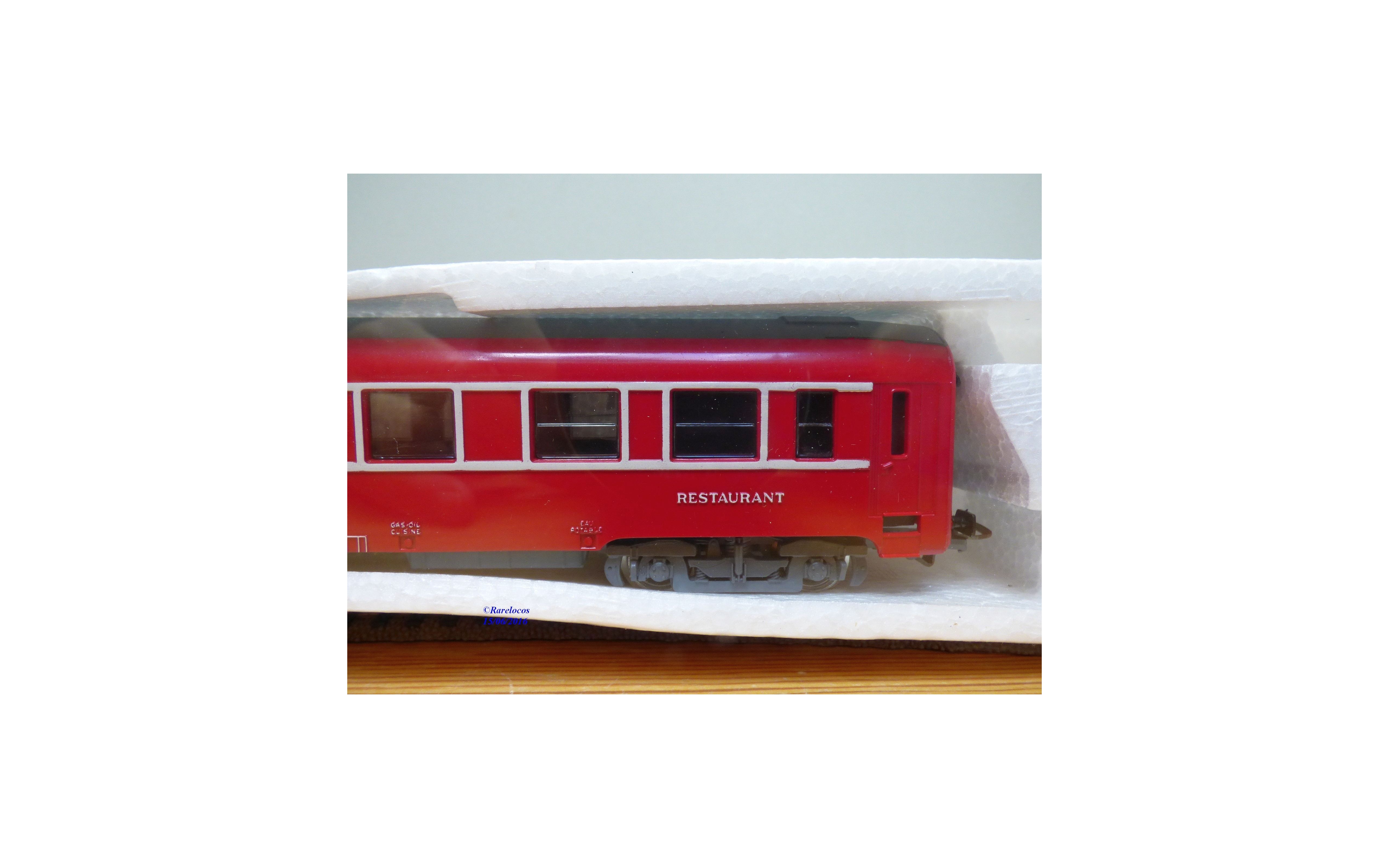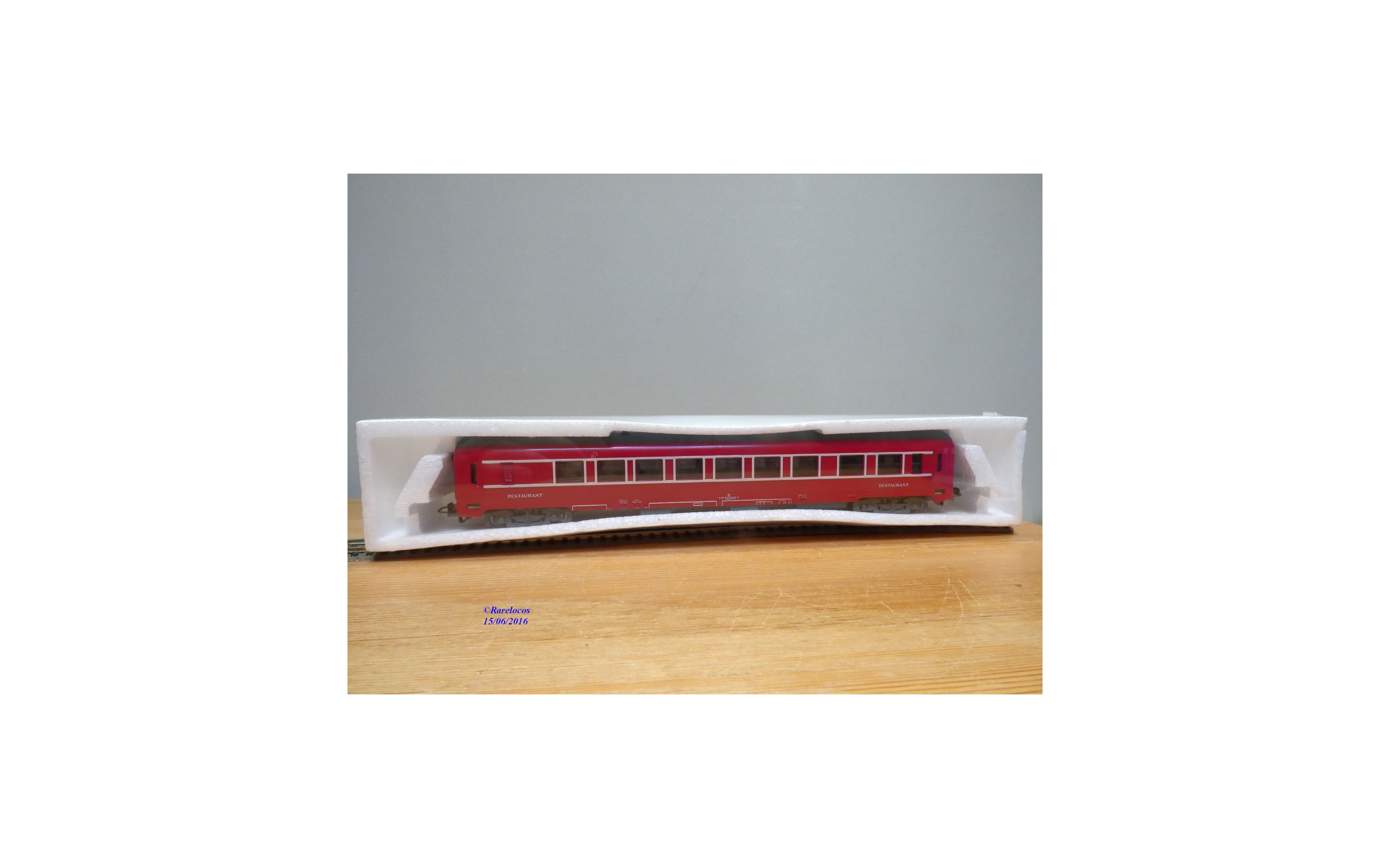 Voiture restaurant type DEV des chemins de fer français ( SNCF), livrée rouge à bande blanche, boîte d'origine en état neuf encore scellée.