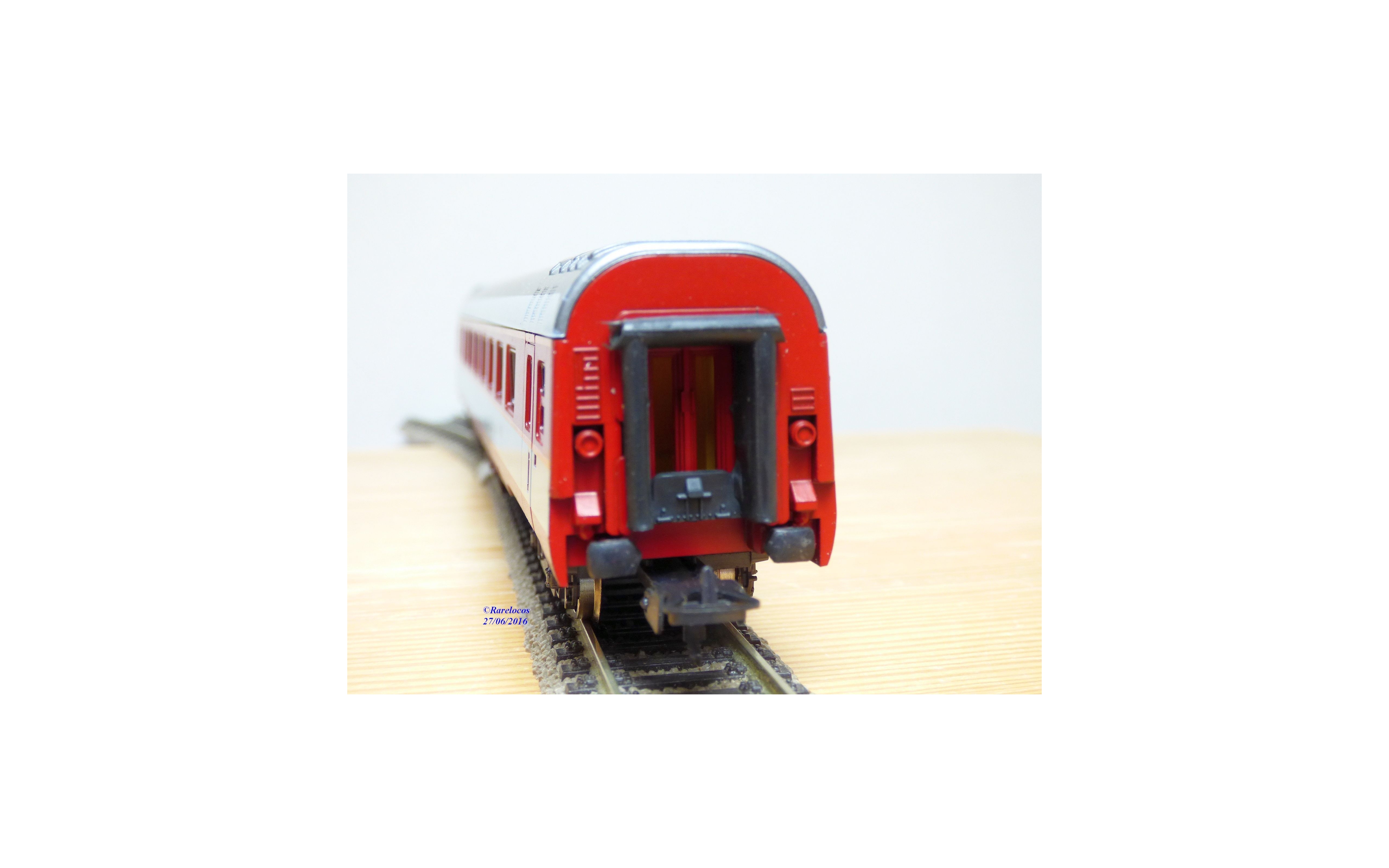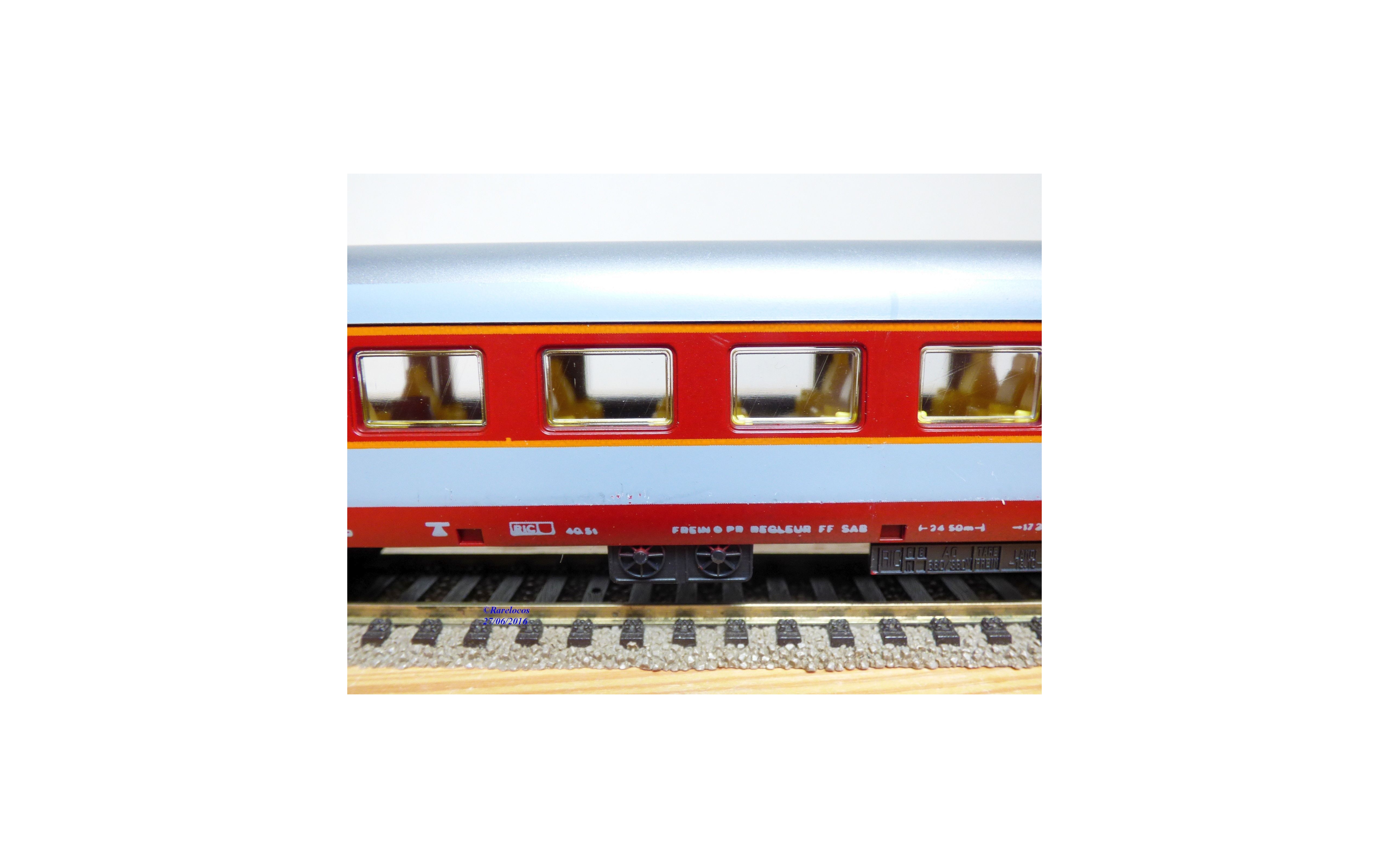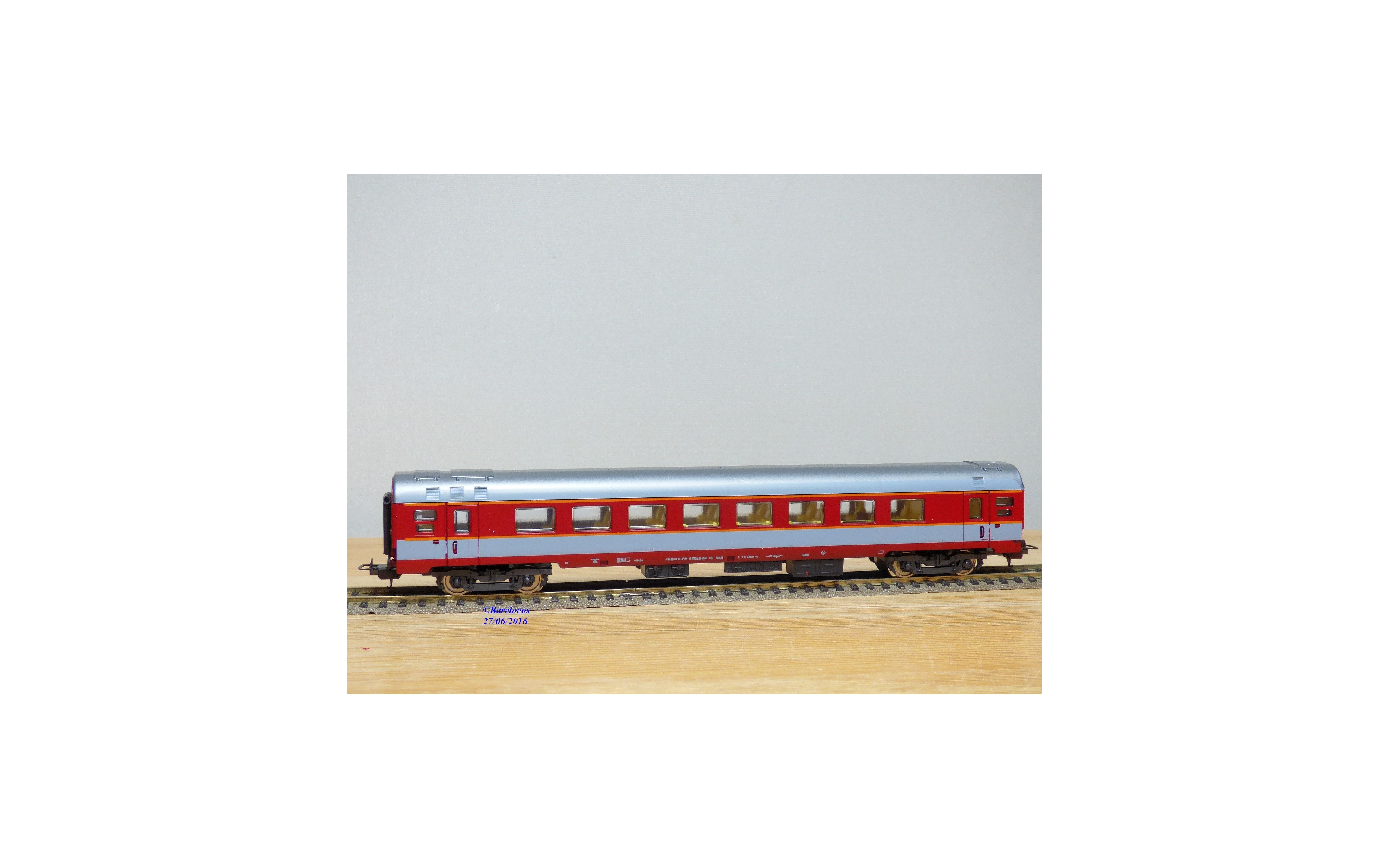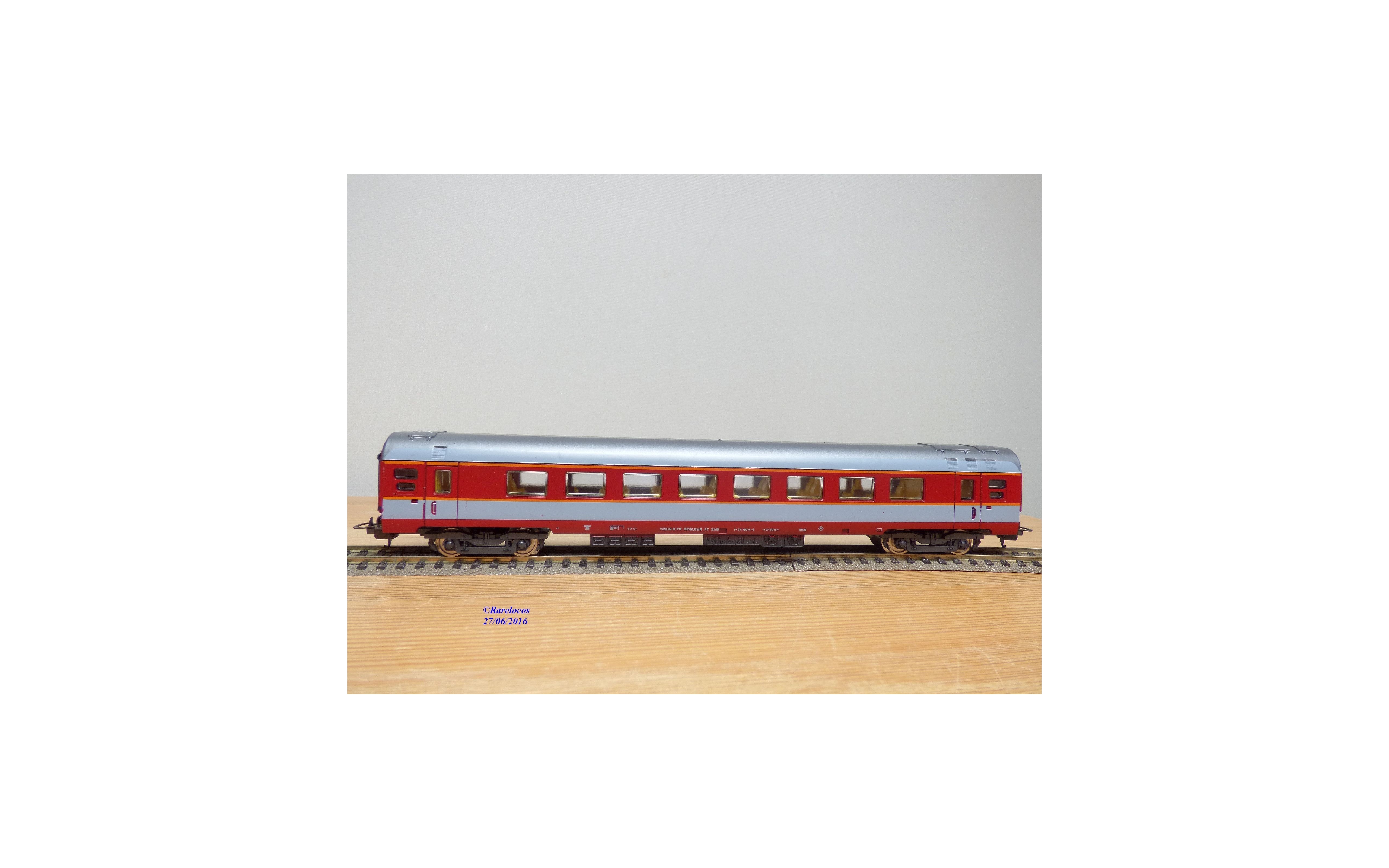 Voiture Grand Confort à 2 bogies des chemins de fer français ( SNCF ), livrée rouge et grise, boîte d'origine en excellent état .
